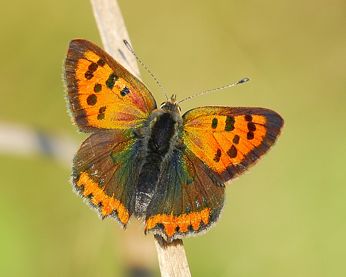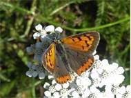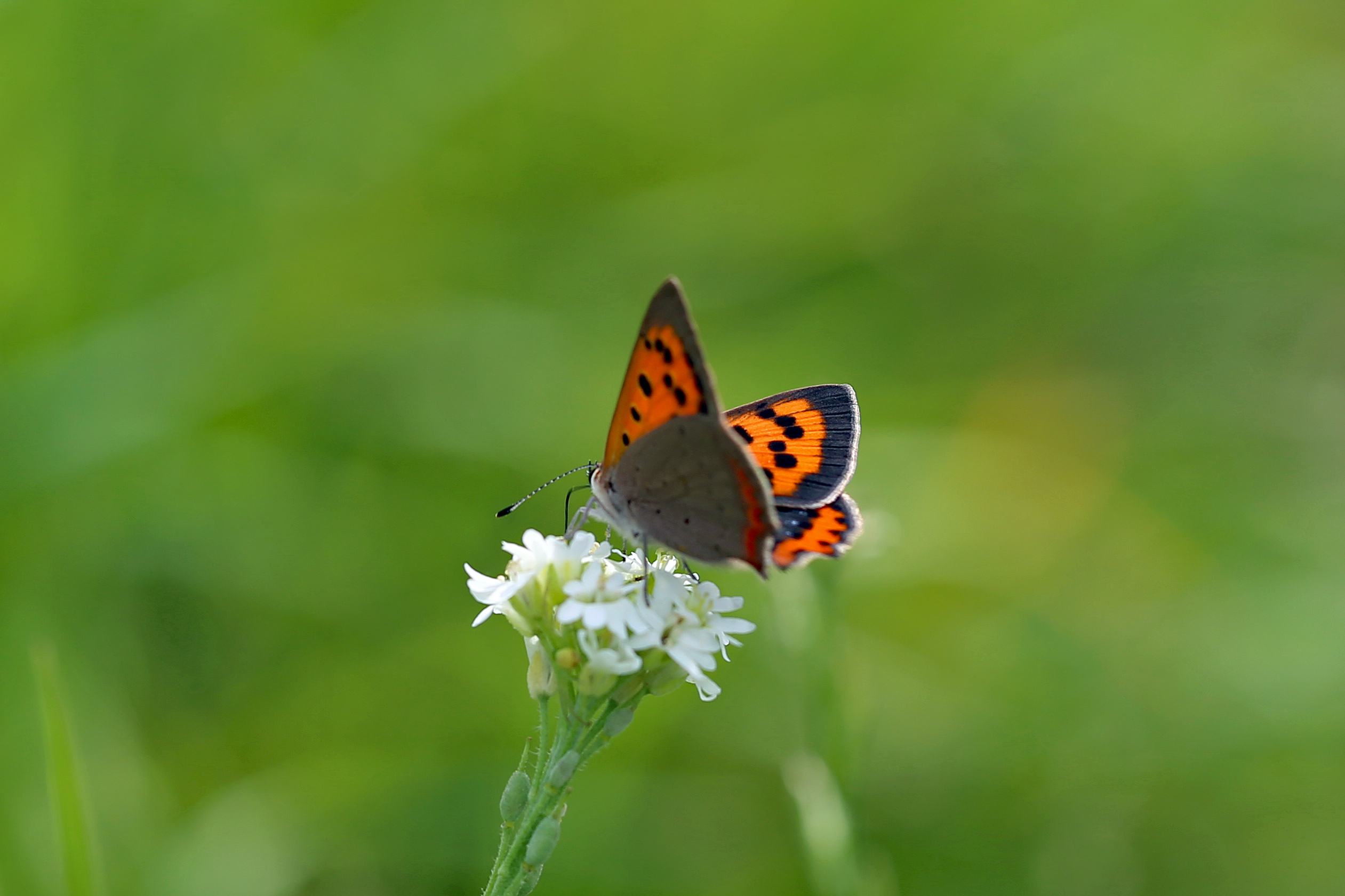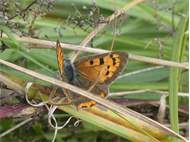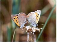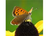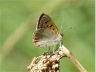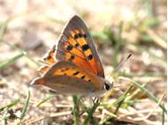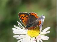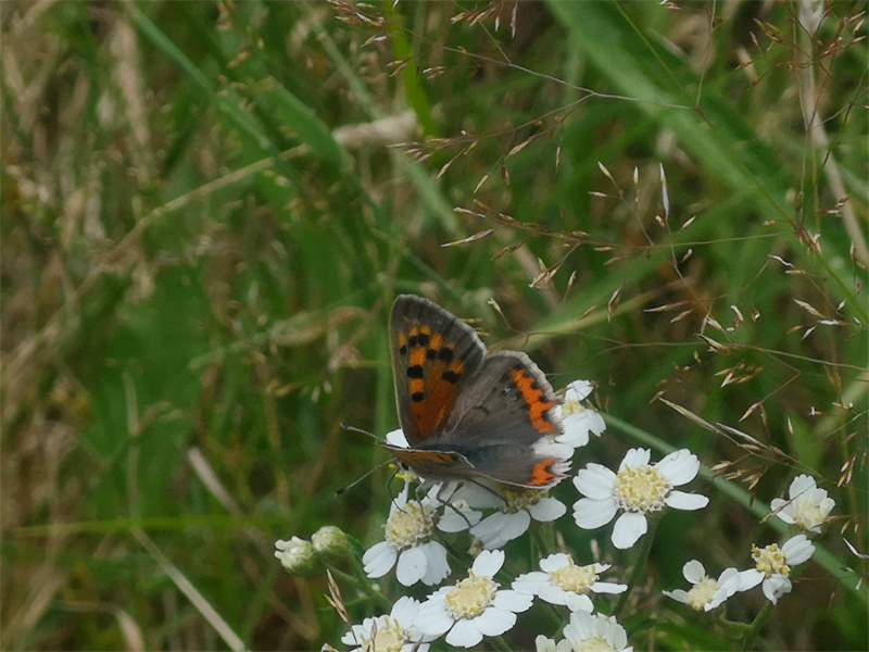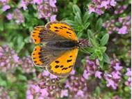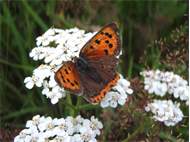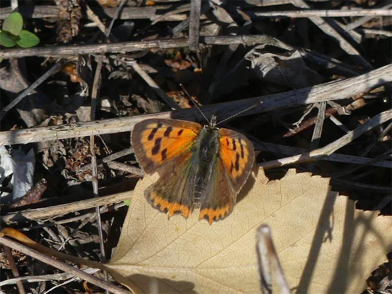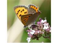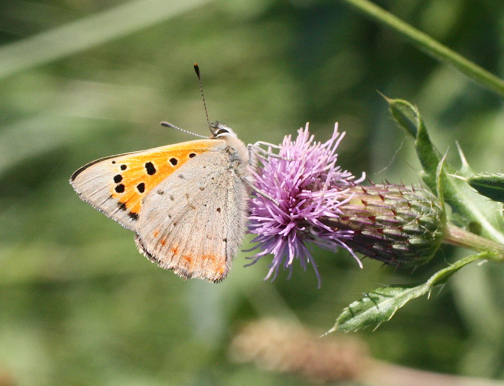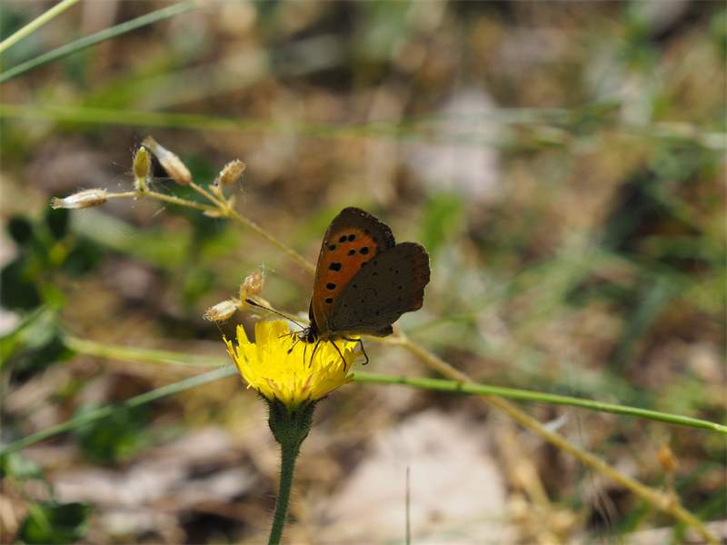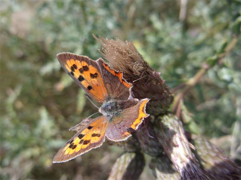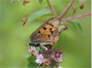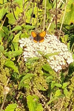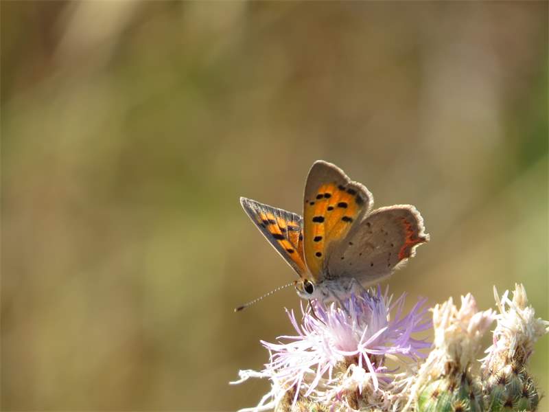 Kleiner Feuerfalter (Lycaena phlaeas (Linnaeus, 1761)), Laue, Rekultivierungsbereich der Tagebaulandschaft Goitzsche östlich vom Seelhausener See, nahe Leipzig, 16. Juni 2019
