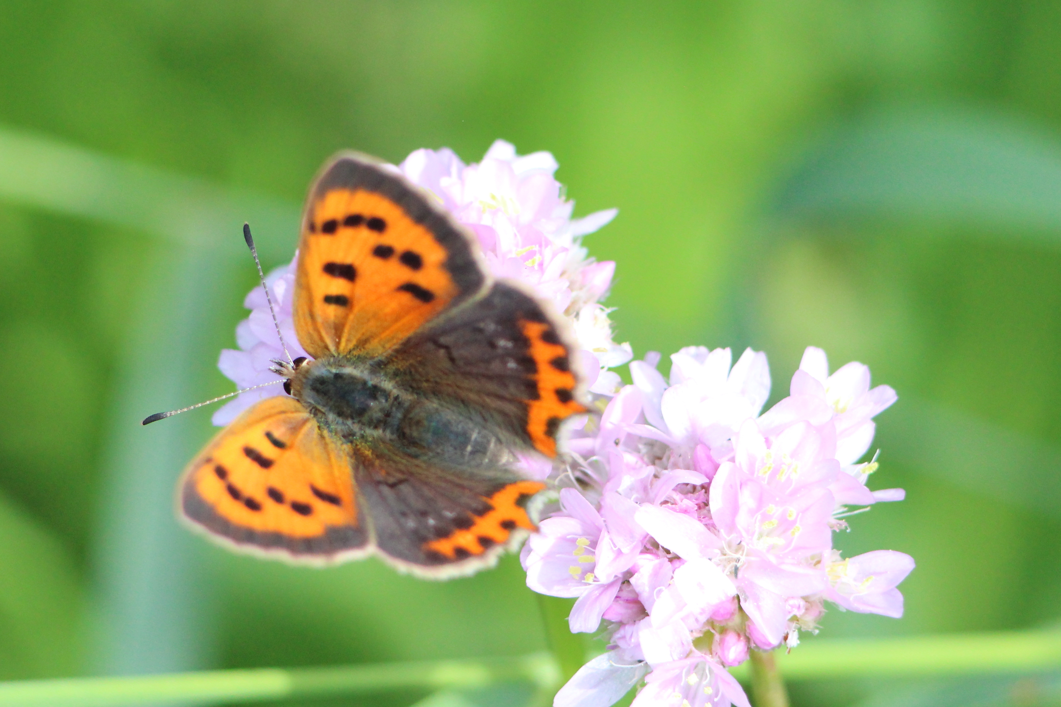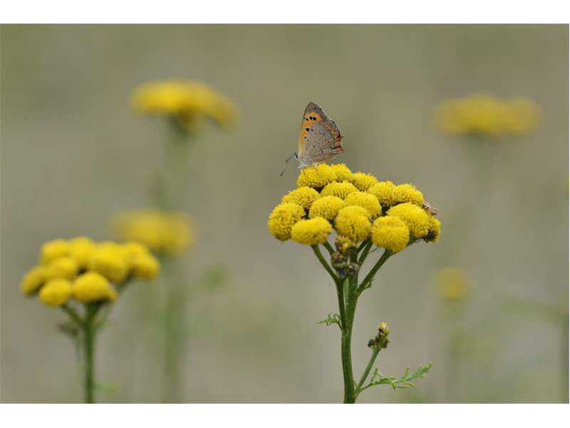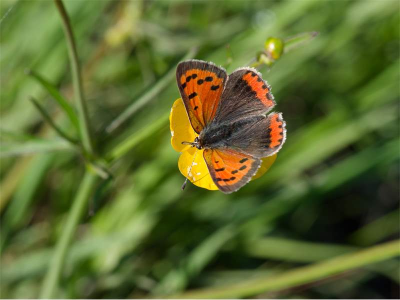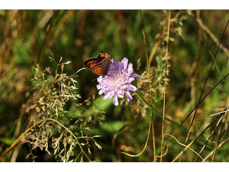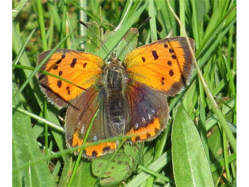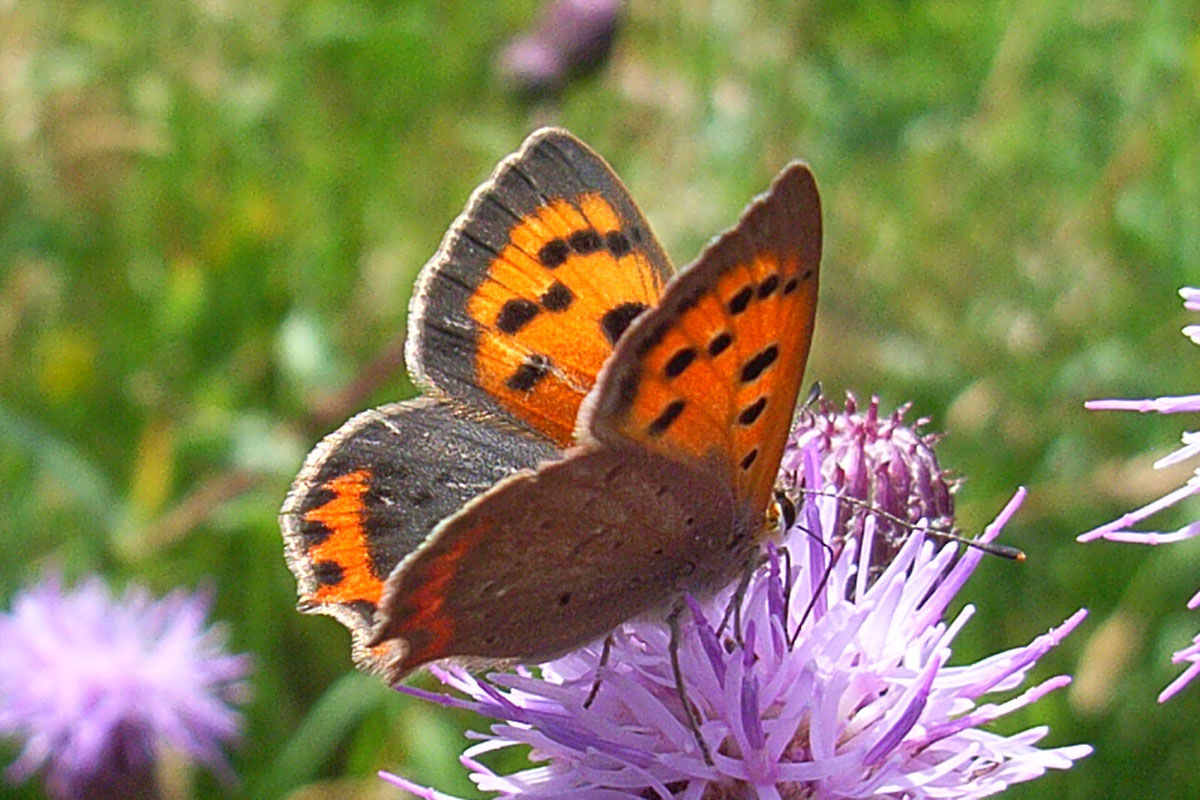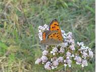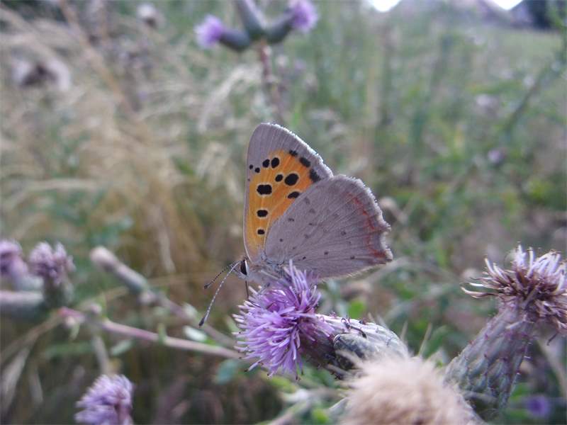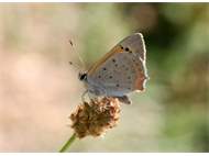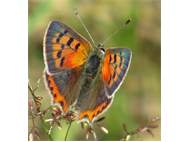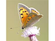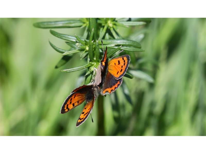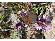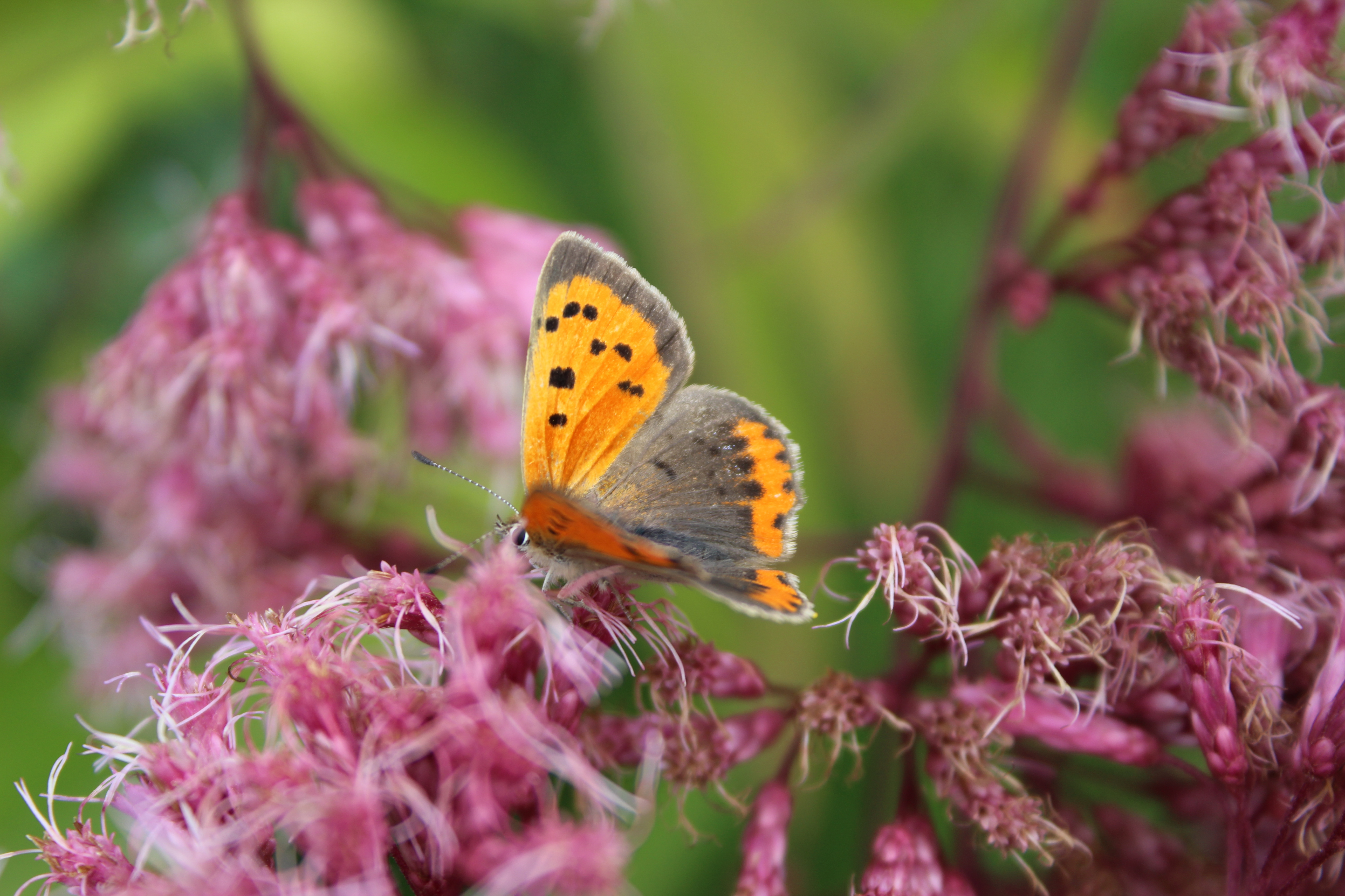 Kleiner Feuerfalter (Lycaena phlaeas (Linnaeus, 1761)), Laue, Rekultivierungsbereich der Tagebaulandschaft Goitzsche östlich vom Seelhausener See, nahe Leipzig, 16. Juni 2019