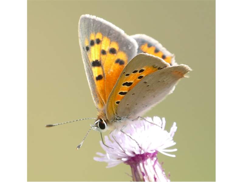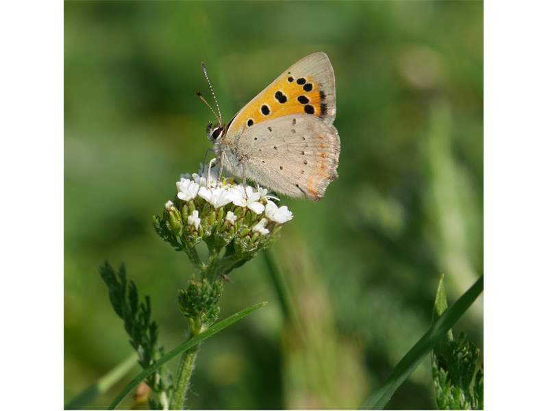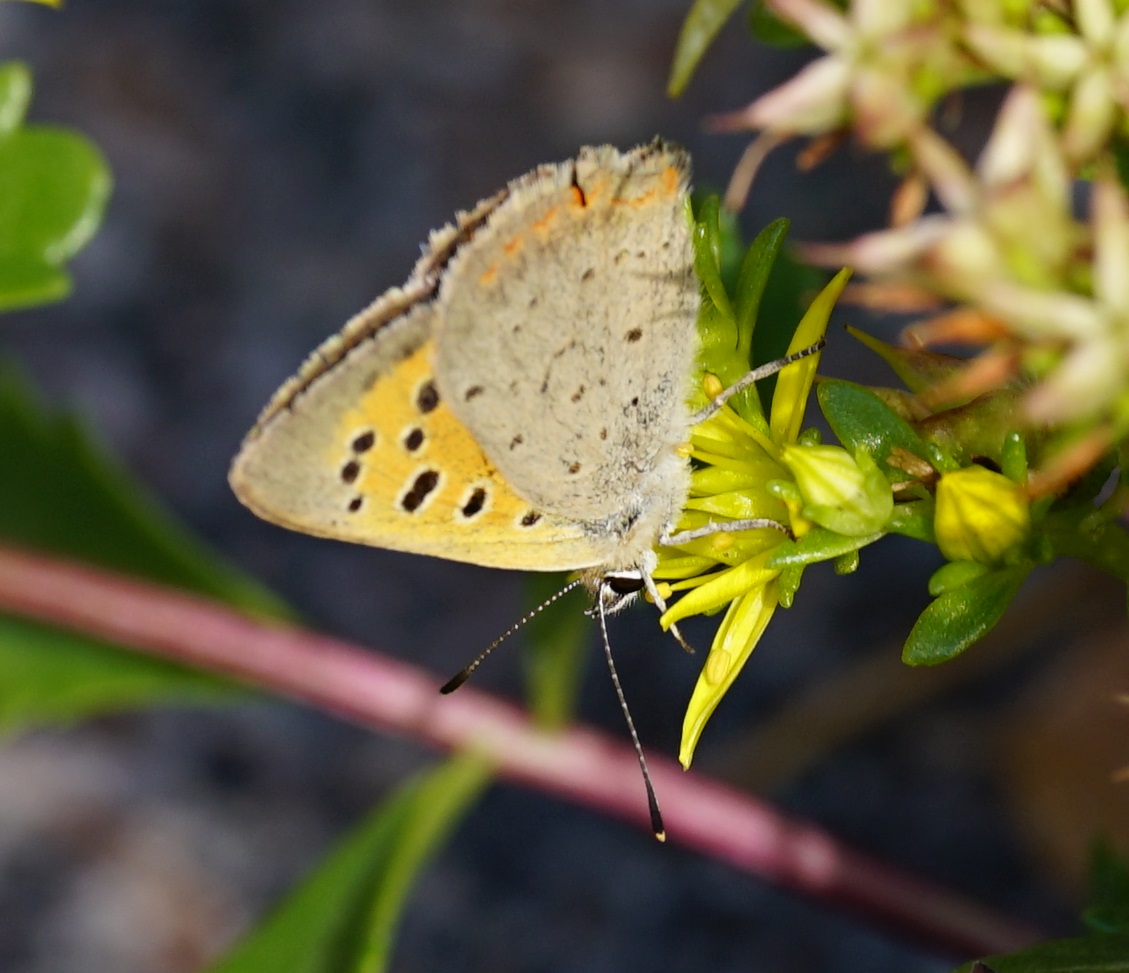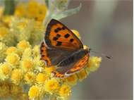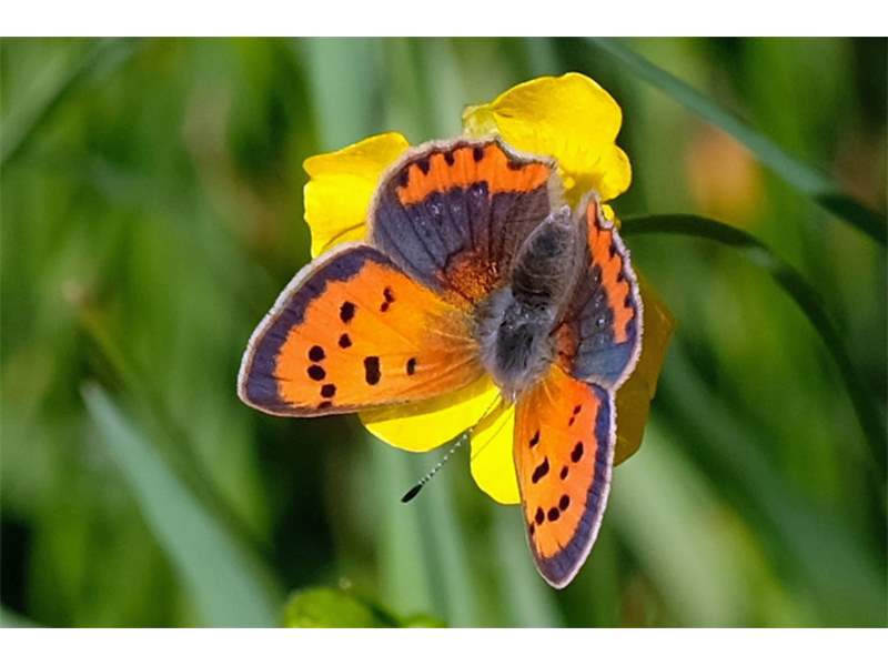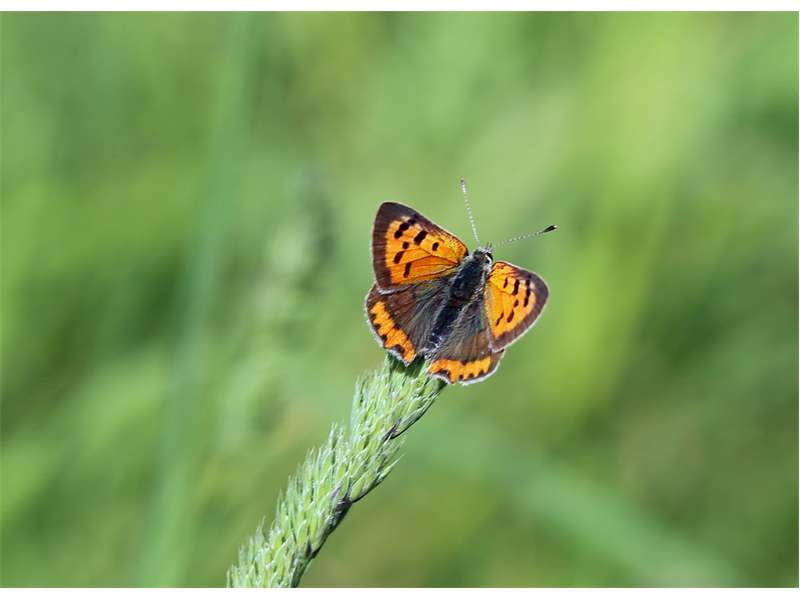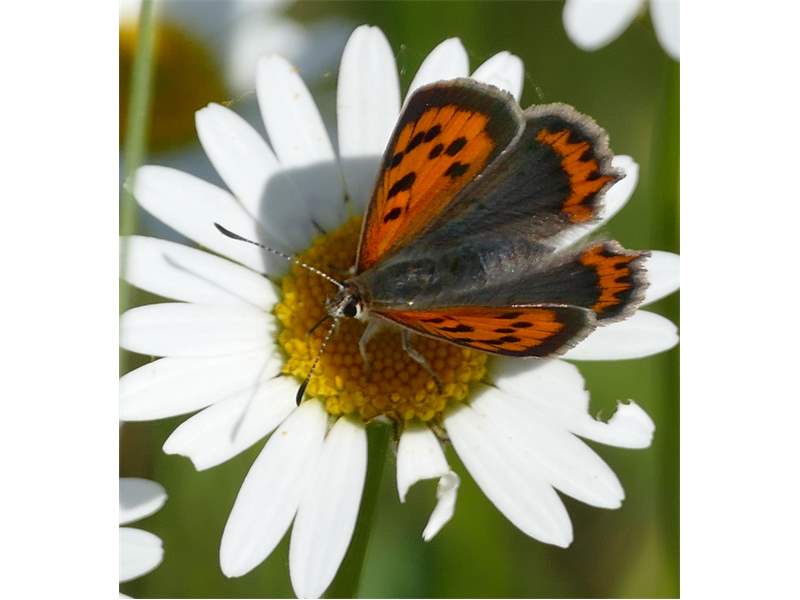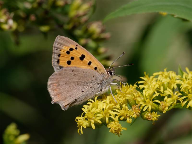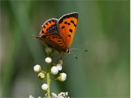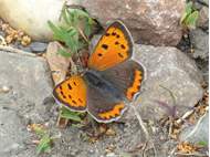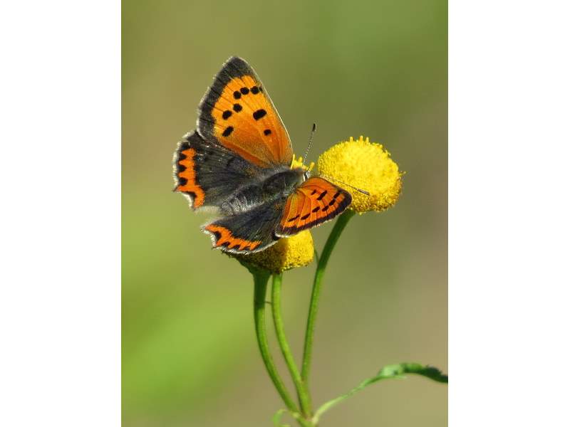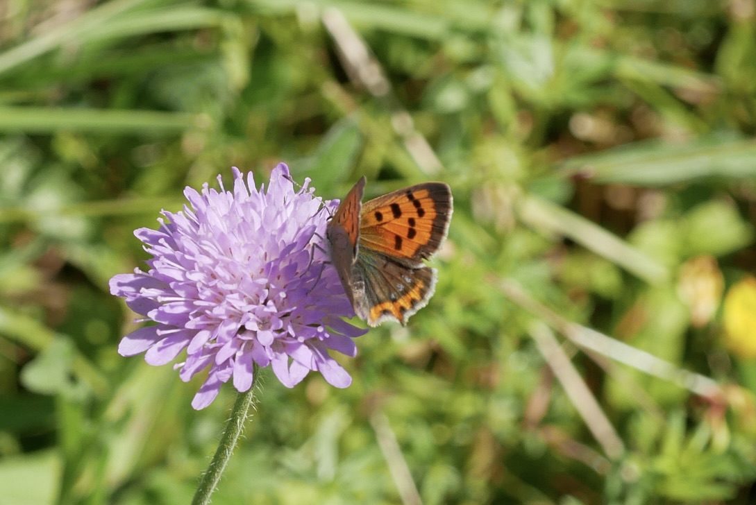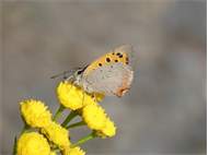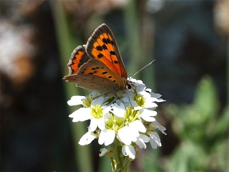 Kleiner Feuerfalter (Lycaena phlaeas (Linnaeus, 1761)), Laue, Rekultivierungsbereich der Tagebaulandschaft Goitzsche östlich vom Seelhausener See, nahe Leipzig, 16. Juni 2019