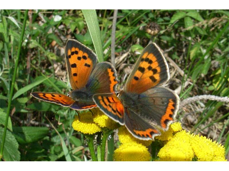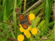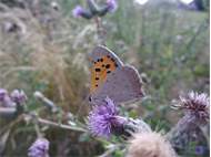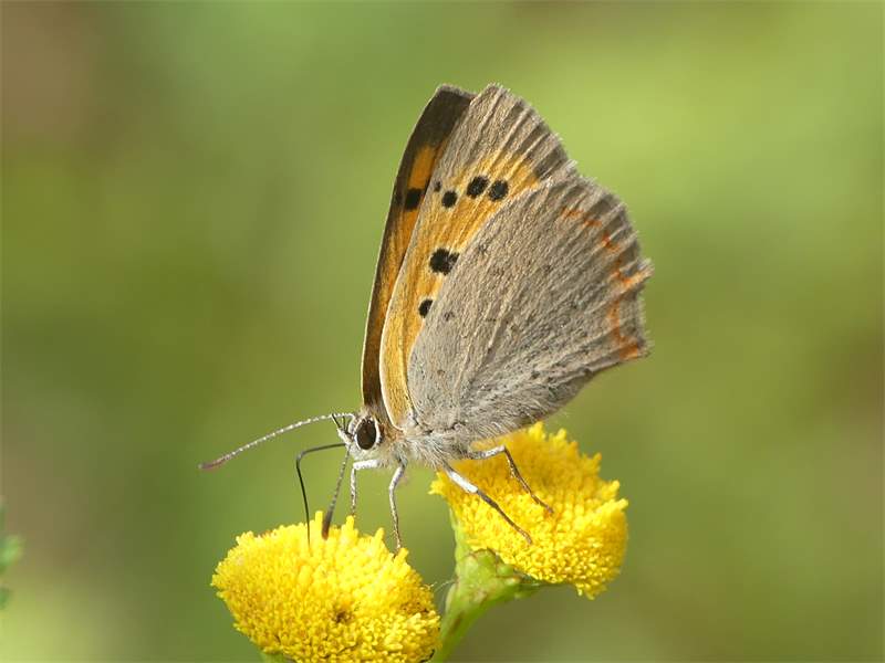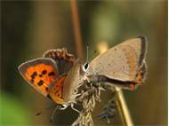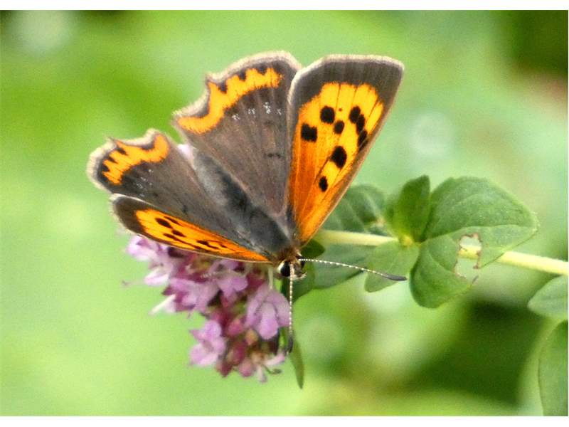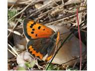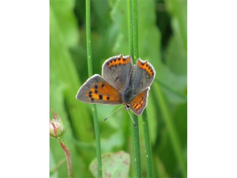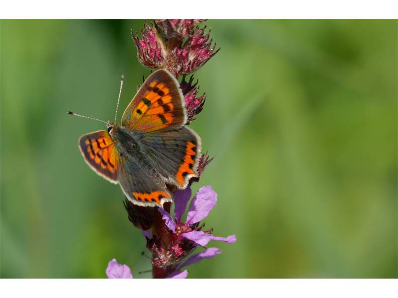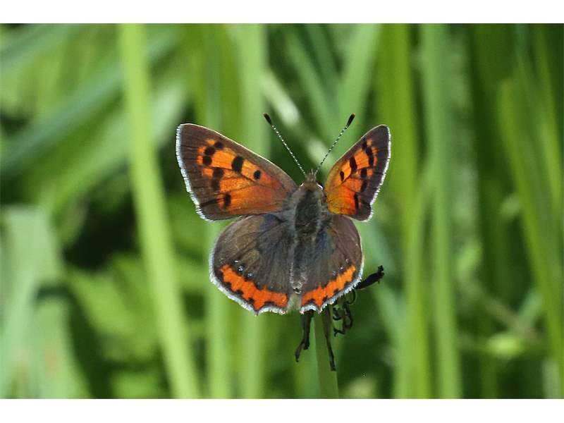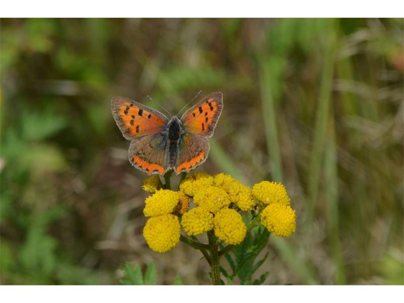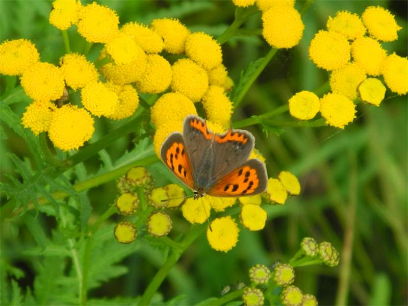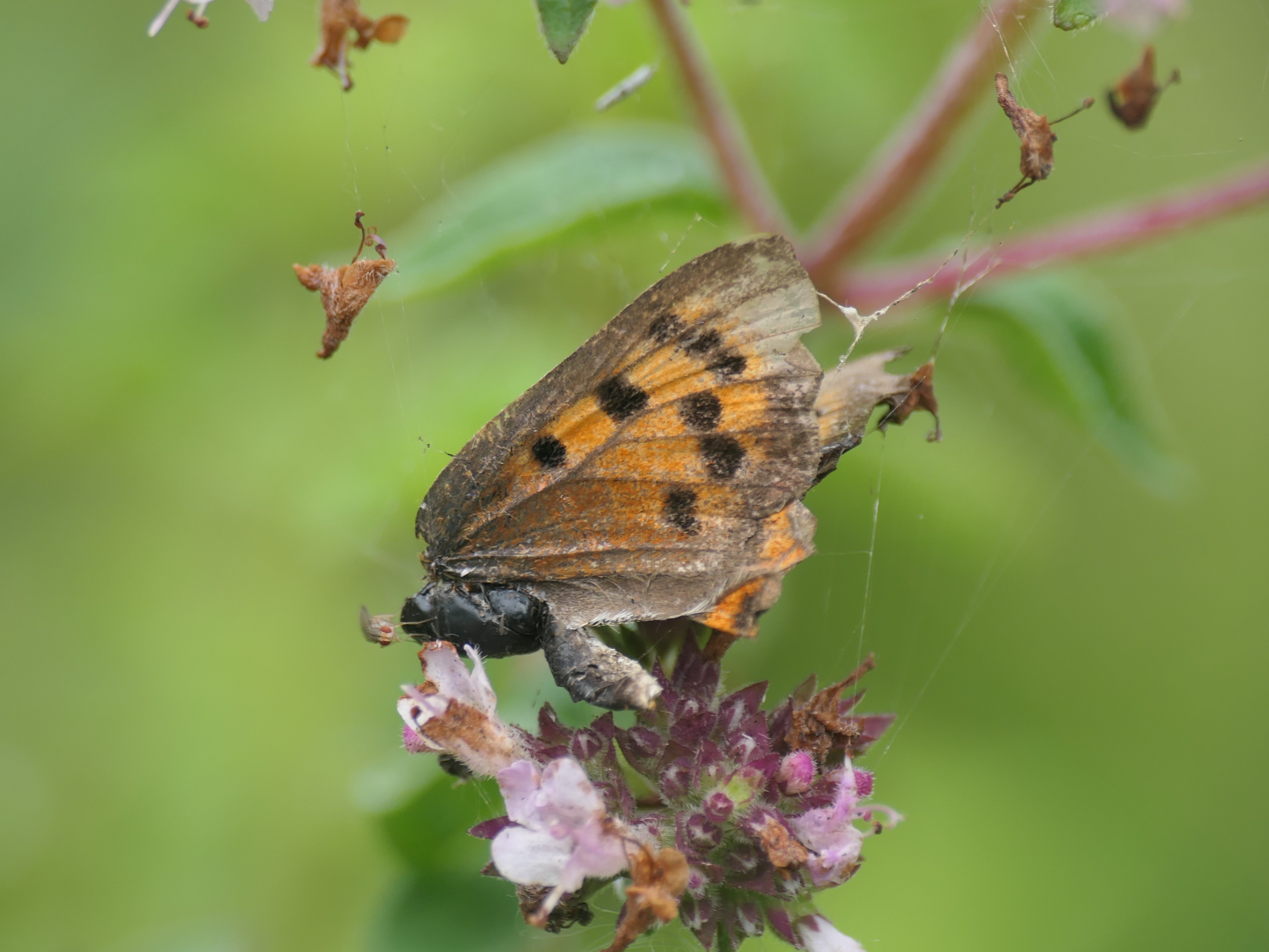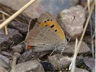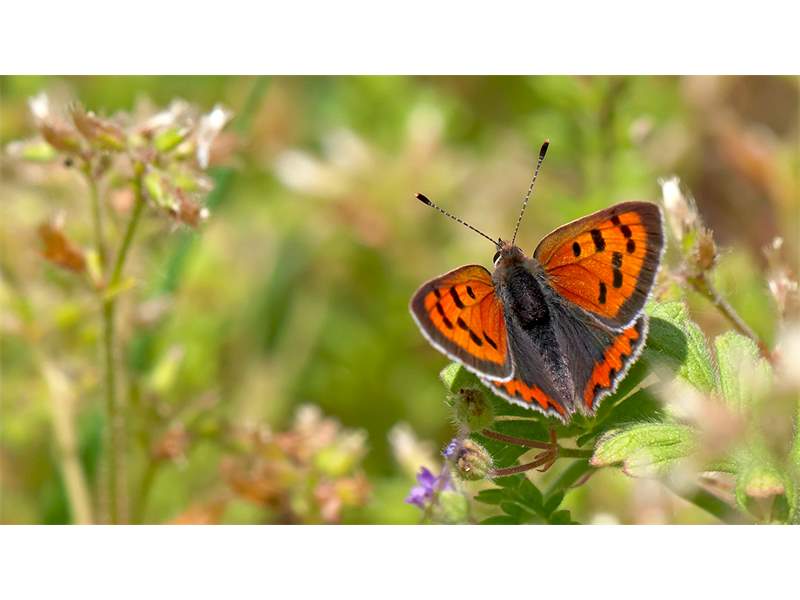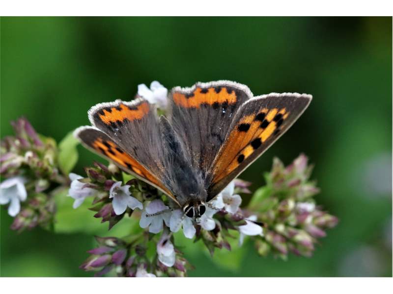 Kleiner Feuerfalter (Lycaena phlaeas (Linnaeus, 1761)), Laue, Rekultivierungsbereich der Tagebaulandschaft Goitzsche östlich vom Seelhausener See, nahe Leipzig, 16. Juni 2019