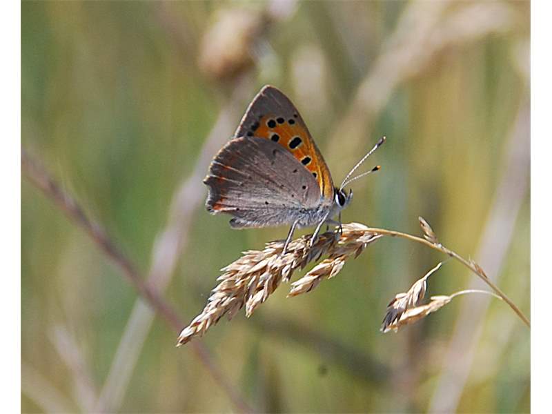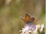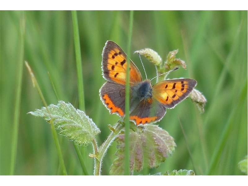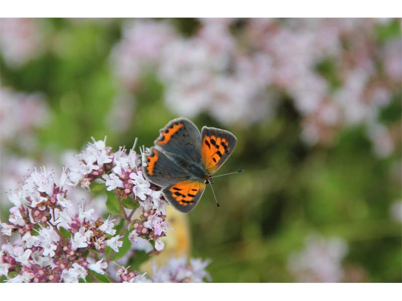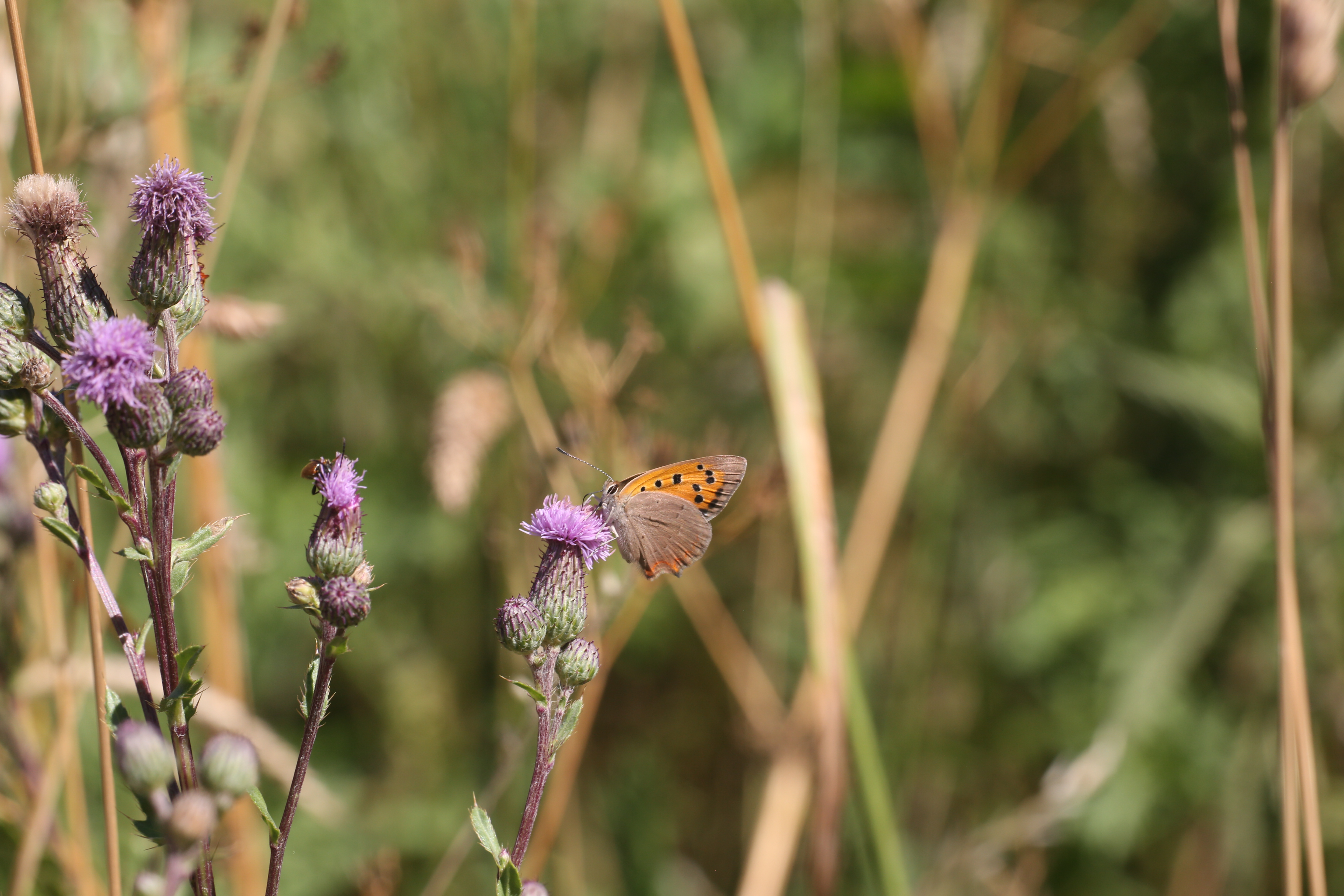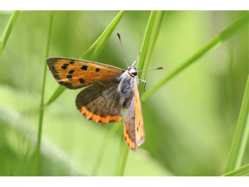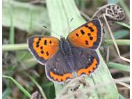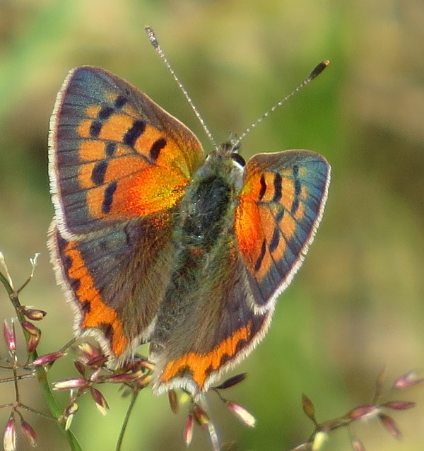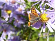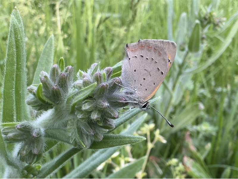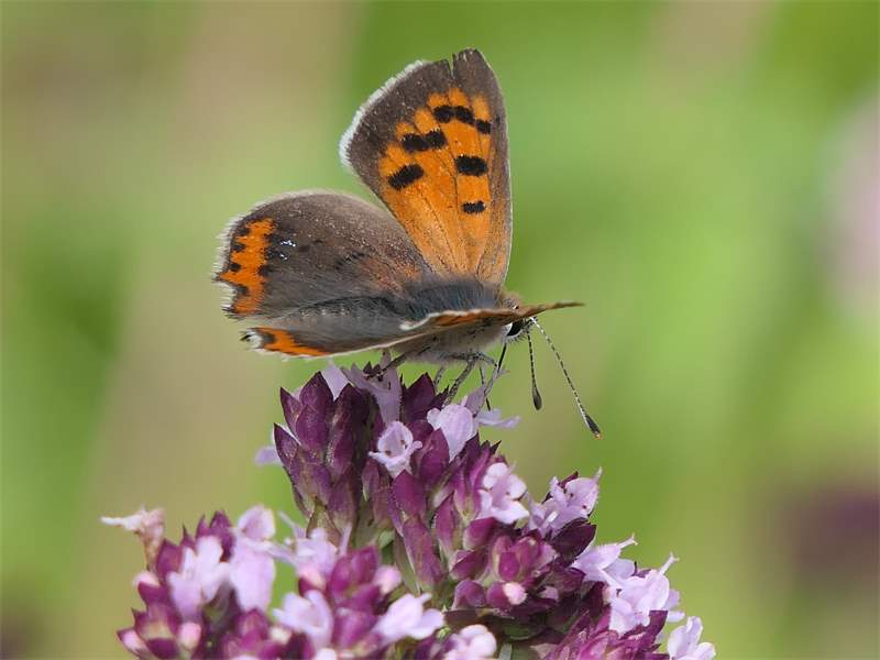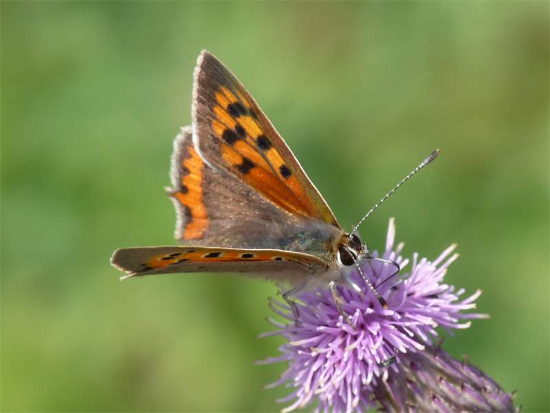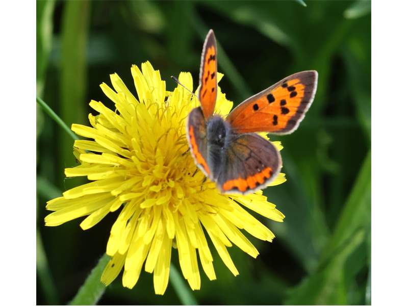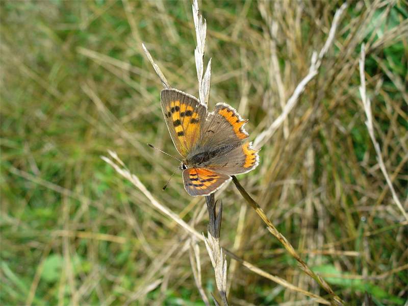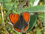 Kleiner Feuerfalter (Lycaena phlaeas (Linnaeus, 1761)), Laue, Rekultivierungsbereich der Tagebaulandschaft Goitzsche östlich vom Seelhausener See, nahe Leipzig, 16. Juni 2019