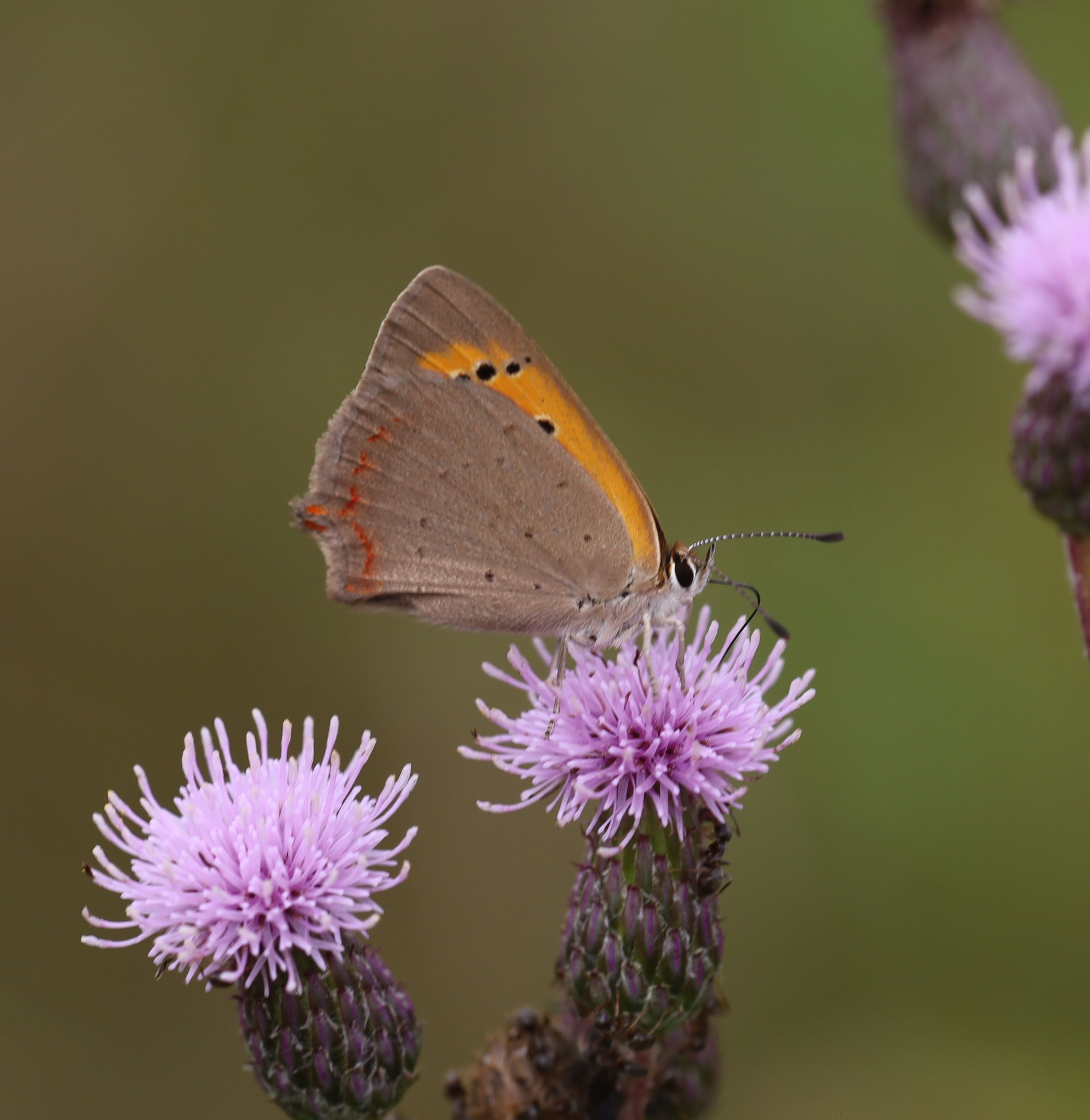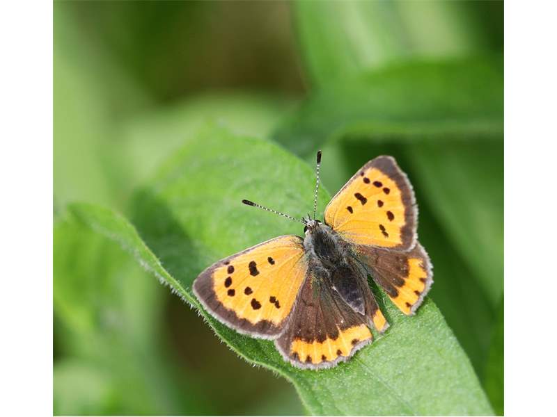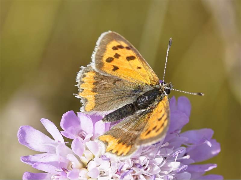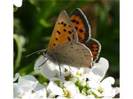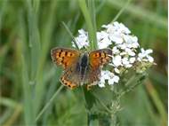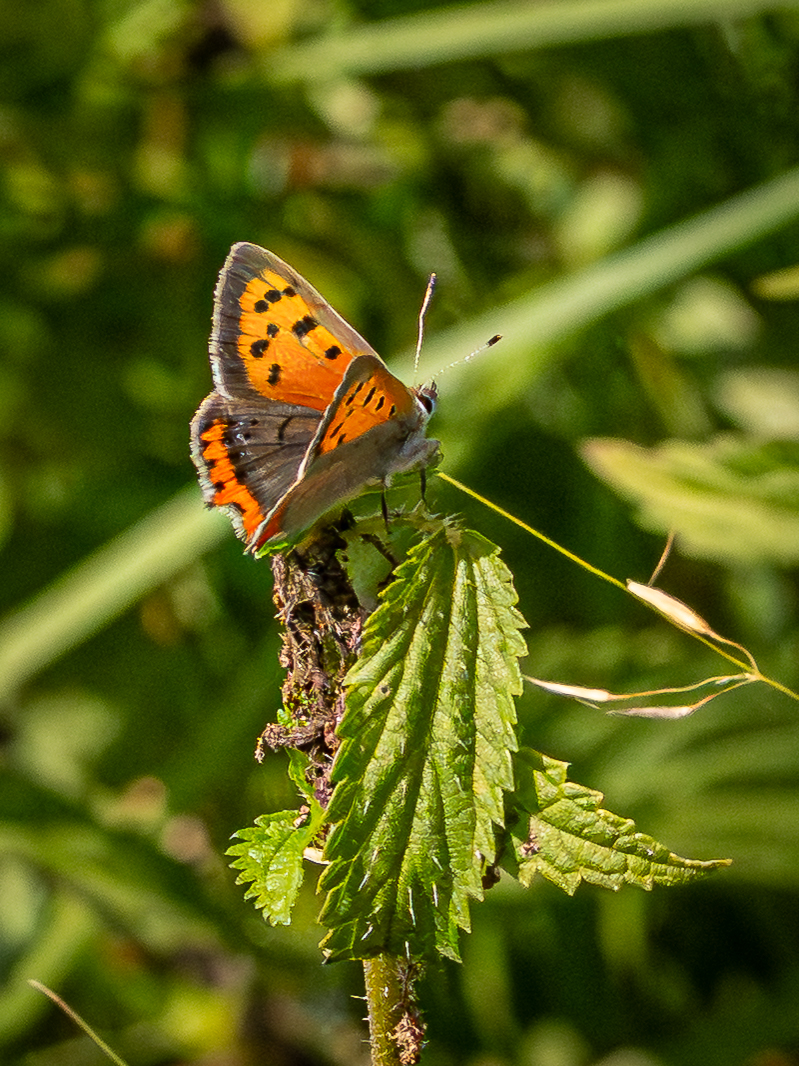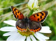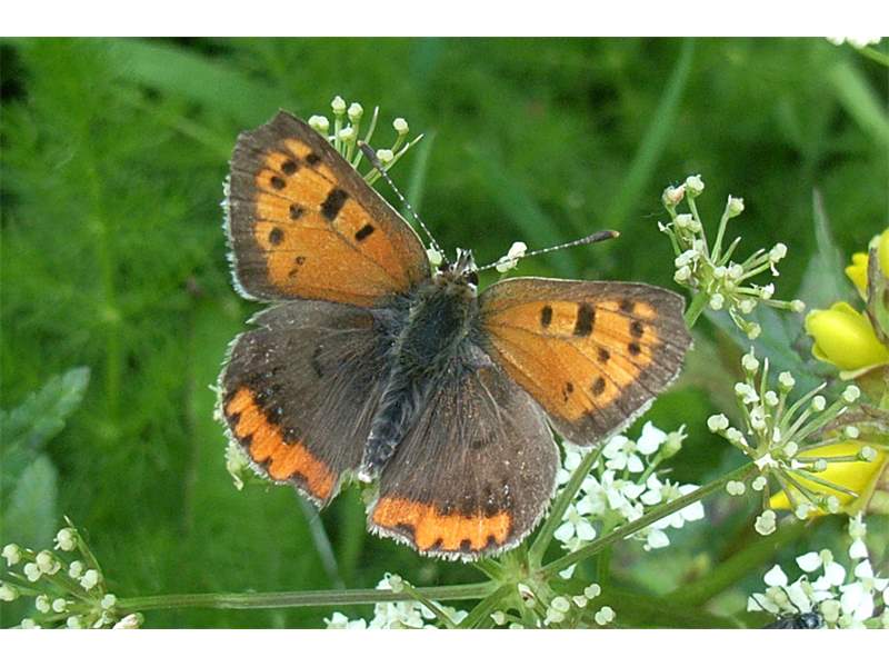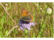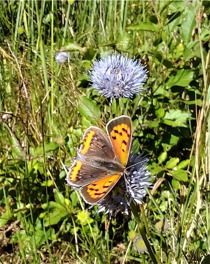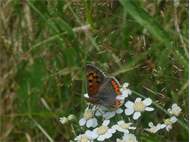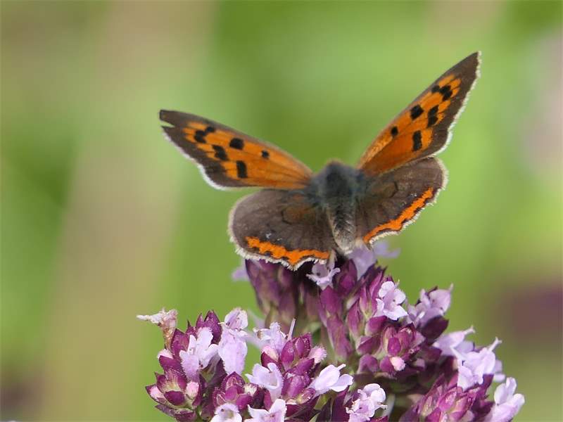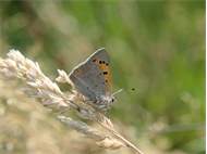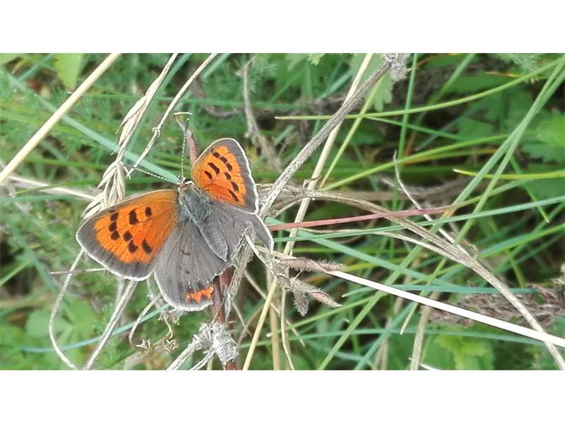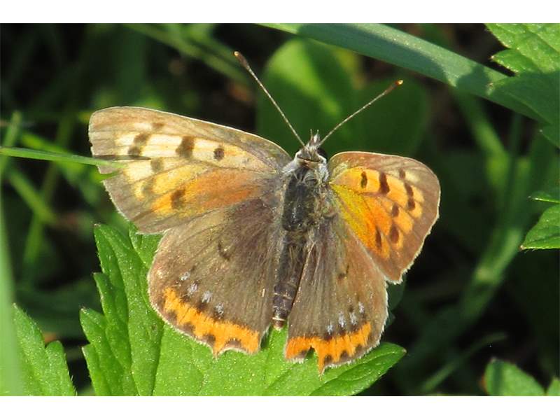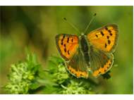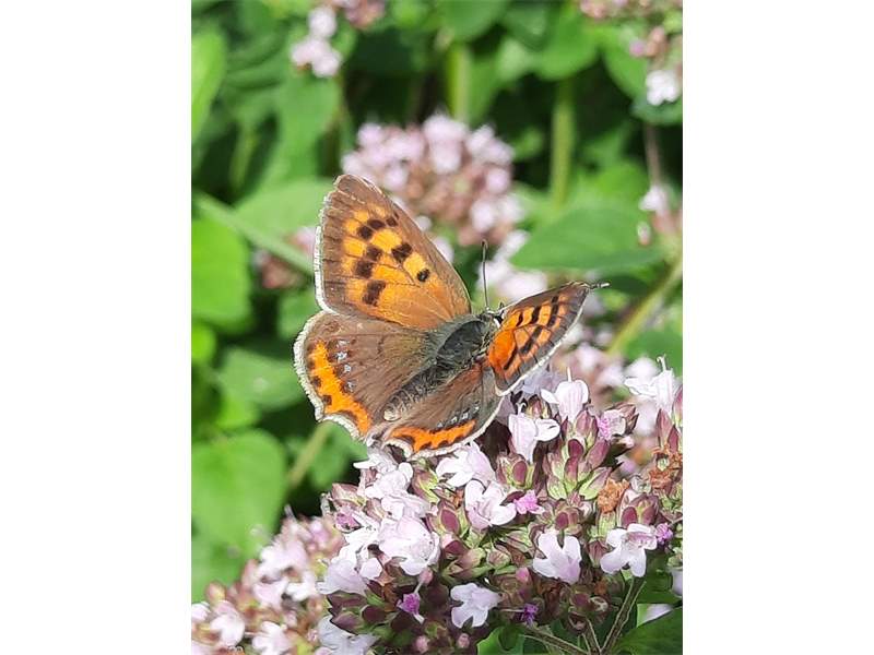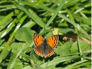 Kleiner Feuerfalter (Lycaena phlaeas (Linnaeus, 1761)), Laue, Rekultivierungsbereich der Tagebaulandschaft Goitzsche östlich vom Seelhausener See, nahe Leipzig, 16. Juni 2019