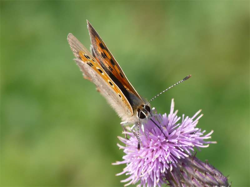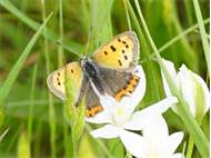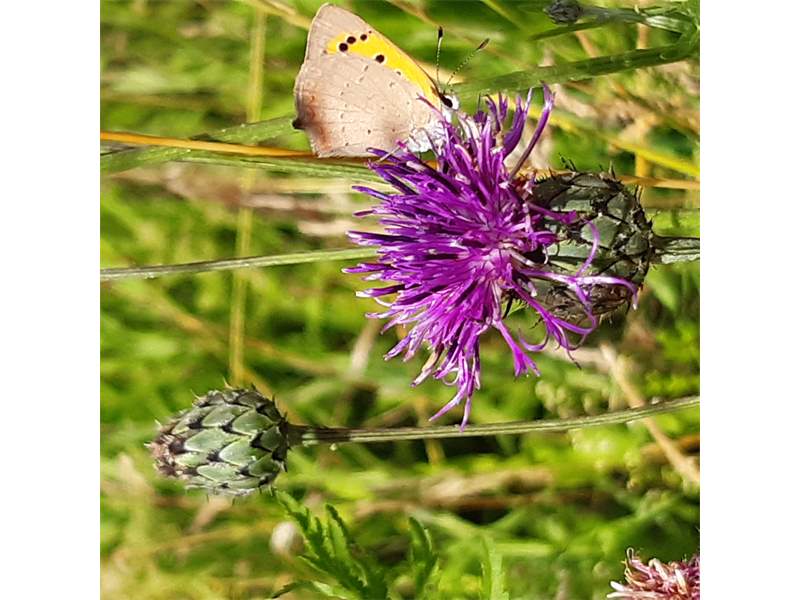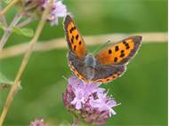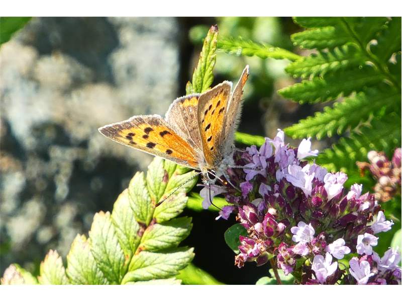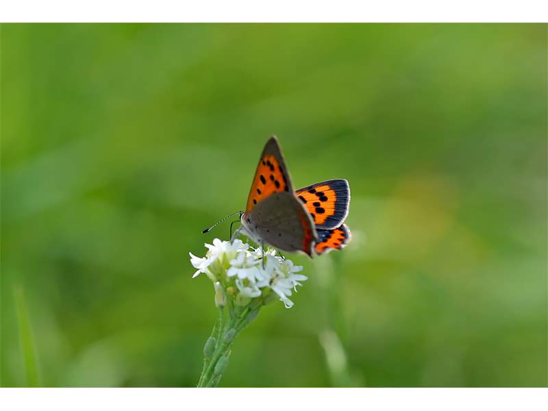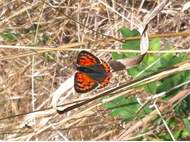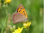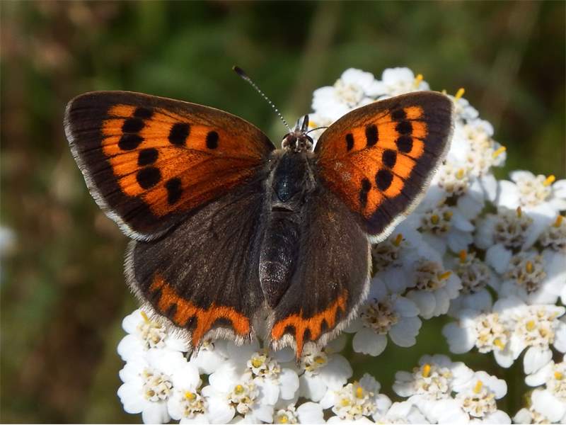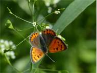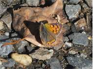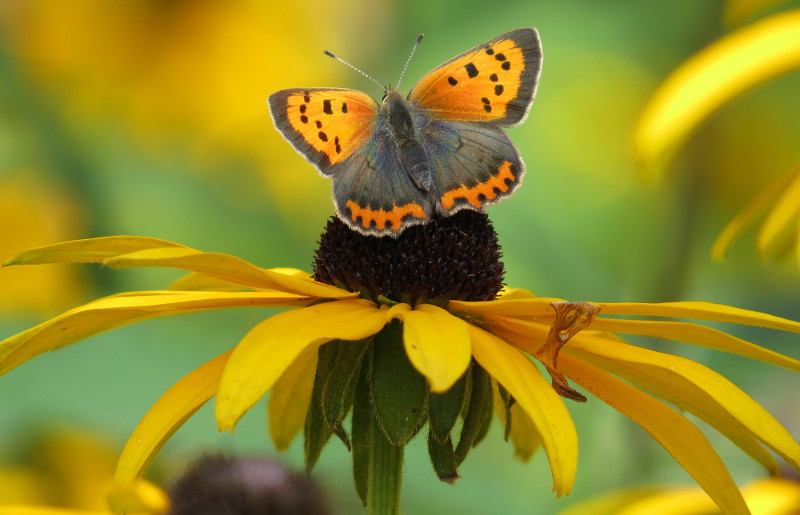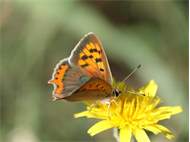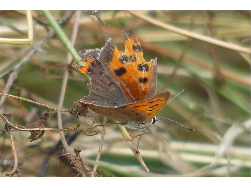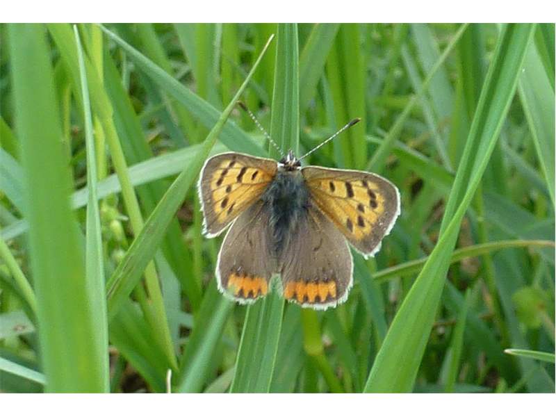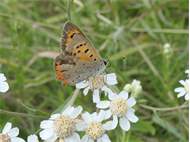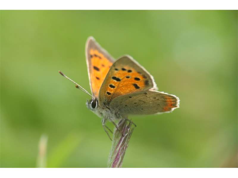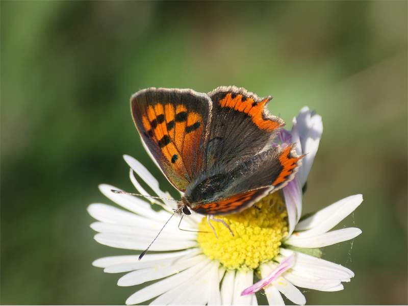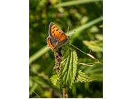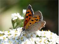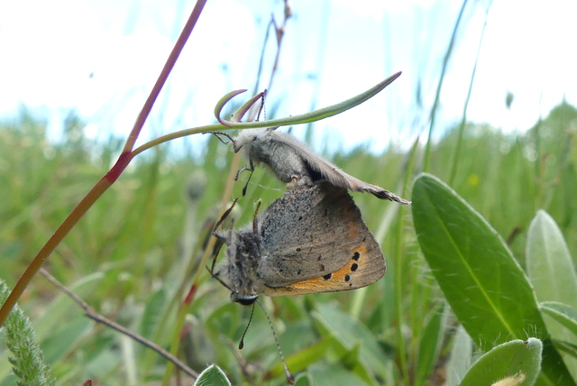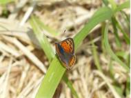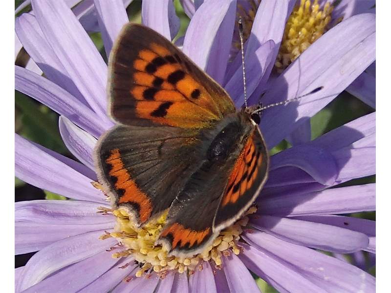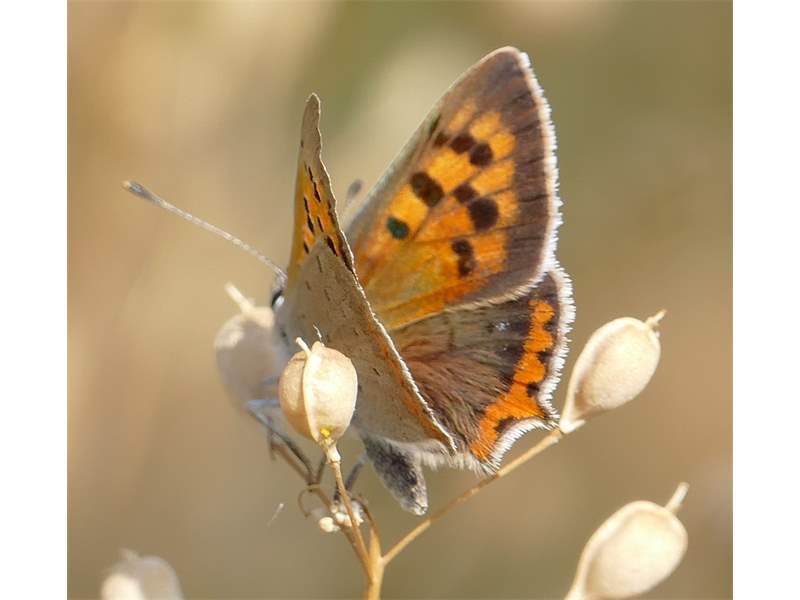 Kleiner Feuerfalter (Lycaena phlaeas (Linnaeus, 1761)), Laue, Rekultivierungsbereich der Tagebaulandschaft Goitzsche östlich vom Seelhausener See, nahe Leipzig, 16. Juni 2019