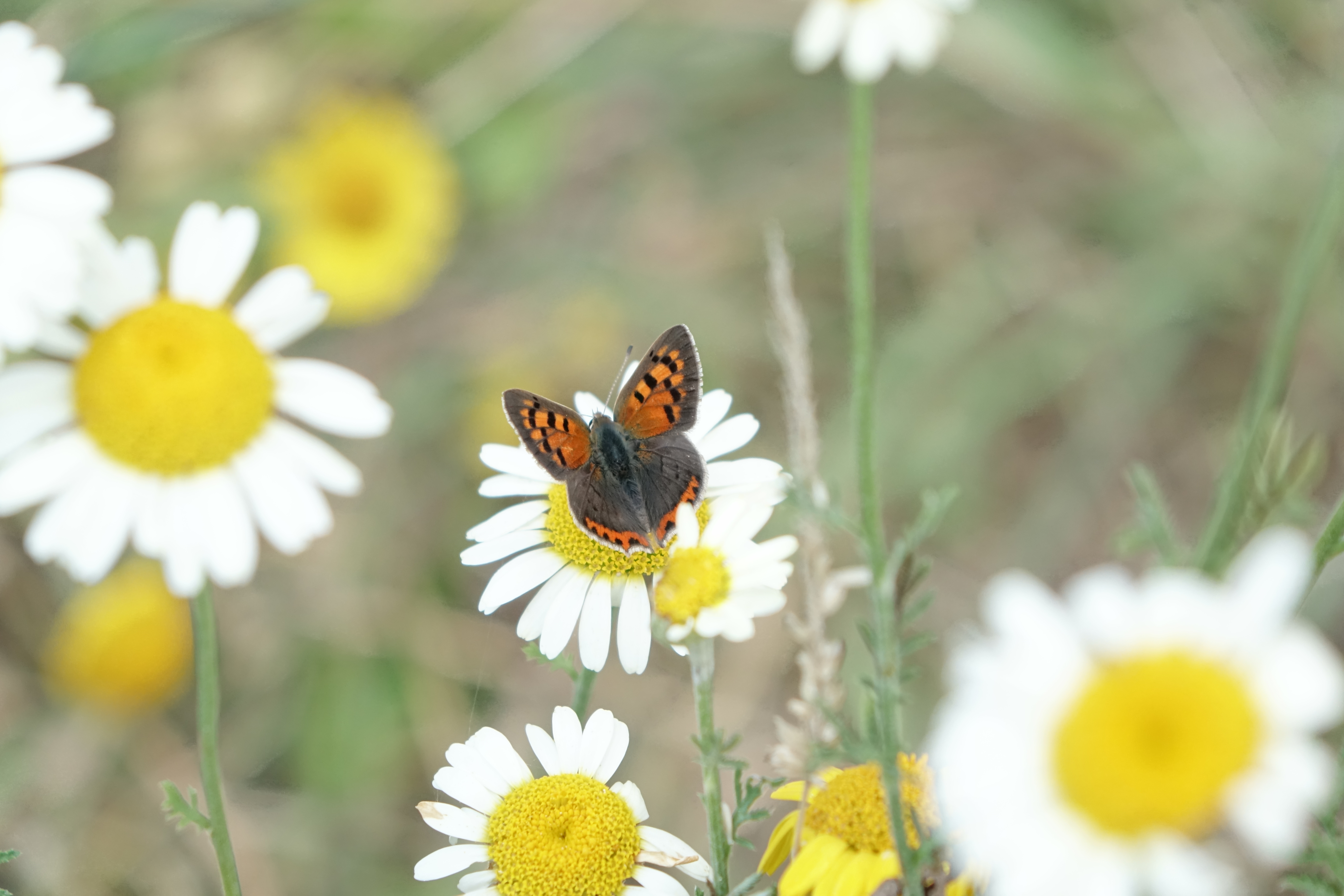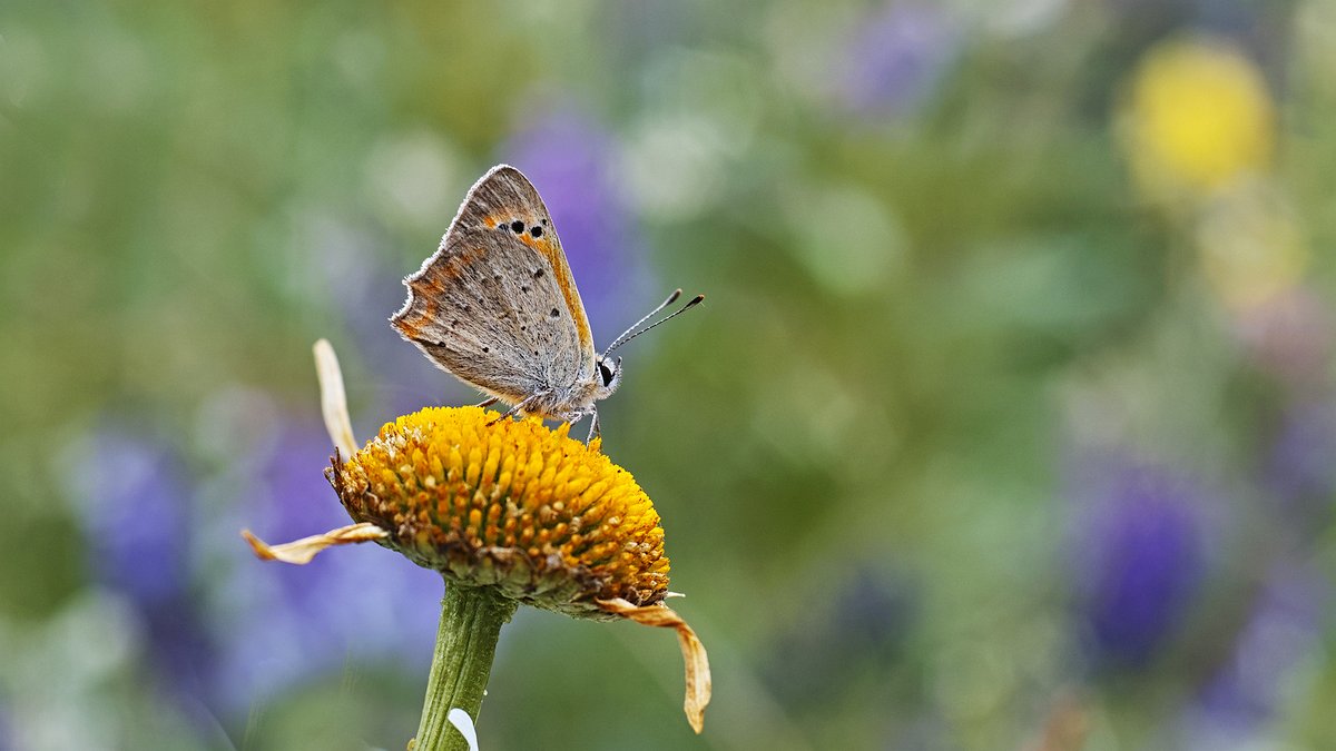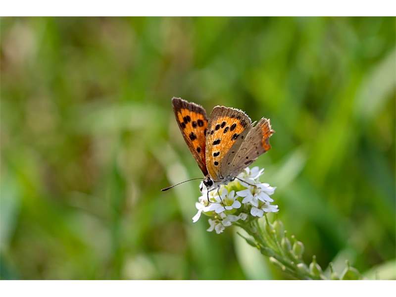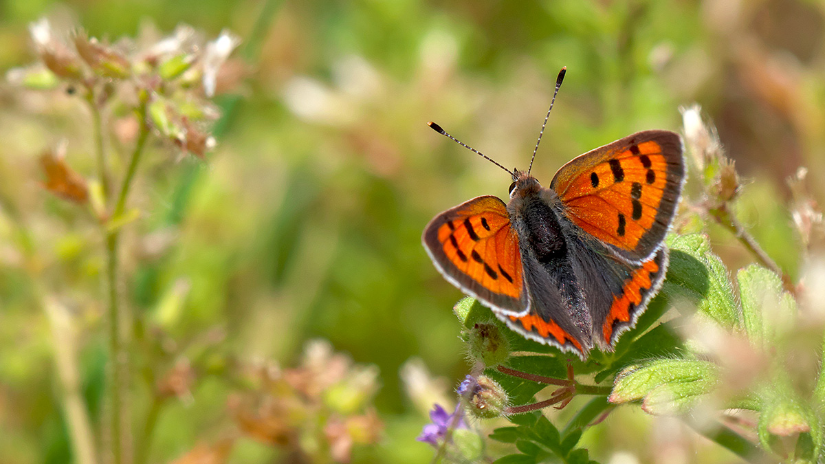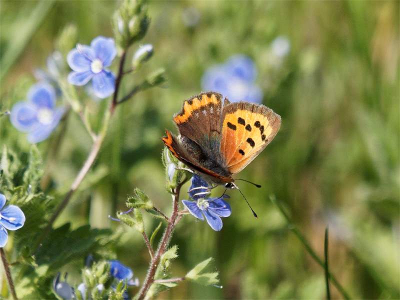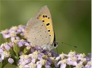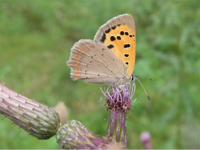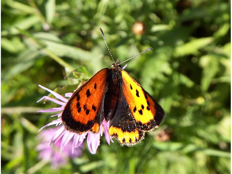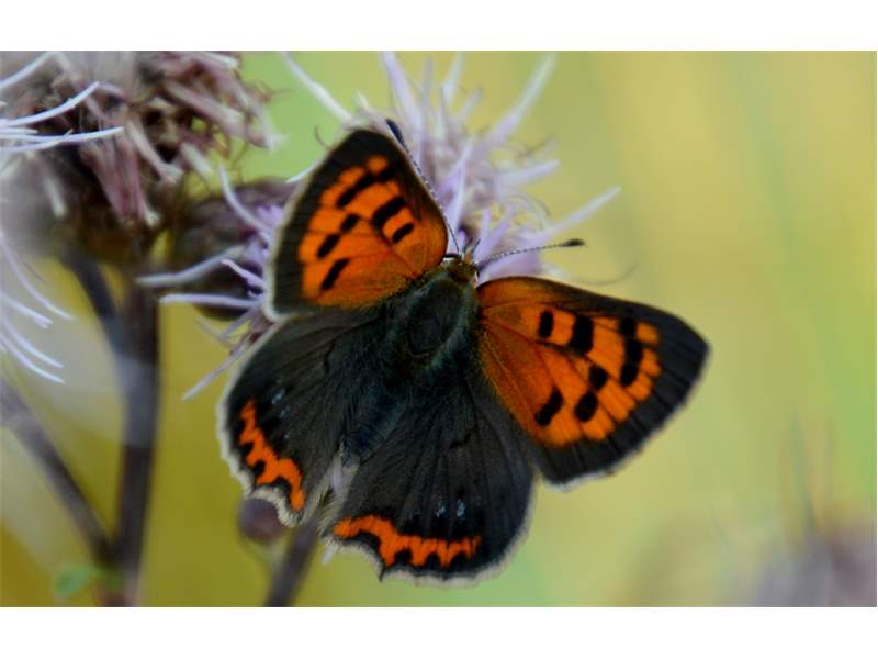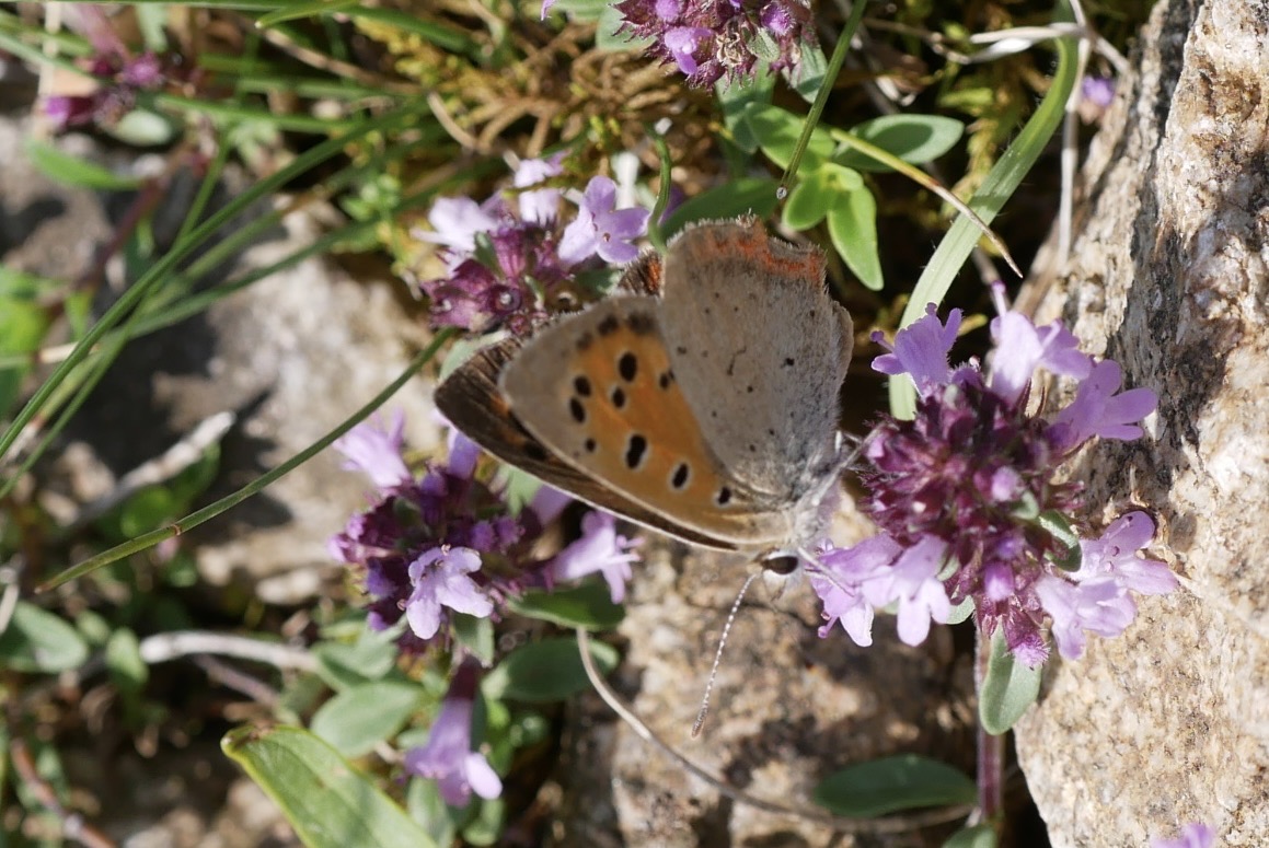 Kleiner Feuerfalter (Lycaena phlaeas (Linnaeus, 1761)), Laue, Rekultivierungsbereich der Tagebaulandschaft Goitzsche östlich vom Seelhausener See, nahe Leipzig, 16. Juni 2019