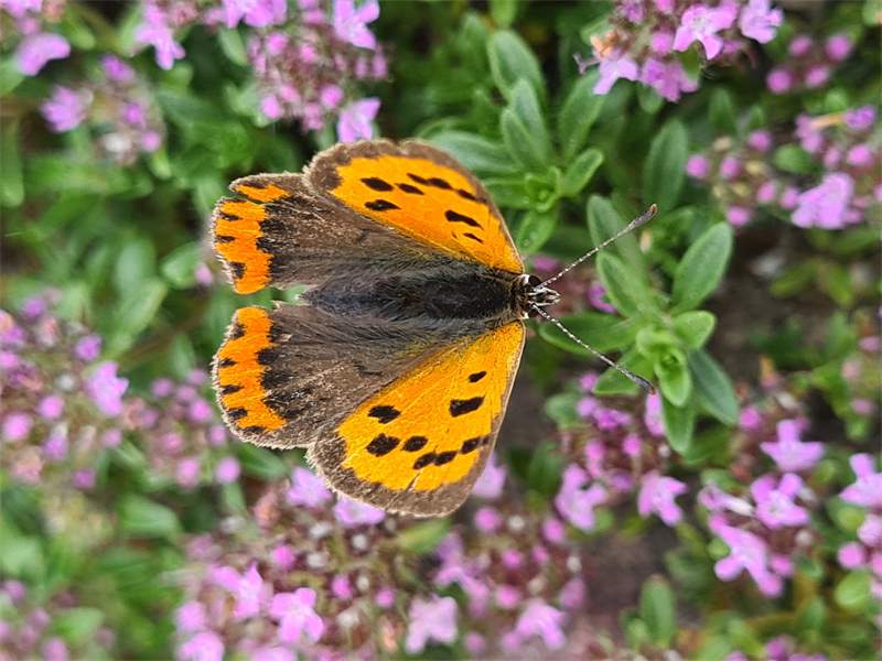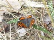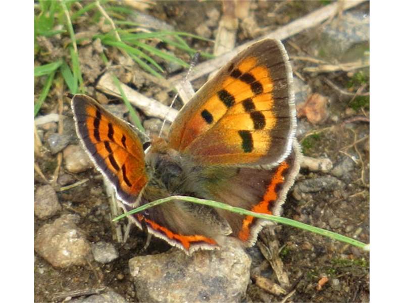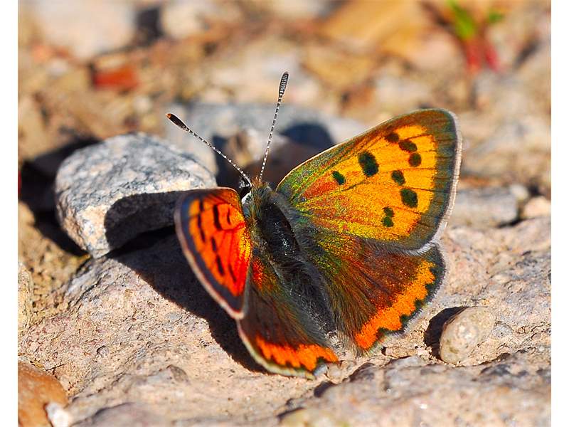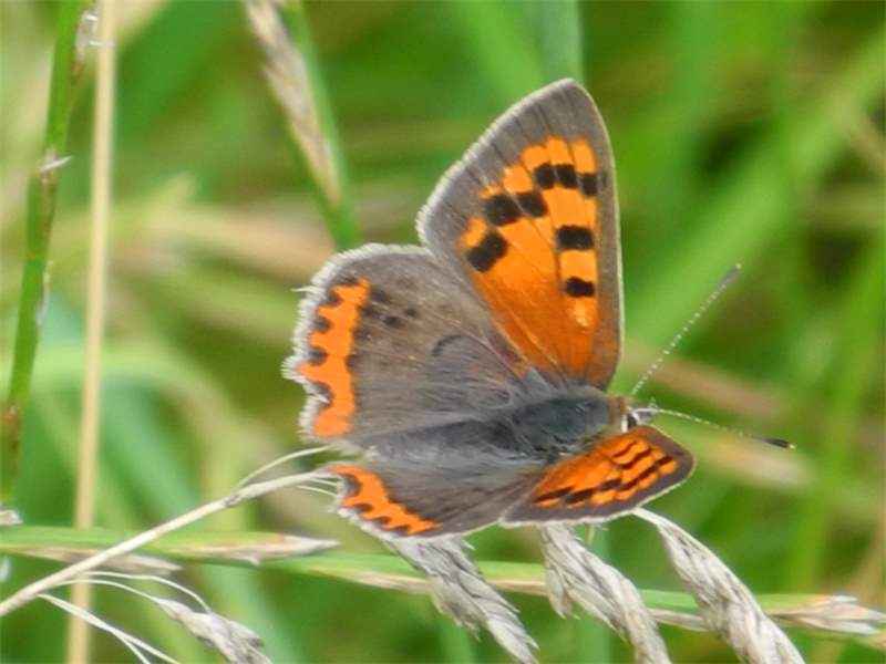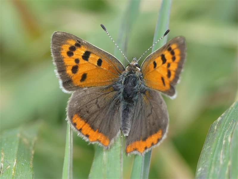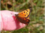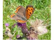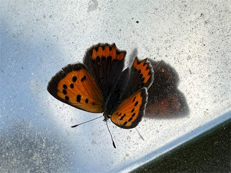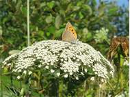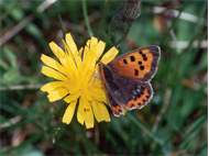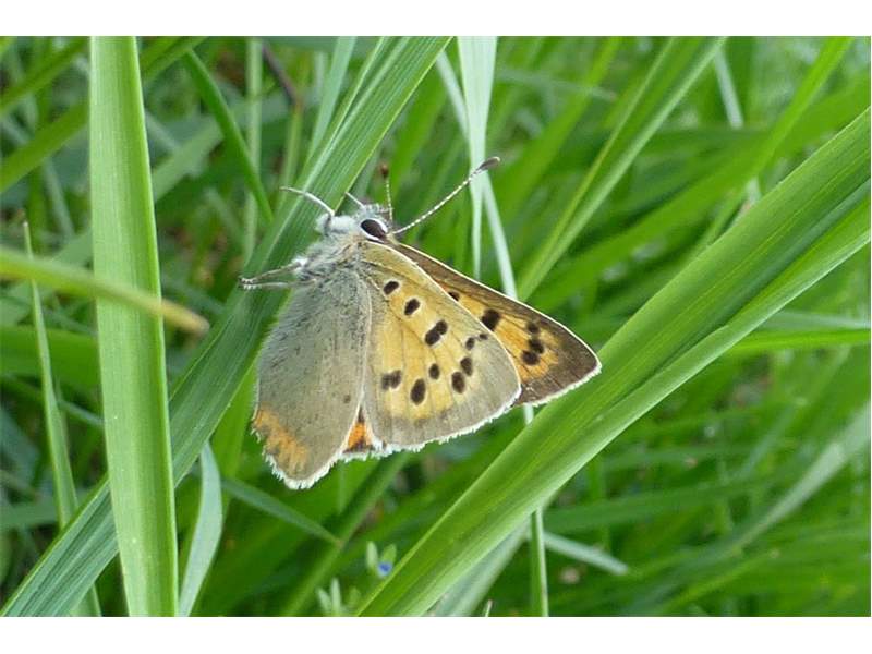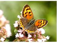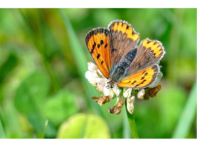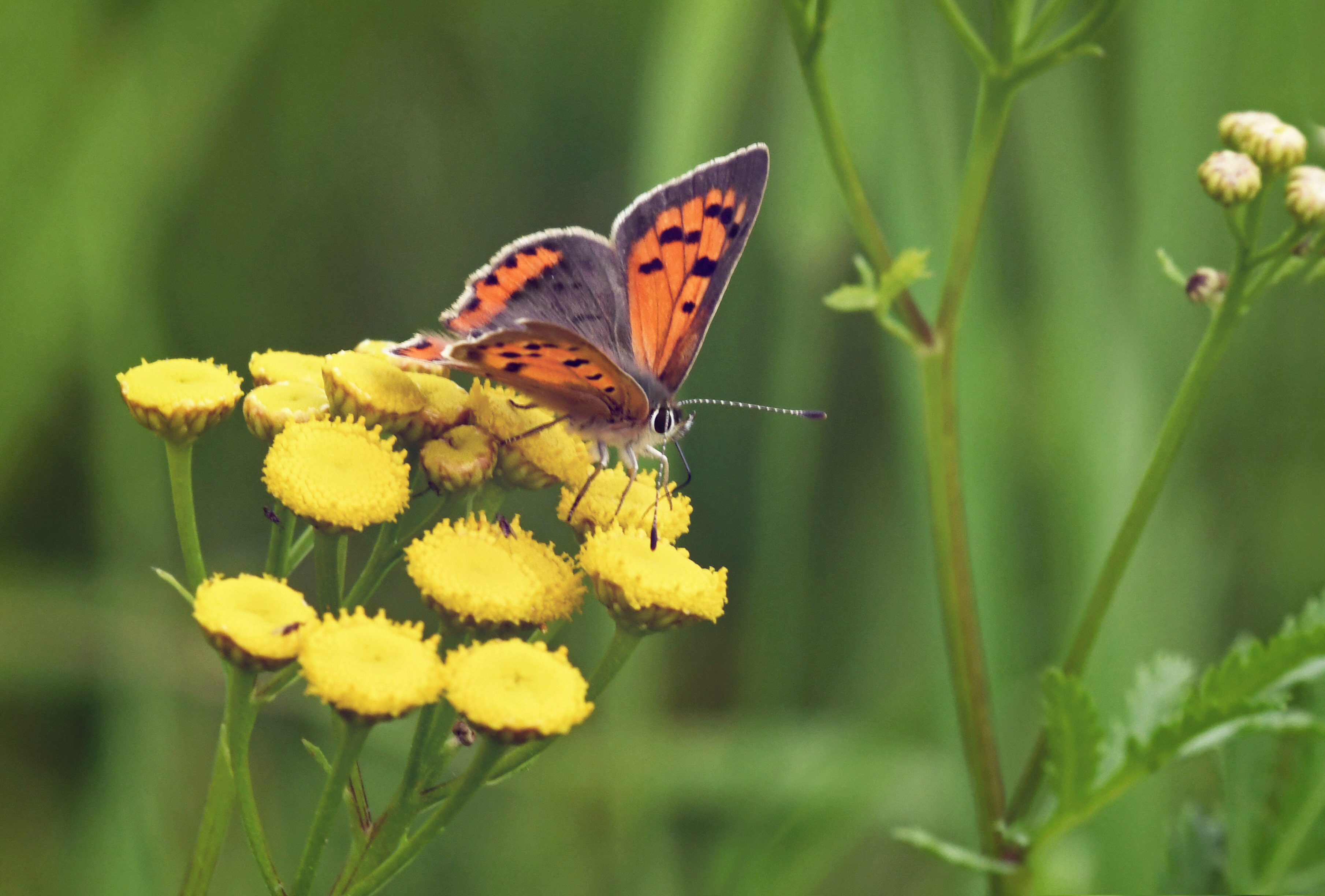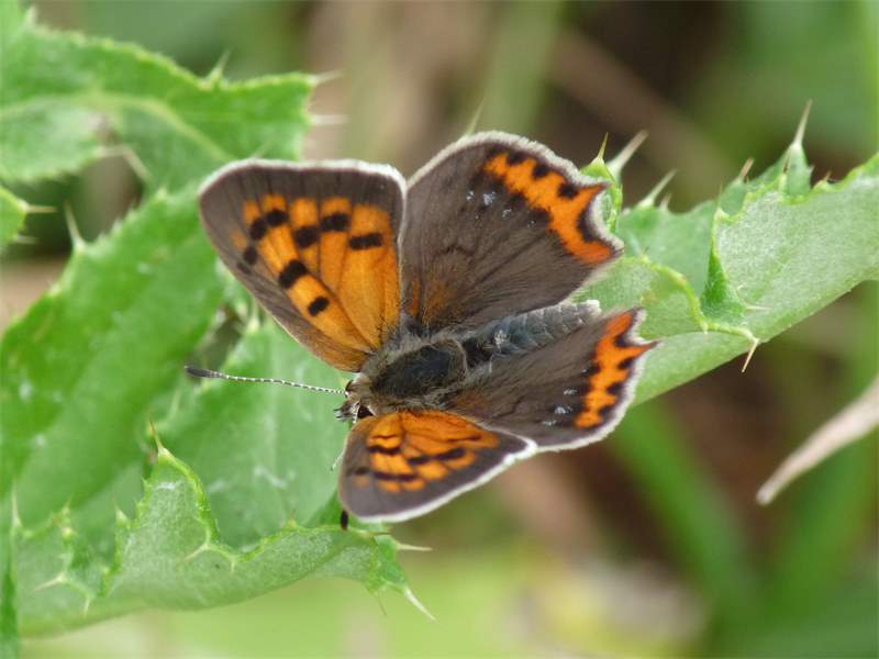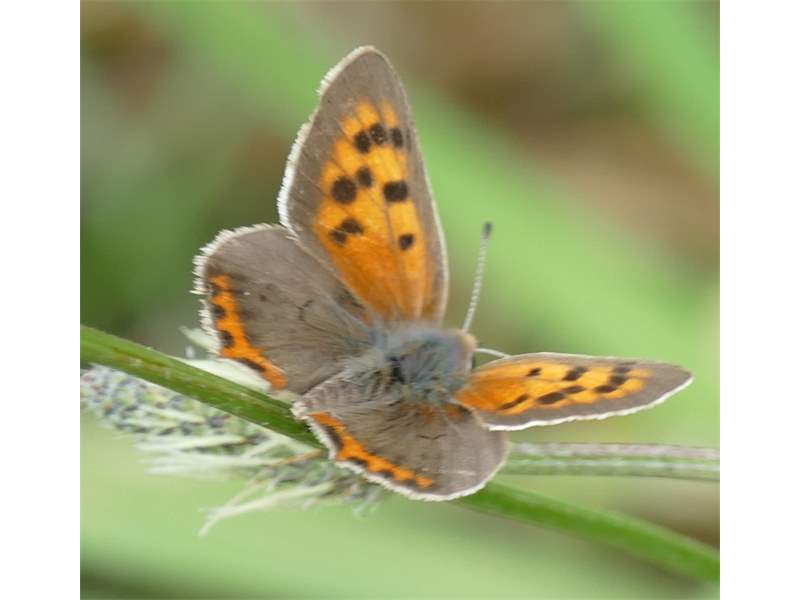 Kleiner Feuerfalter (Lycaena phlaeas (Linnaeus, 1761)), Laue, Rekultivierungsbereich der Tagebaulandschaft Goitzsche östlich vom Seelhausener See, nahe Leipzig, 16. Juni 2019