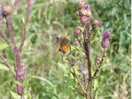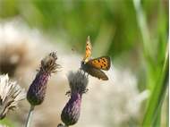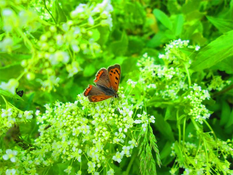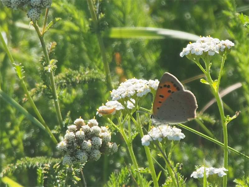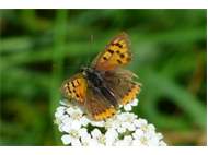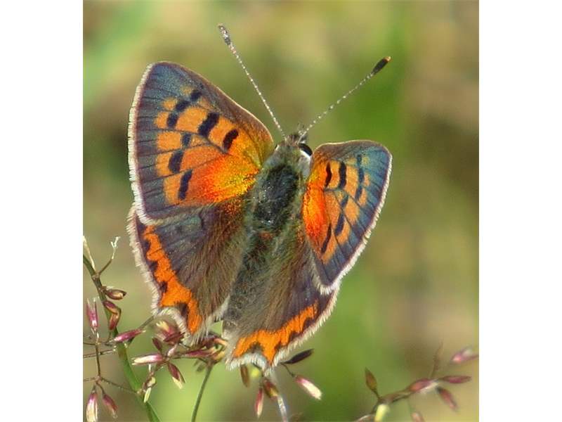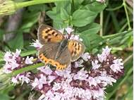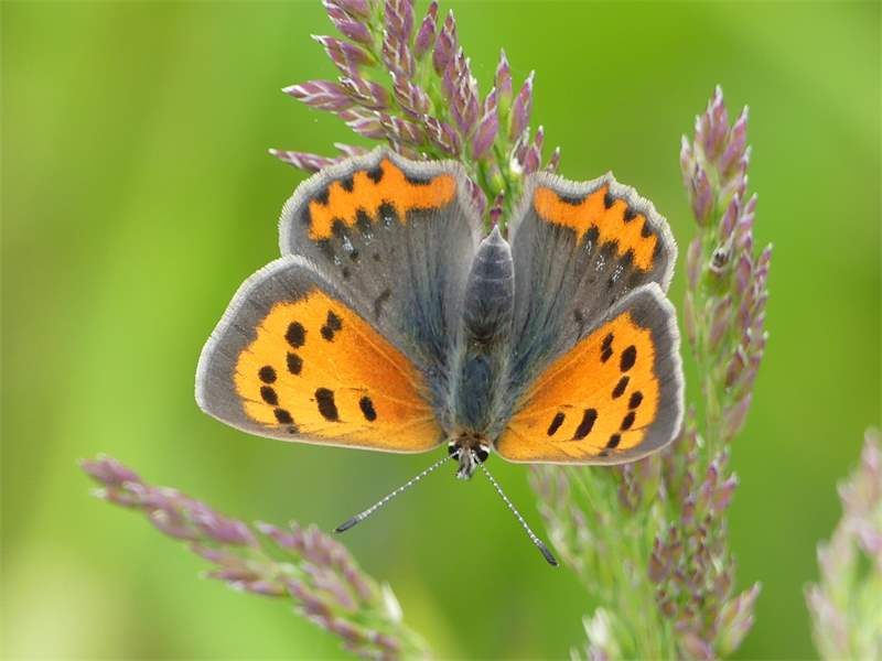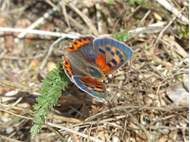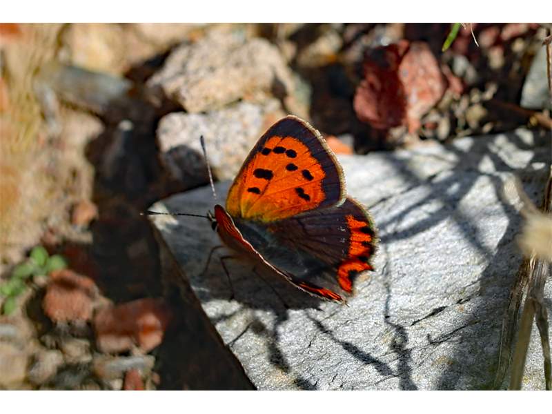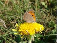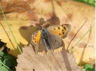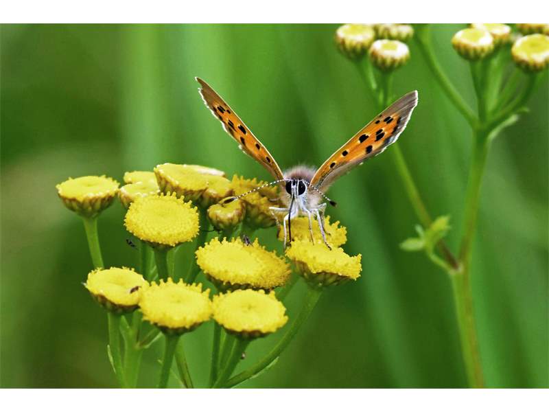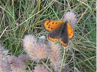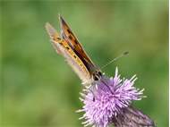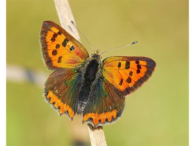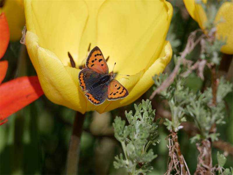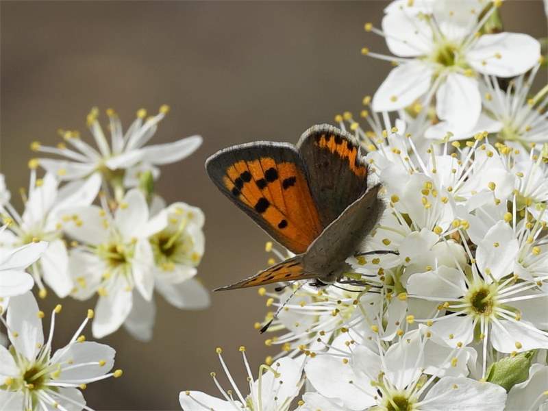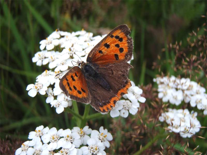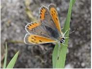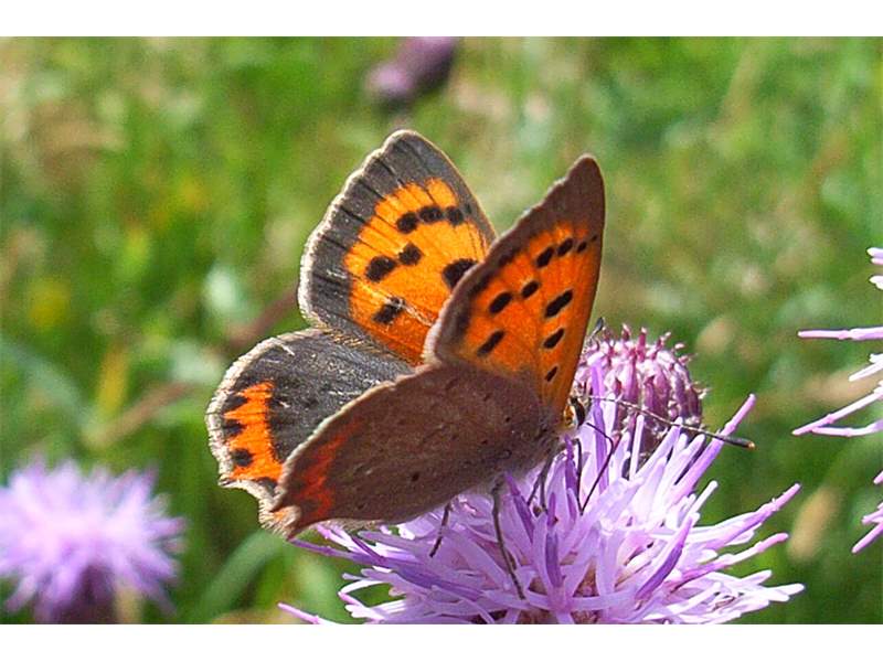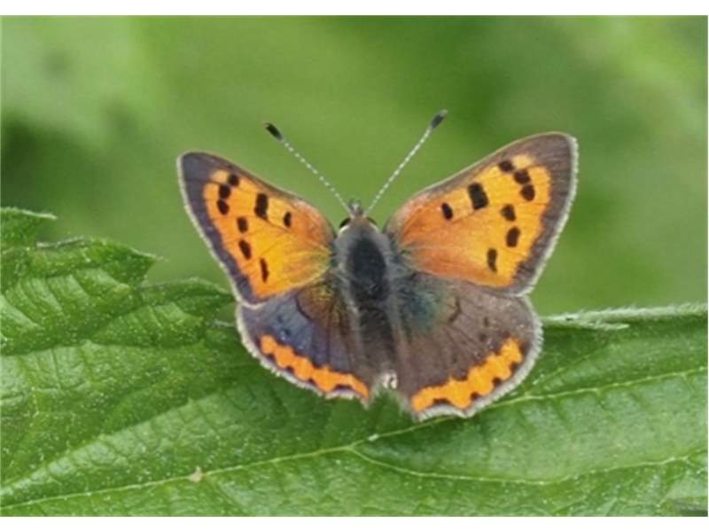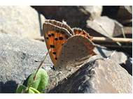 Kleiner Feuerfalter (Lycaena phlaeas (Linnaeus, 1761)), Laue, Rekultivierungsbereich der Tagebaulandschaft Goitzsche östlich vom Seelhausener See, nahe Leipzig, 16. Juni 2019