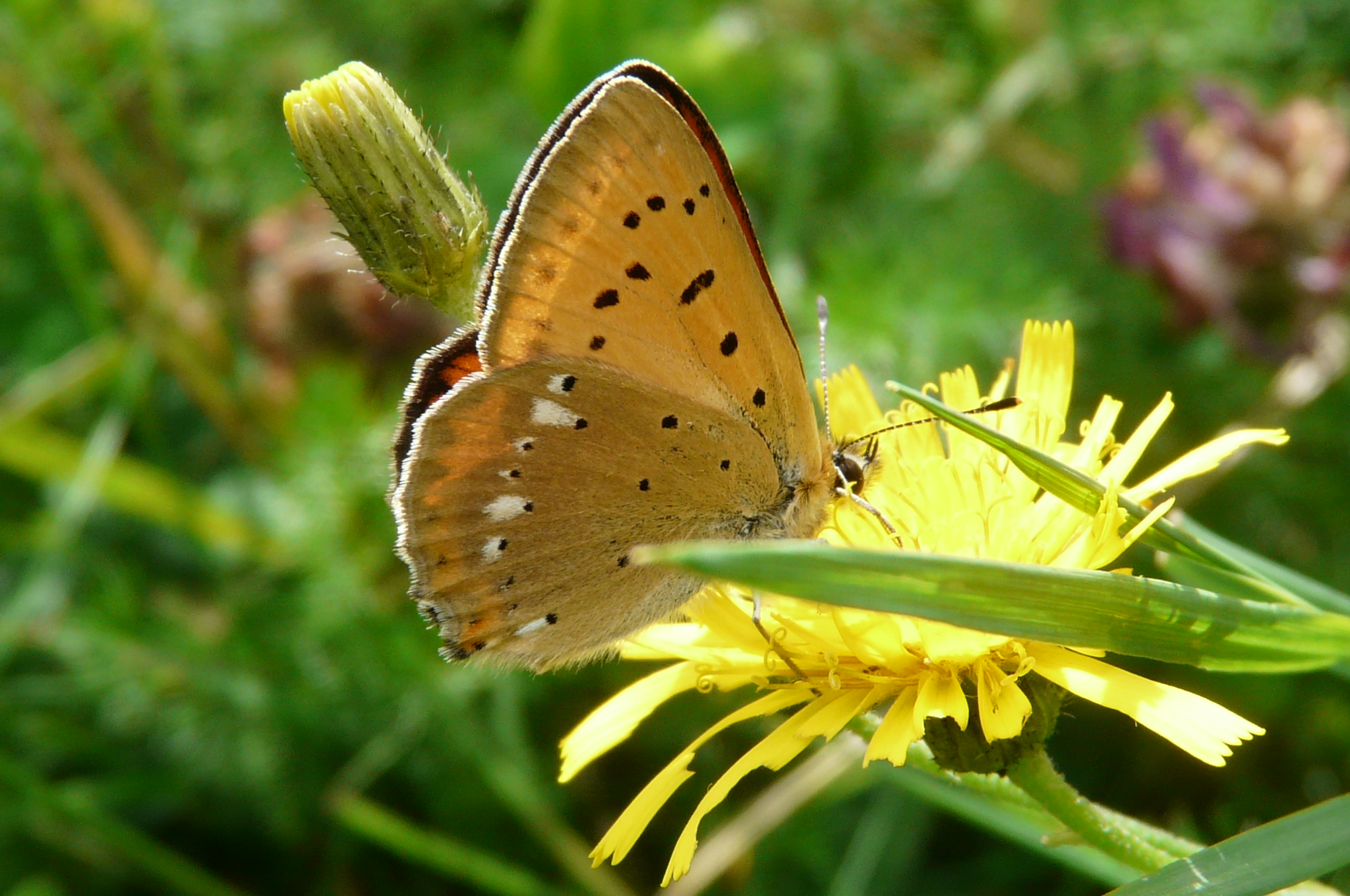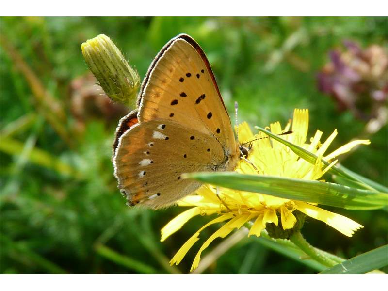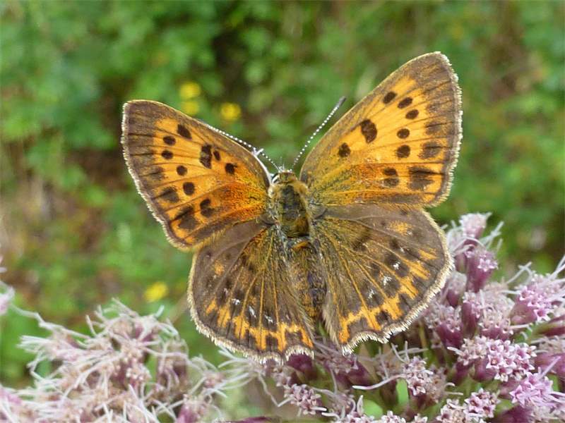Ähnliche Art: Vorderflügeloberseiten des Großen Feuerfalters (Lycaena dispar) beim Männchen meist mit schwarzem Mittelpunkt, beim Weibchen mit regelmäßiger schwarzer Punktreihe; Hinterflügel unterseits bläulich weiß mit schwarzen Punkten und einer orangen Binde vor dem Flügelrand.