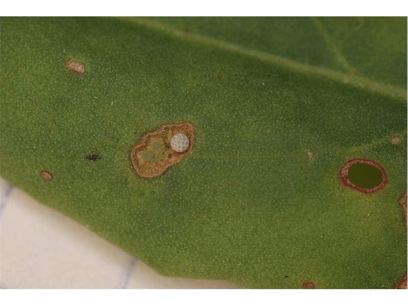 Ei des Schwefelvögelchens aus einer Zucht von Faltern aus der Region der Oberlausitz, Juni 2014 (Studioaufnahme) (© Susanne Kurze)( Bild vergrößern)