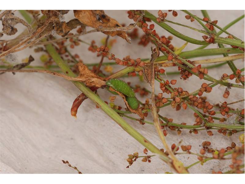 Larven des Schwefelvögelchens aus einer Zucht von Faltern aus der Region der Oberlausitz, Juli 2014 (Studioaufnahmen)