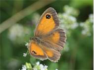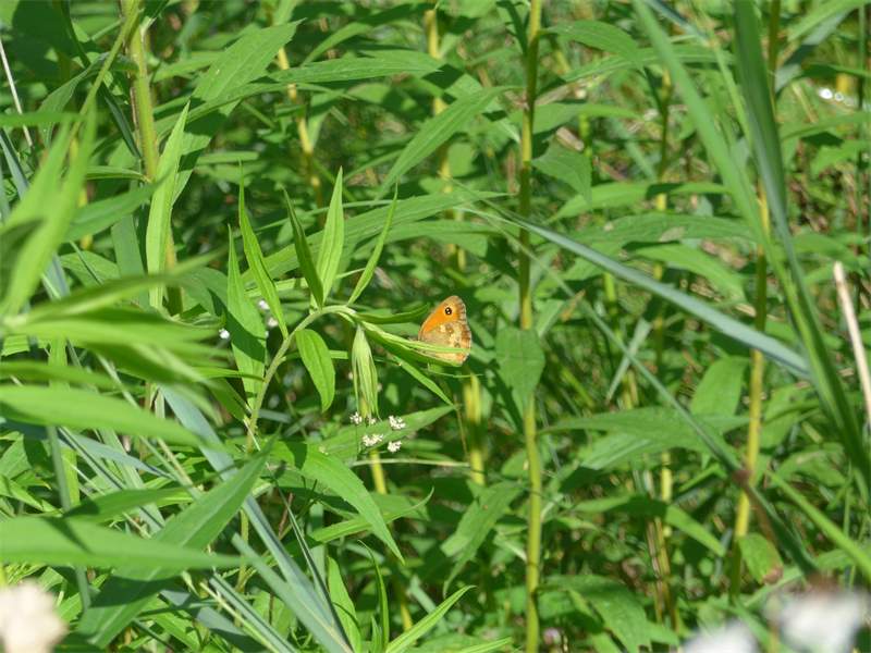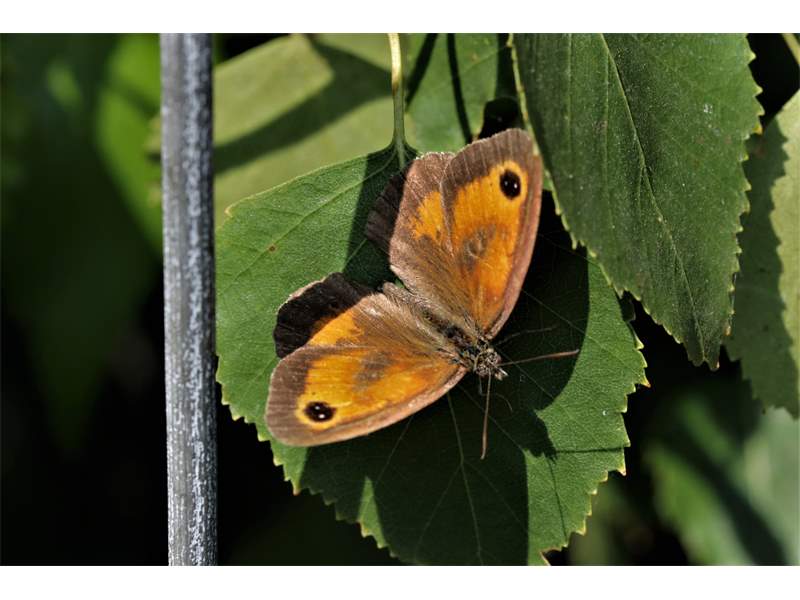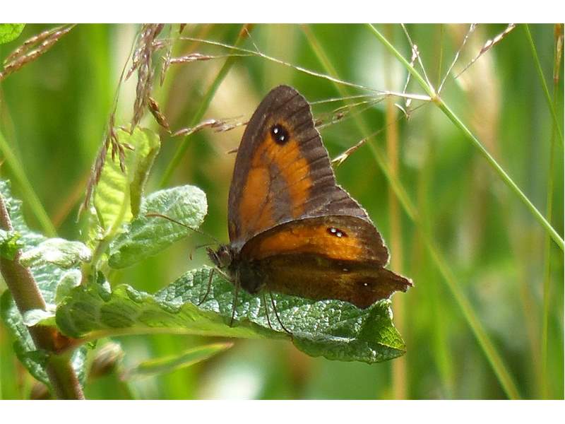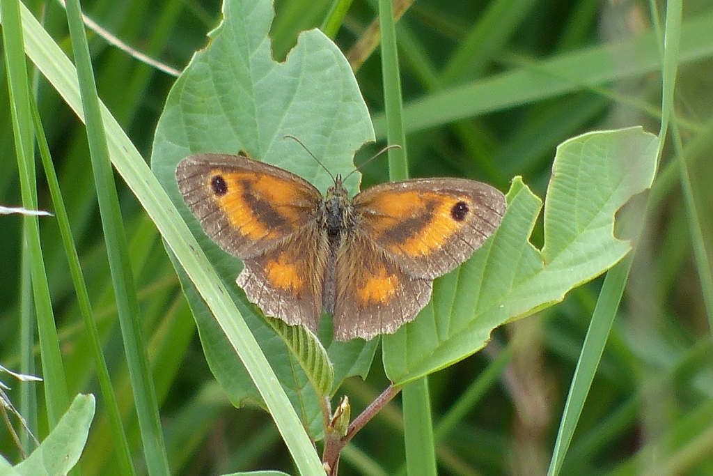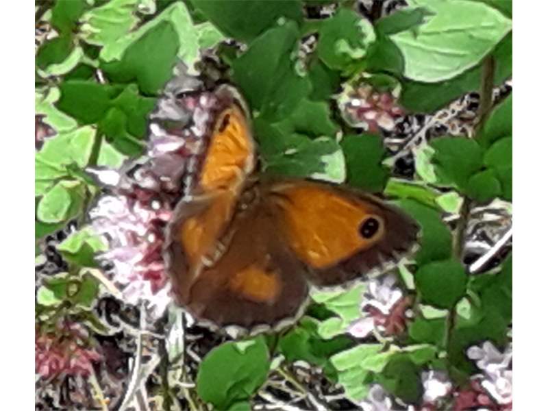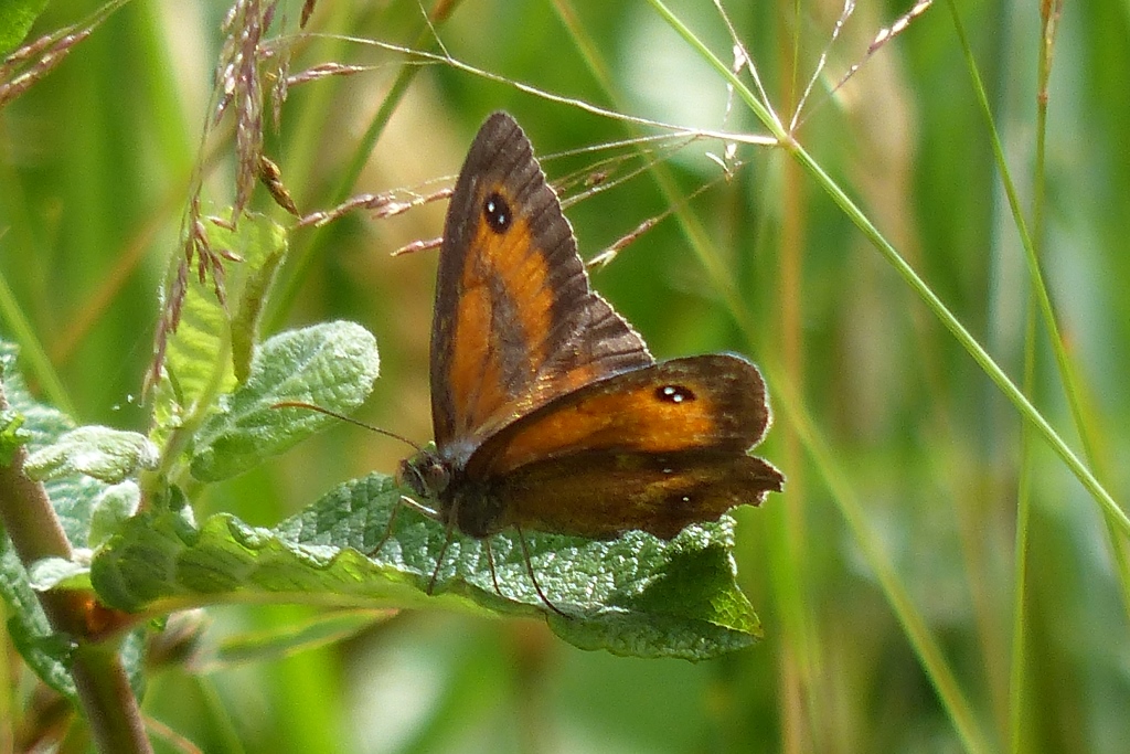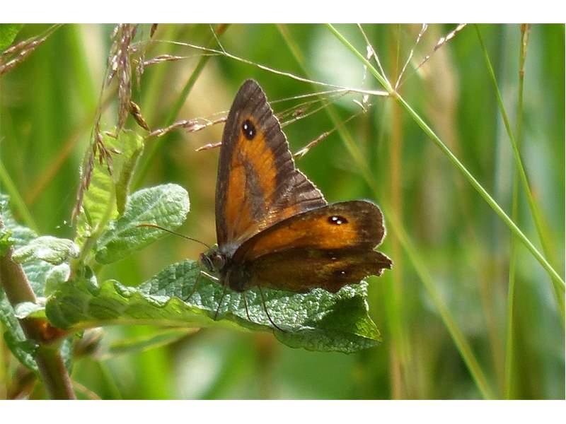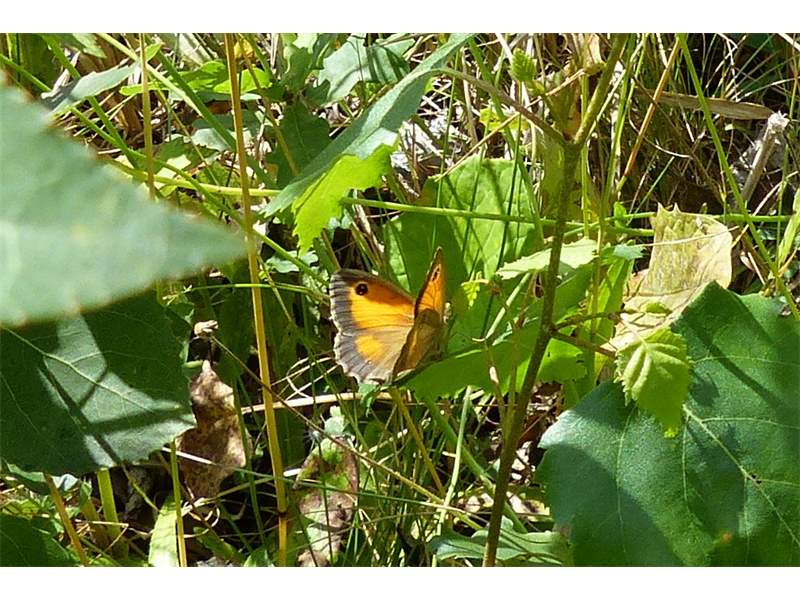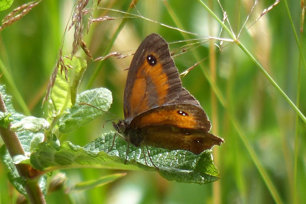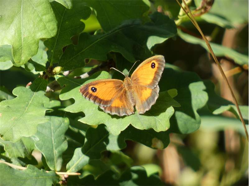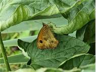 Rotbraunes Ochsenauge (Pyronia tithonus (Linnaeus, 1767)) Anfang Juli 2019, Bröthener Heide, nahe Hoyerswerda, am Bahndamm (© Martina Görner)( Bild vergrößern)