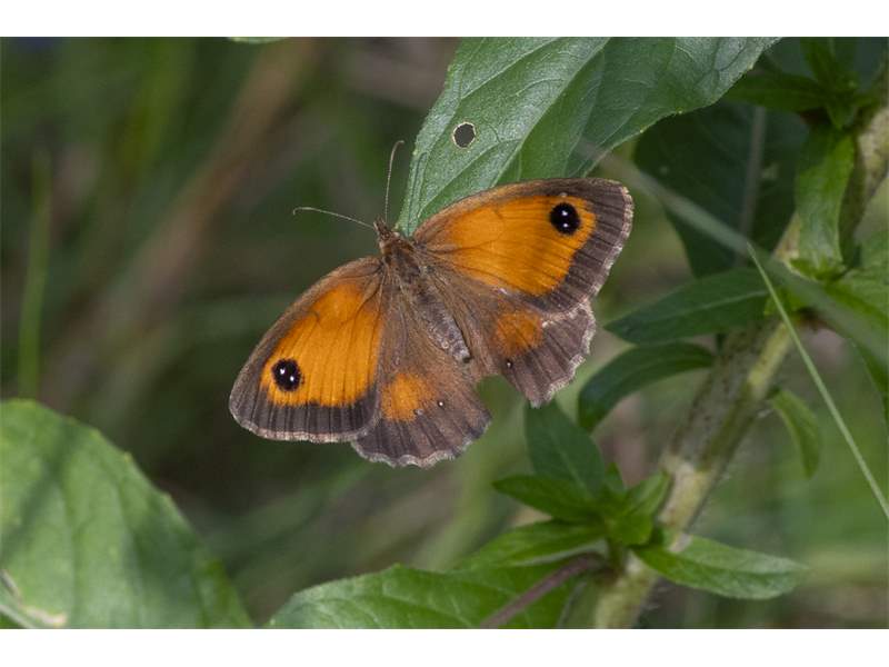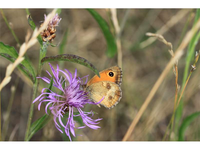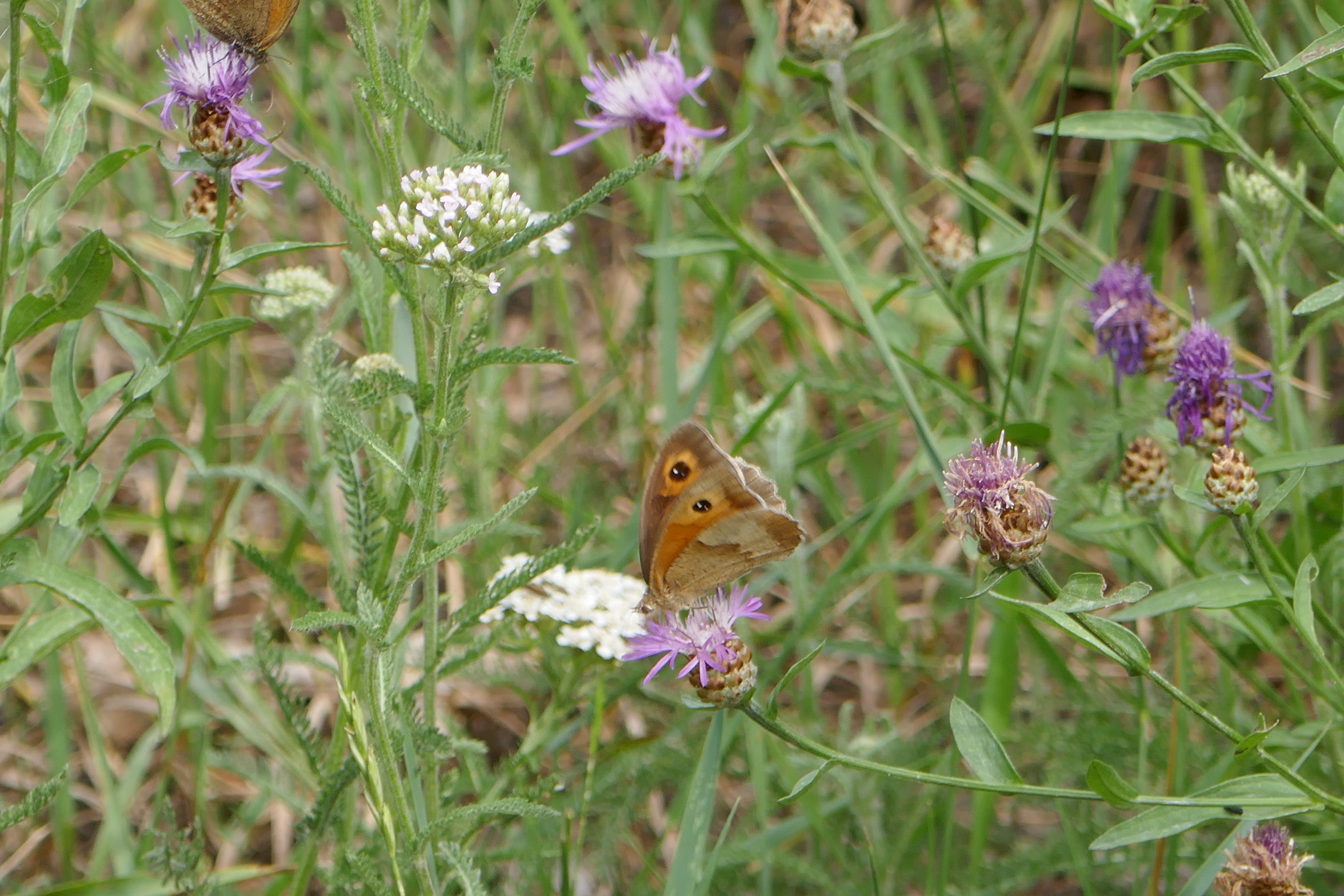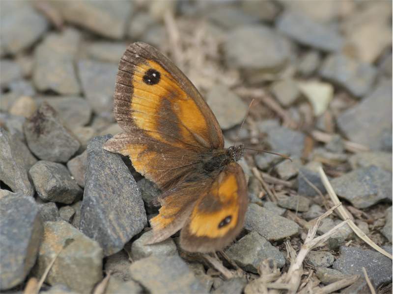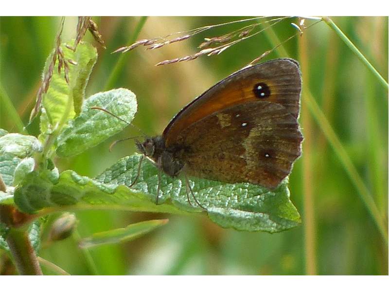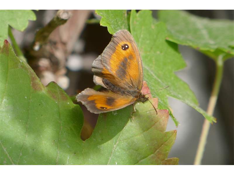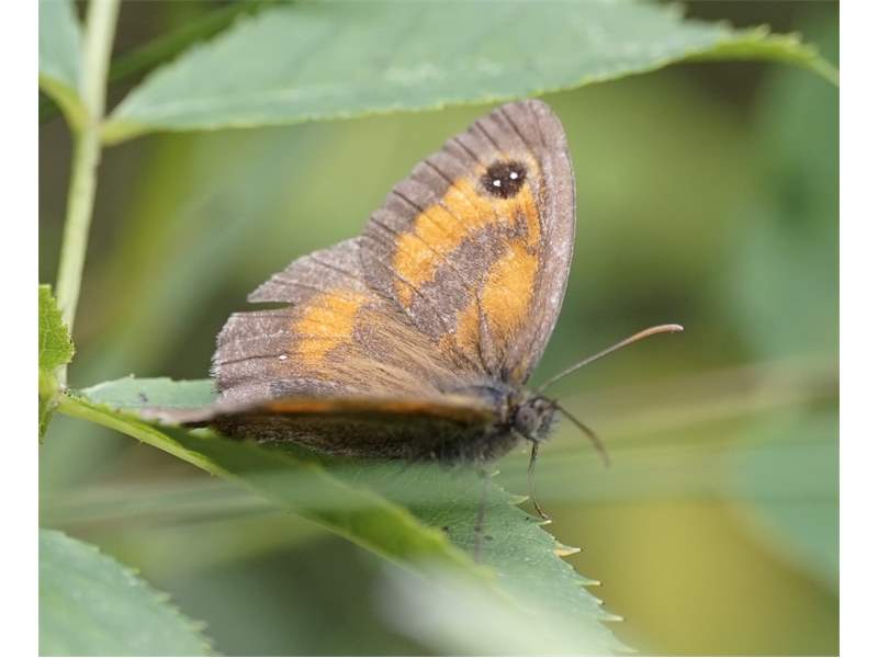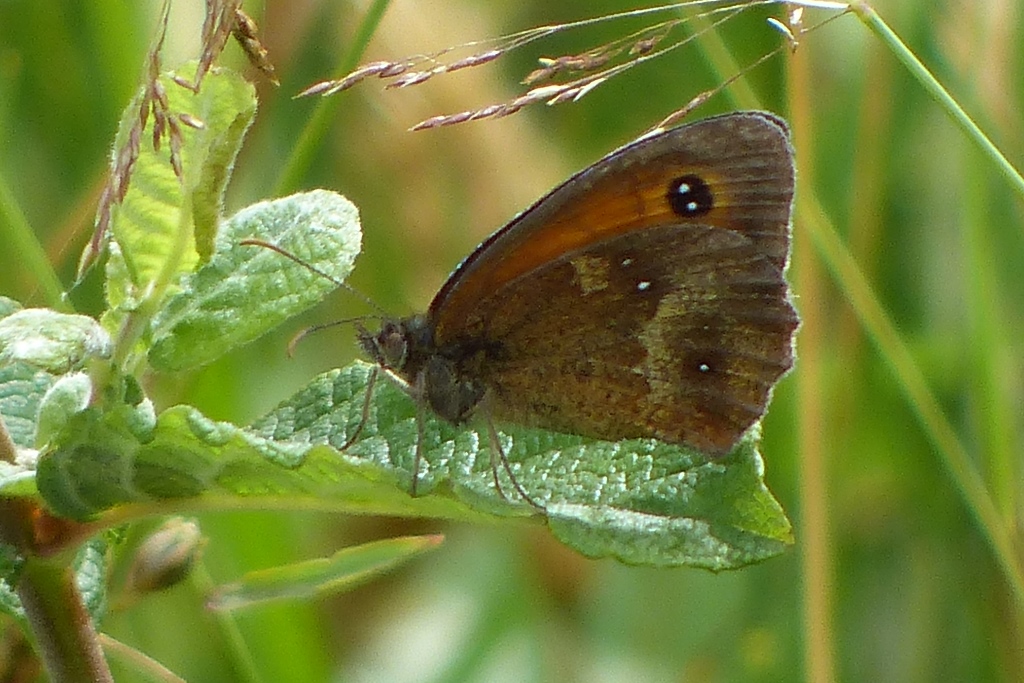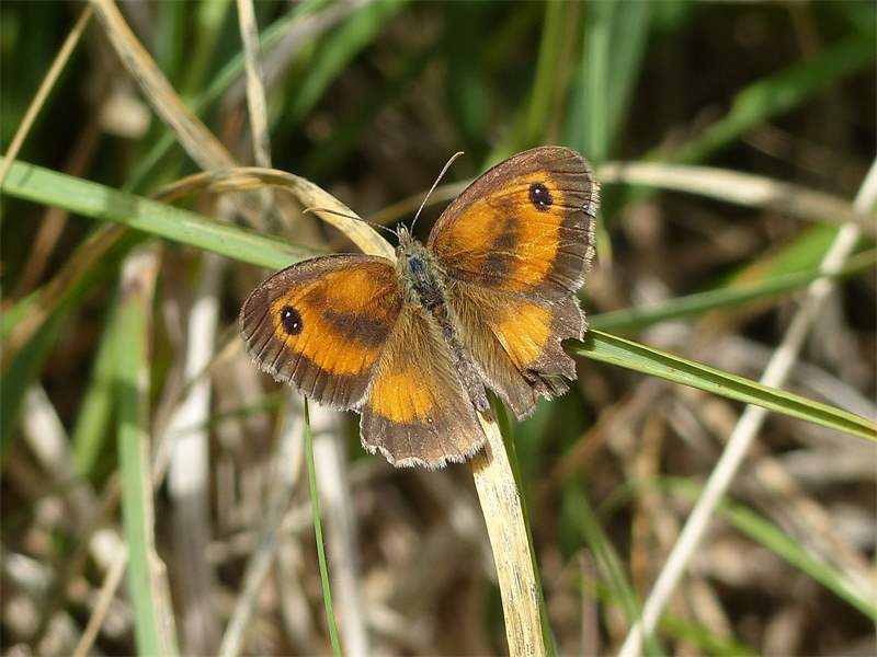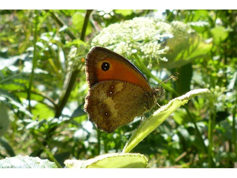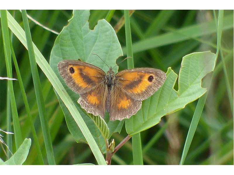 Rotbraunes Ochsenauge (Pyronia tithonus (Linnaeus, 1767)) Anfang Juli 2019, Bröthener Heide, nahe Hoyerswerda, am Bahndamm (© Martina Görner)( Bild vergrößern)
