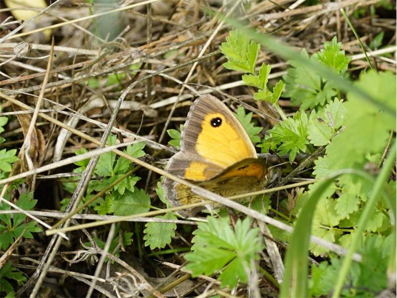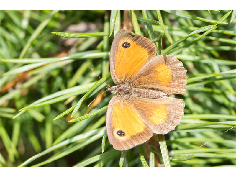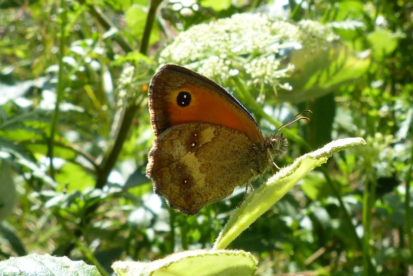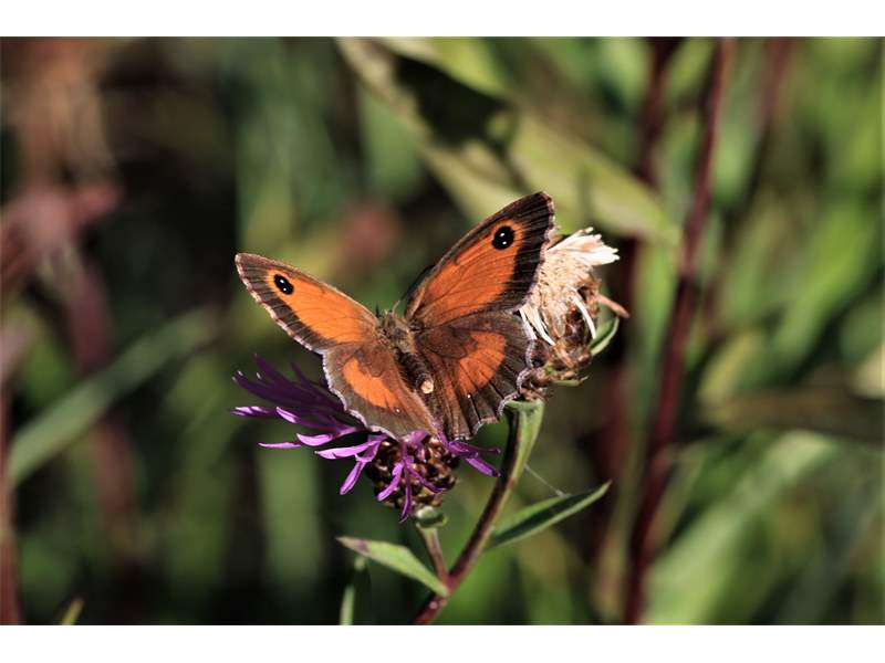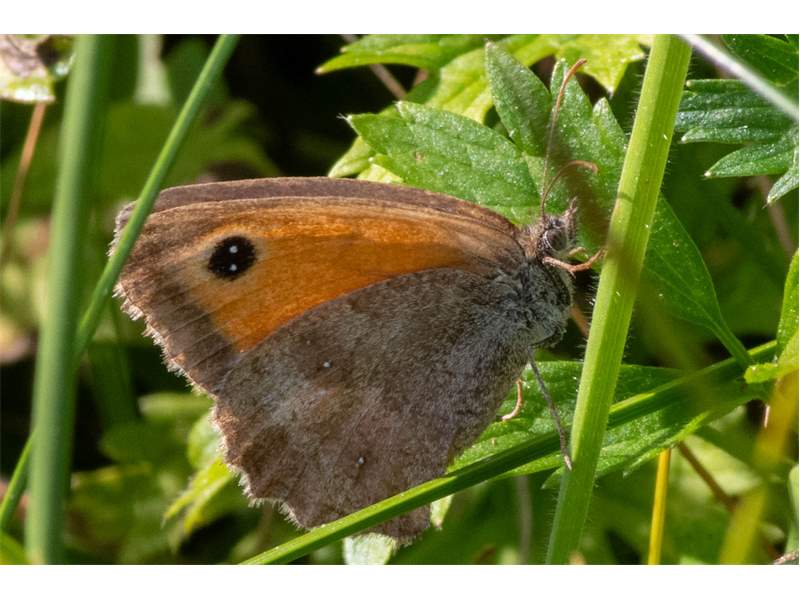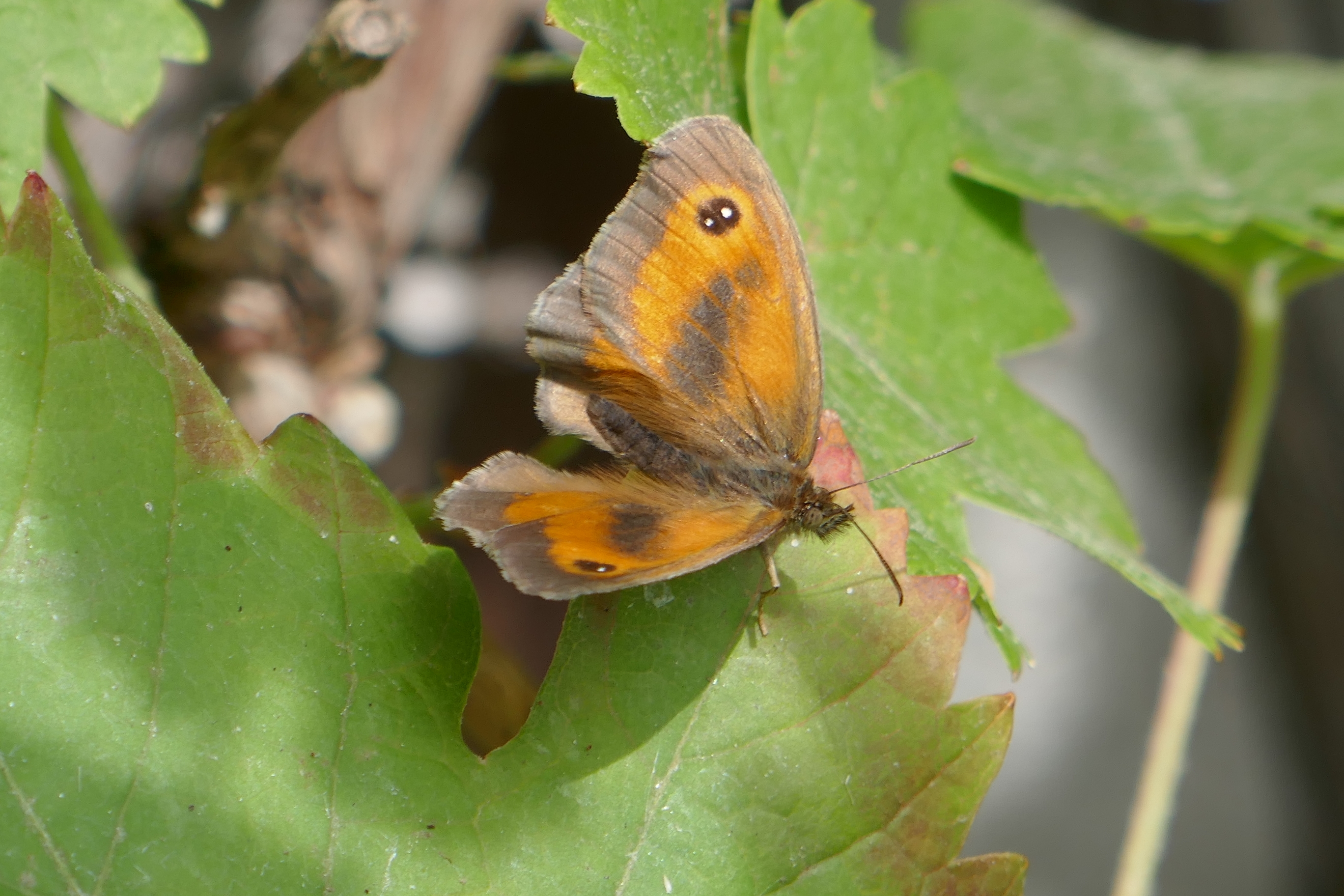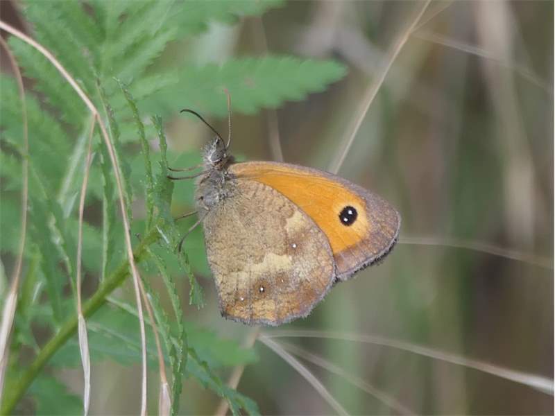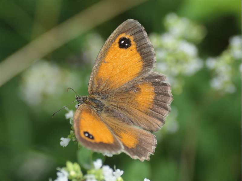 Rotbraunes Ochsenauge (Pyronia tithonus (Linnaeus, 1767)) Anfang Juli 2019, Bröthener Heide, nahe Hoyerswerda, am Bahndamm (© Martina Görner)( Bild vergrößern)