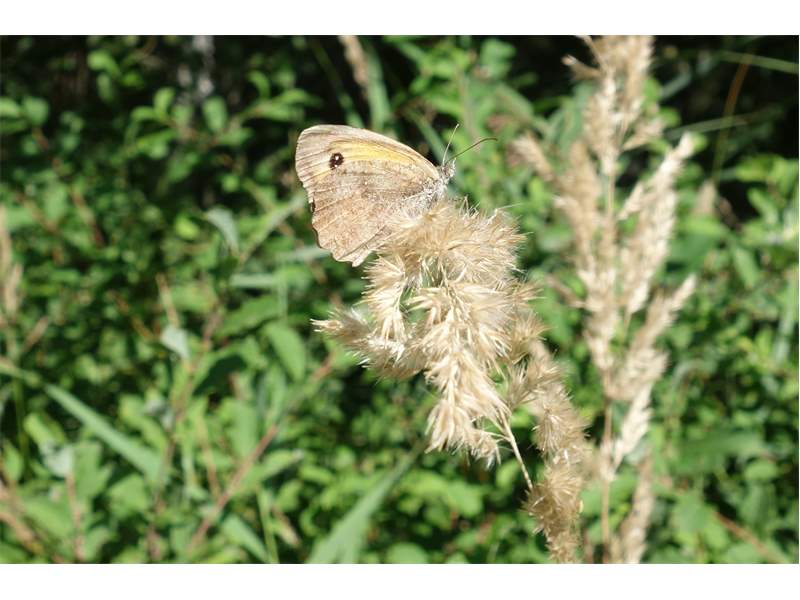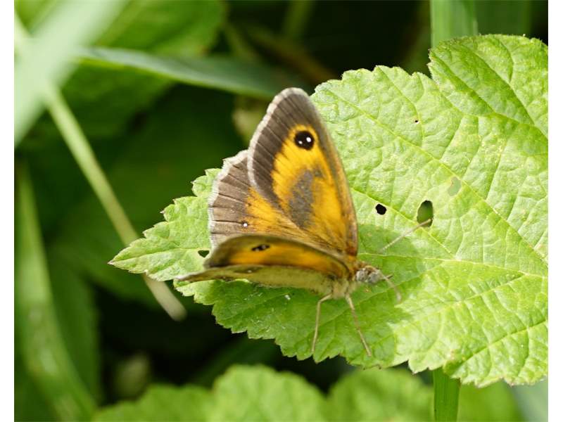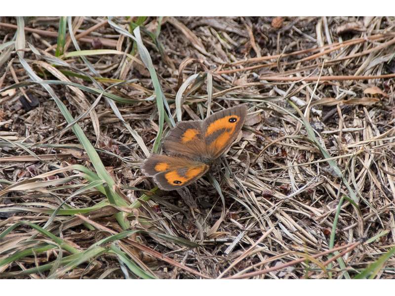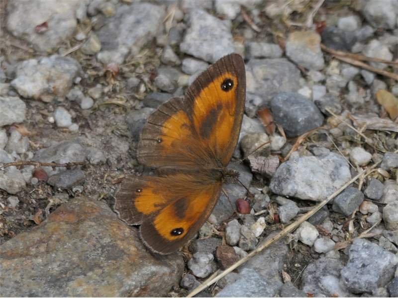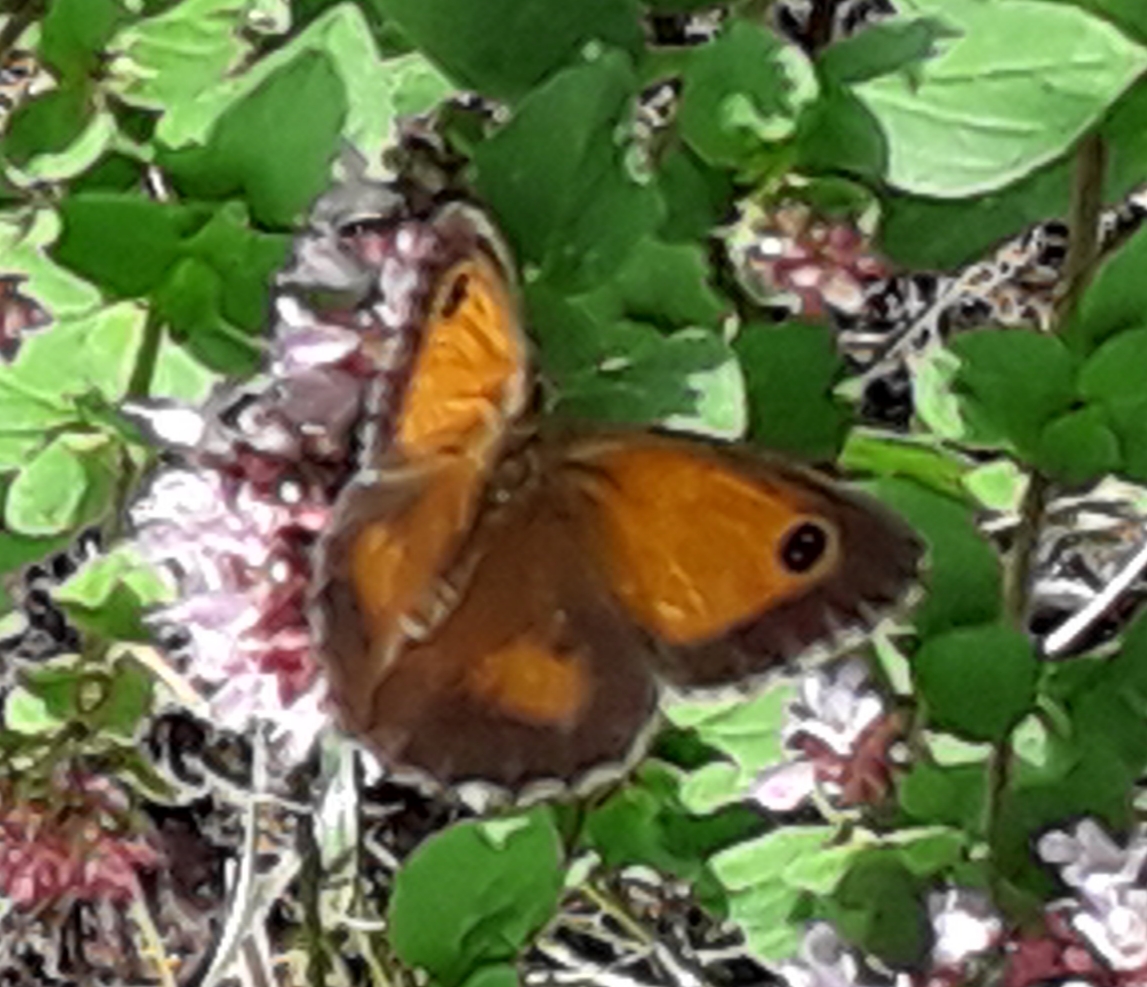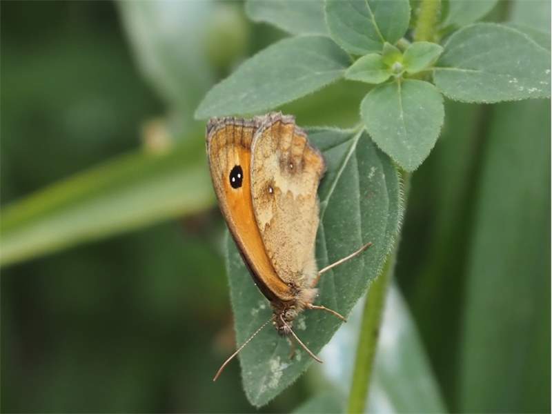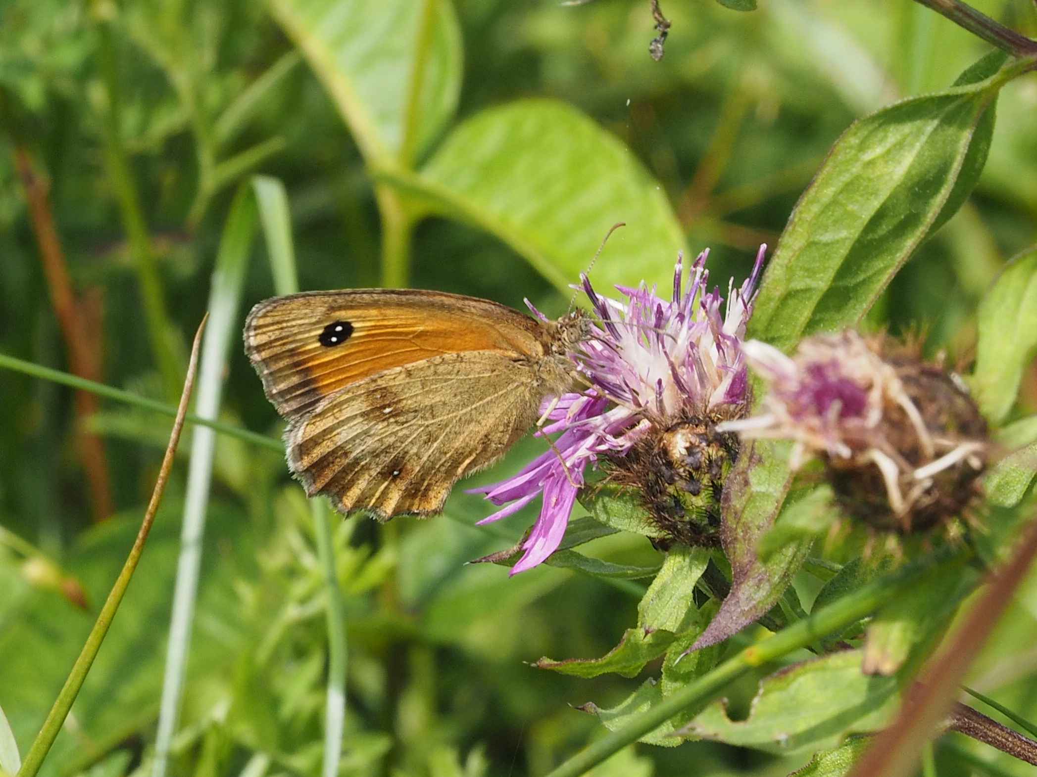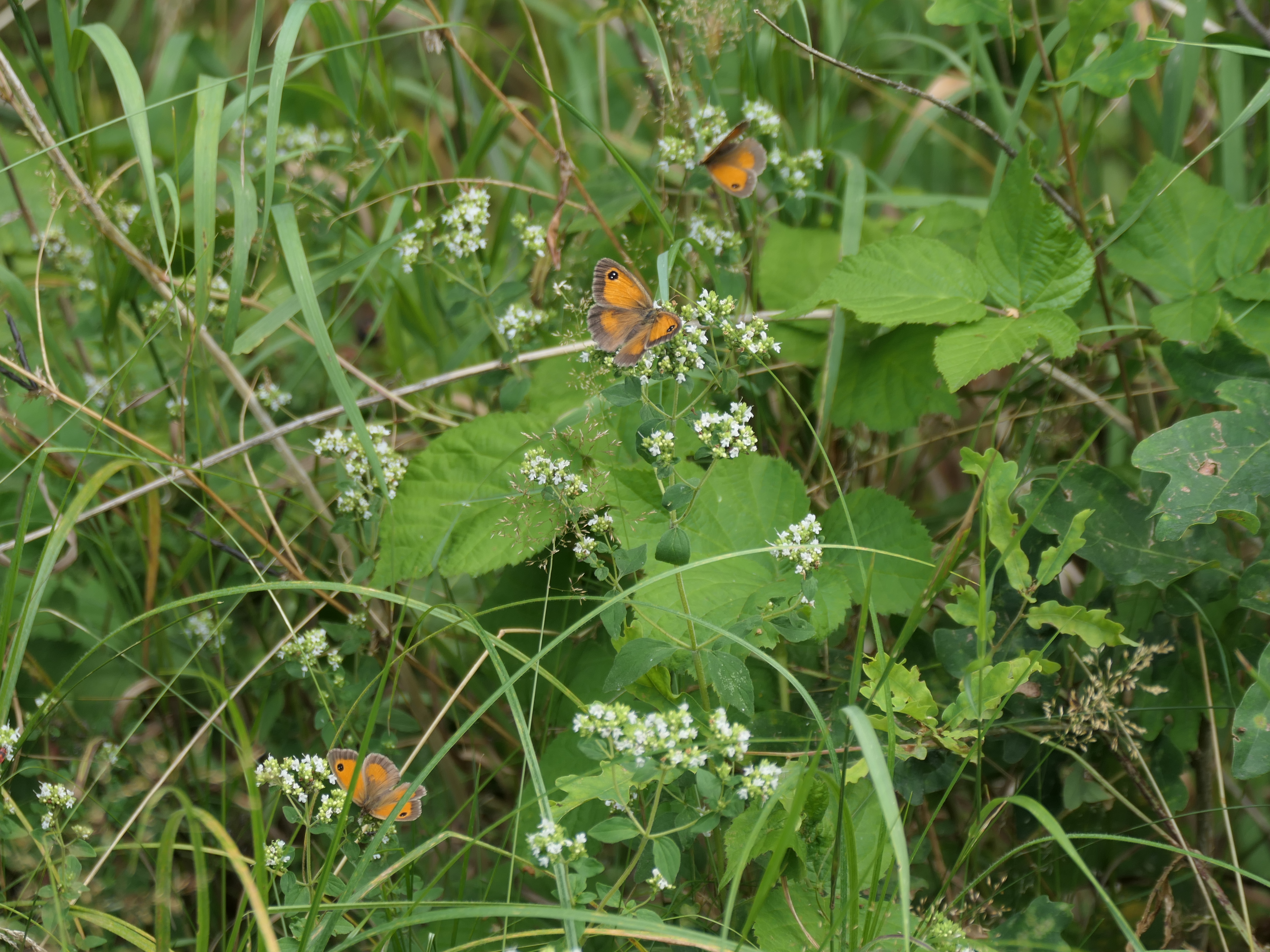 Rotbraunes Ochsenauge (Pyronia tithonus (Linnaeus, 1767)) Anfang Juli 2019, Bröthener Heide, nahe Hoyerswerda, am Bahndamm (© Martina Görner)( Bild vergrößern)