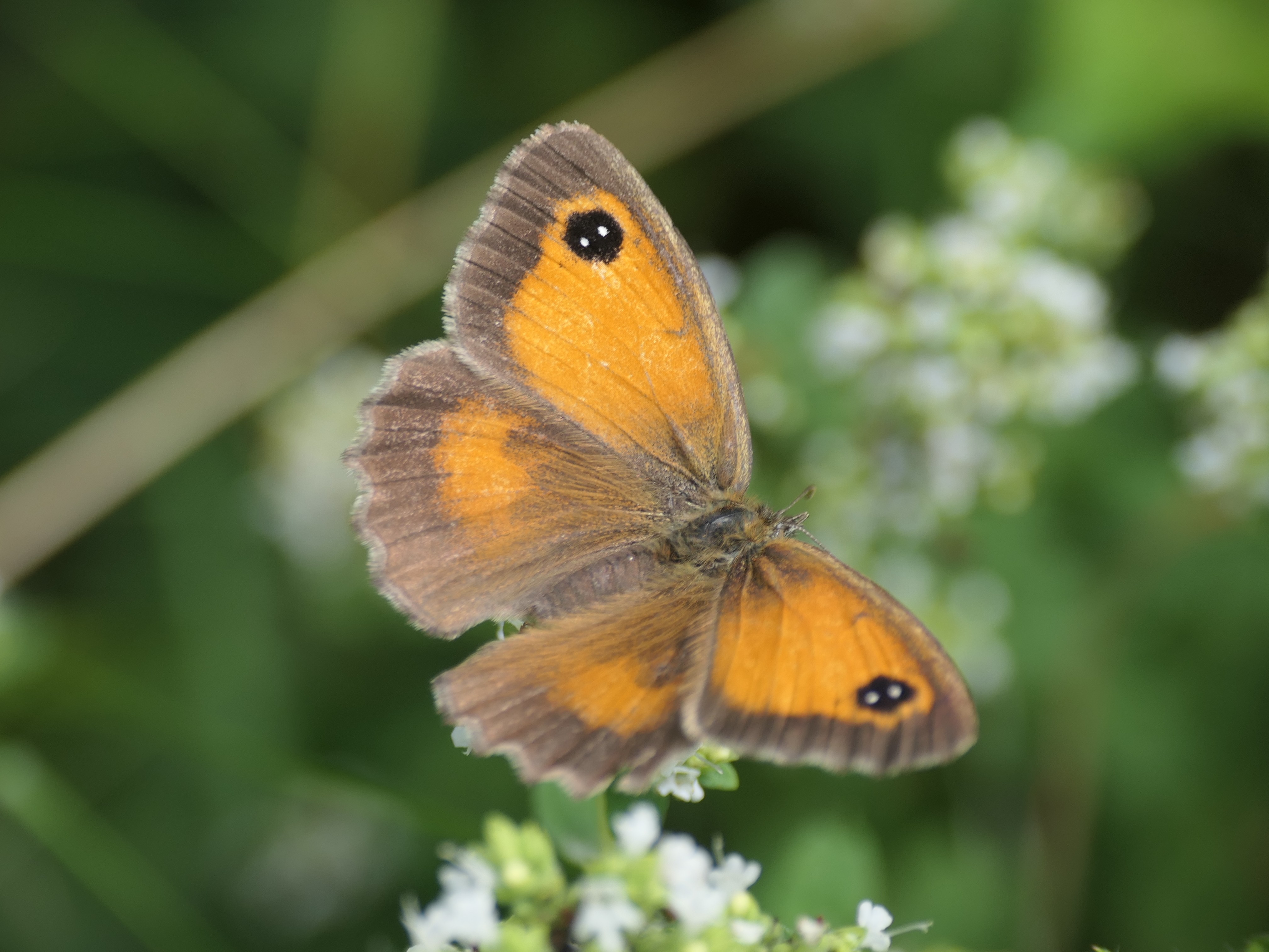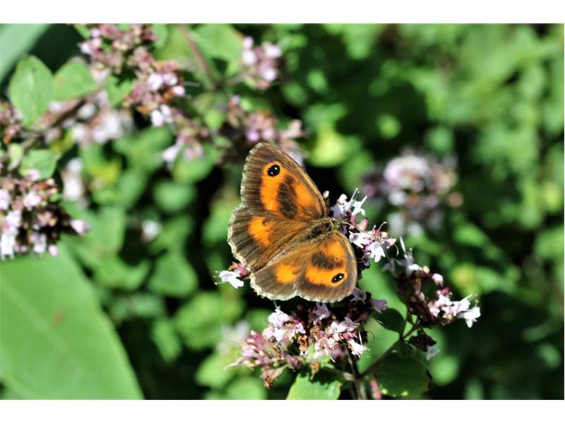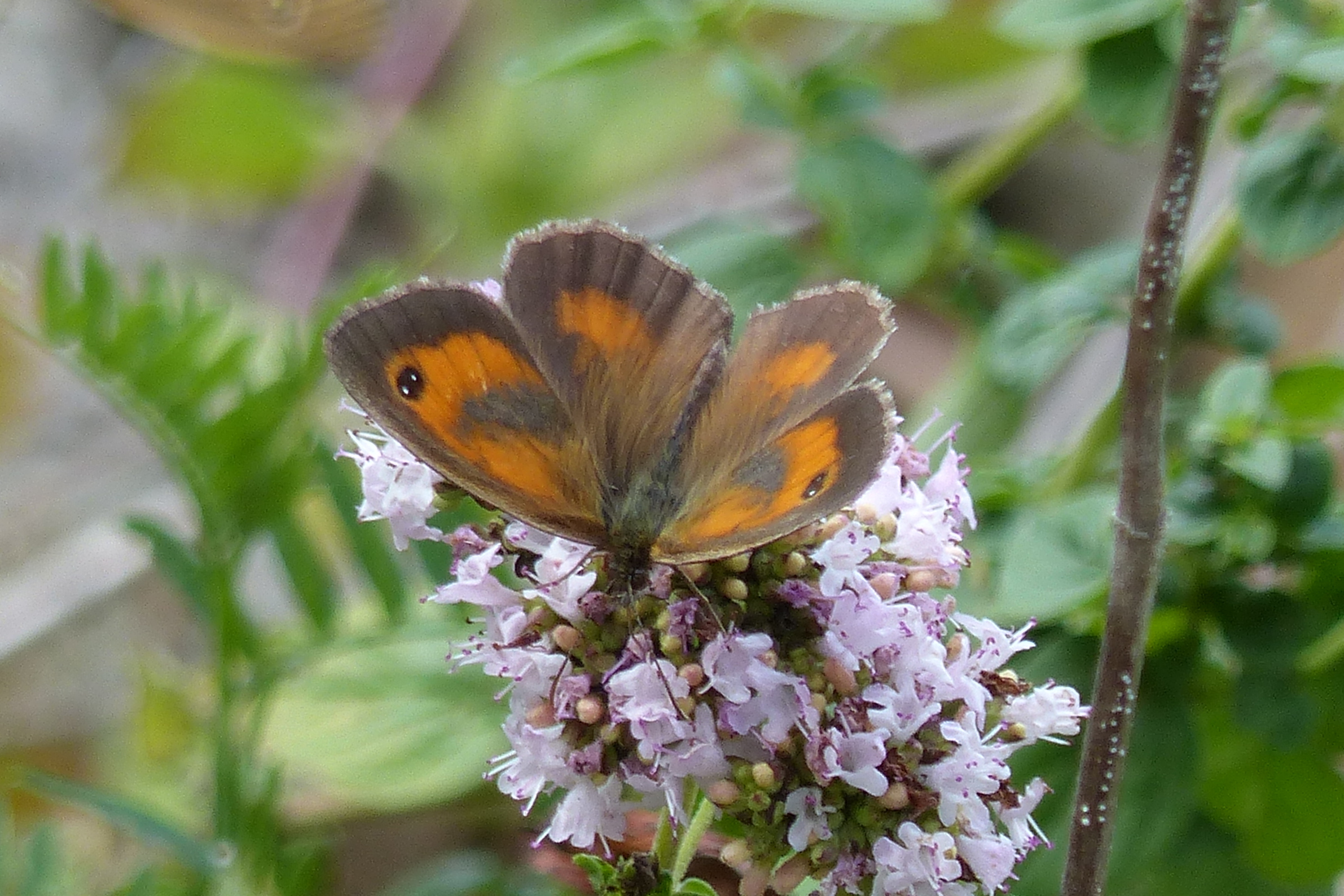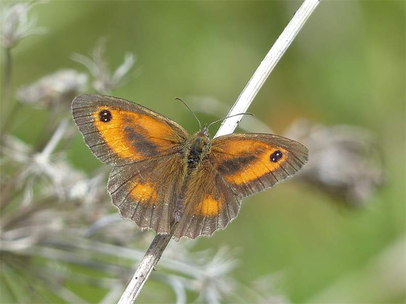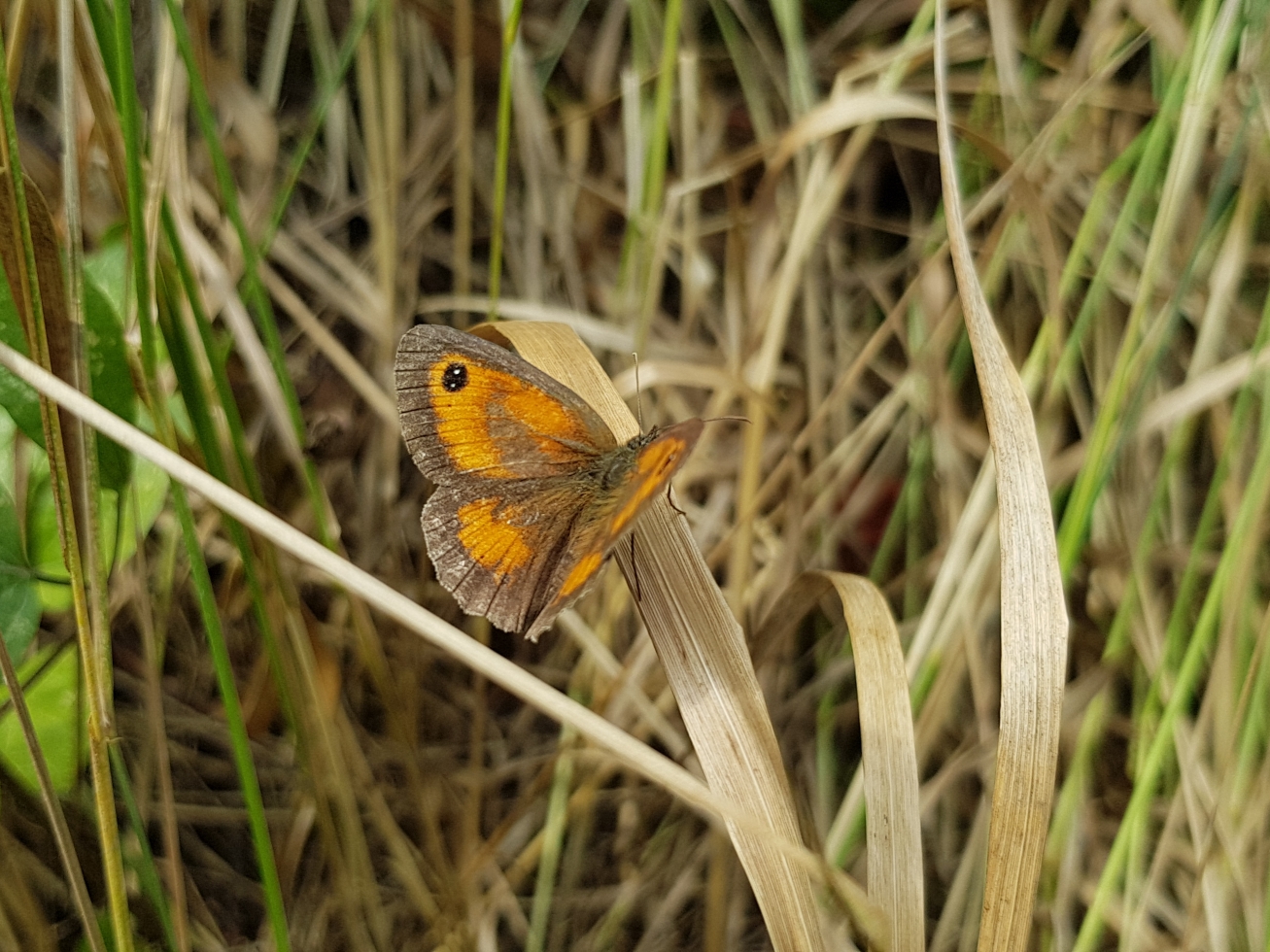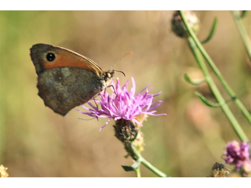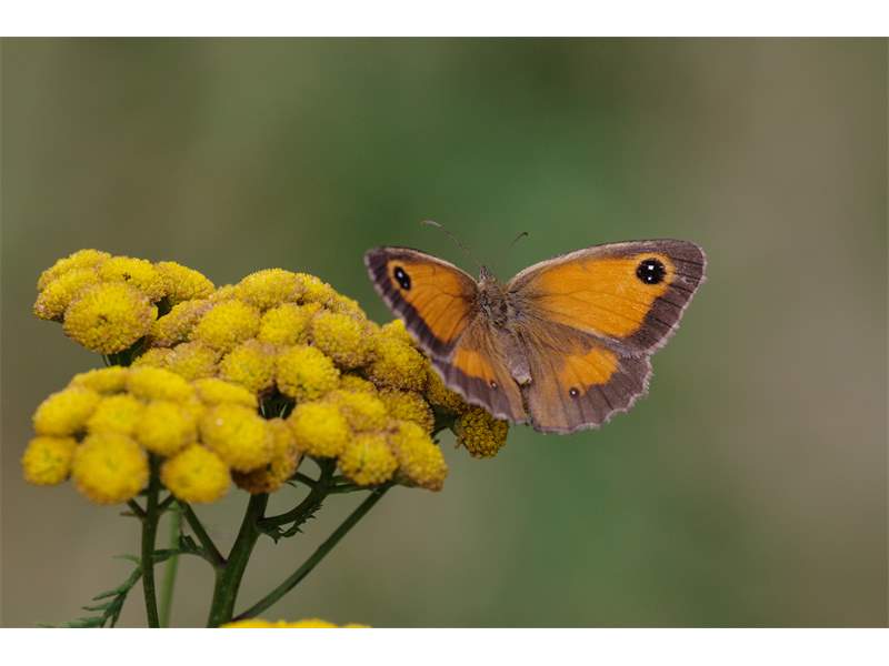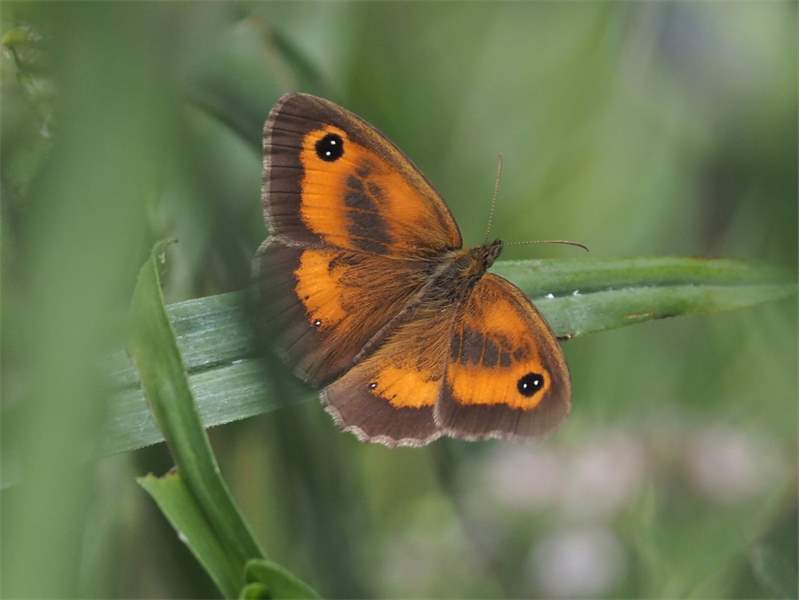 Rotbraunes Ochsenauge (Pyronia tithonus (Linnaeus, 1767)) Anfang Juli 2019, Bröthener Heide, nahe Hoyerswerda, am Bahndamm (© Martina Görner)( Bild vergrößern)