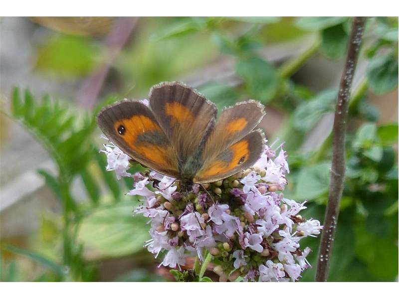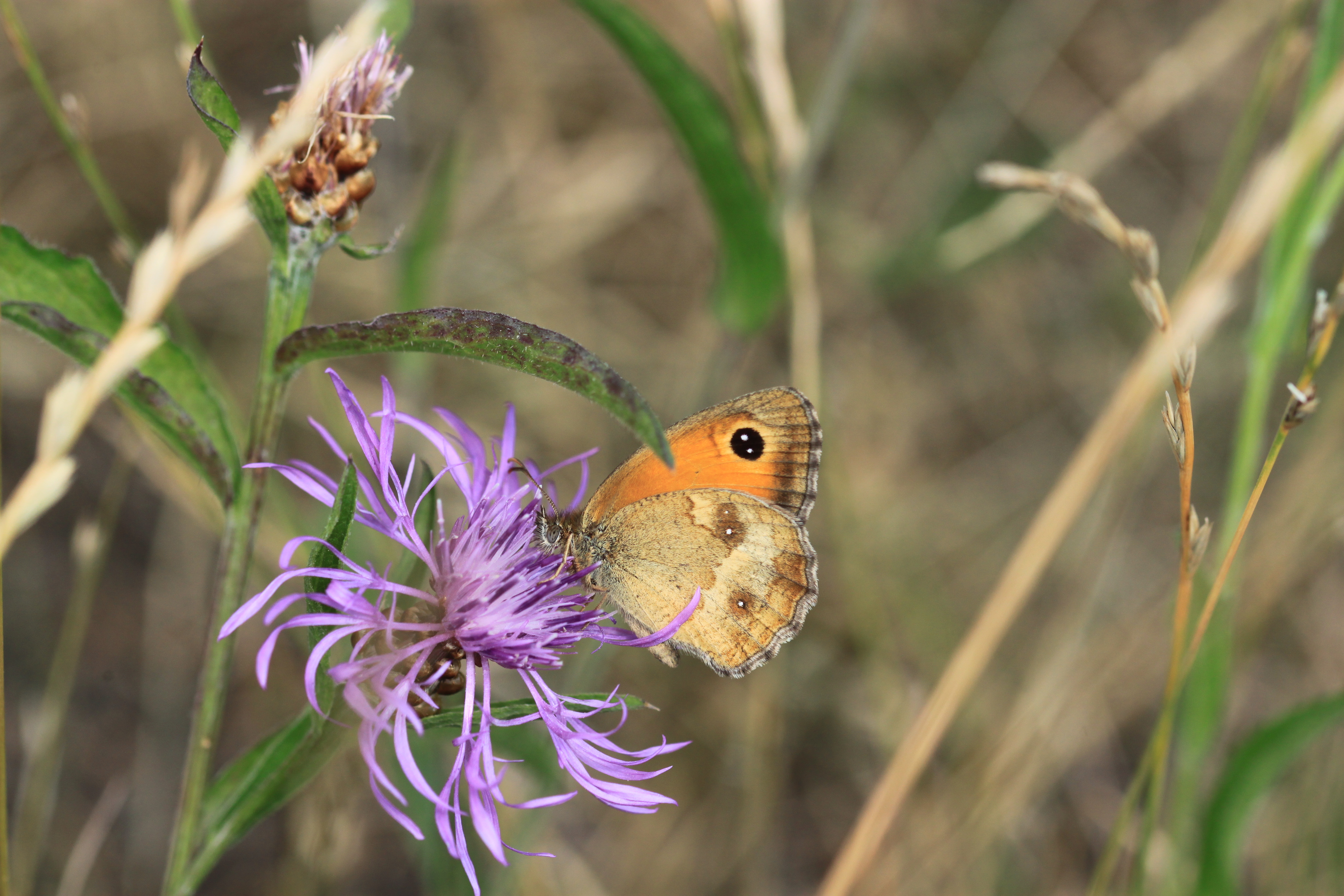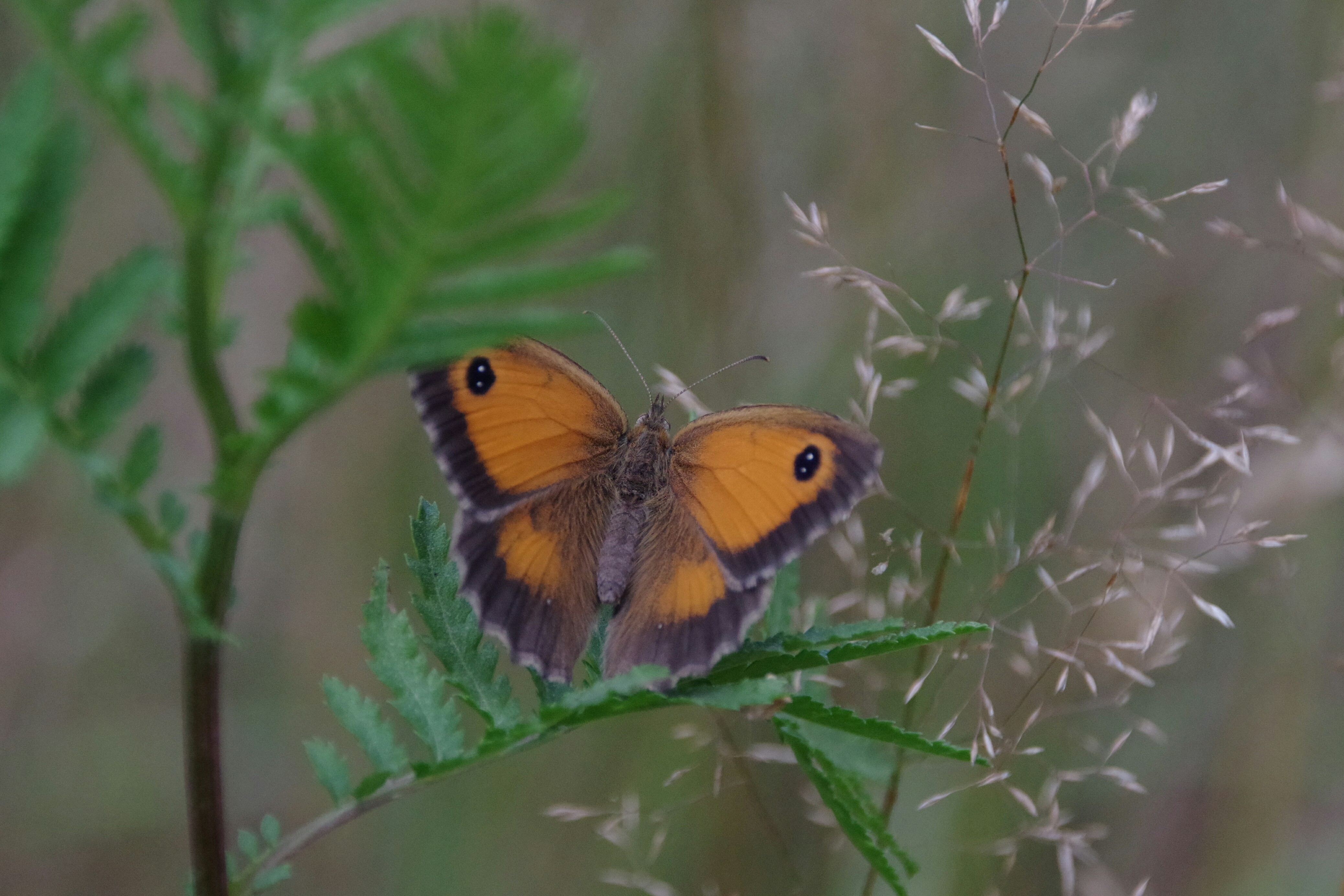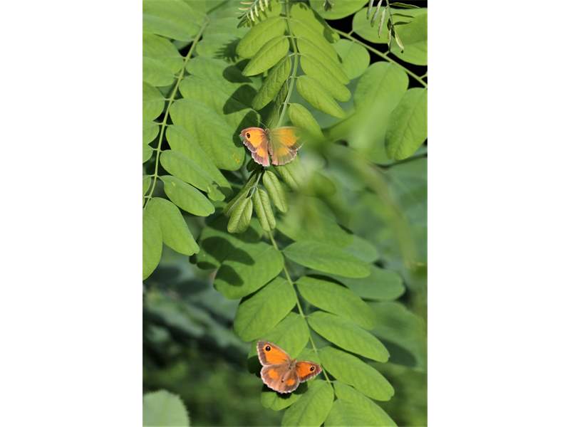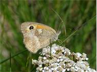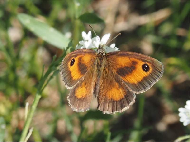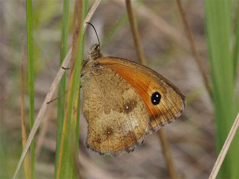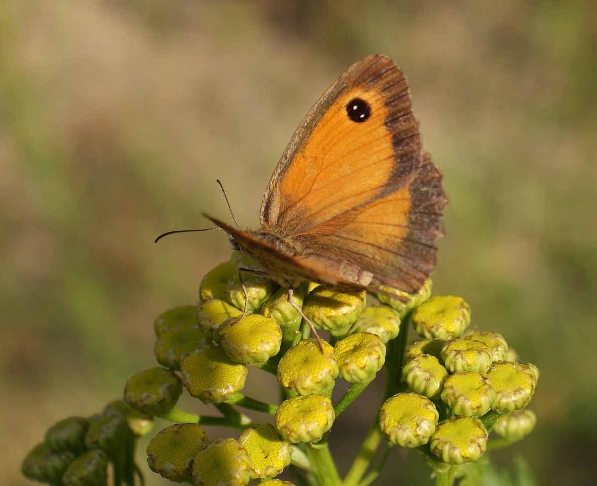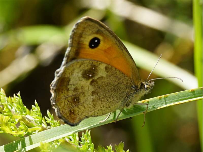 Rotbraunes Ochsenauge (Pyronia tithonus (Linnaeus, 1767)) Anfang Juli 2019, Bröthener Heide, nahe Hoyerswerda, am Bahndamm (© Martina Görner)( Bild vergrößern)