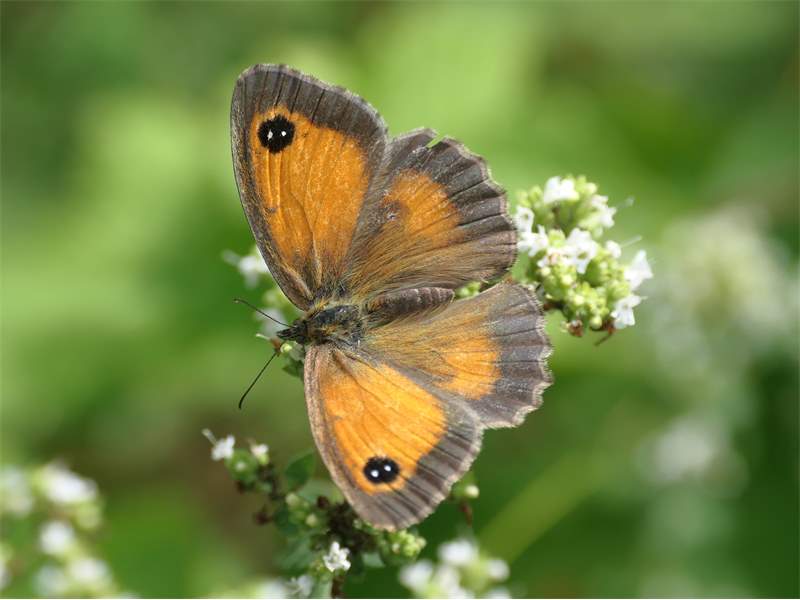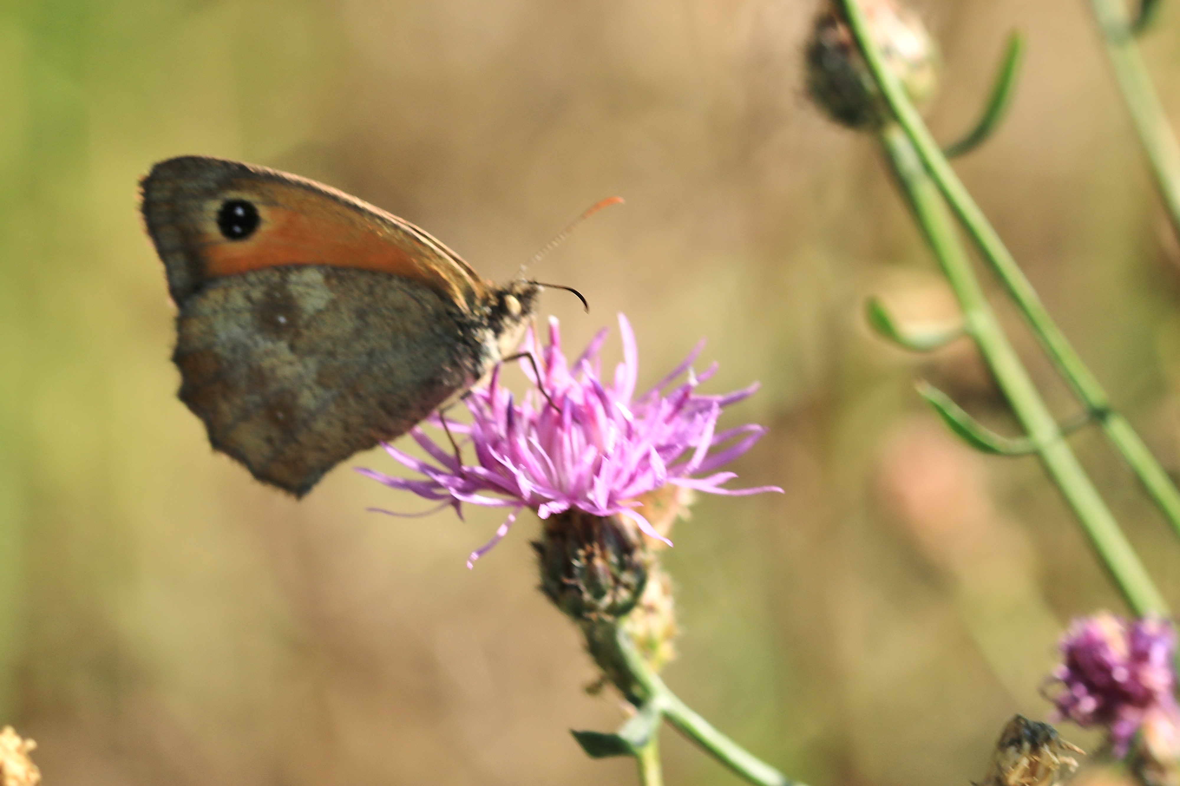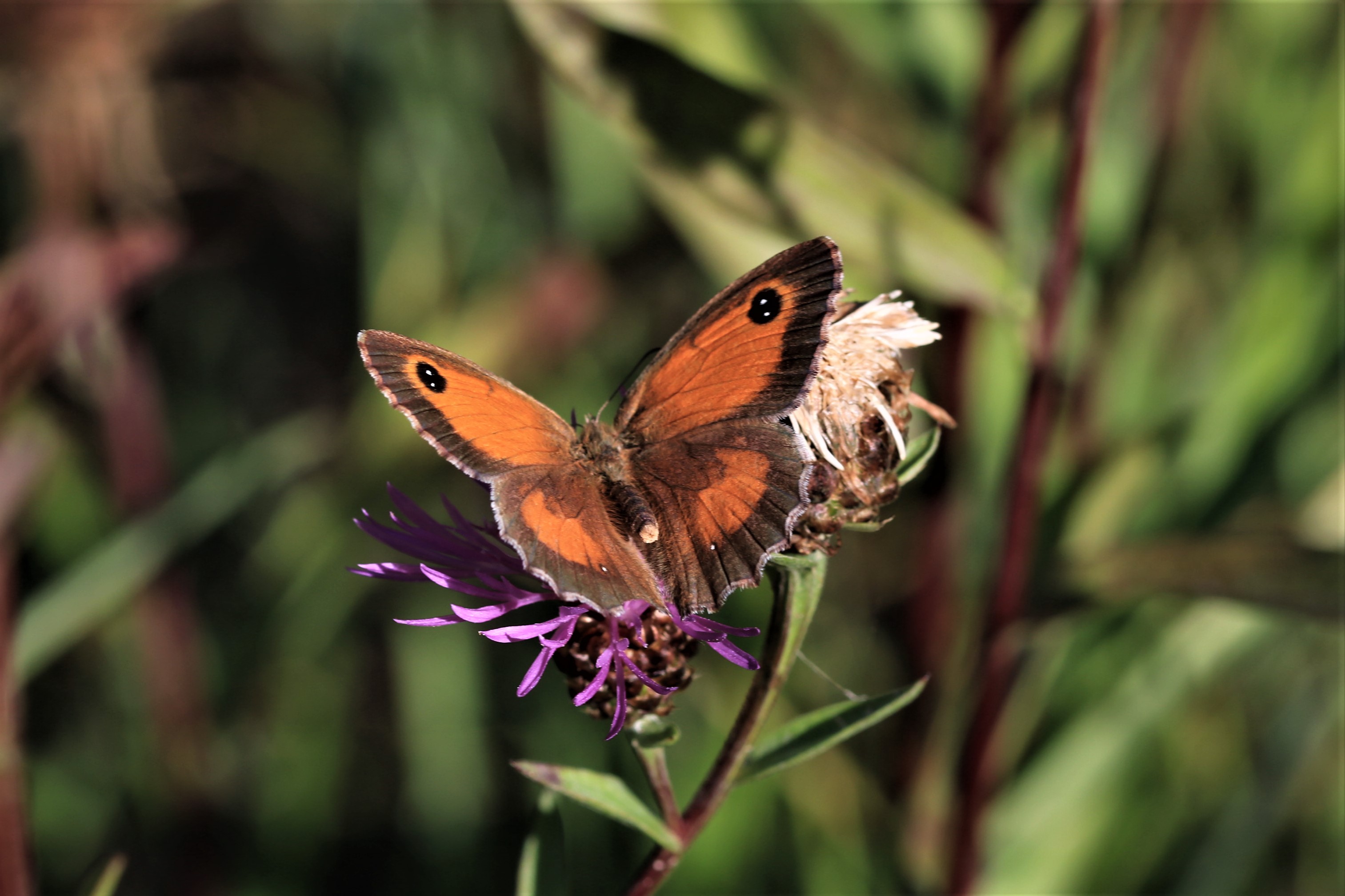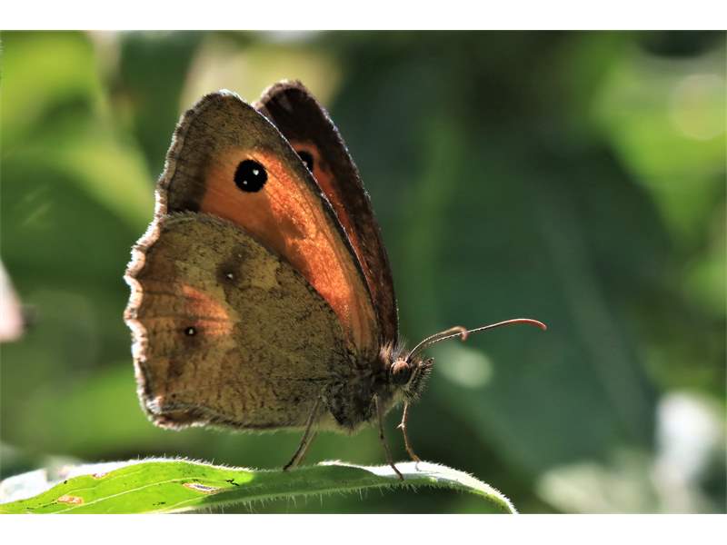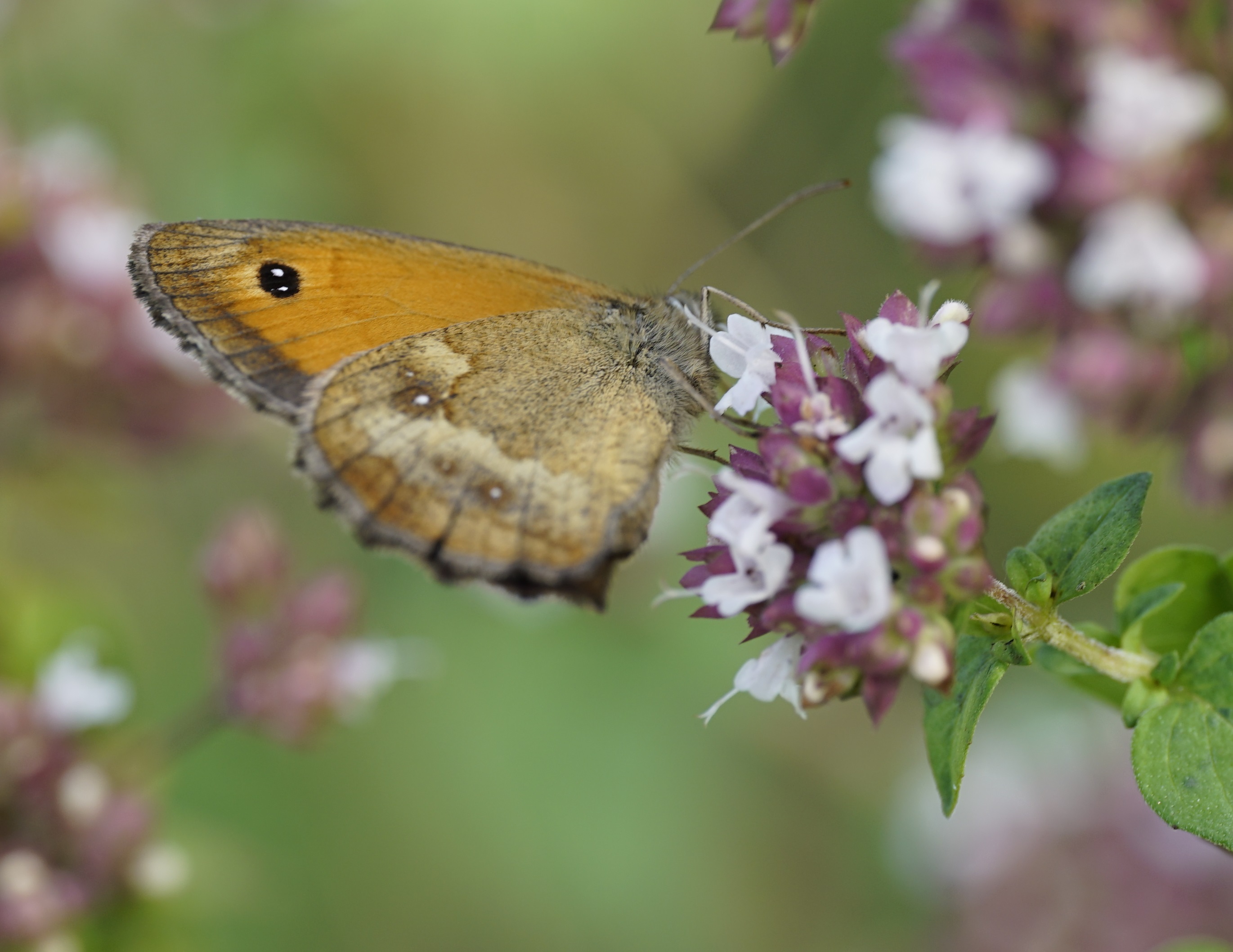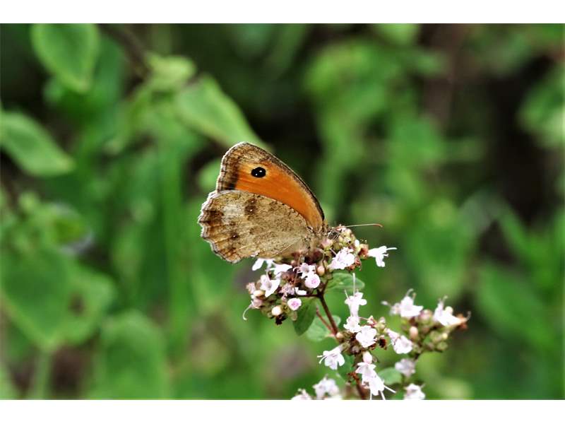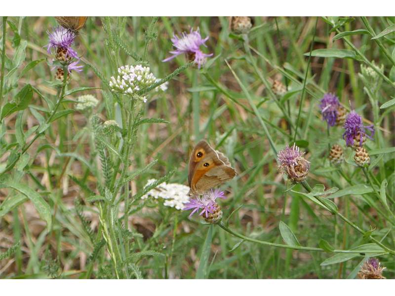 Rotbraunes Ochsenauge (Pyronia tithonus (Linnaeus, 1767)) Anfang Juli 2019, Bröthener Heide, nahe Hoyerswerda, am Bahndamm (© Martina Görner)( Bild vergrößern)