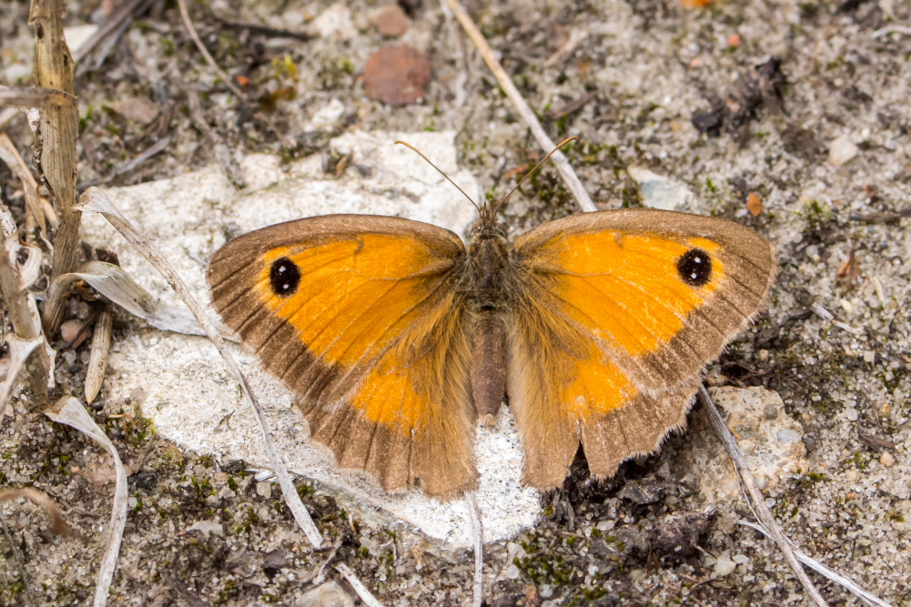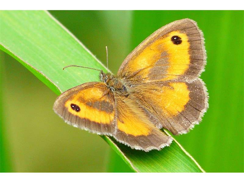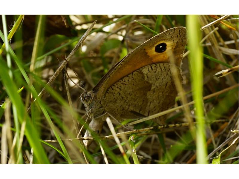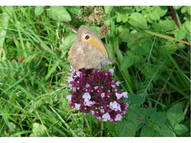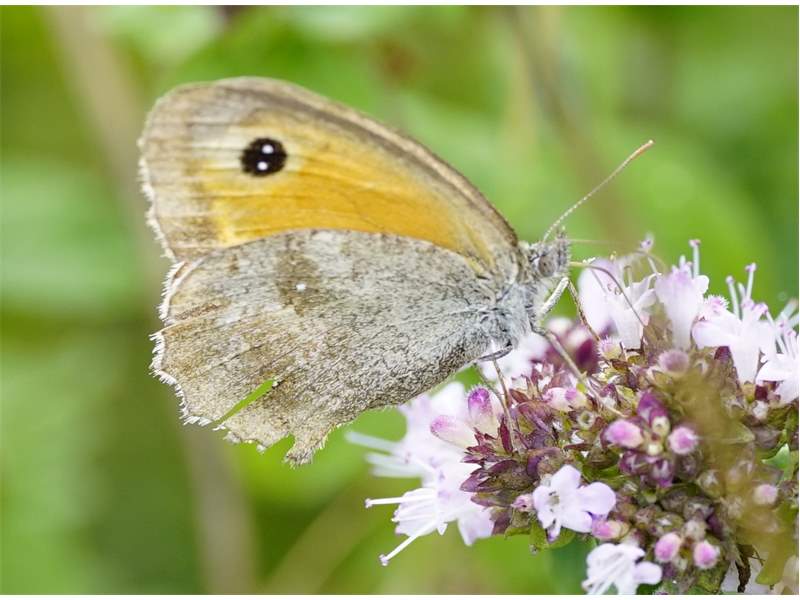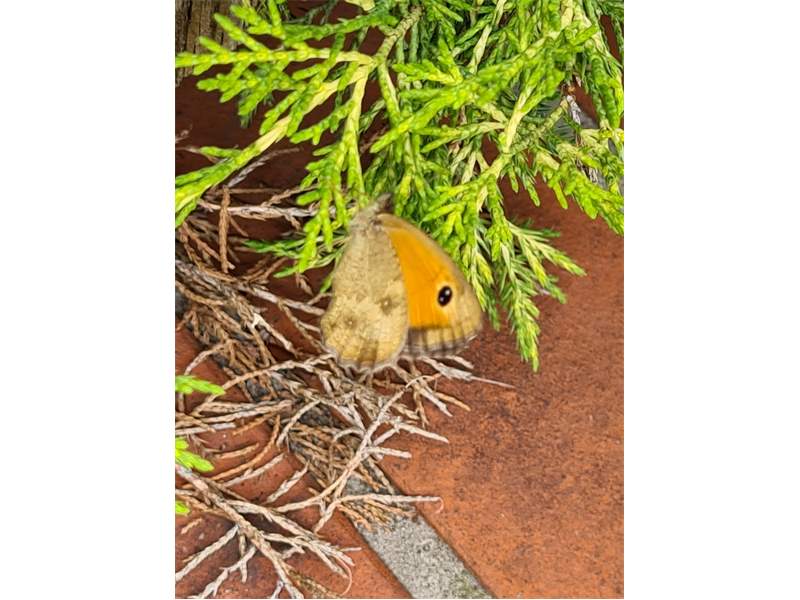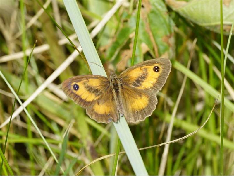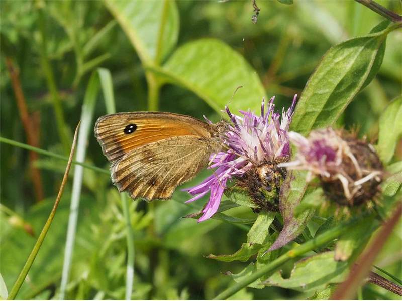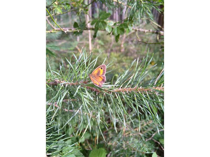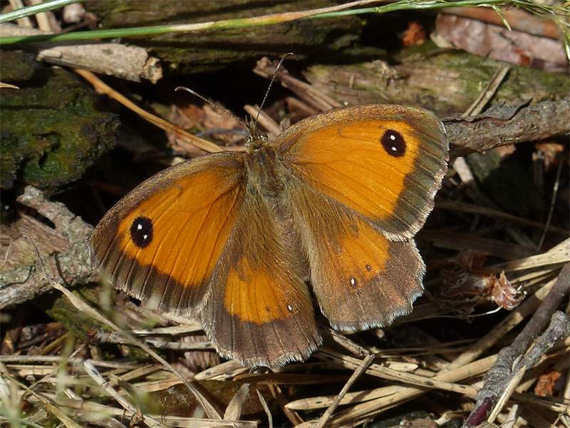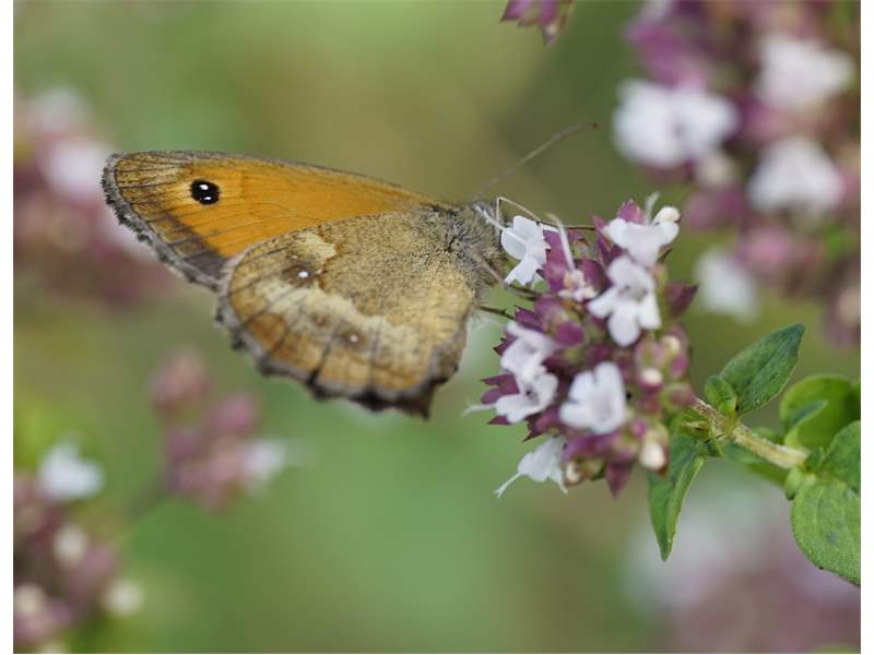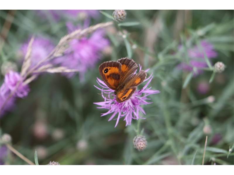 Rotbraunes Ochsenauge (Pyronia tithonus (Linnaeus, 1767)) Anfang Juli 2019, Bröthener Heide, nahe Hoyerswerda, am Bahndamm (© Martina Görner)( Bild vergrößern)