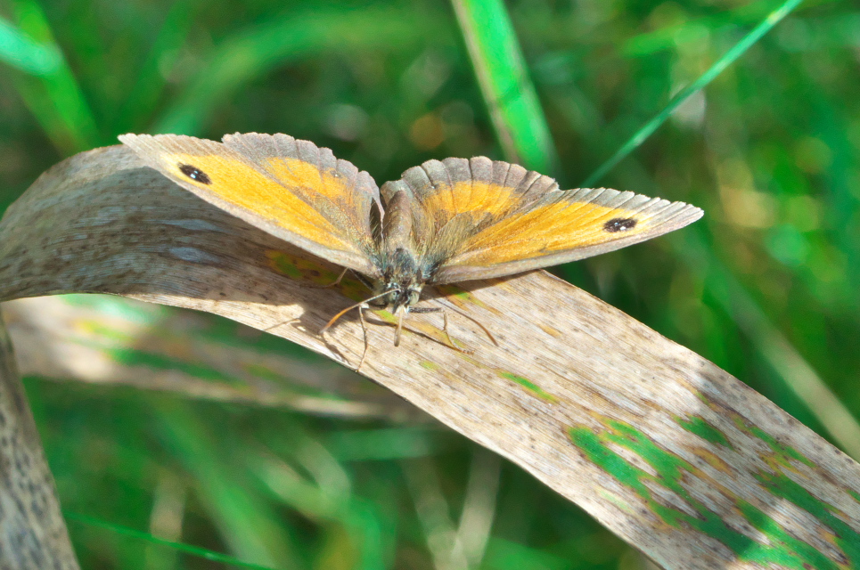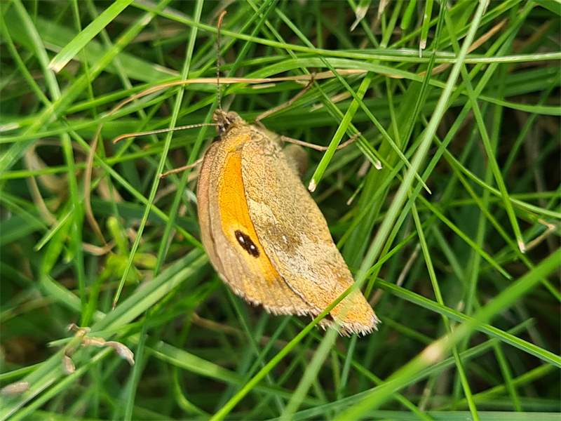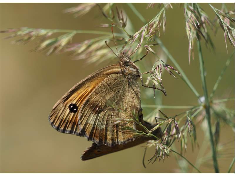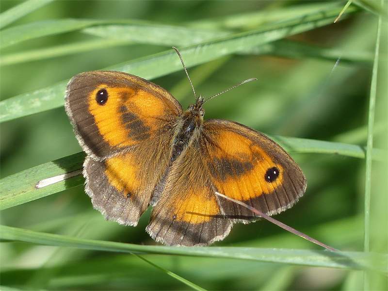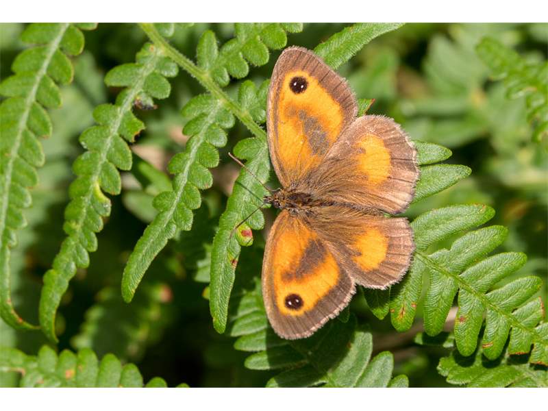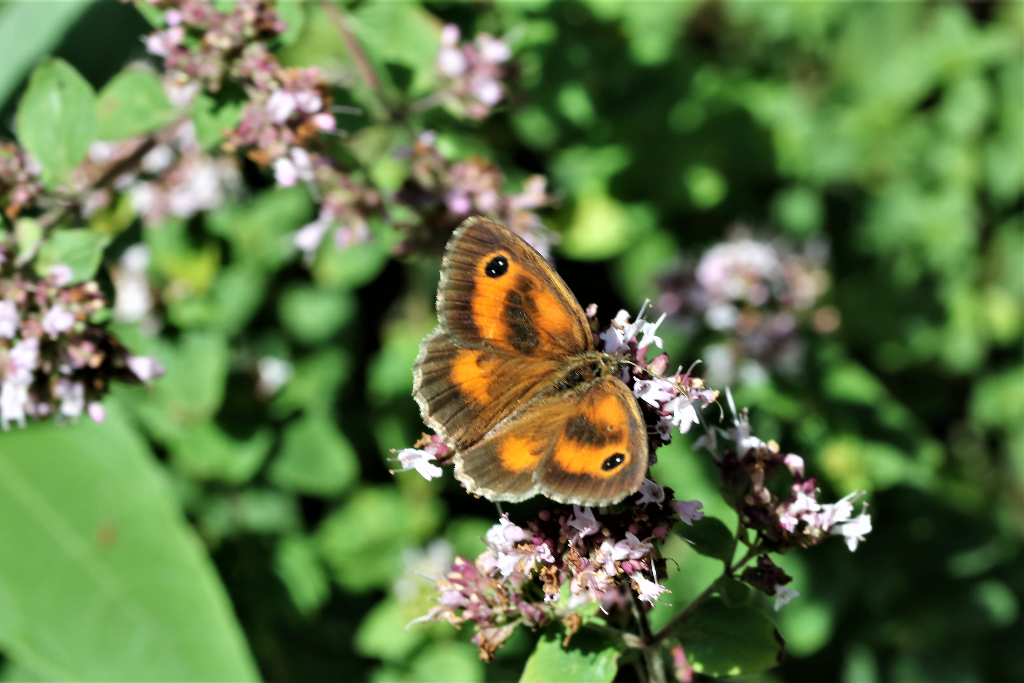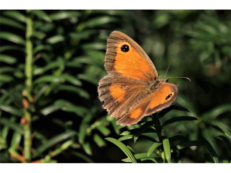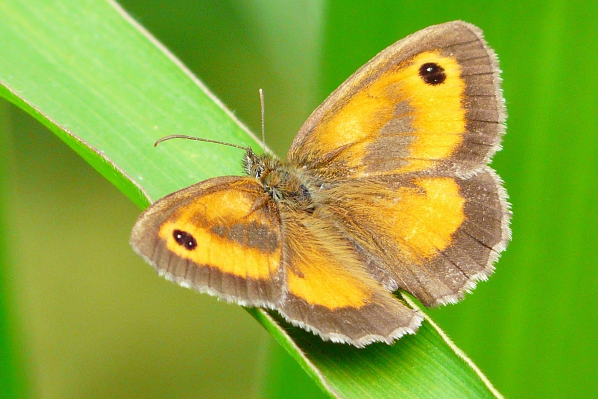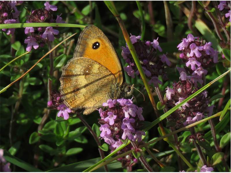 Rotbraunes Ochsenauge (Pyronia tithonus (Linnaeus, 1767)) Anfang Juli 2019, Bröthener Heide, nahe Hoyerswerda, am Bahndamm (© Martina Görner)( Bild vergrößern)