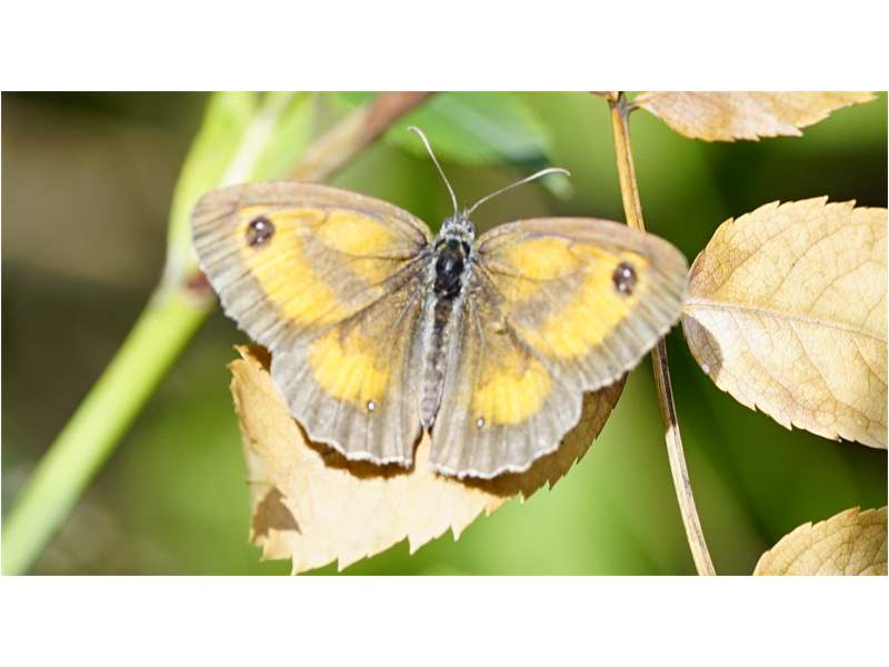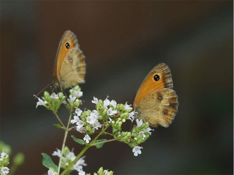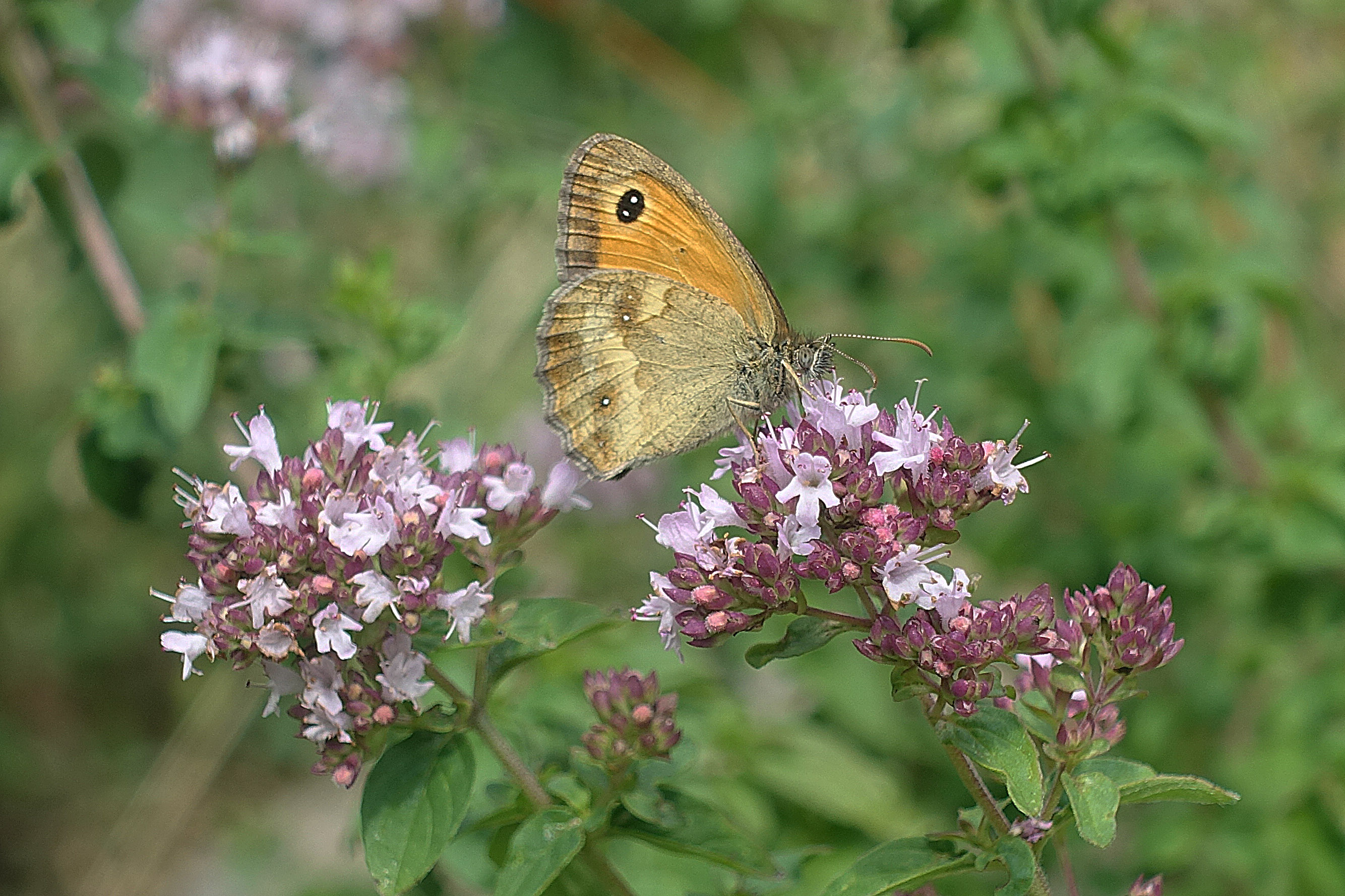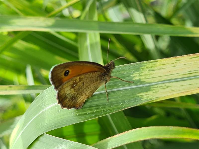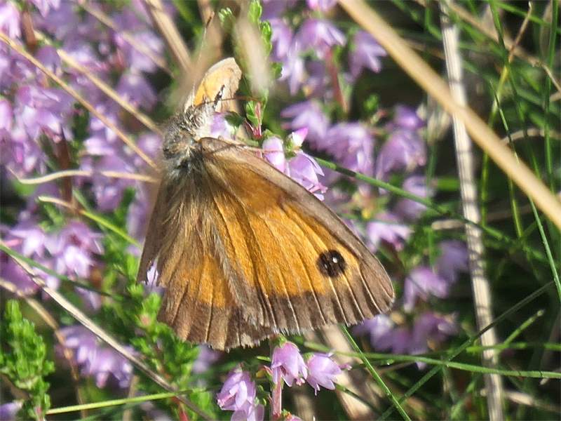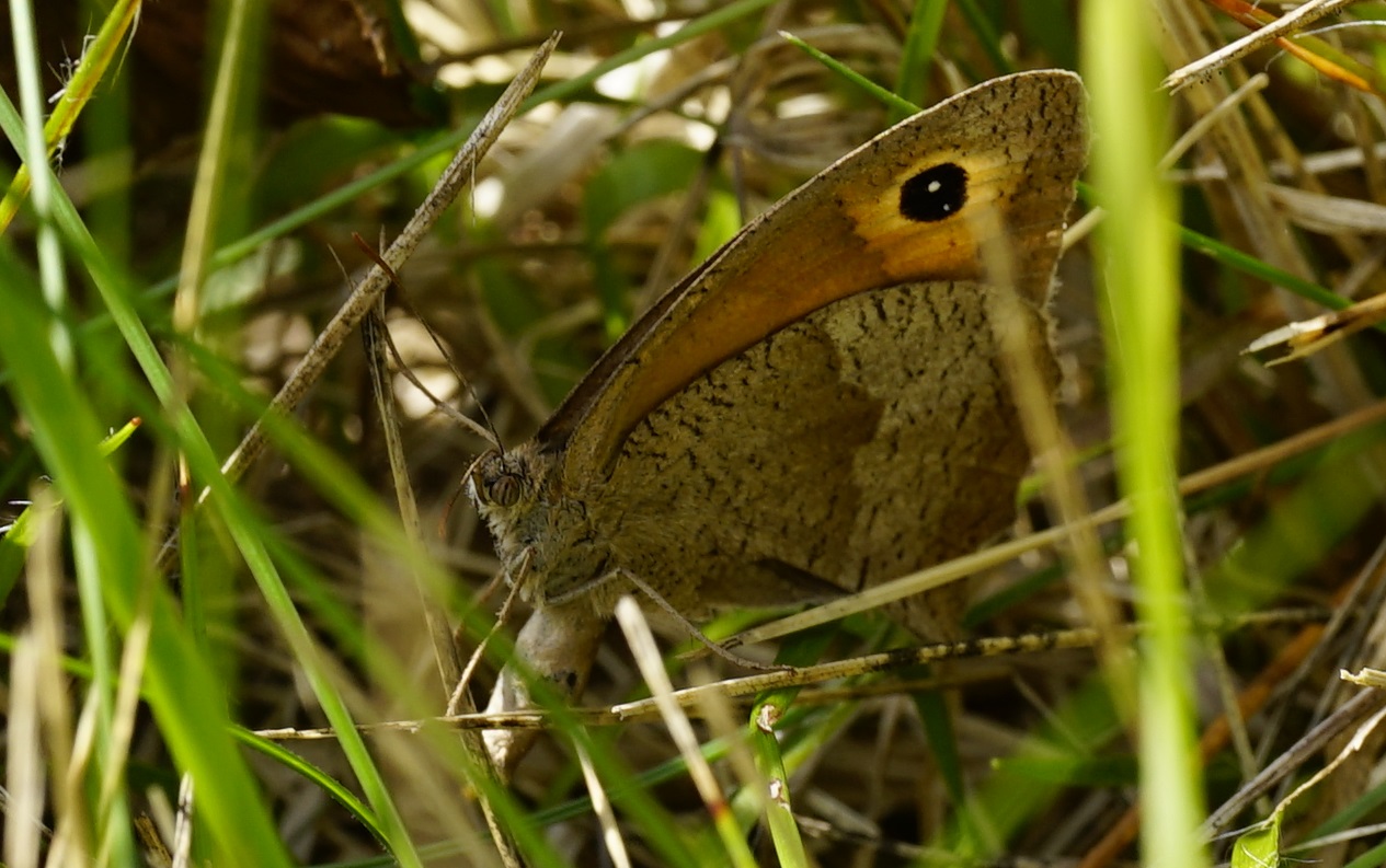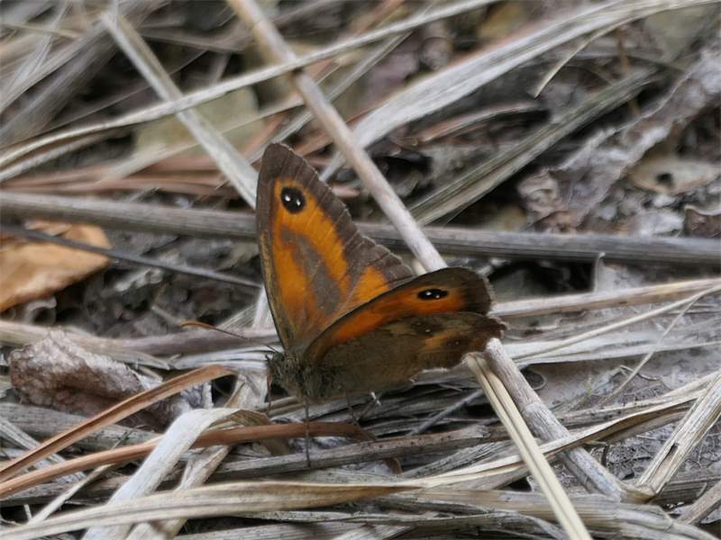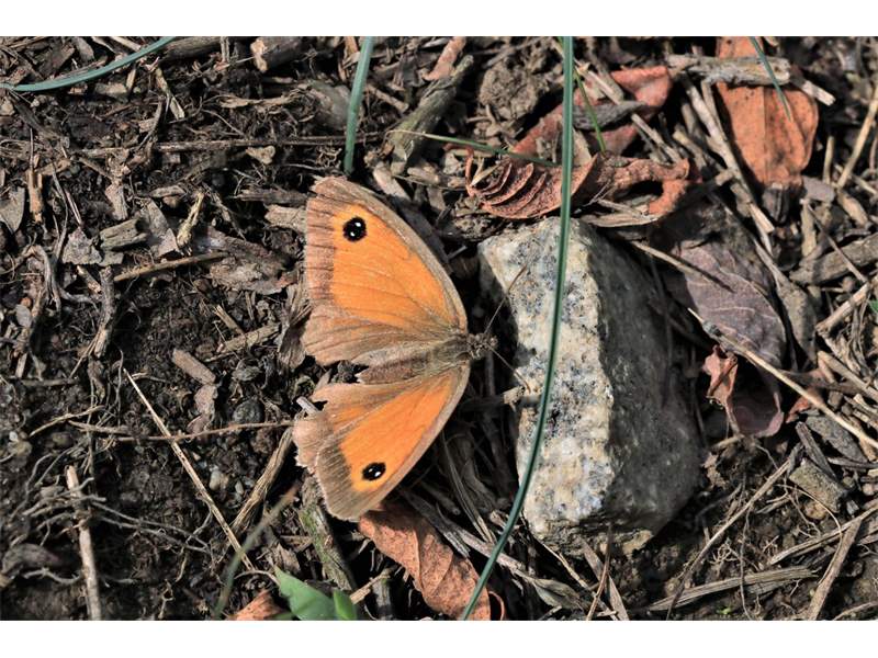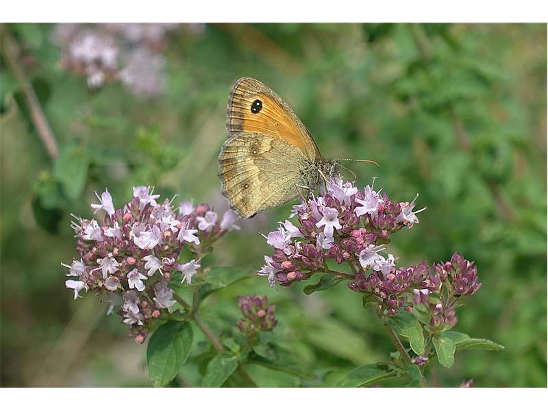 Rotbraunes Ochsenauge (Pyronia tithonus (Linnaeus, 1767)) Anfang Juli 2019, Bröthener Heide, nahe Hoyerswerda, am Bahndamm (© Martina Görner)( Bild vergrößern)