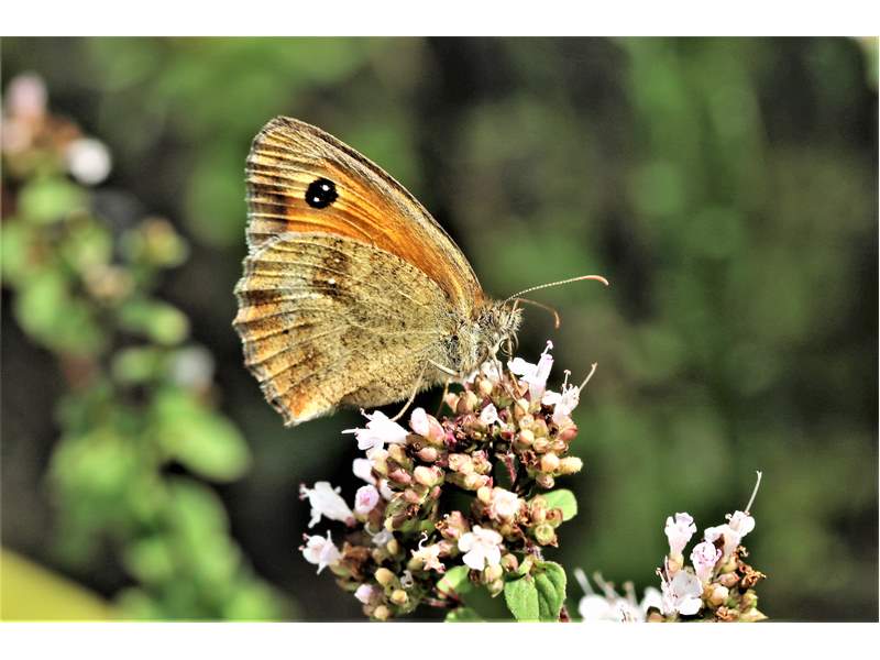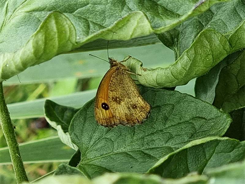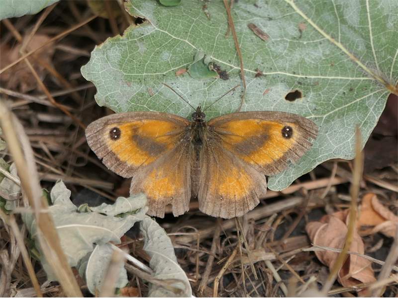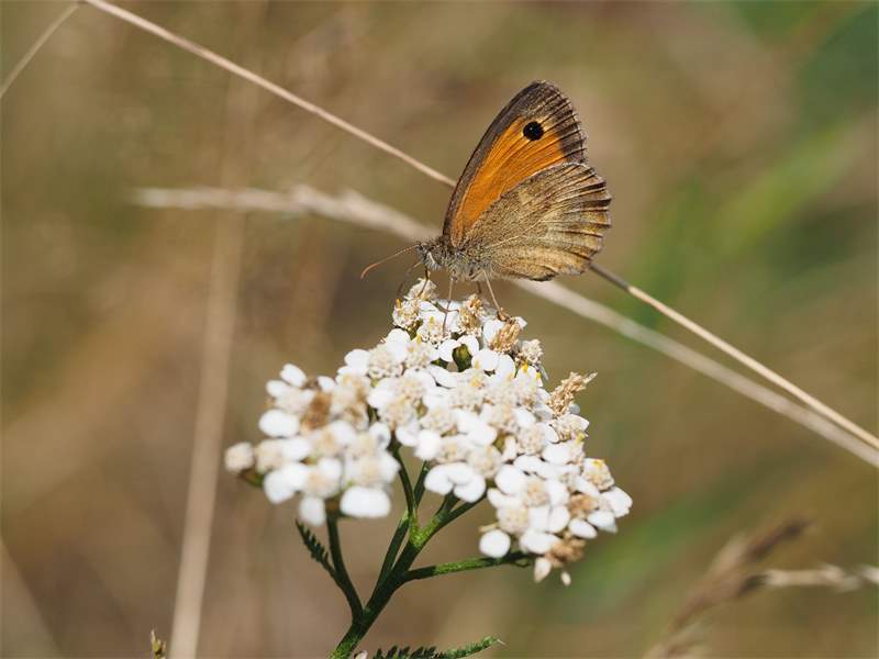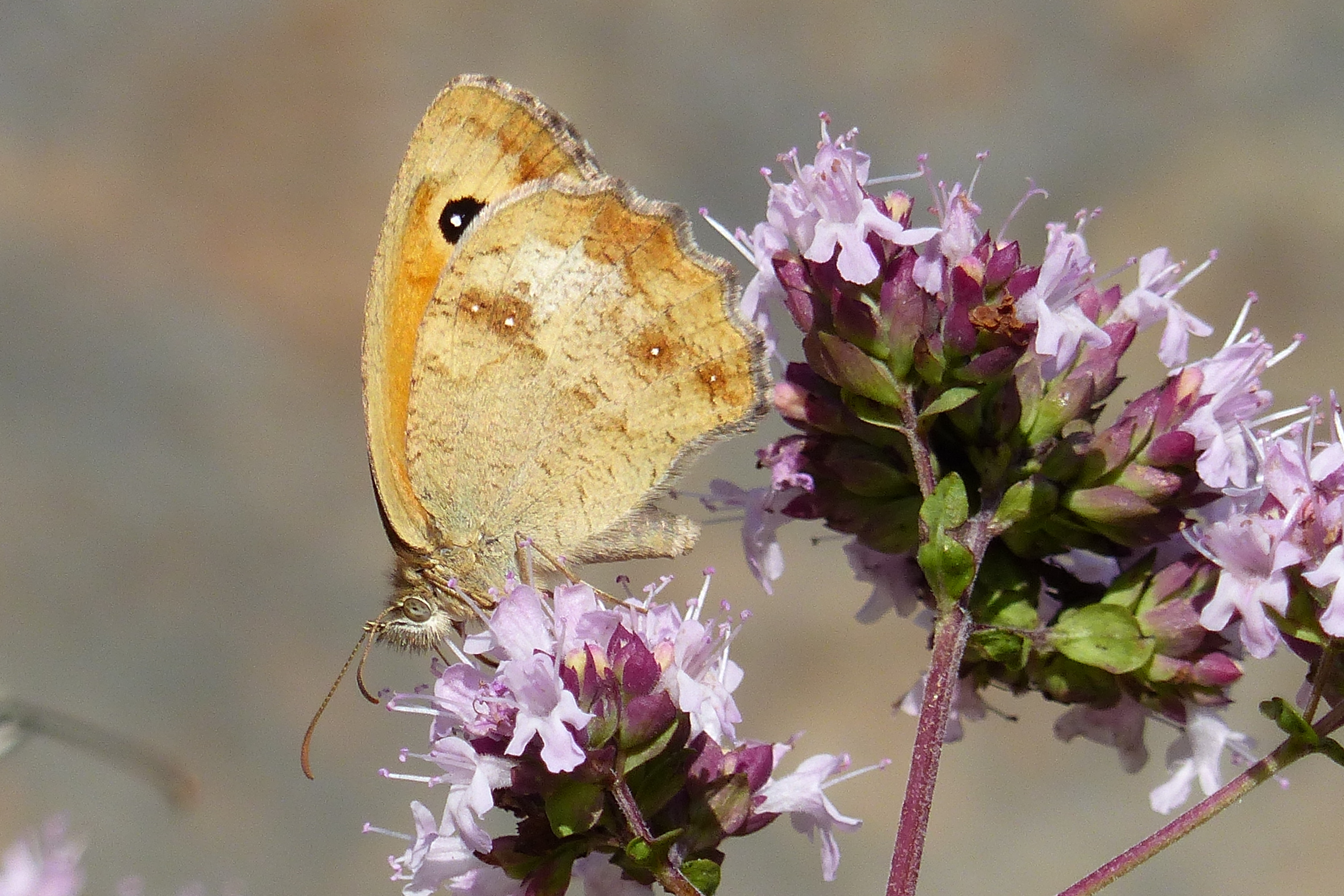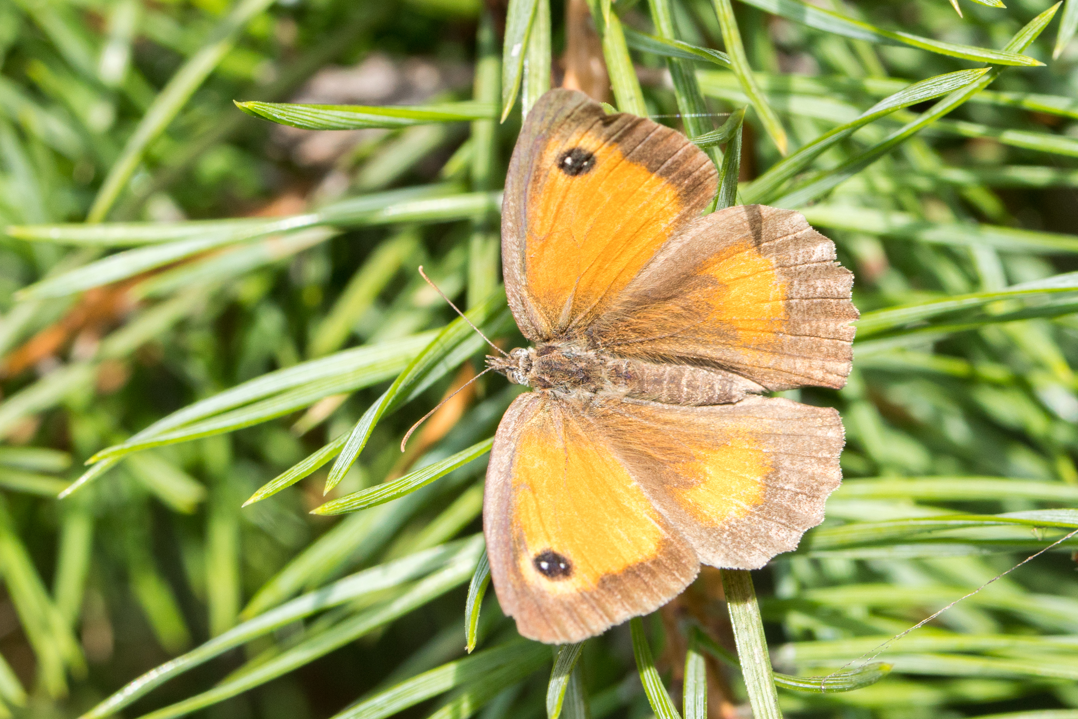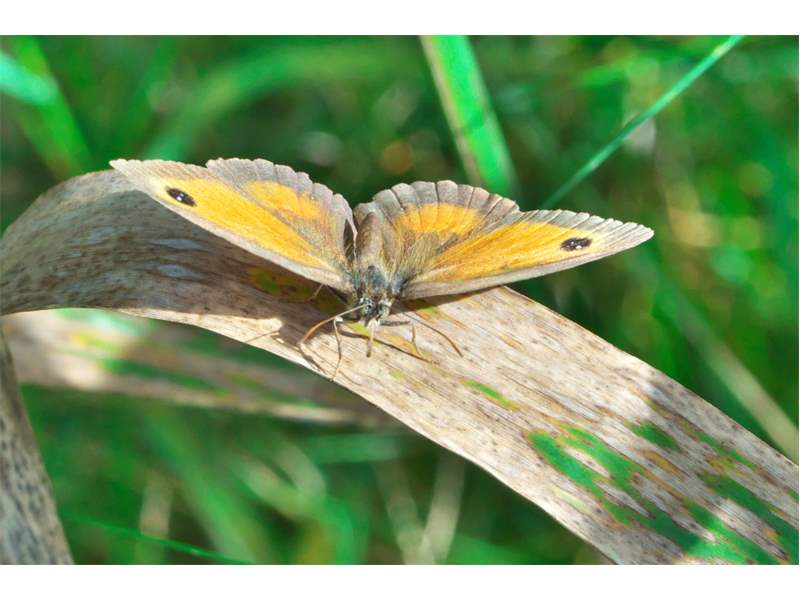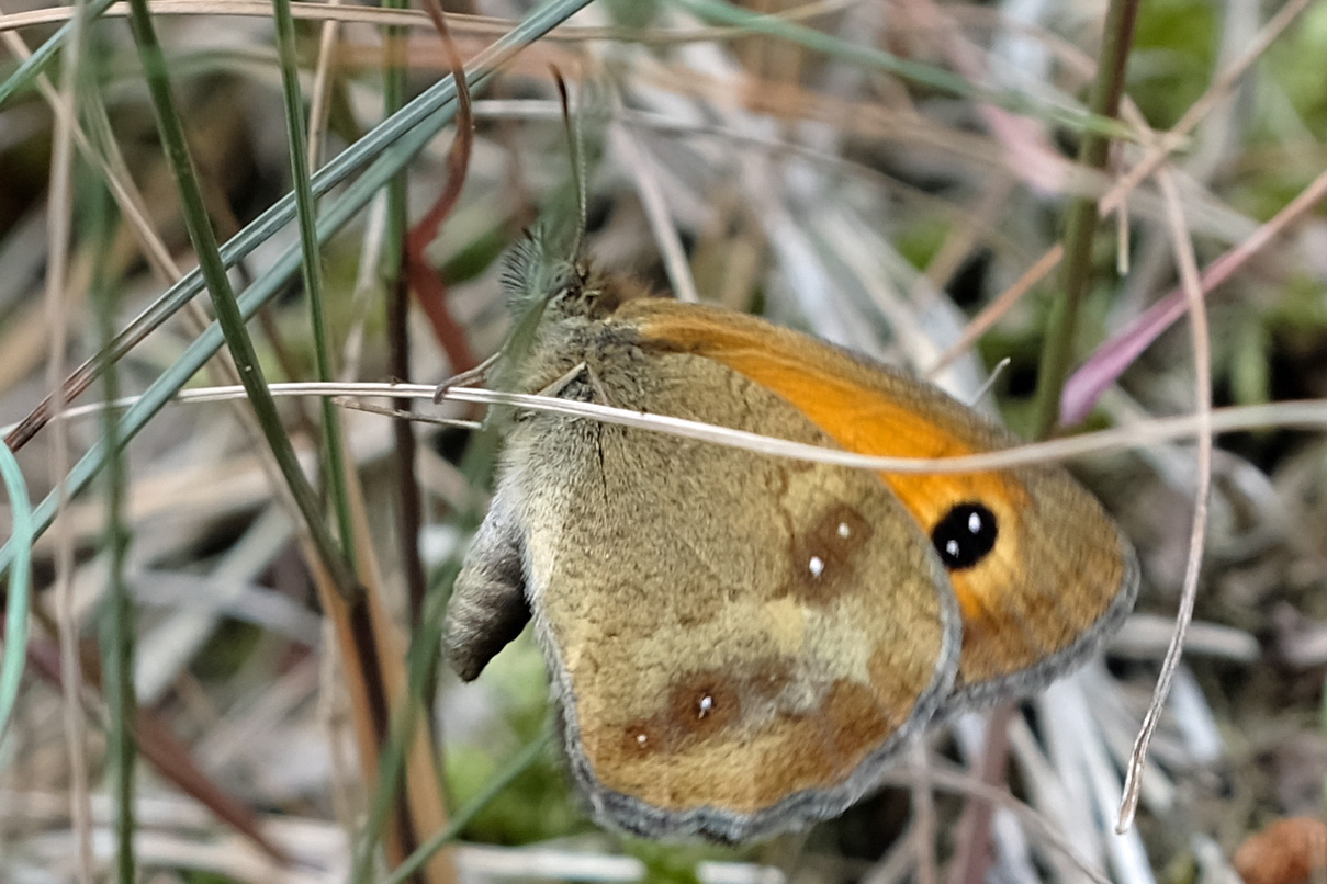 Rotbraunes Ochsenauge (Pyronia tithonus (Linnaeus, 1767)) Anfang Juli 2019, Bröthener Heide, nahe Hoyerswerda, am Bahndamm (© Martina Görner)( Bild vergrößern)