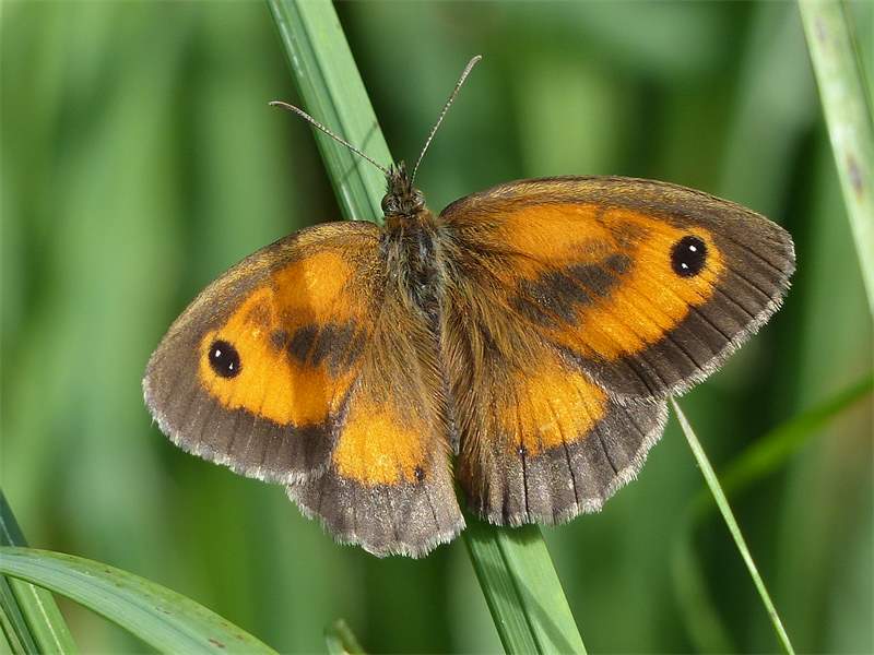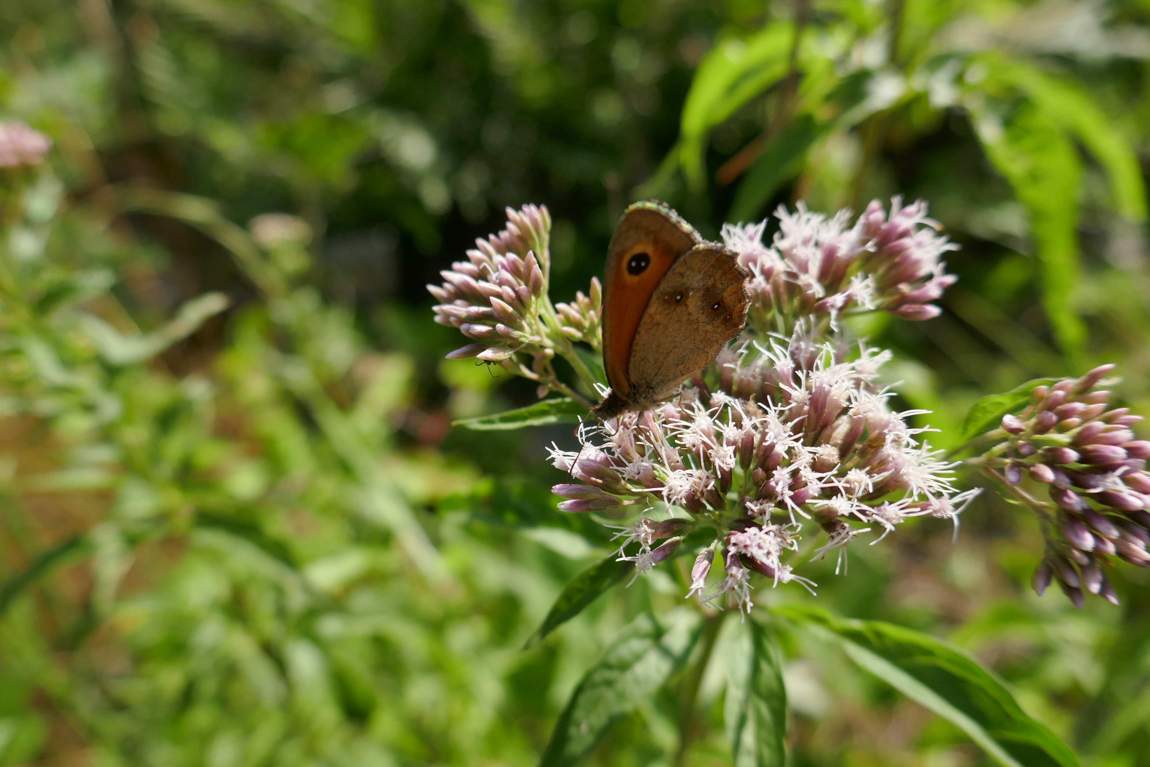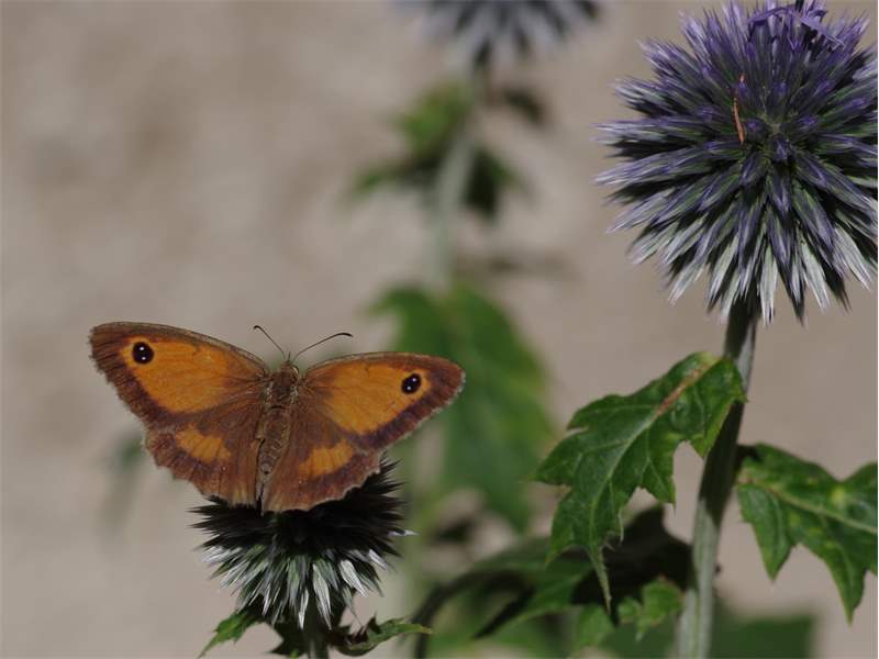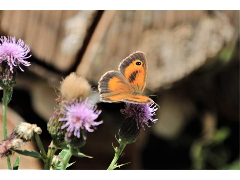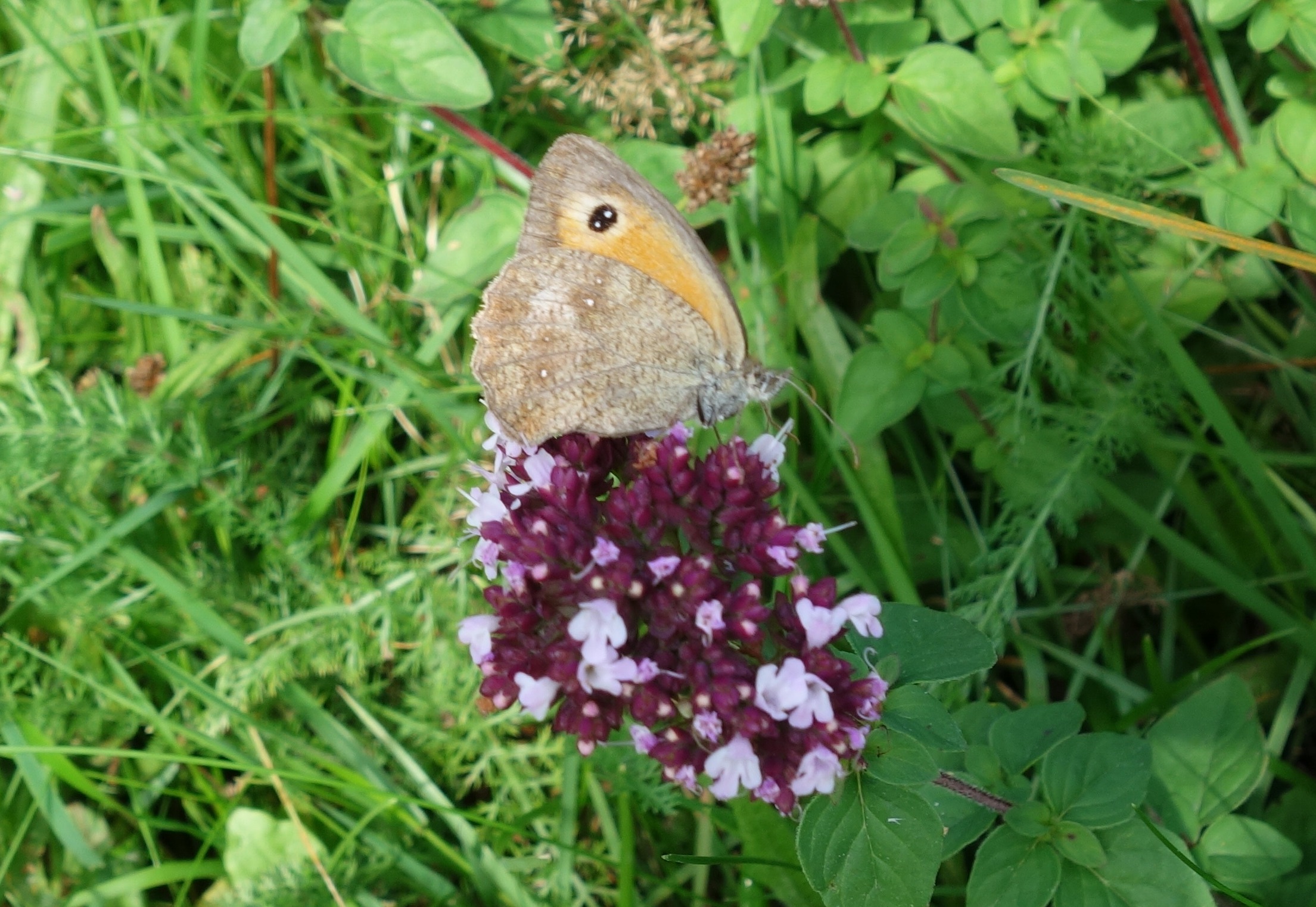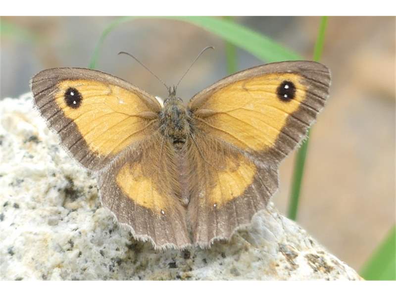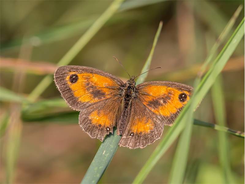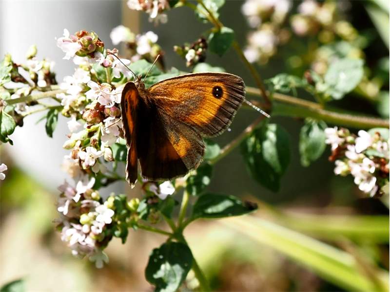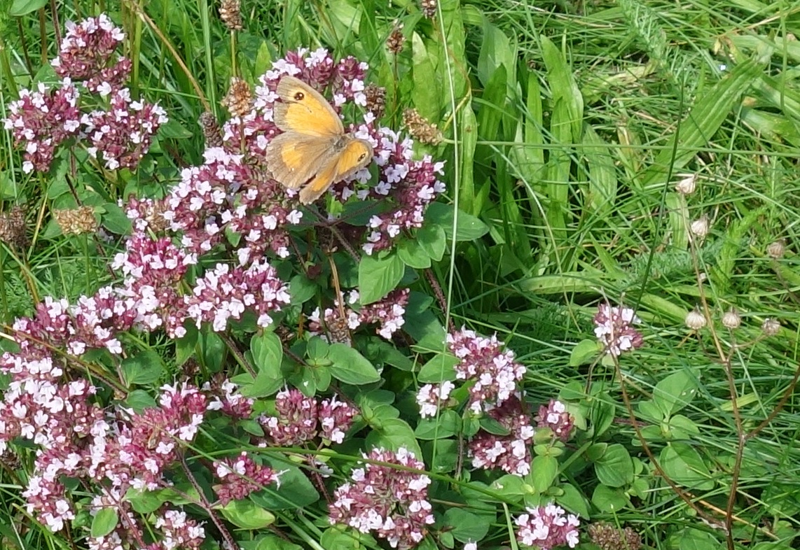 Rotbraunes Ochsenauge (Pyronia tithonus (Linnaeus, 1767)) Anfang Juli 2019, Bröthener Heide, nahe Hoyerswerda, am Bahndamm (© Martina Görner)( Bild vergrößern)
