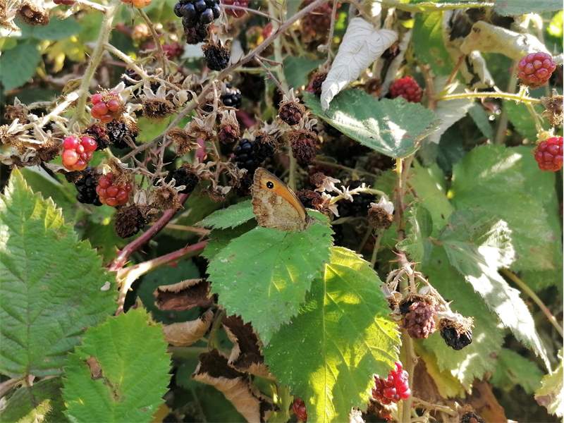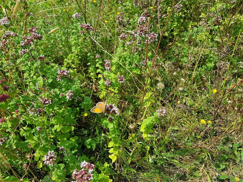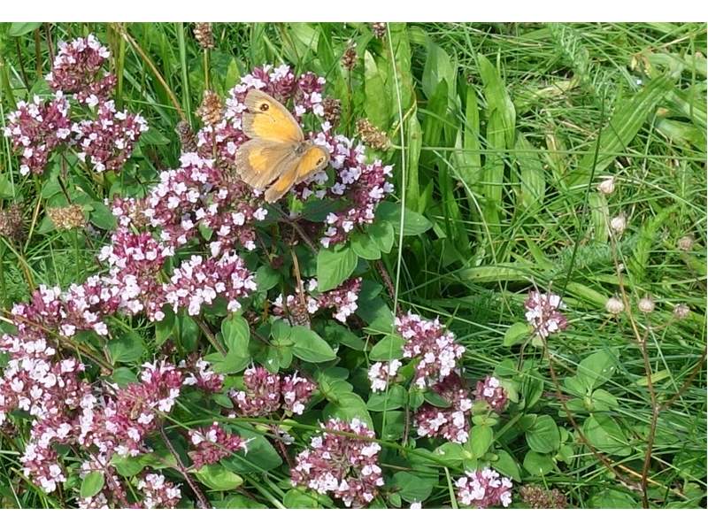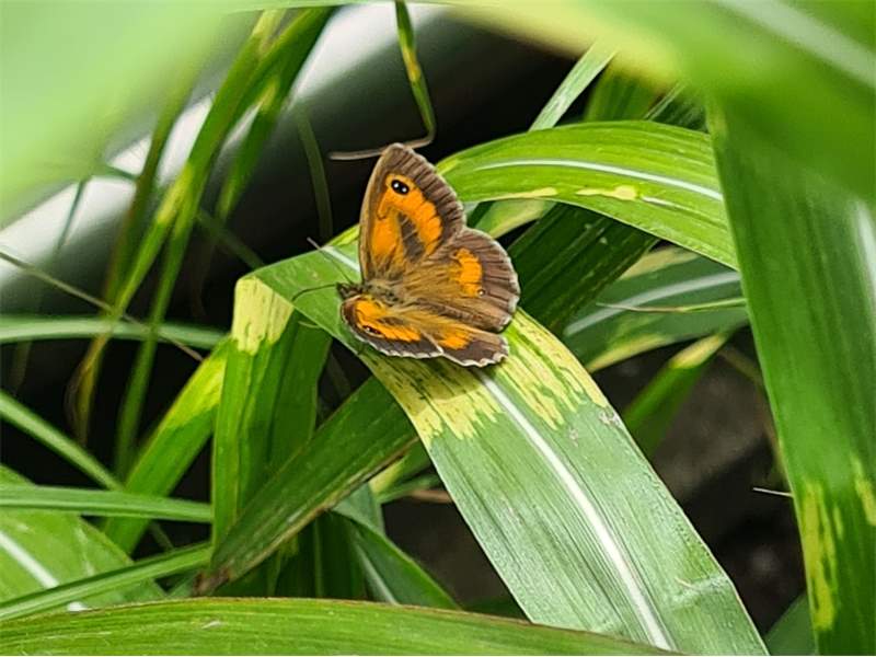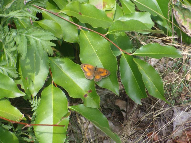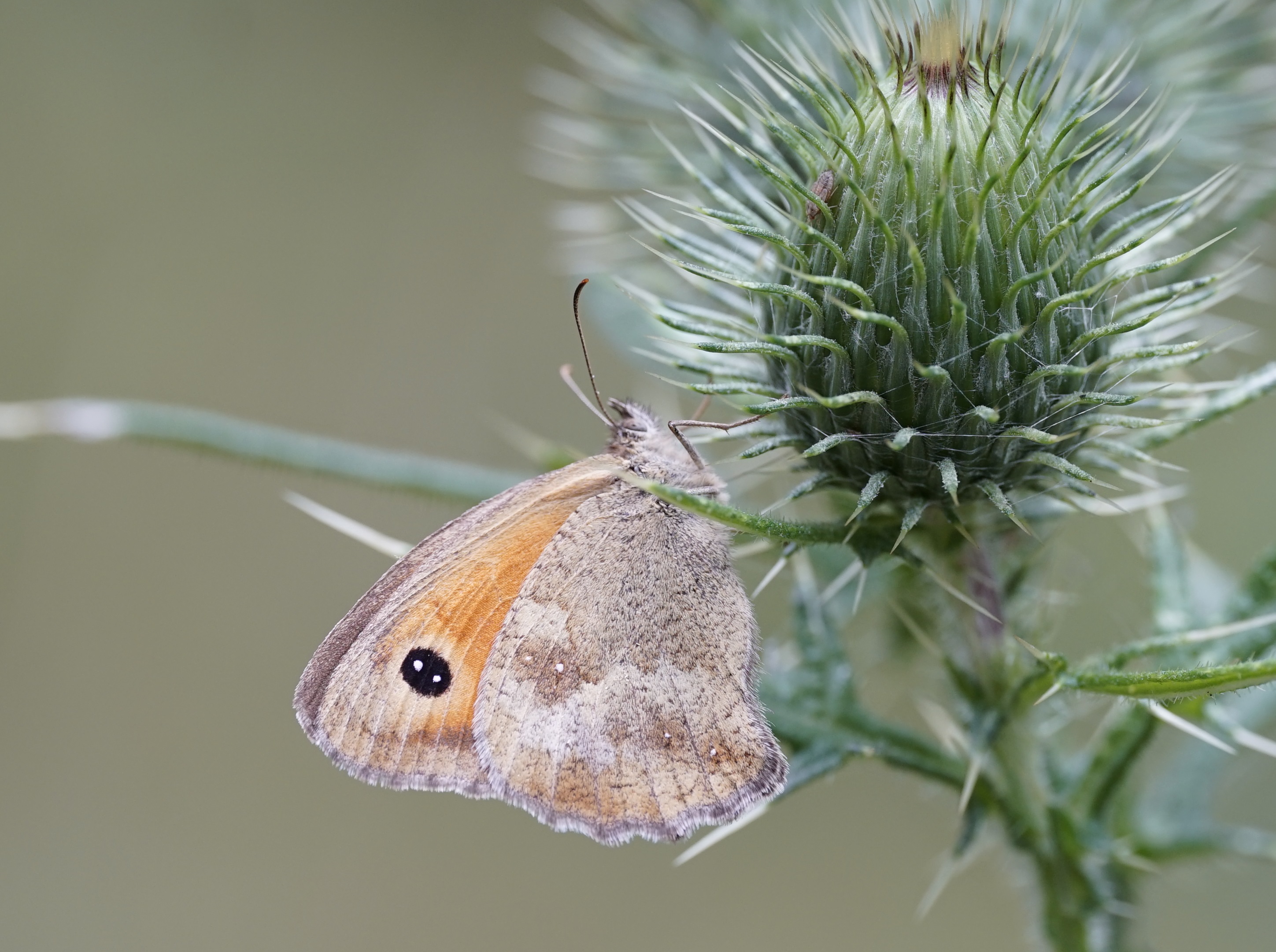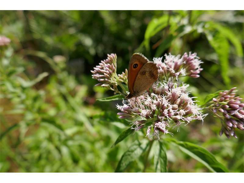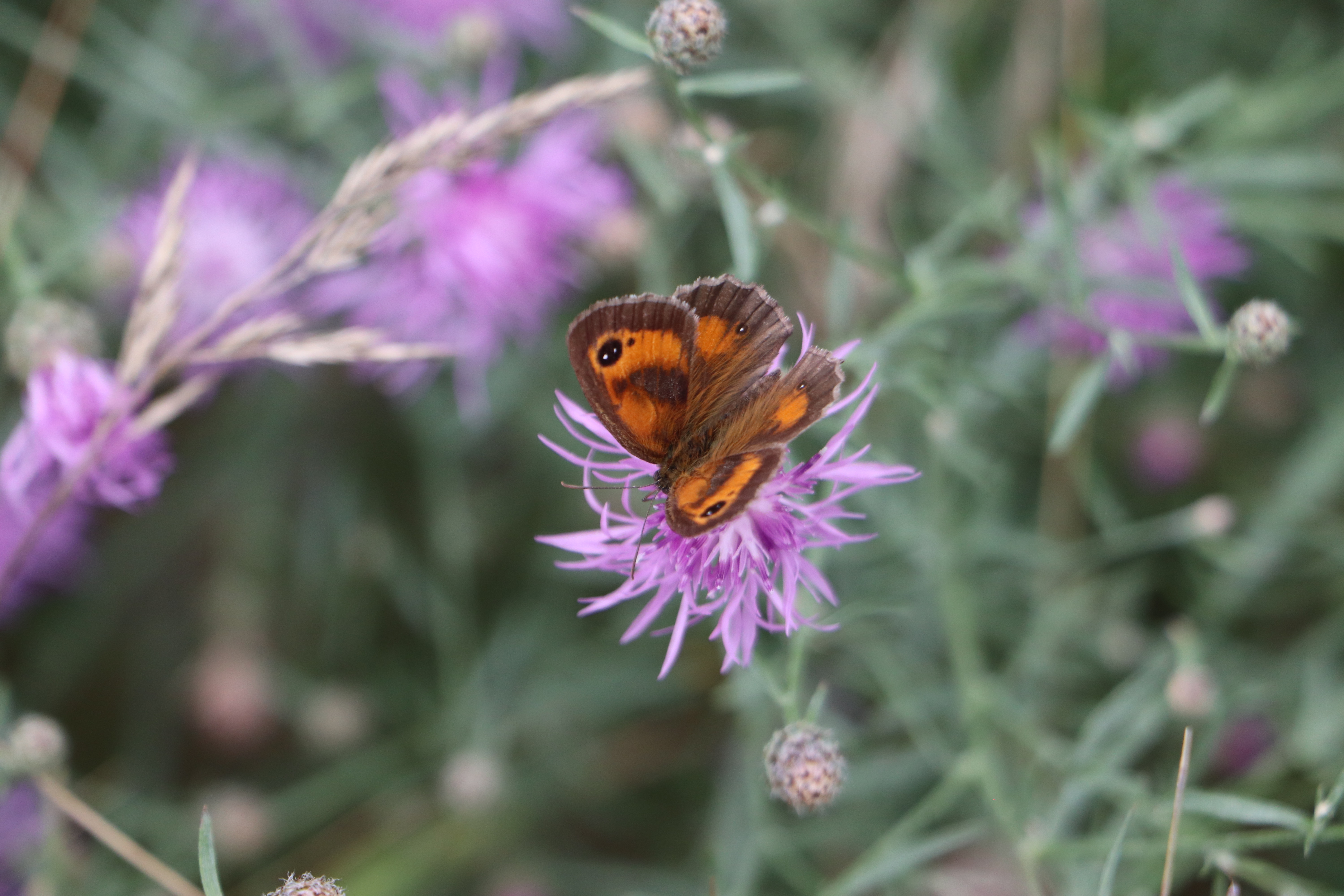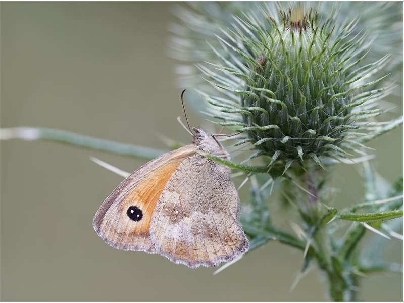 Rotbraunes Ochsenauge (Pyronia tithonus (Linnaeus, 1767)) Anfang Juli 2019, Bröthener Heide, nahe Hoyerswerda, am Bahndamm (© Martina Görner)( Bild vergrößern)