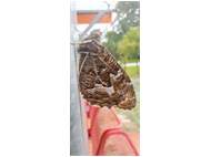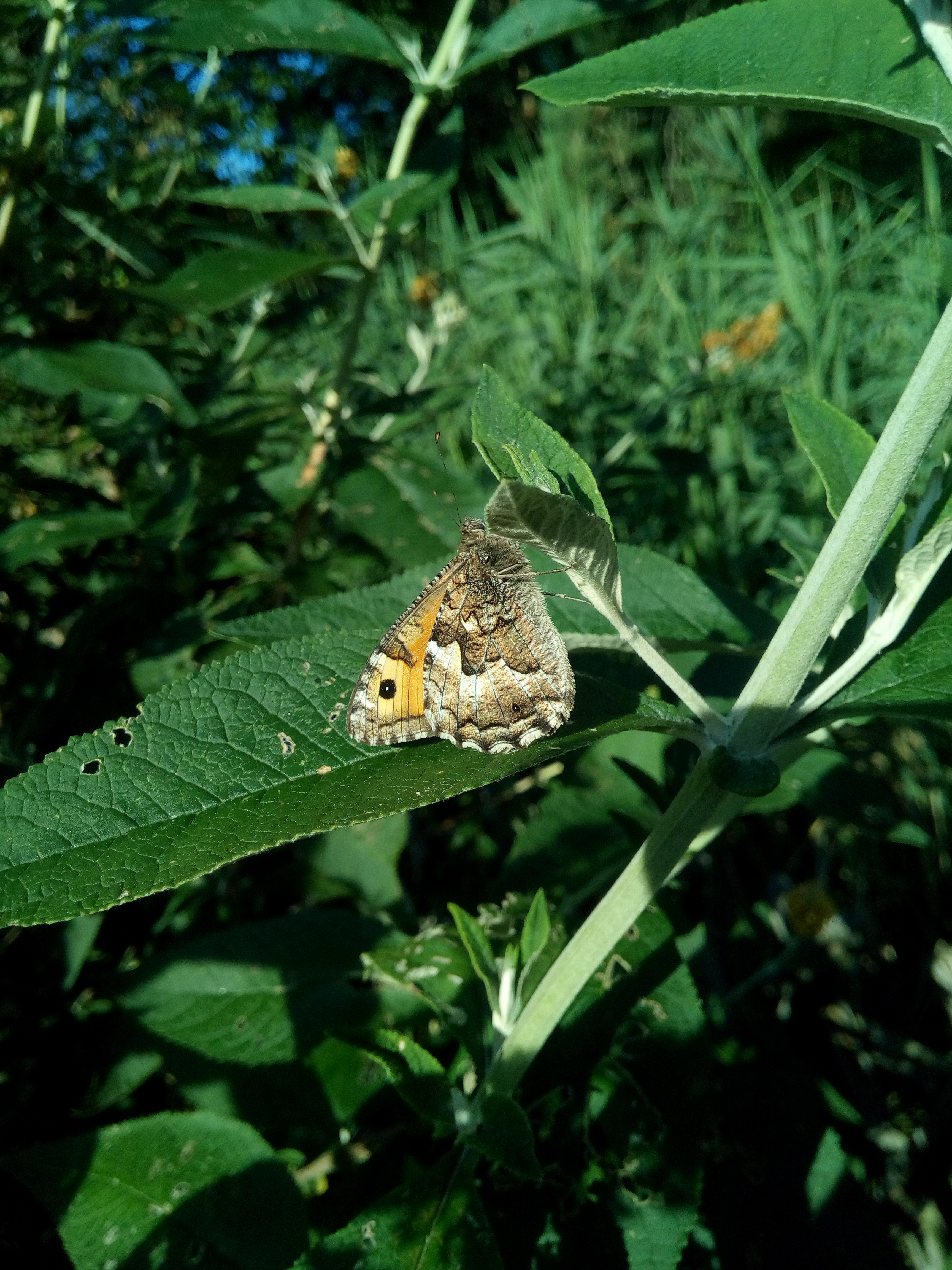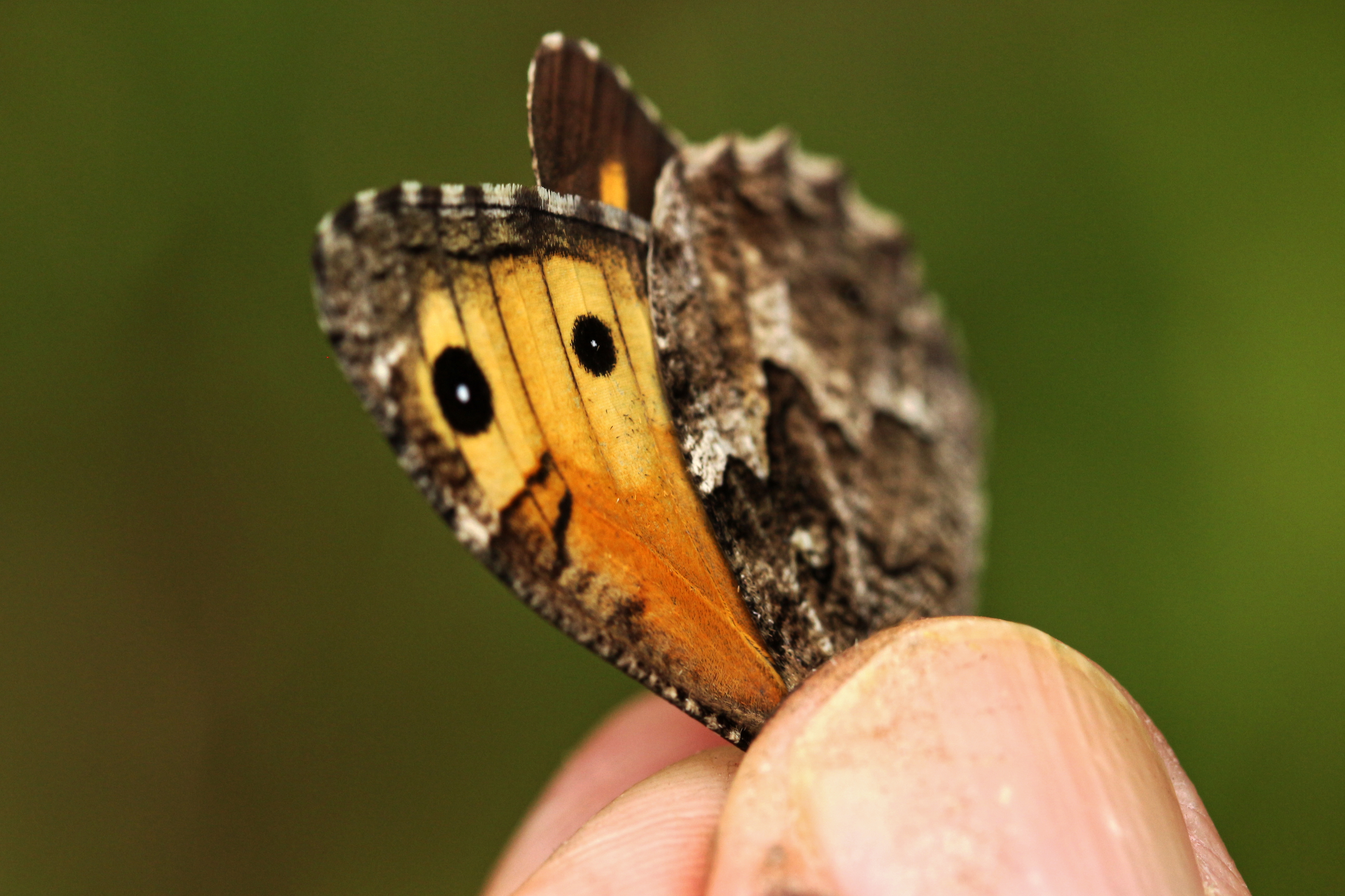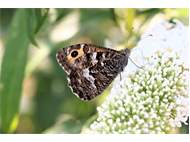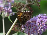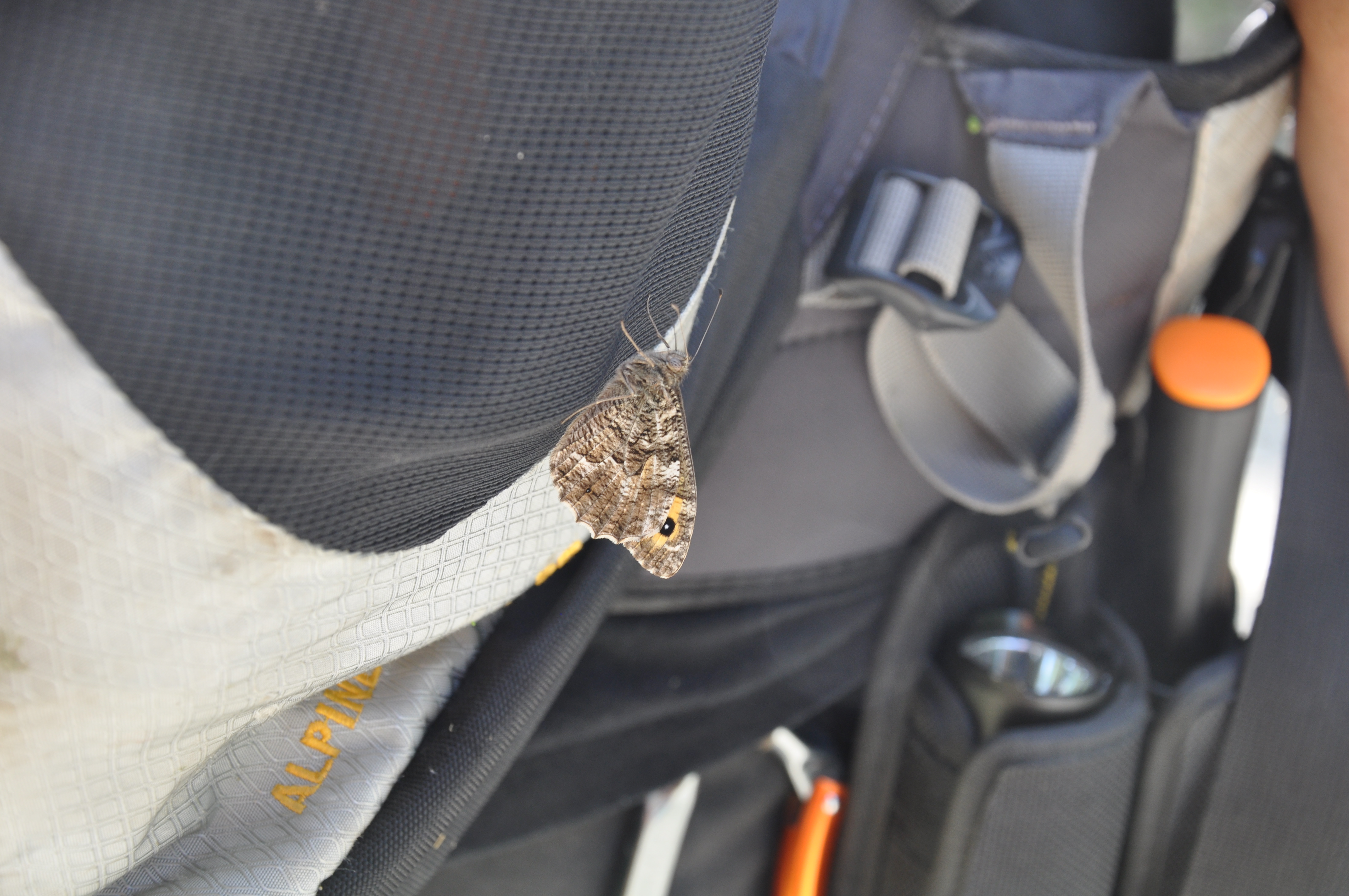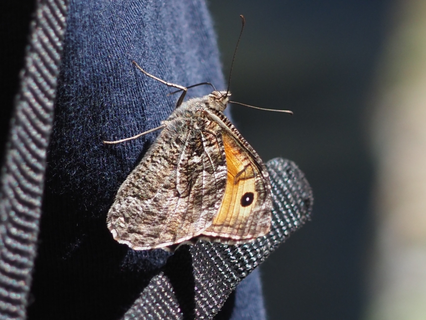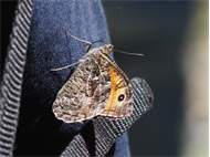 Gern kommen Augenfalter wie diese Rostbinde an heißen Sommertagen zu Menschen geflogen, um Schweiß aufzusaugen. Juli 2014, nordwestlich Bärwalde