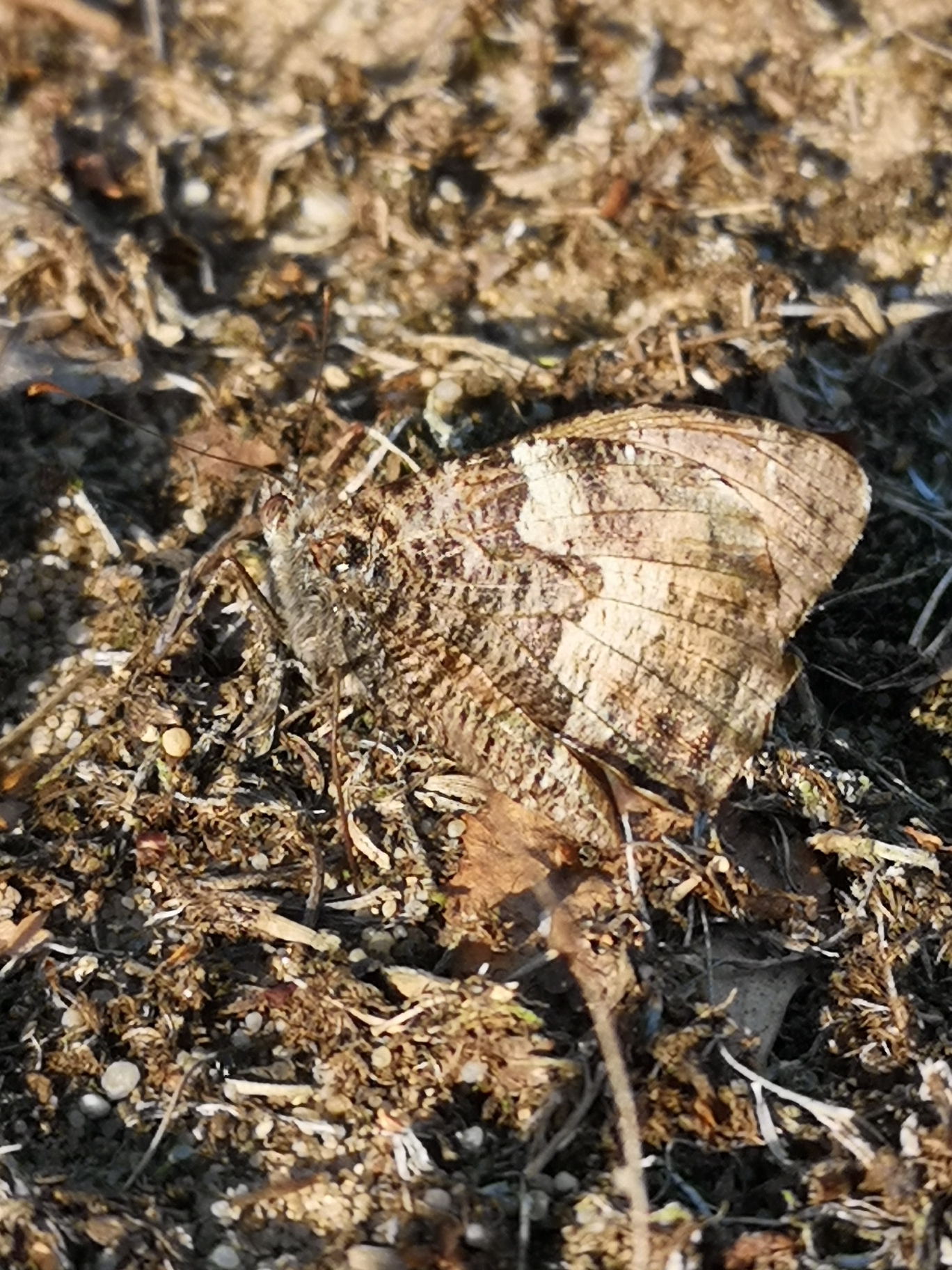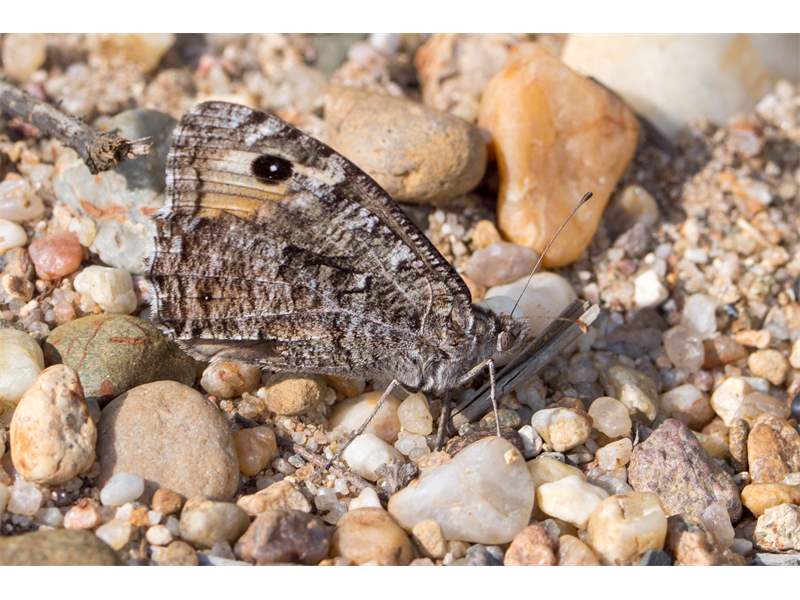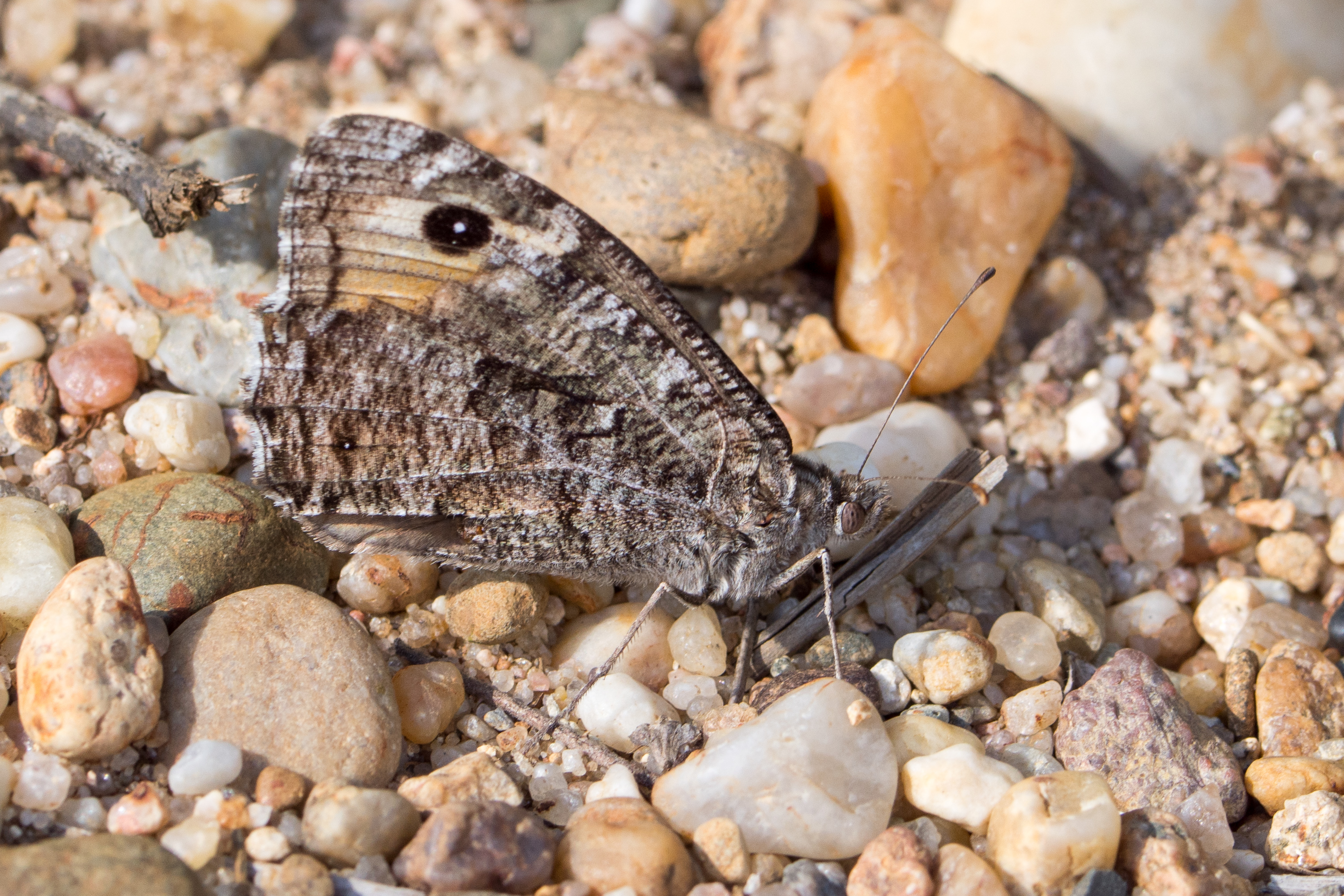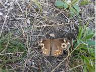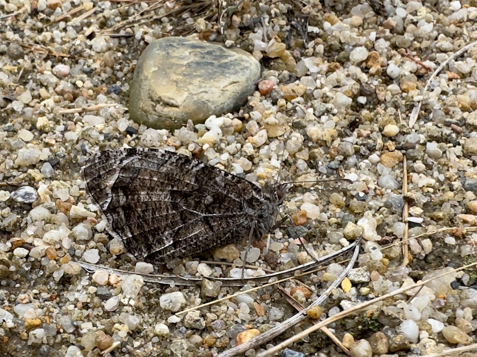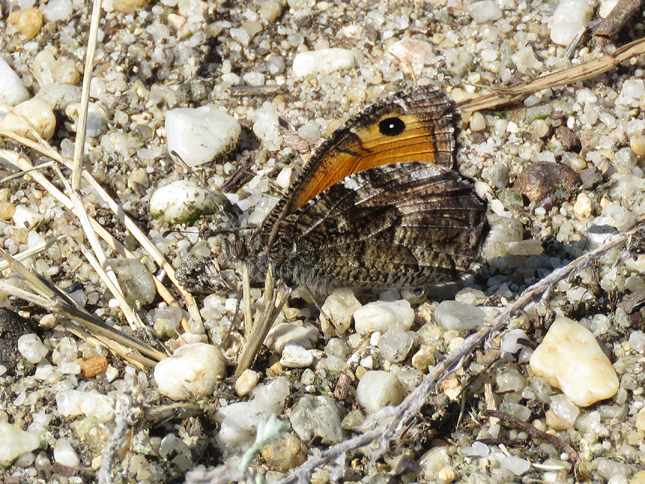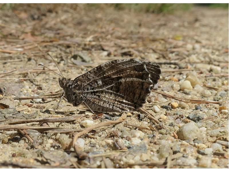 Rostbinde (Hipparchia semele (Linnaeus, 1758)) in der Nähe vom Bernsteinsee, Anfang August 2019
