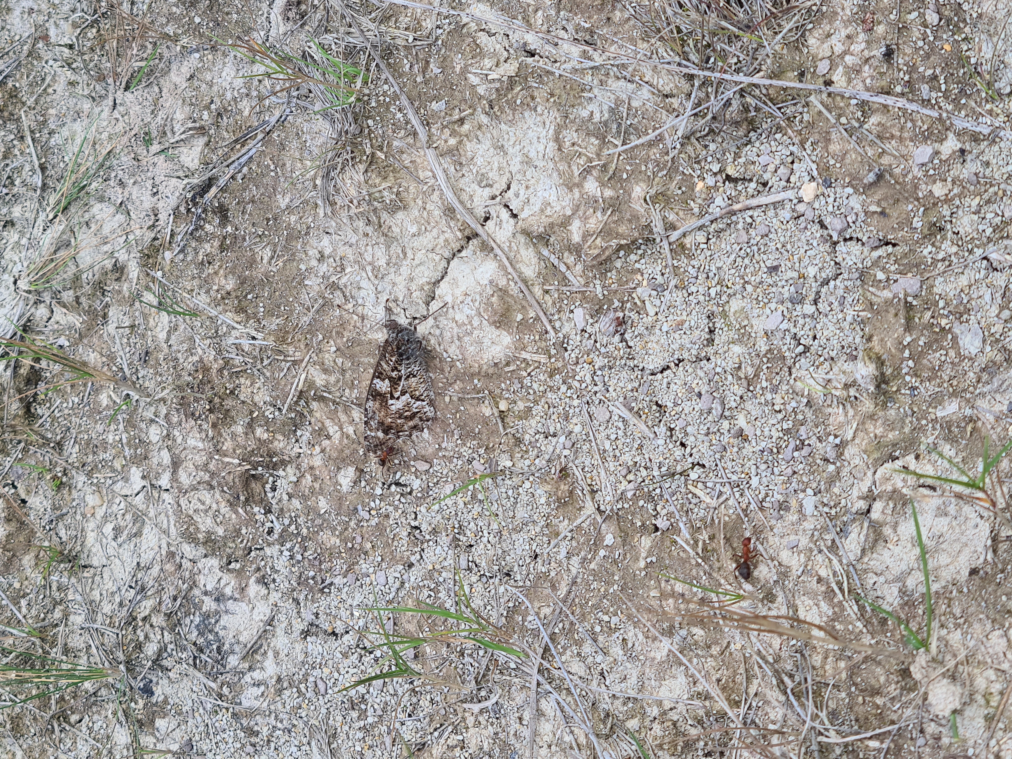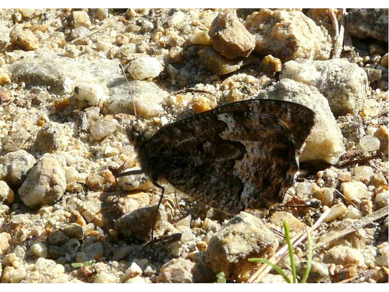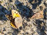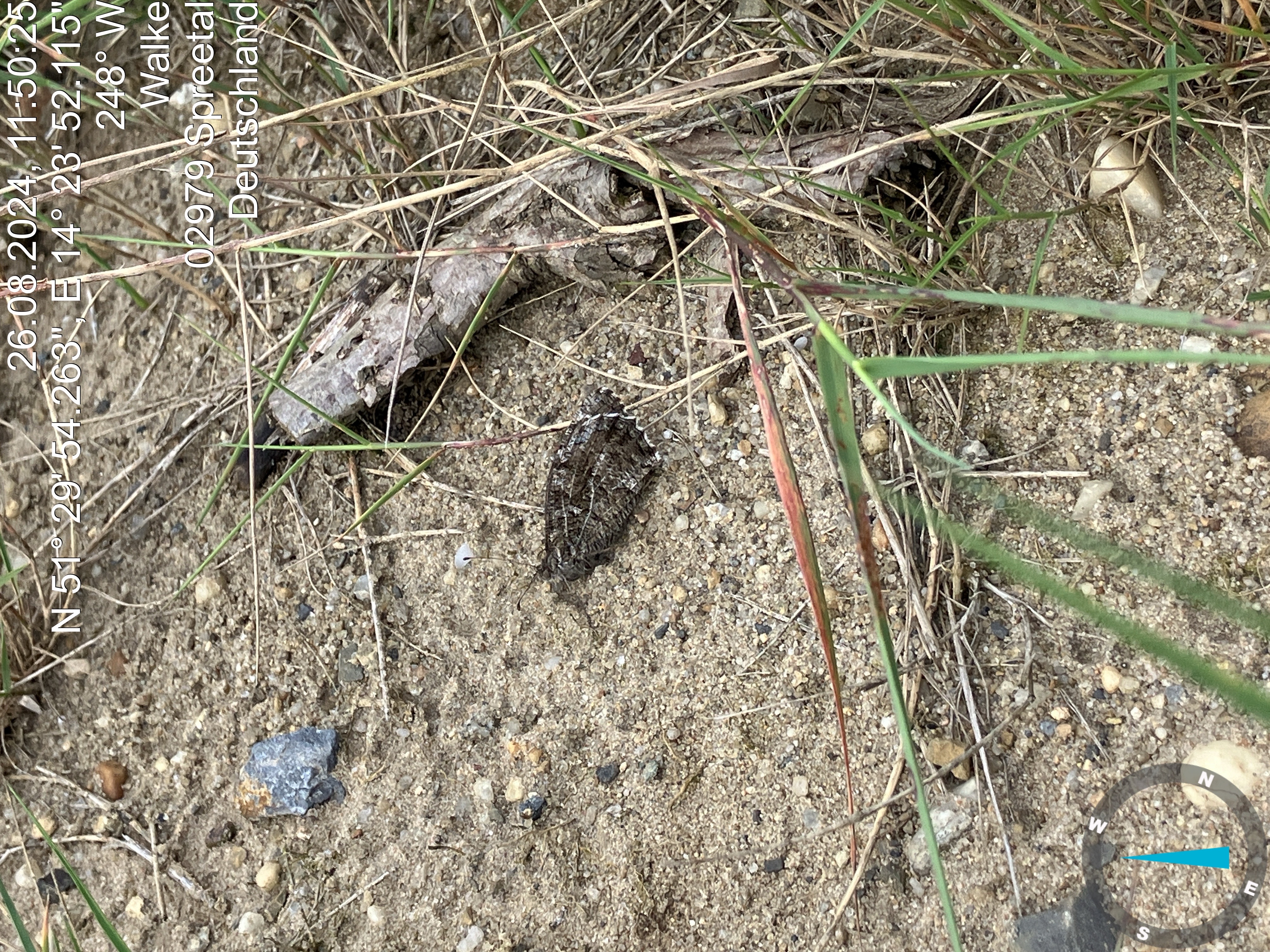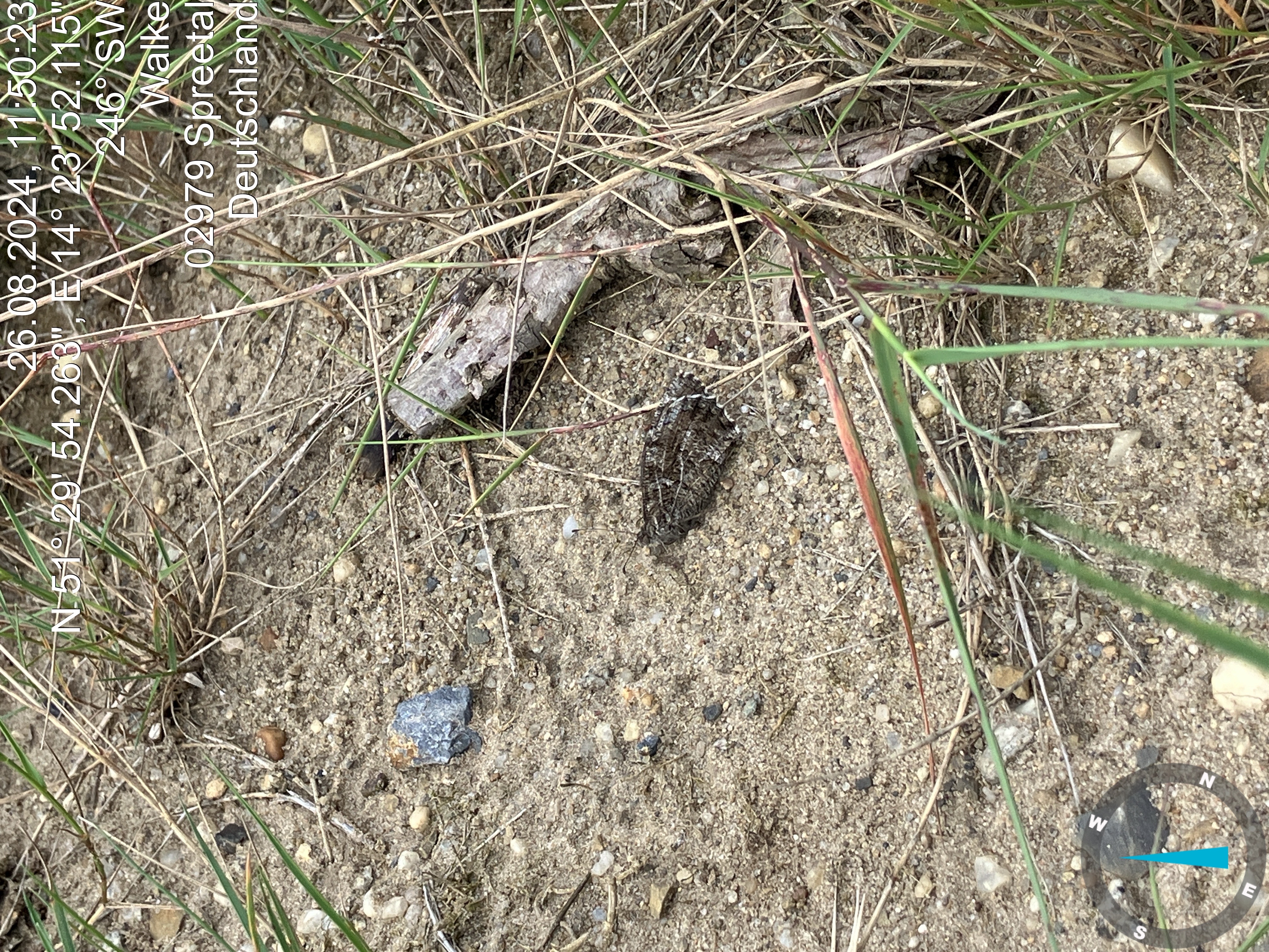 Rostbinden auf sandigem, mit feinem Schotter bedeckten Waldwegen im Juli 2014 nordöstlich Mühlrose