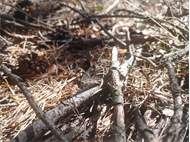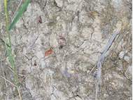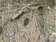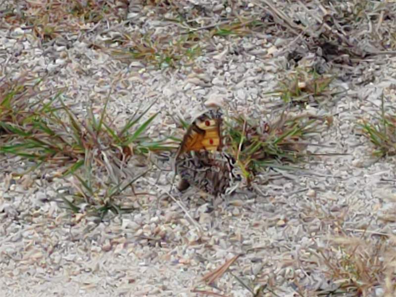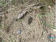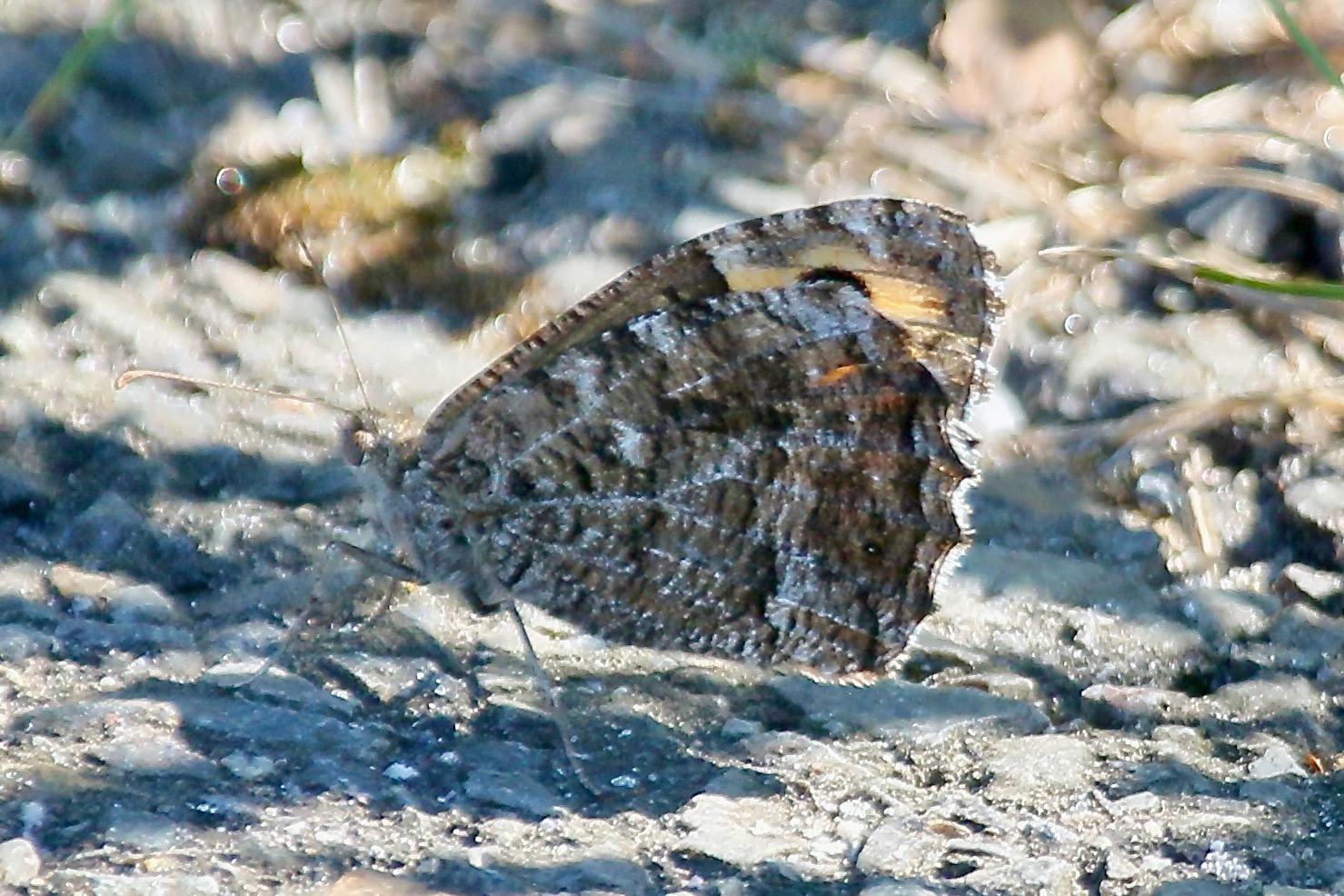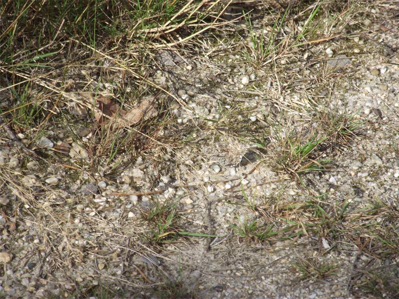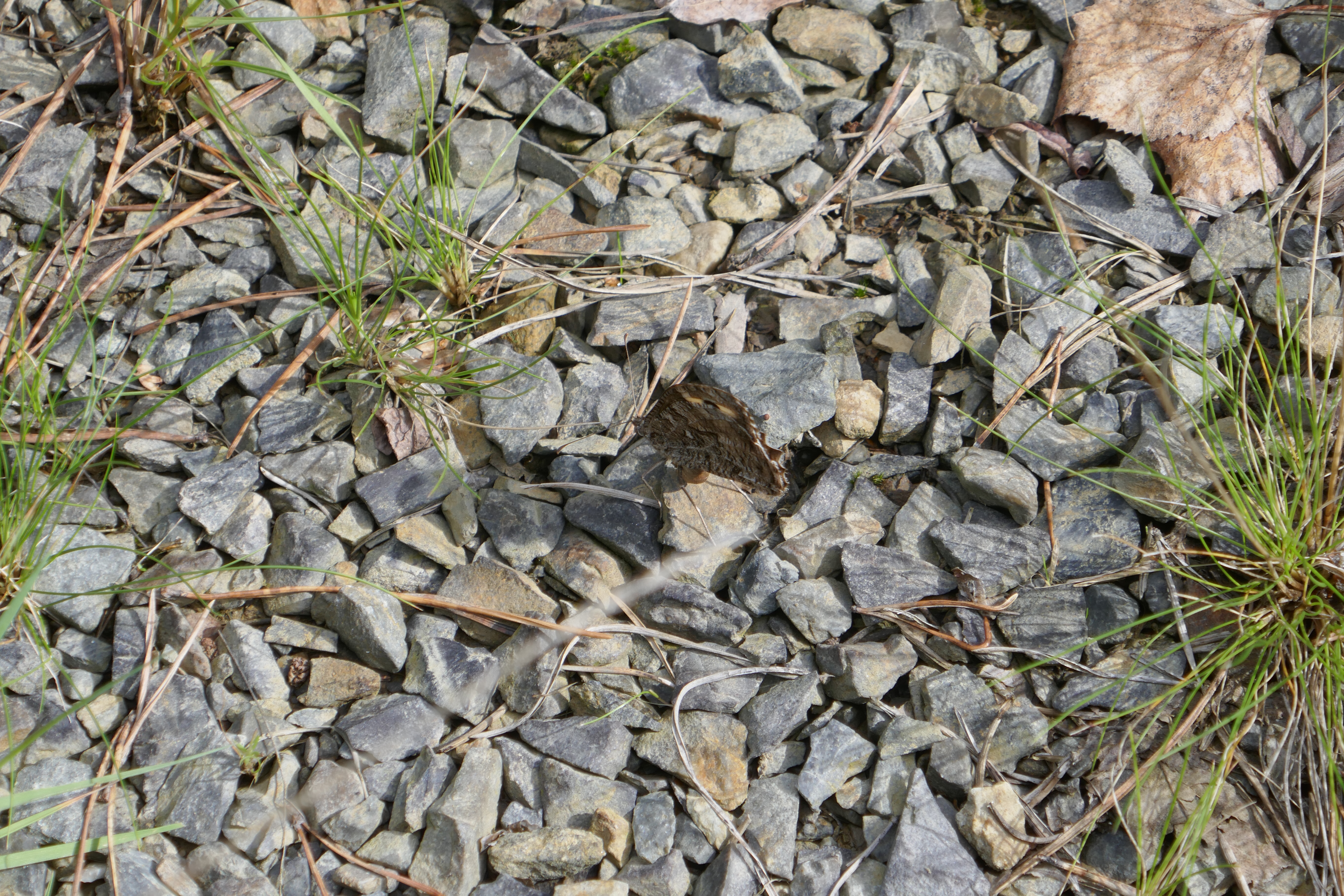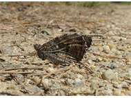 Rostbinden auf sandigem, mit feinem Schotter bedeckten Waldwegen im Juli 2014 nordöstlich Mühlrose