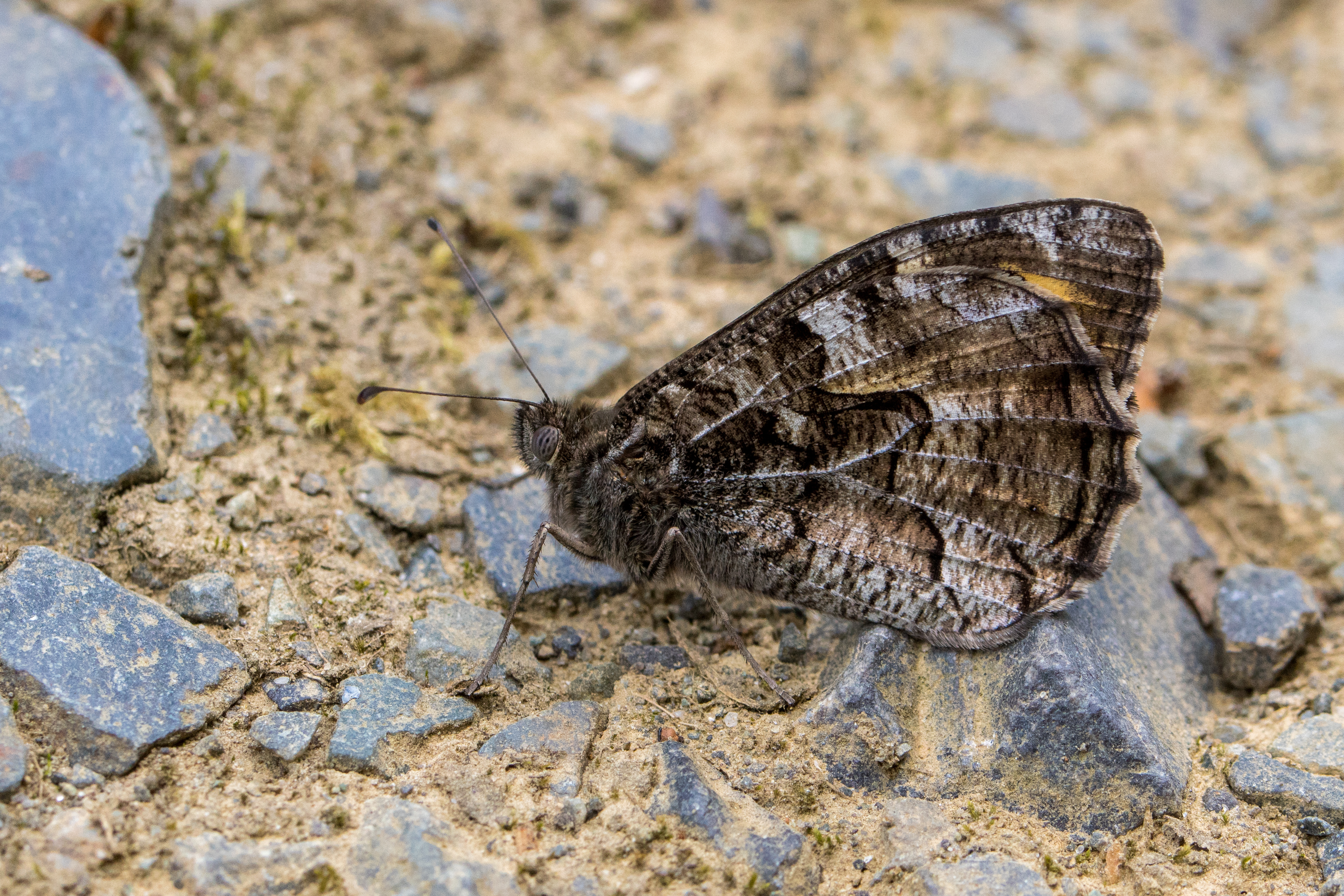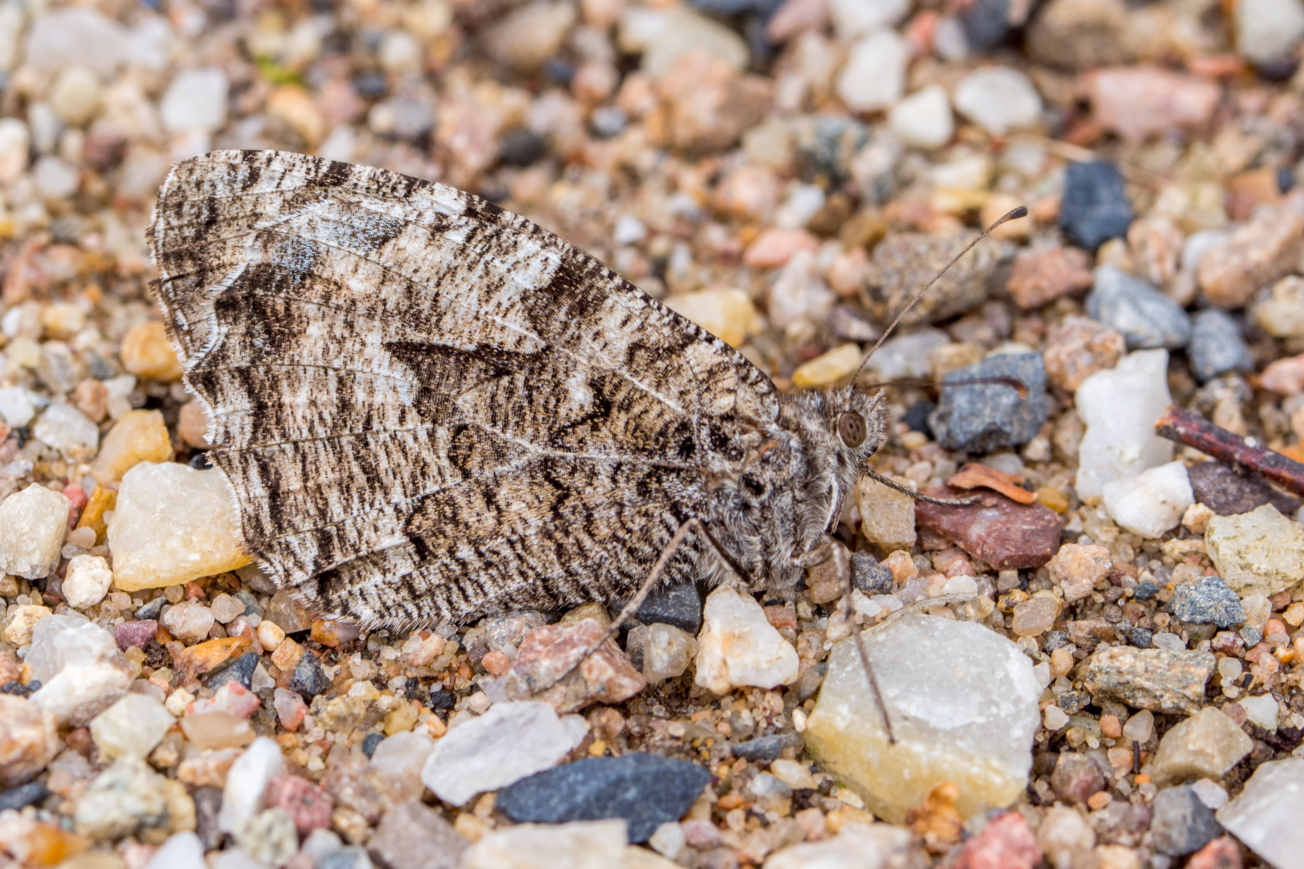 Rostbinde (Hipparchia semele (Linnaeus, 1758)), im Findlingspark Nochten bei Boxberg, Juni 2018
