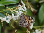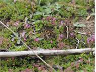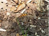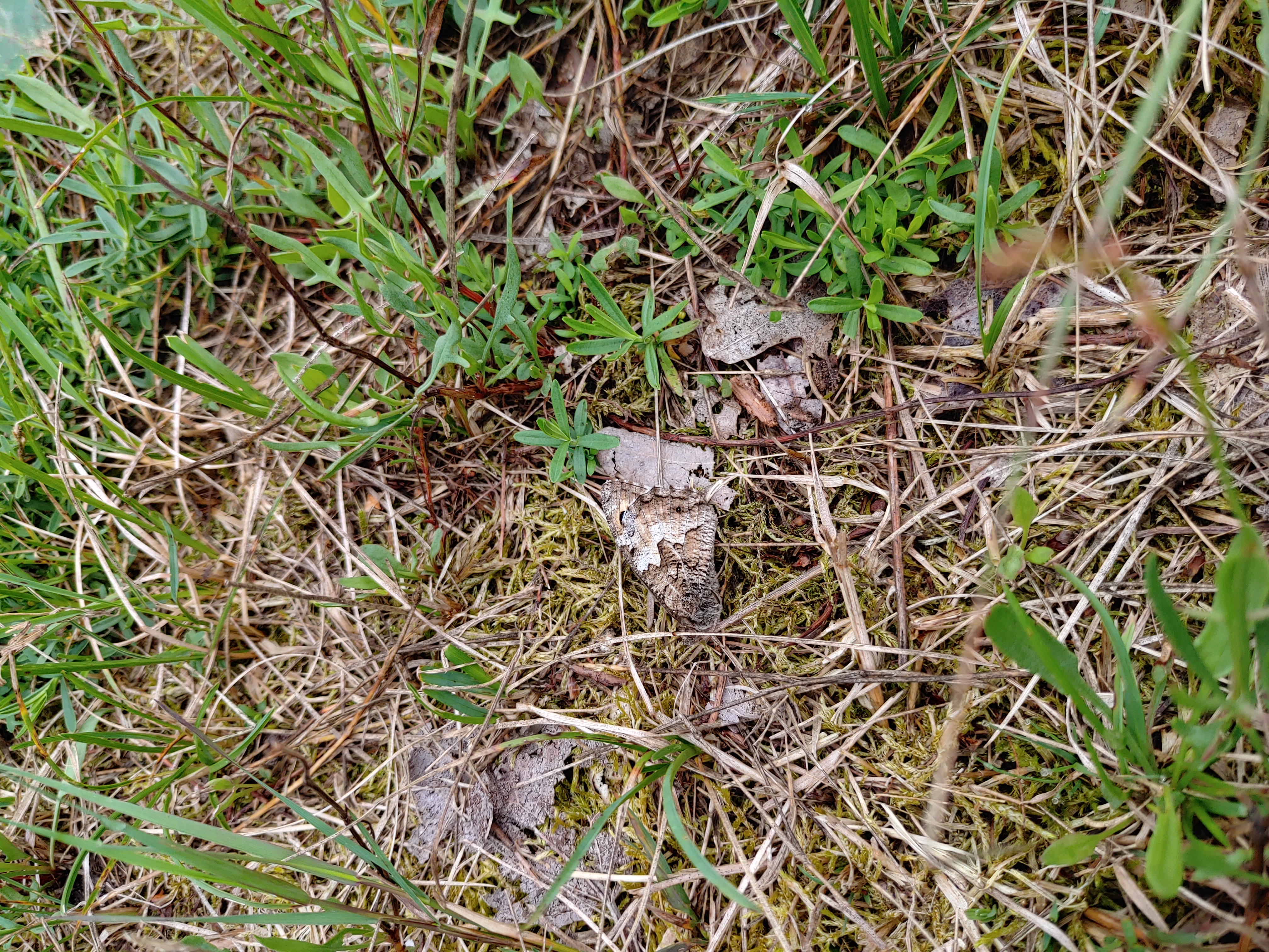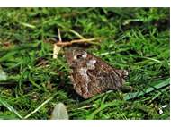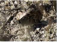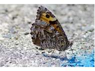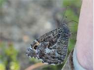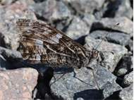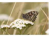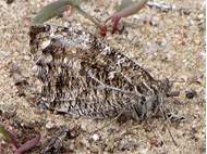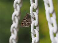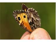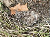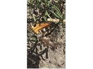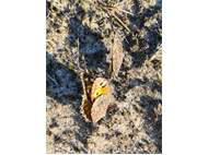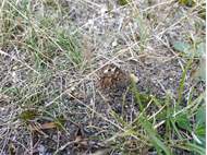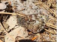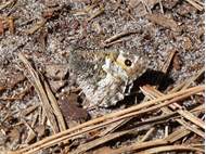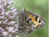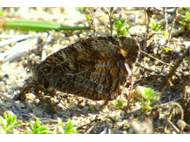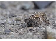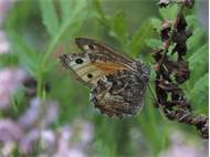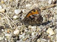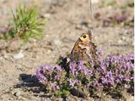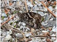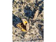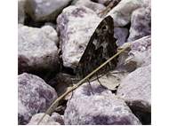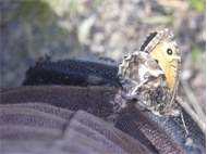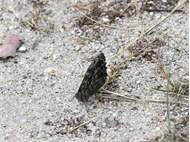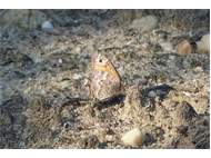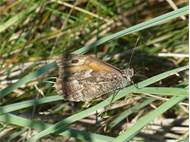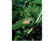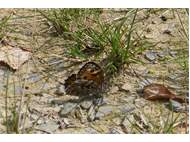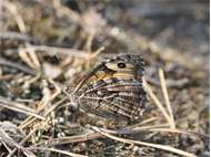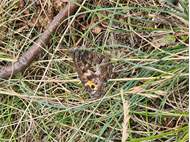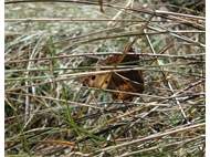 Rostbinde bei schlechtem Wetter auf dem Boden ruhend. Tagebaufolgelandschaft nördlich Bärwalde, 02.08.2009