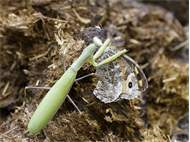 Lauta, Johannisthal, 27. August 2025, beim Mineralien aufnehmen von einer Gottesanbeterin erbeutet