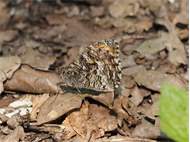 Rostbinde (Hipparchia semele (Linnaeus, 1758)) in einem Wald in Pape, 15.07.2019