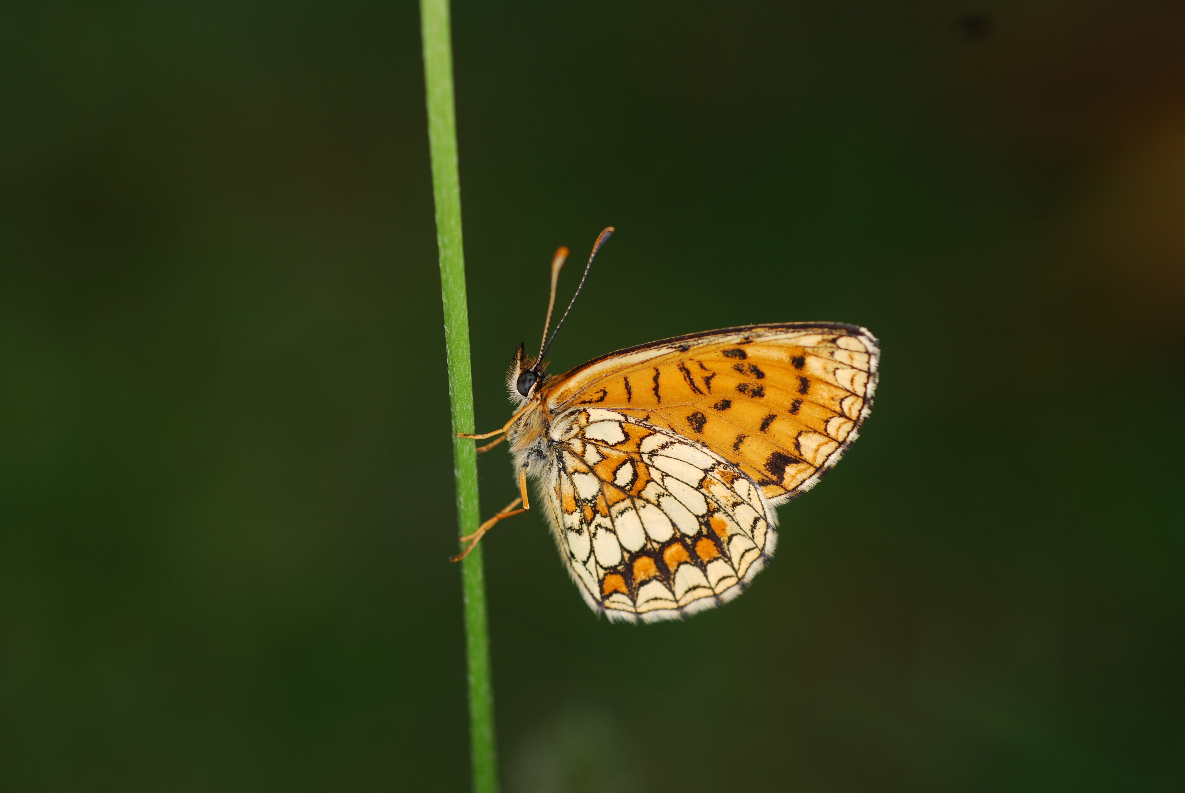 Männlicher Falter von Melitaea athalia, Flügelunterseite