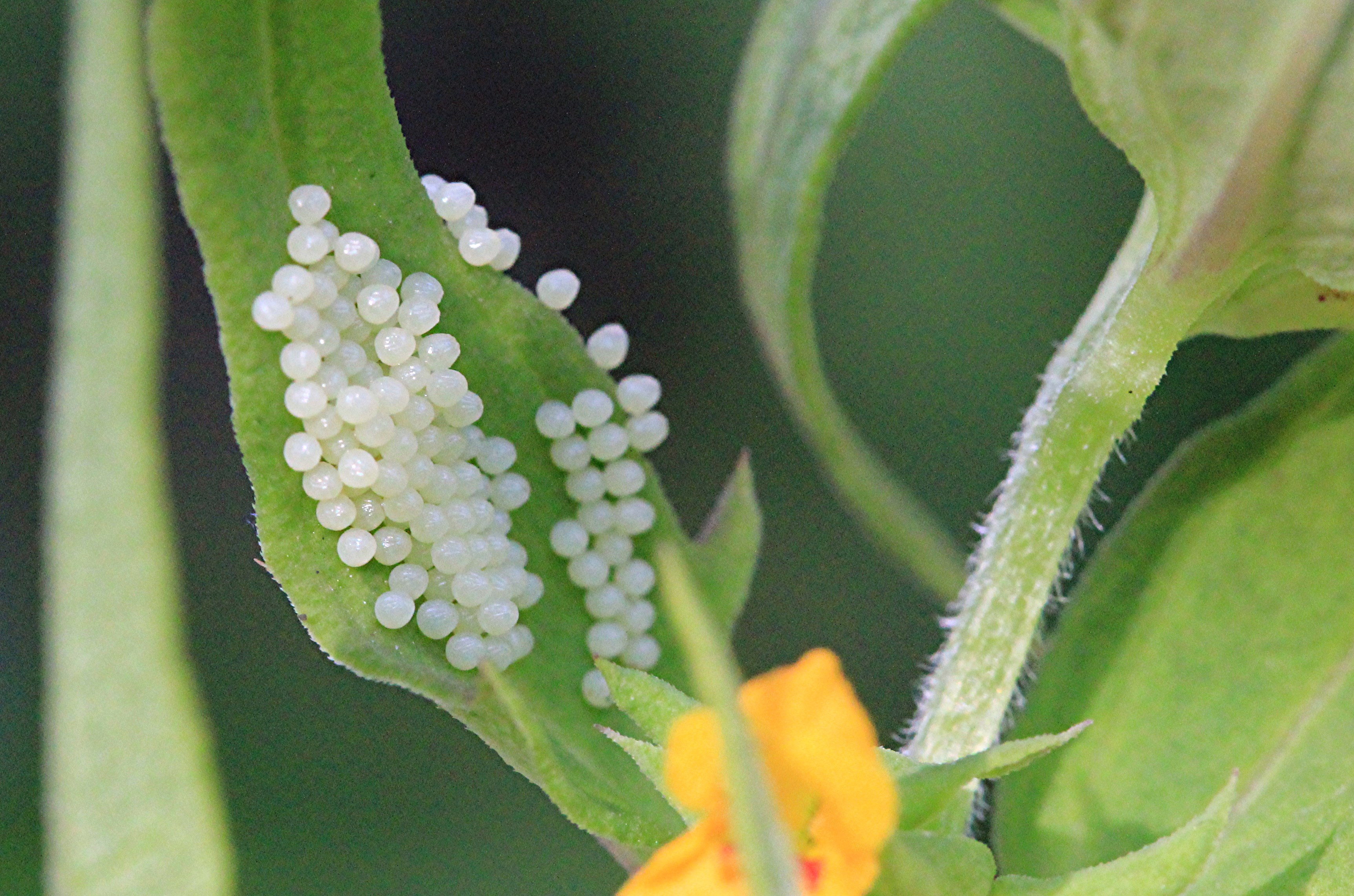 Eispiegel vom Wachtelweizenscheckenfalter abgelegt an Wachtelweizen am 16.7.2013 in Alt-Zauche im Spreewald. (© Matthias Hartung)( Bild vergrößern)
