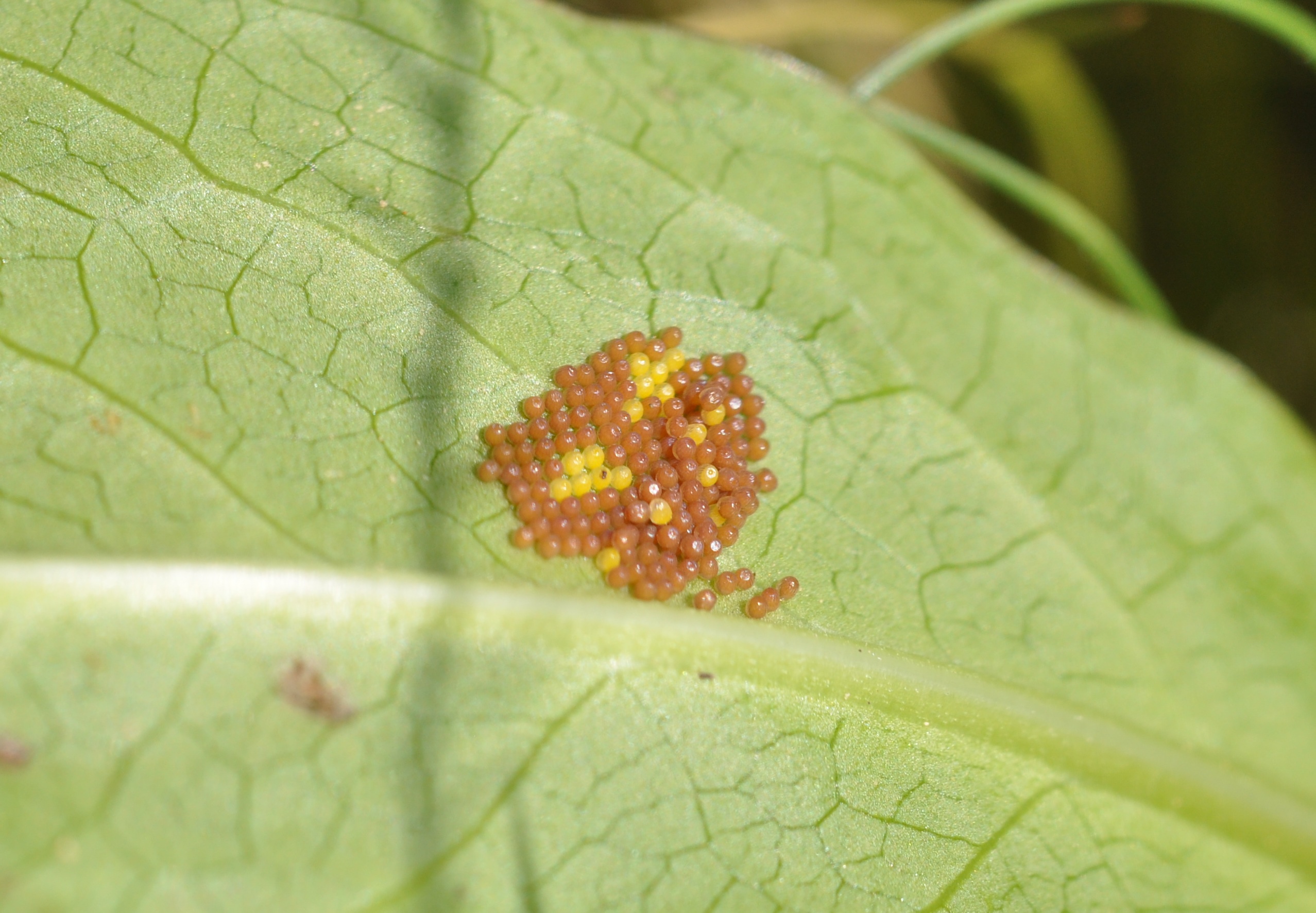Gelege des Goldenen Scheckenfalters im Juni 2014 im Grünen Band von Sachsen.