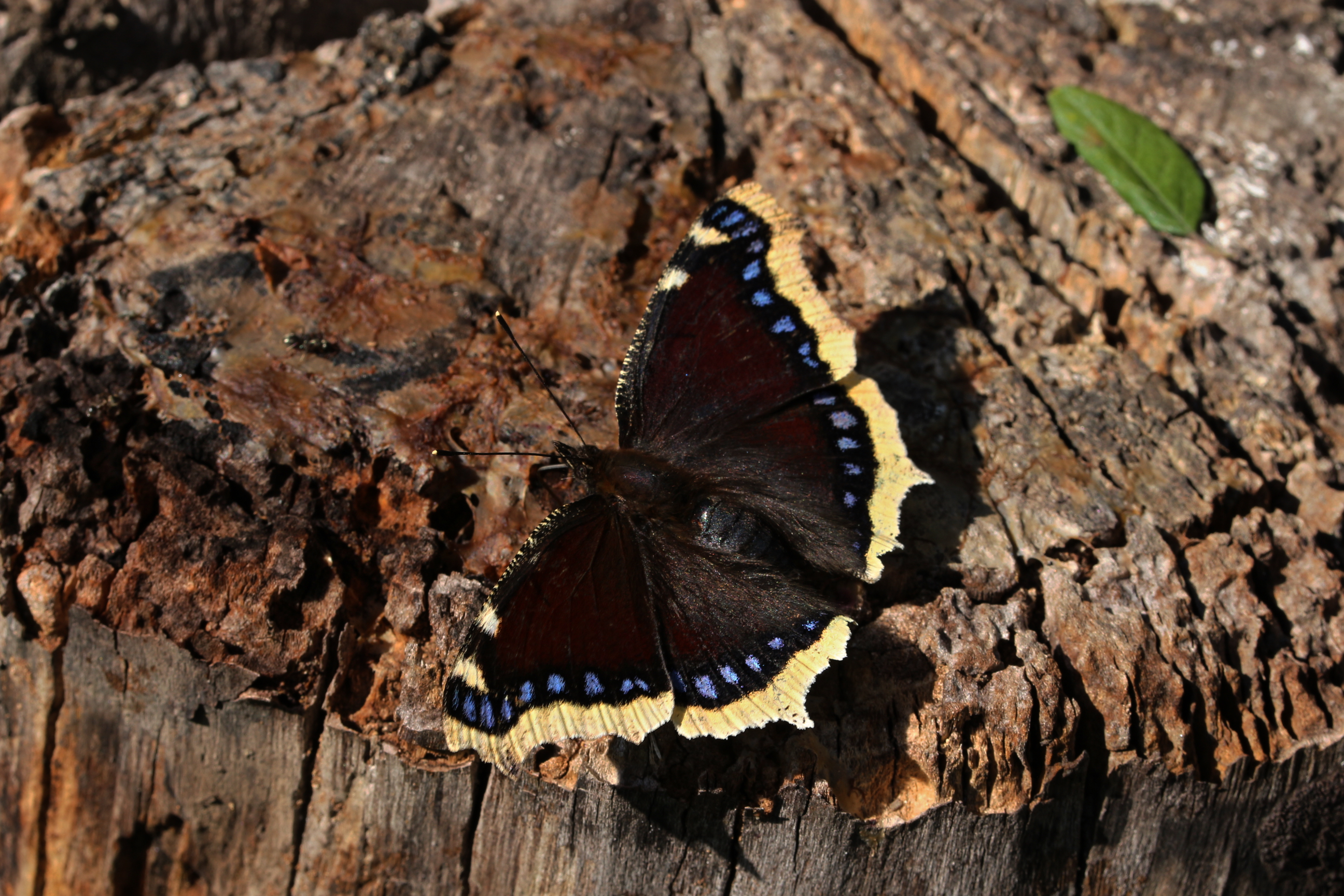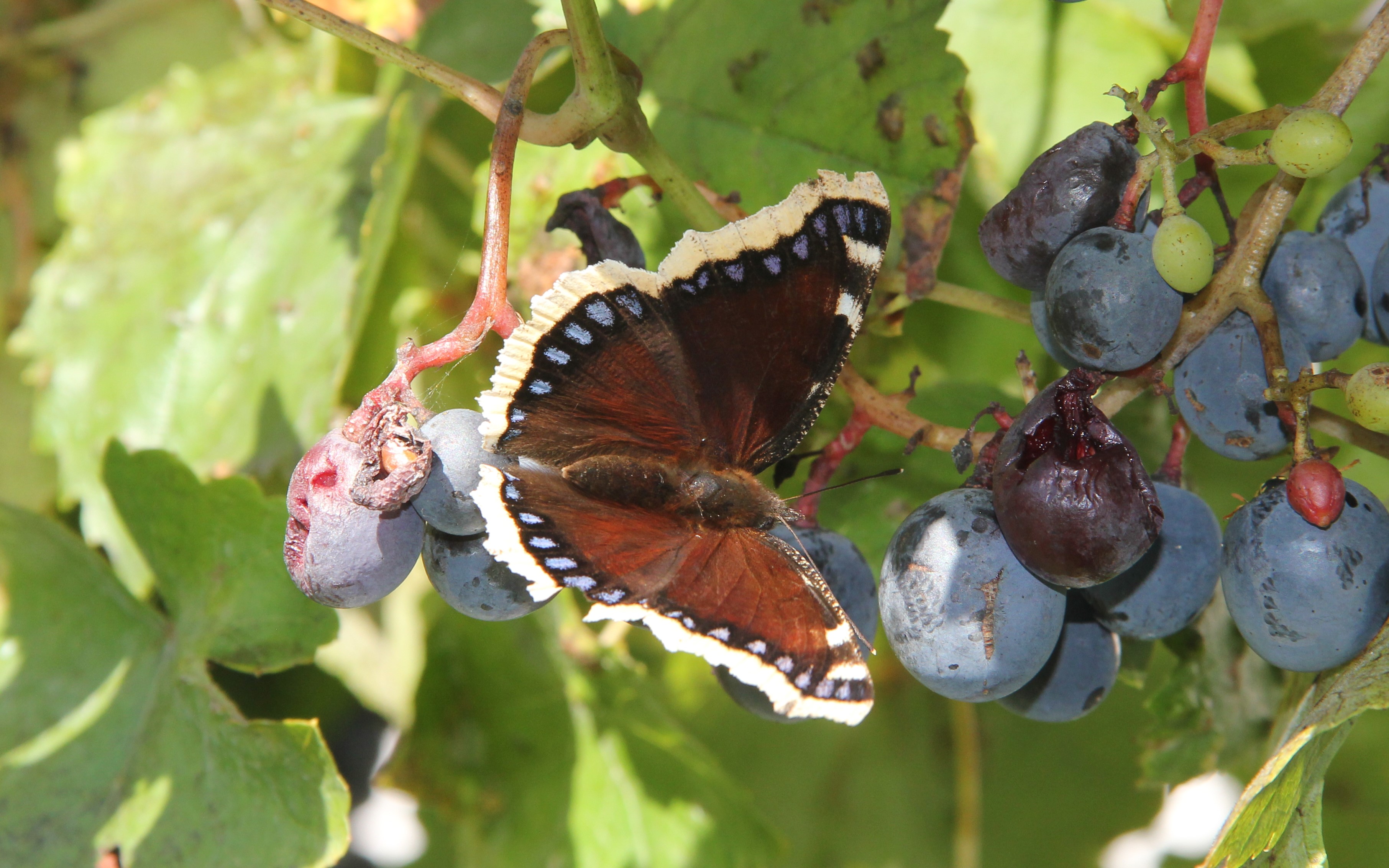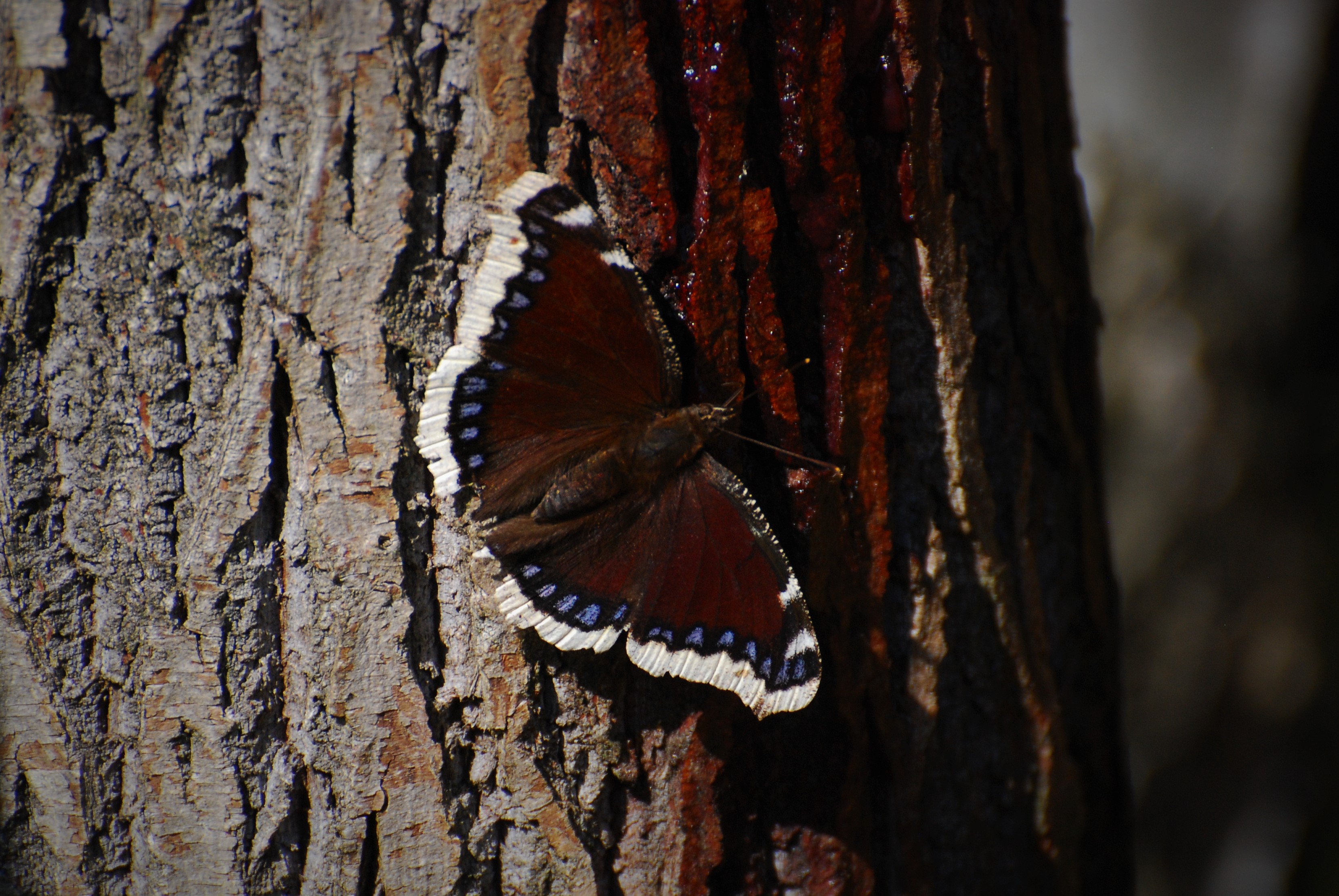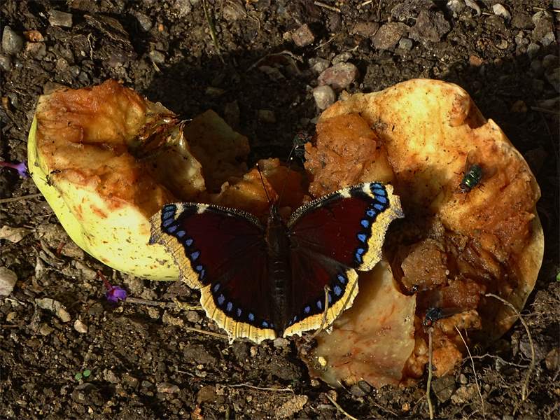 Leippe-Torno, Landkreis Bautzen, 16. Juli 2023: Der Saftfluß unserer Pflaume sorgt auch dieses Jahr für dauernden Besuch von Großem Fuchs, Trauermantel, Waldportier und Rostbinden (© Antje Weiß)( Bild vergrößern)