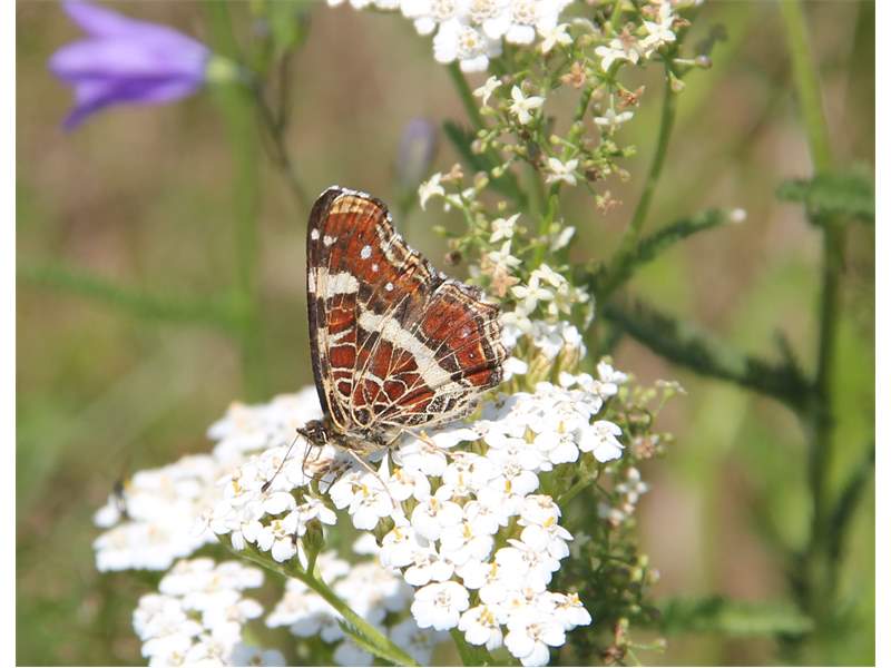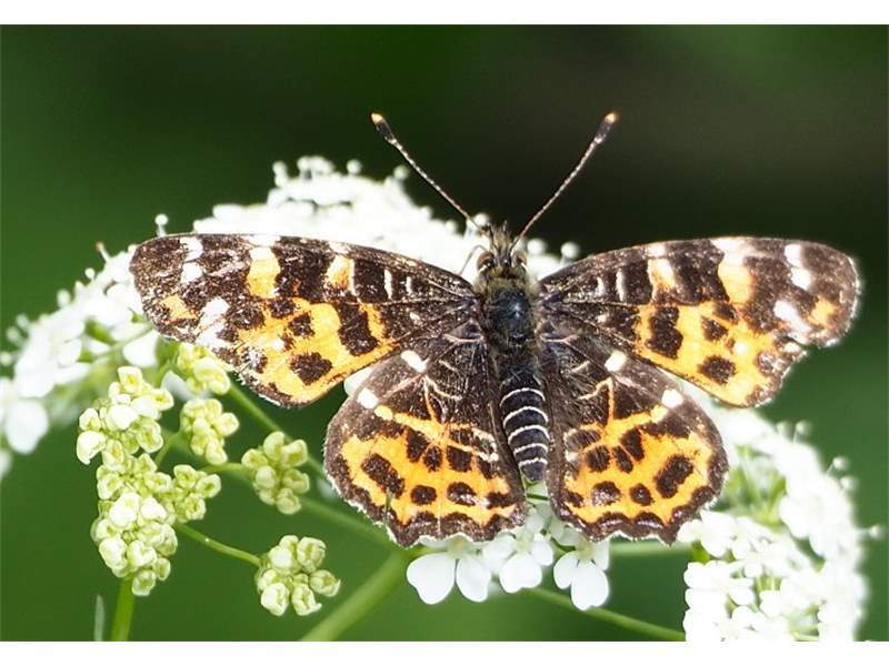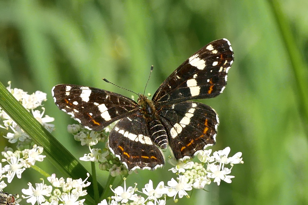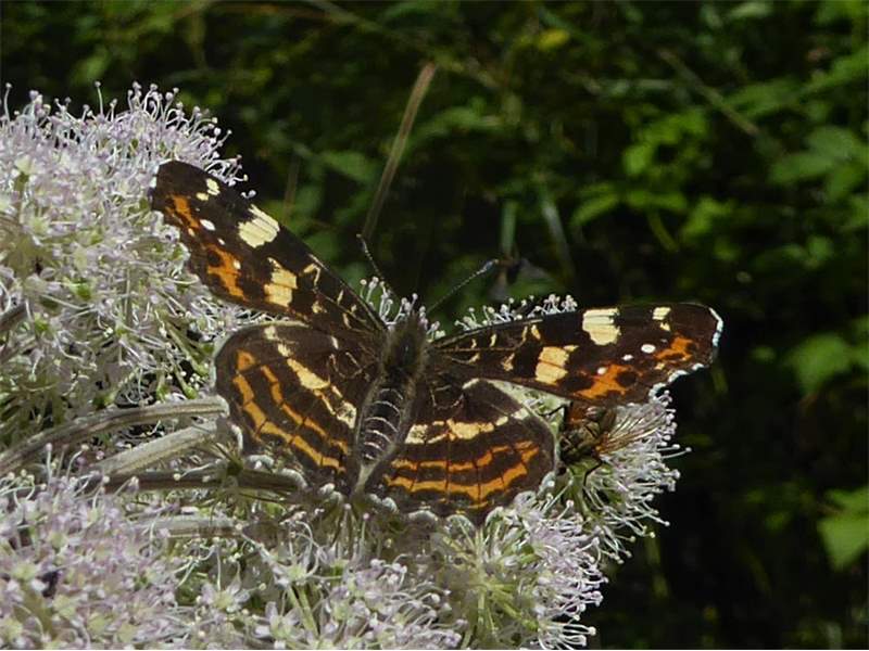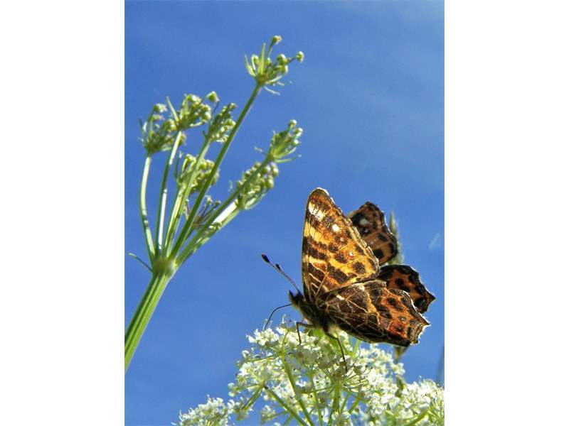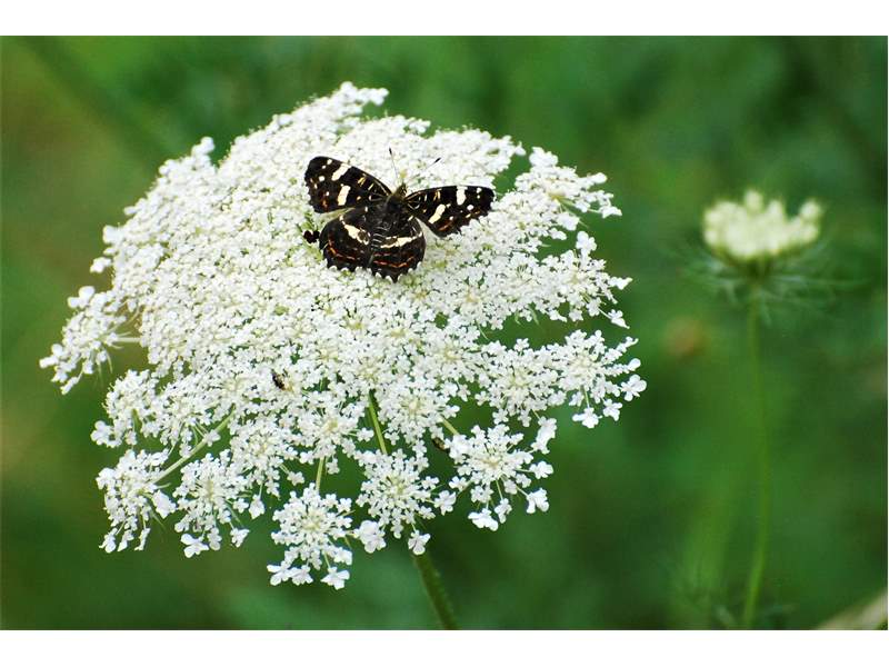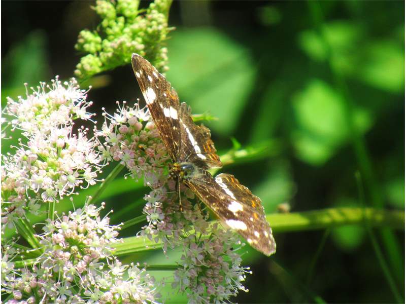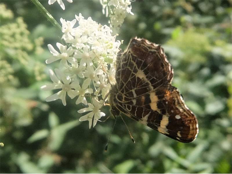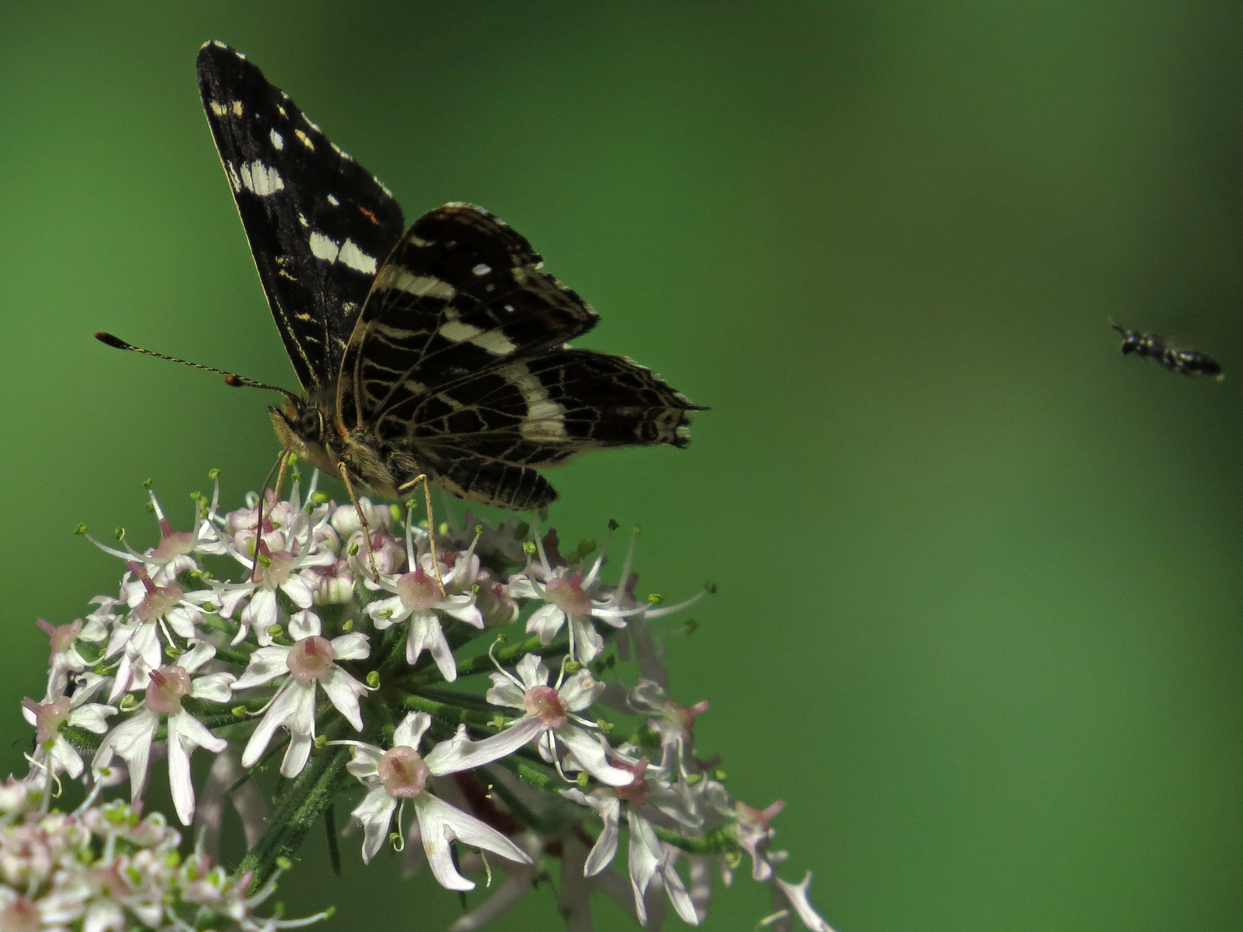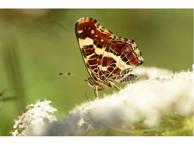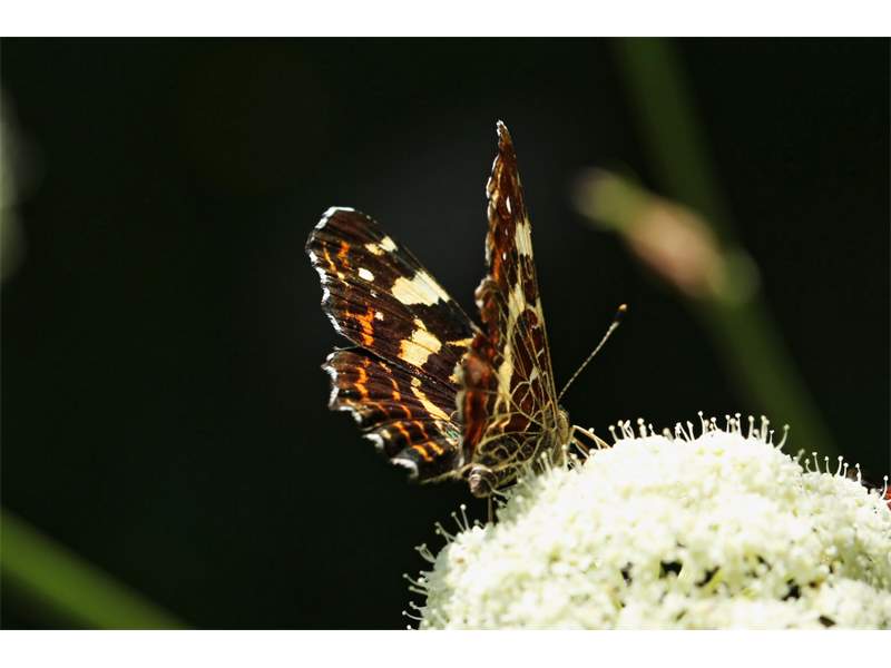 Landkärtchen, Sommergeneration der Schmetterlingsart auf Nektarspender Doldenblüte fotografiert, Falteroberseite im Sichtfeld, Ende Juni 2022, Auwald bei 06254 Horburg-Masslau (Sachsen-Anhalt) (© Heinz Sass)( Bild vergrößern)