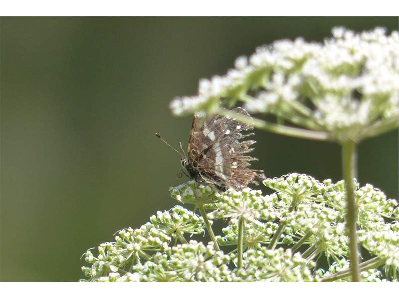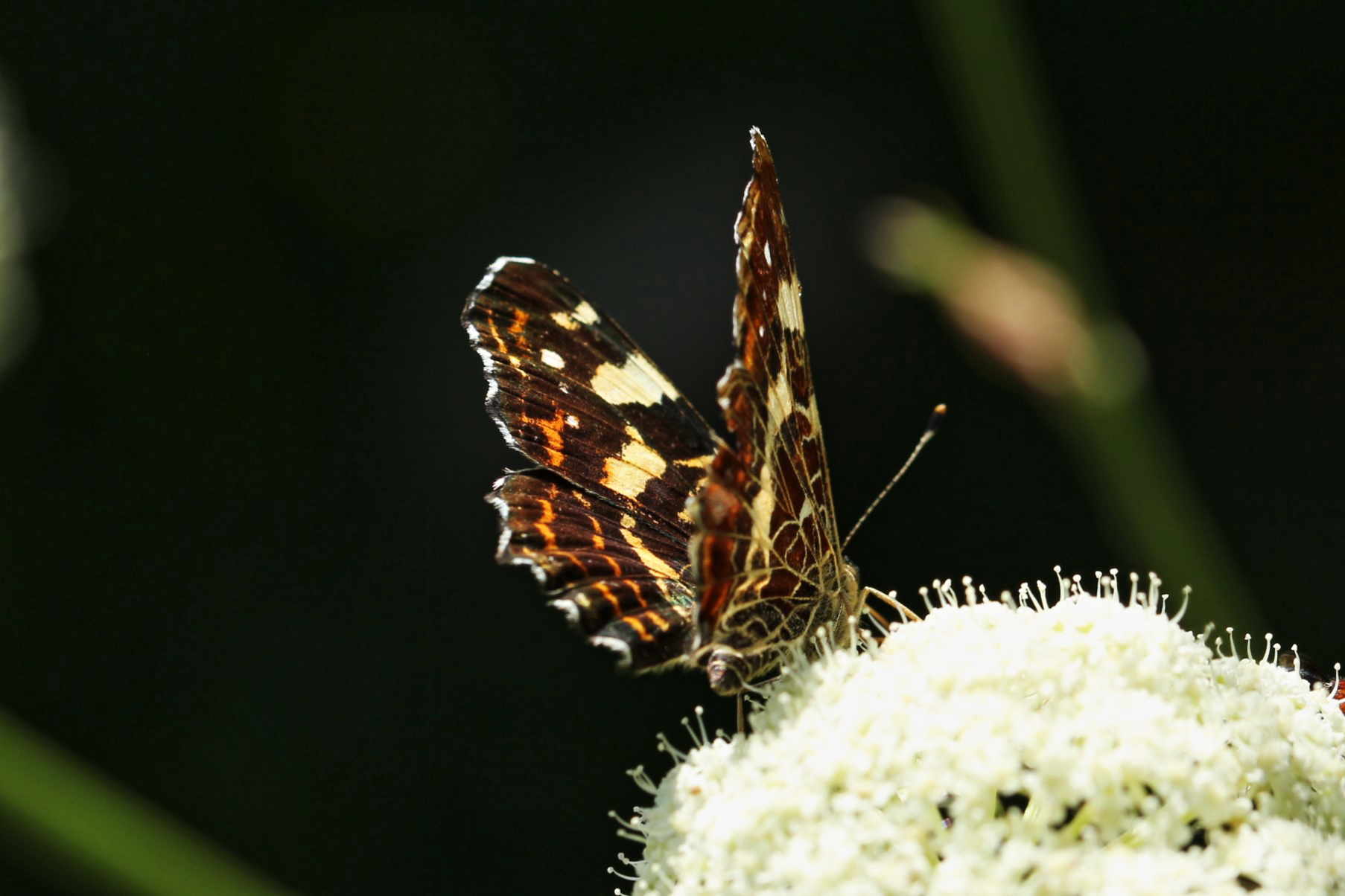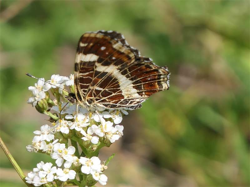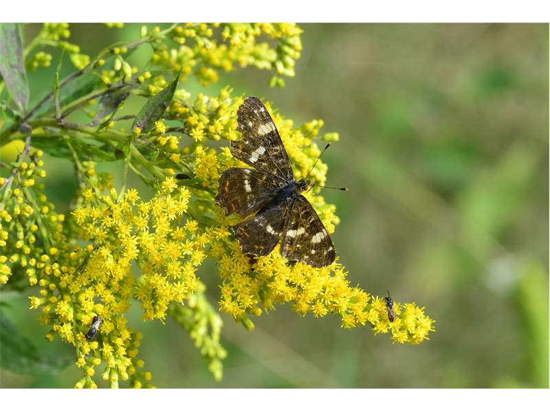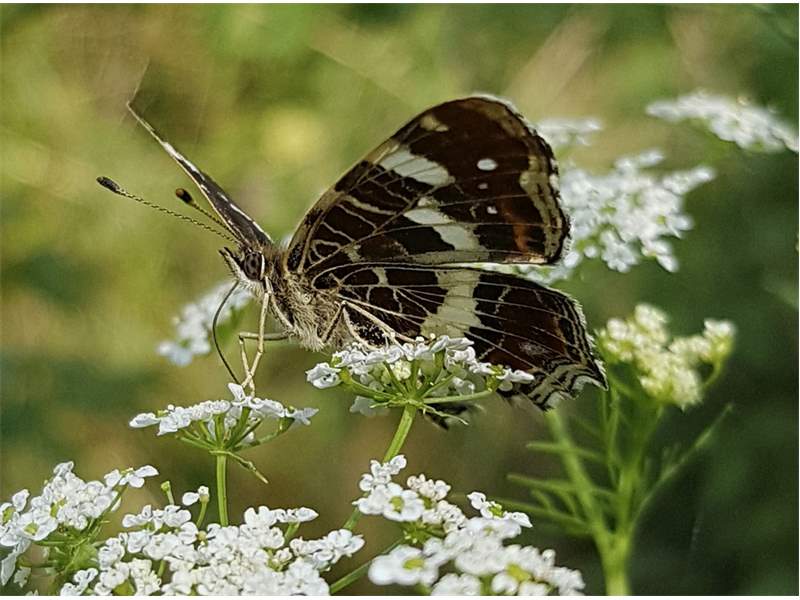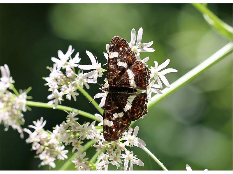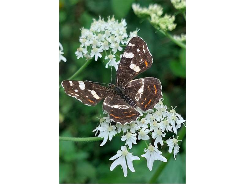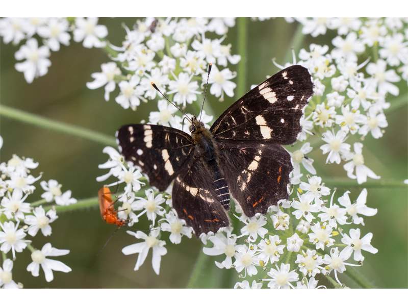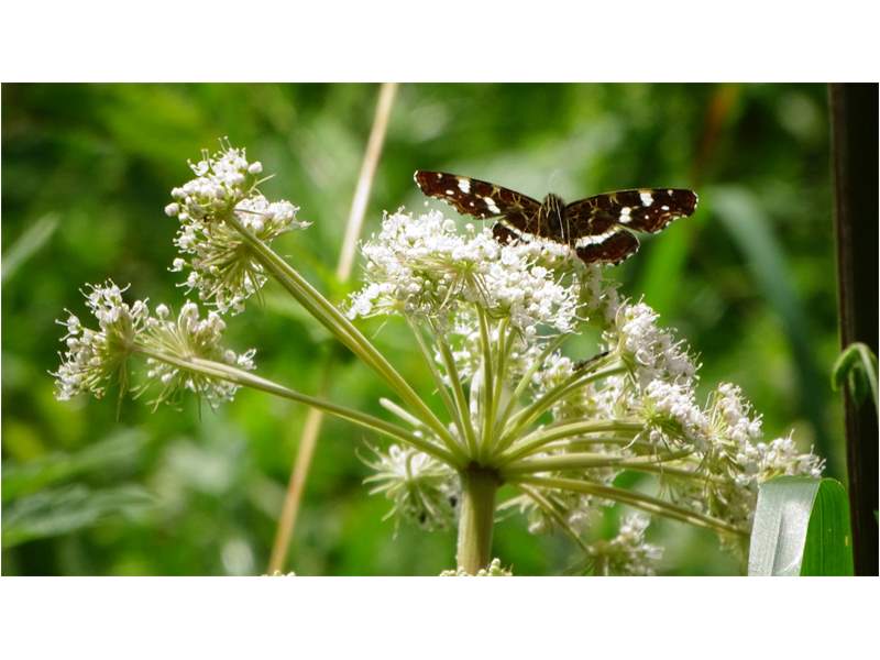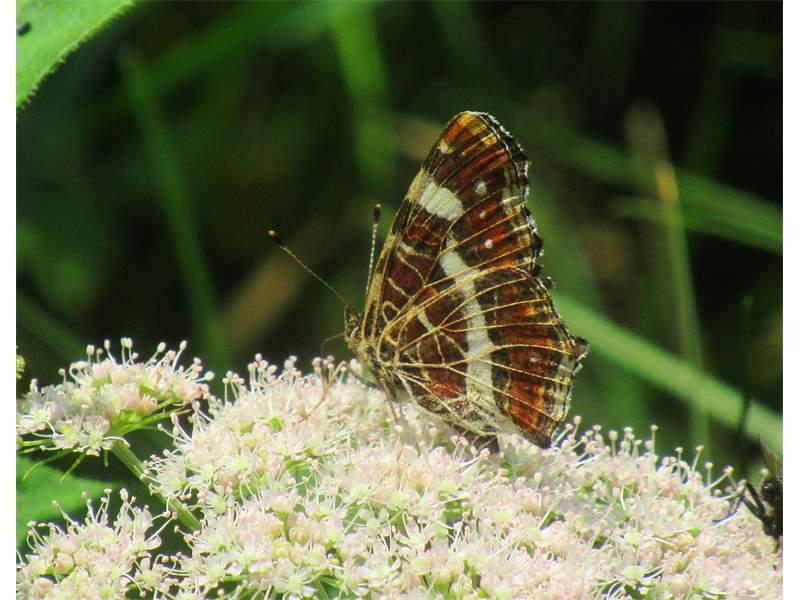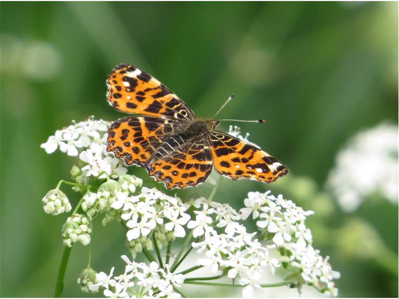 Landkärtchen, Sommergeneration der Schmetterlingsart auf Nektarspender Doldenblüte fotografiert, Falteroberseite im Sichtfeld, Ende Juni 2022, Auwald bei 06254 Horburg-Masslau (Sachsen-Anhalt) (© Heinz Sass)( Bild vergrößern)