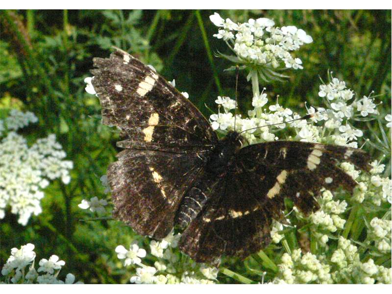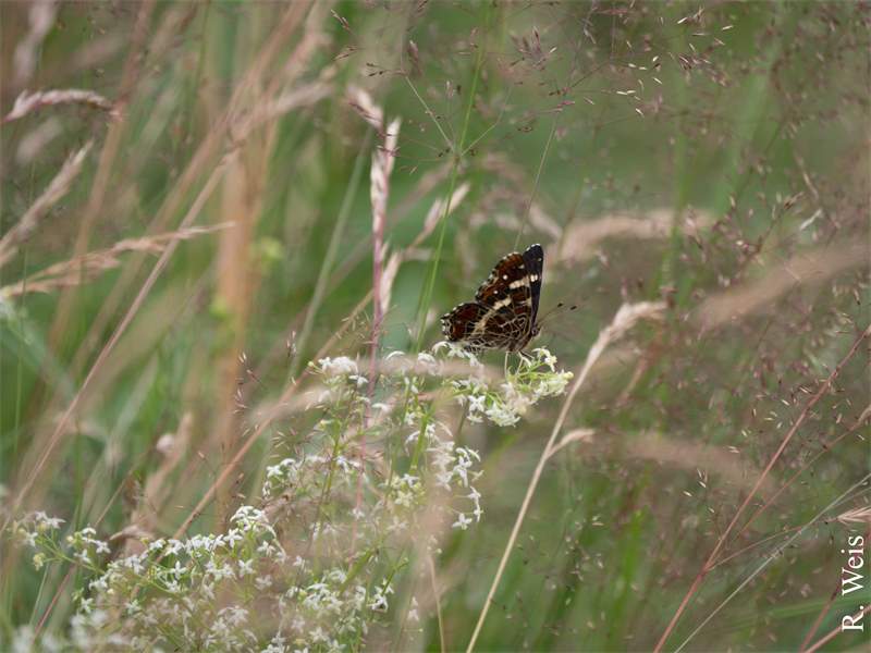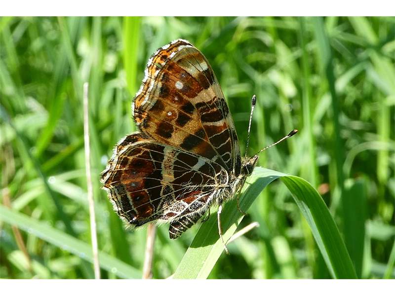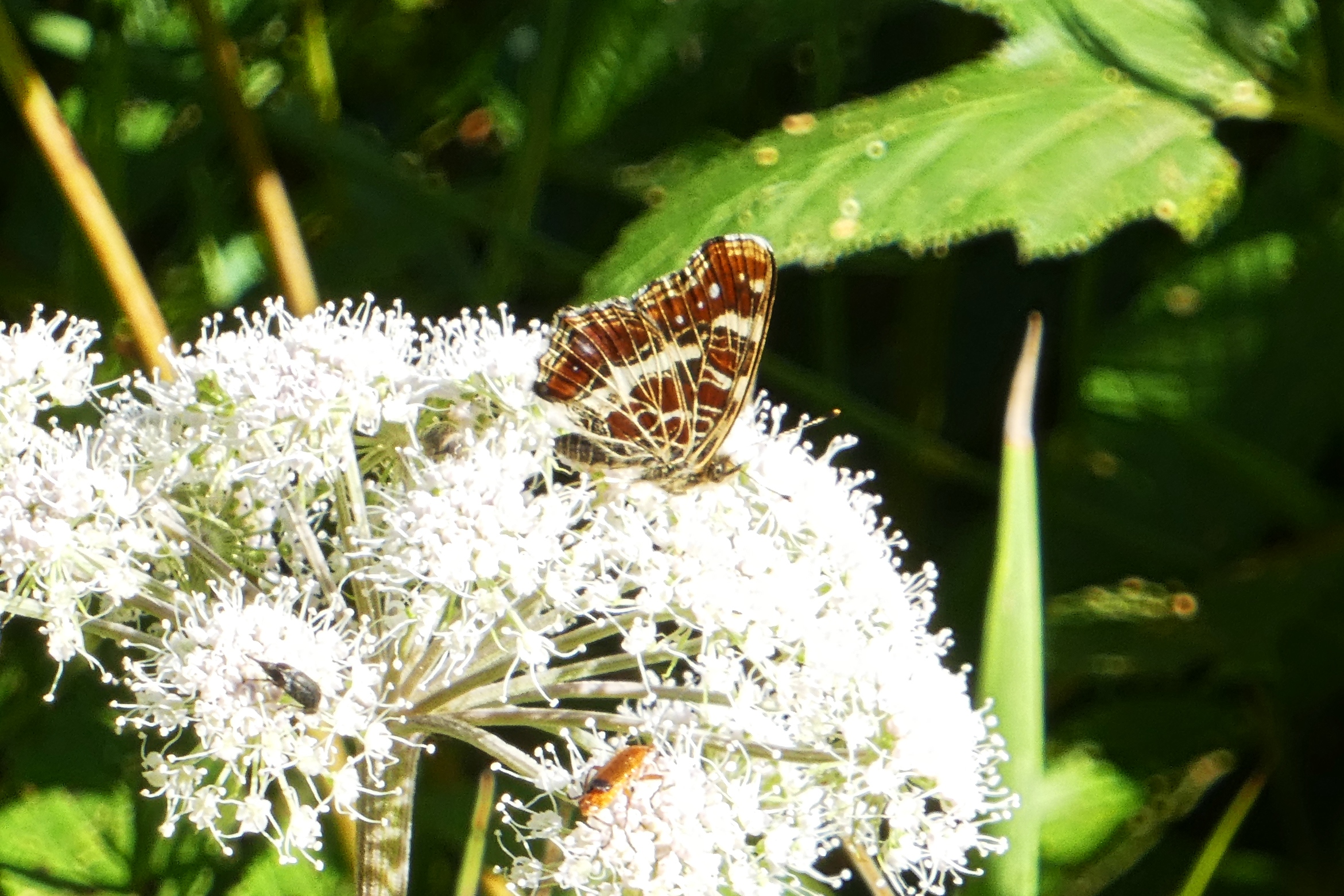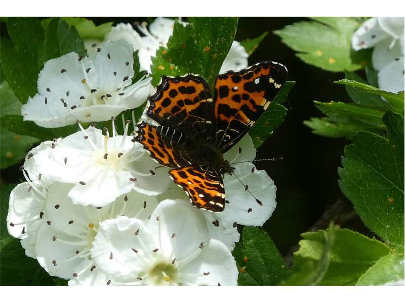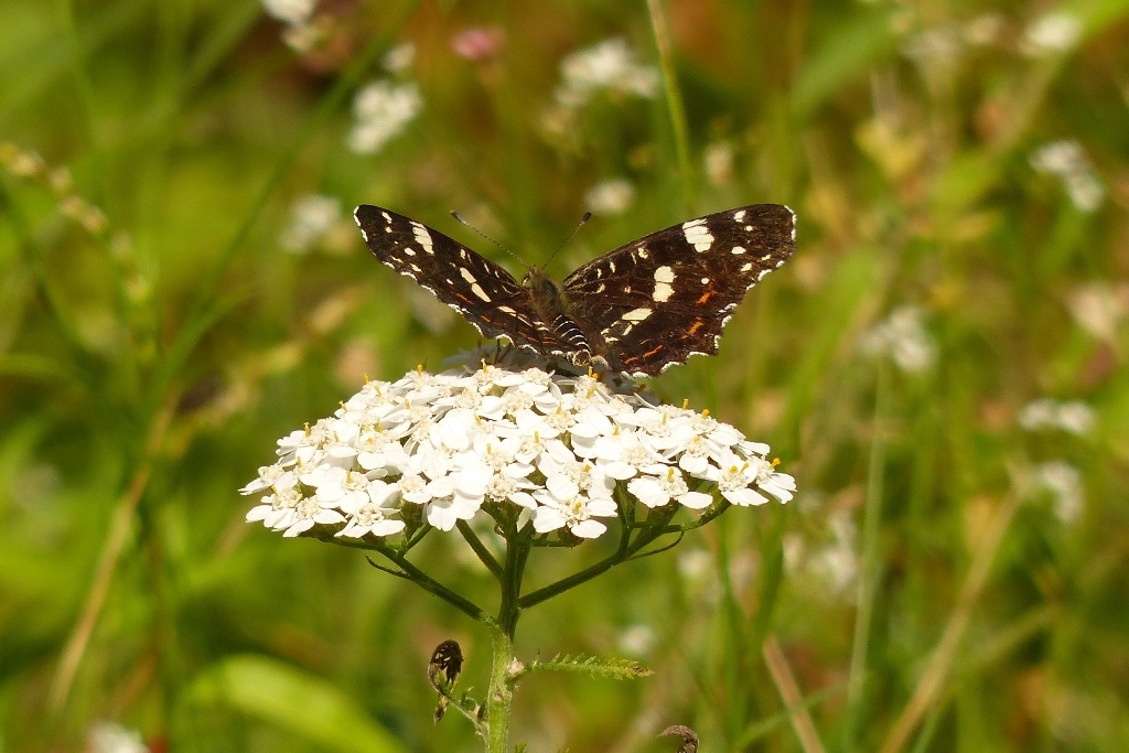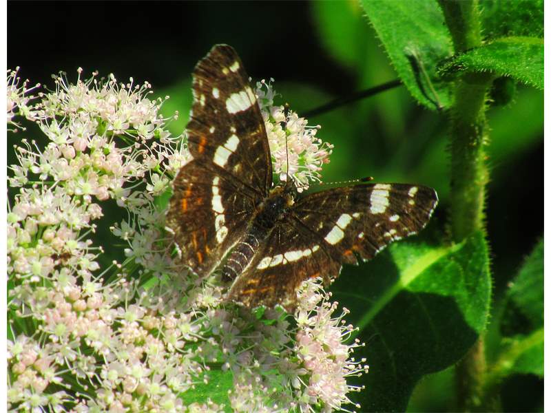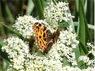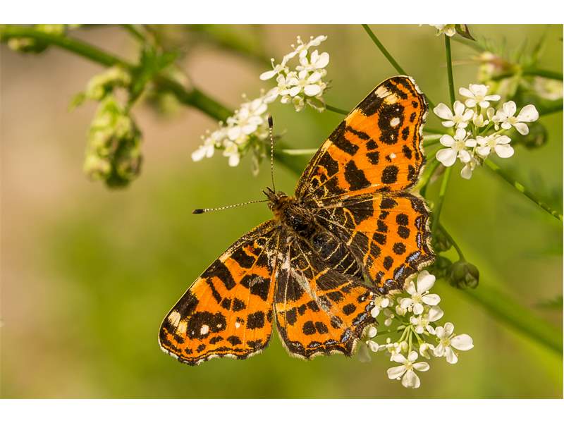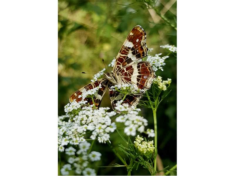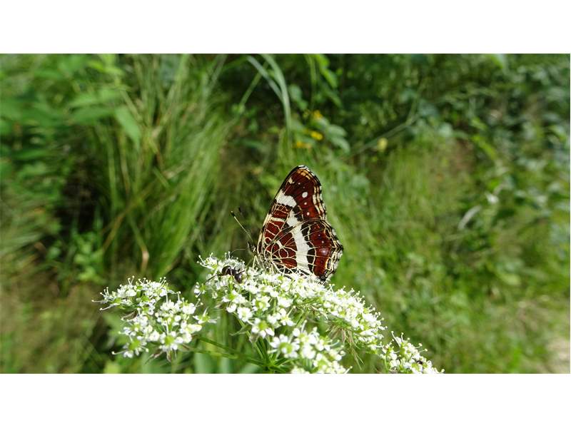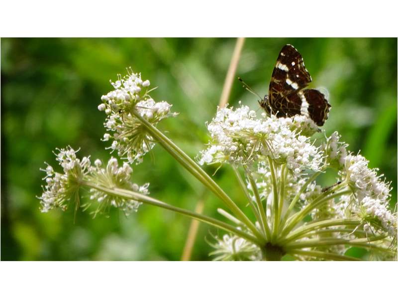 Landkärtchen, Sommergeneration der Schmetterlingsart auf Nektarspender Doldenblüte fotografiert, Falteroberseite im Sichtfeld, Ende Juni 2022, Auwald bei 06254 Horburg-Masslau (Sachsen-Anhalt) (© Heinz Sass)( Bild vergrößern)