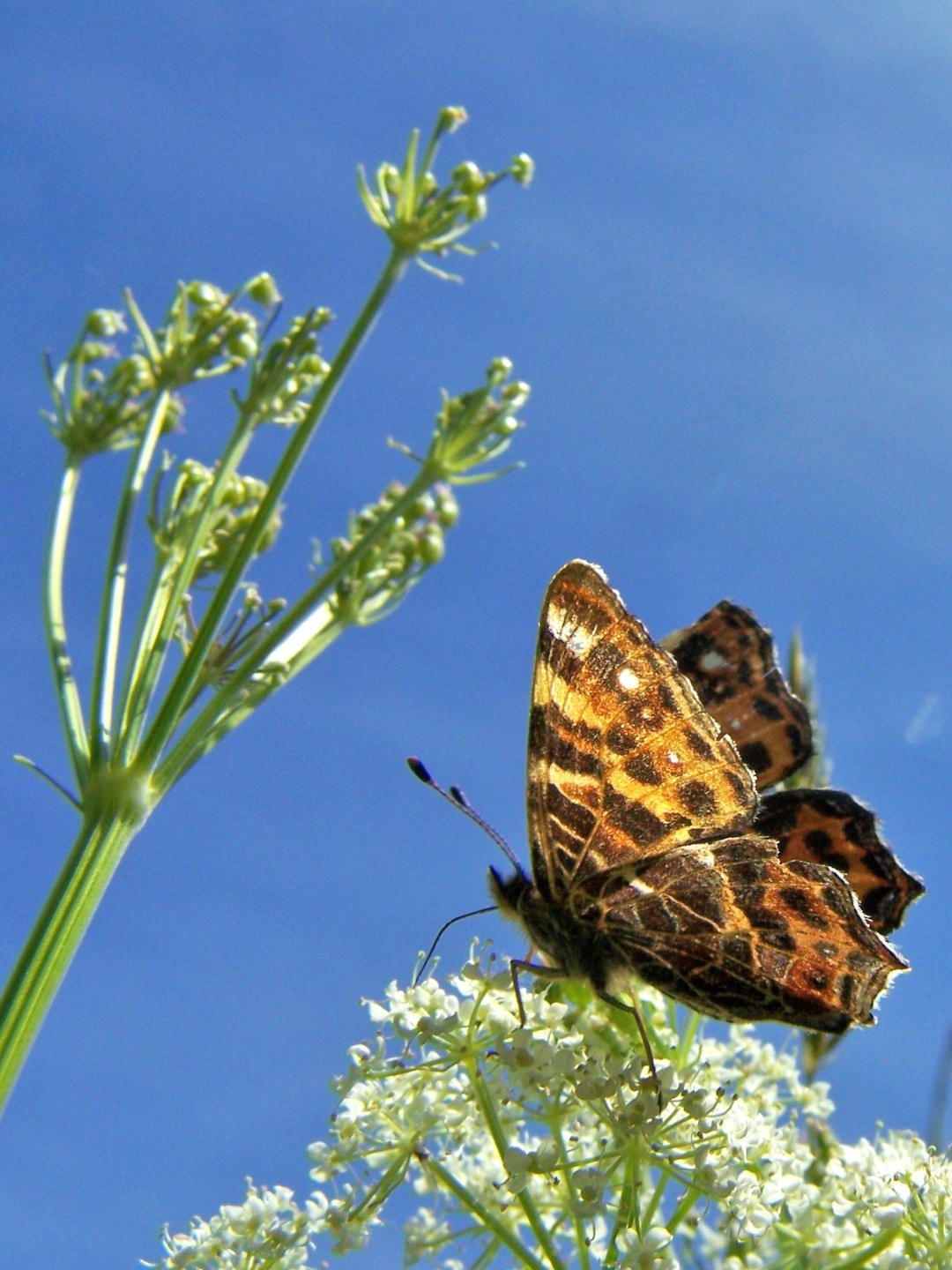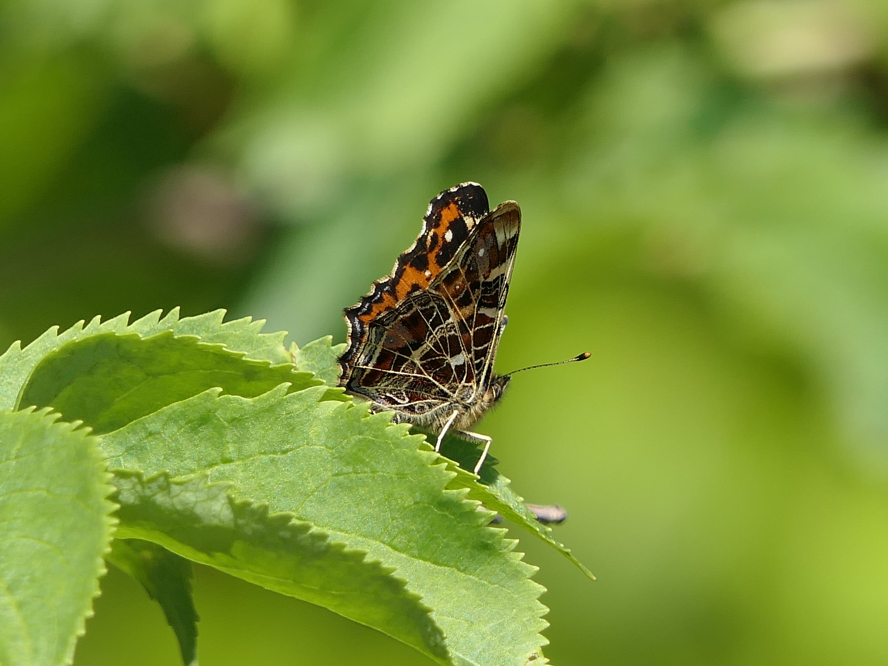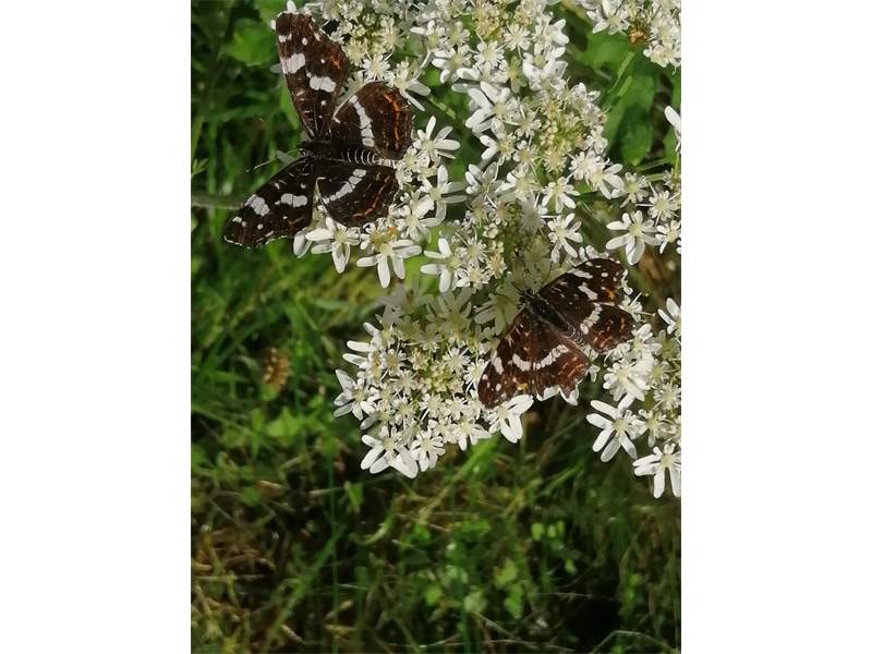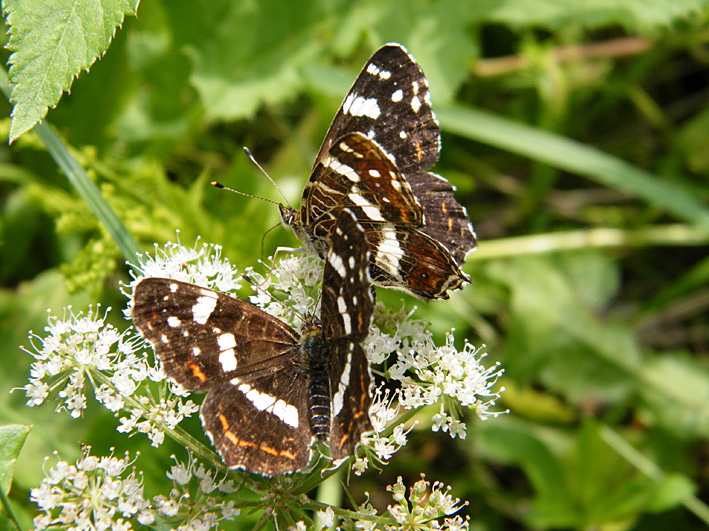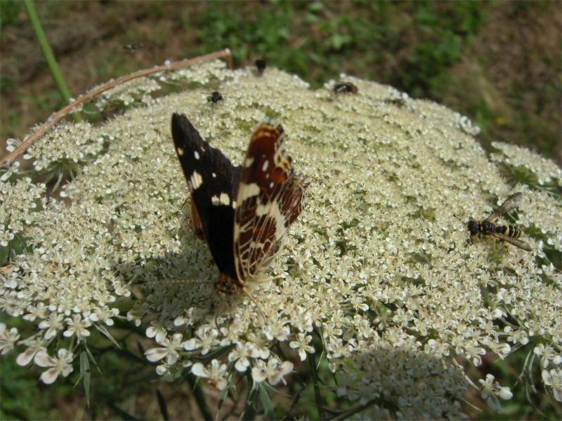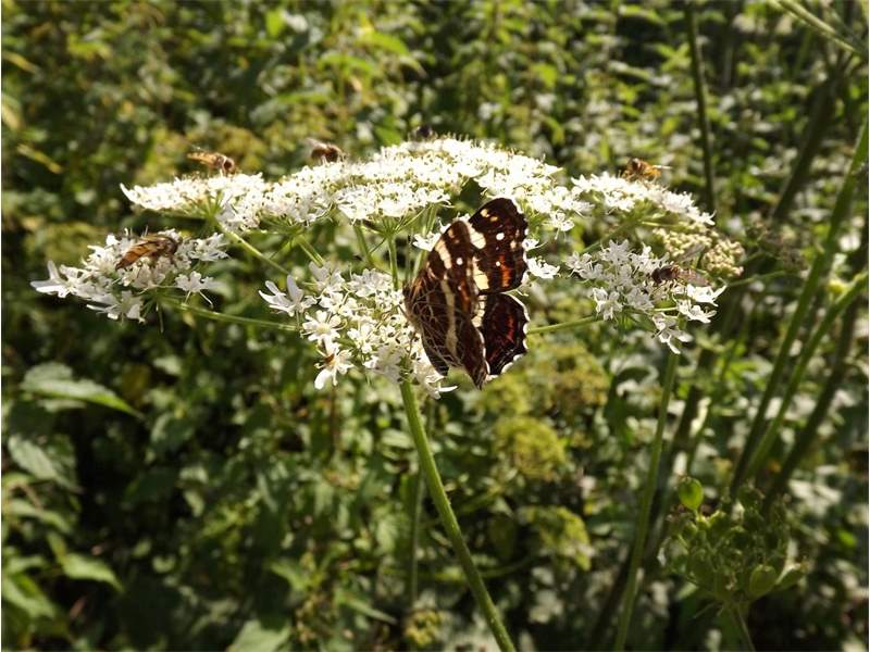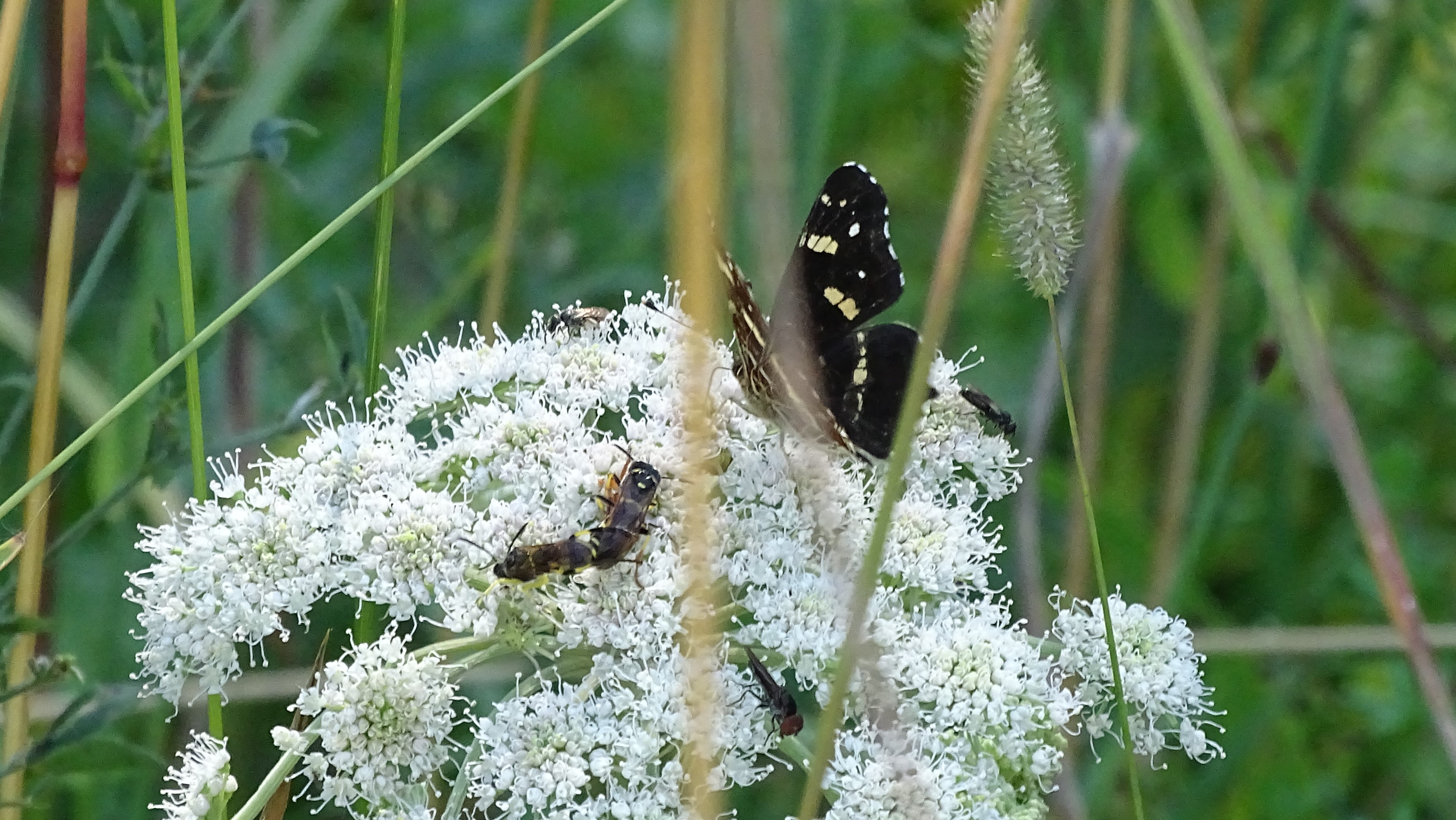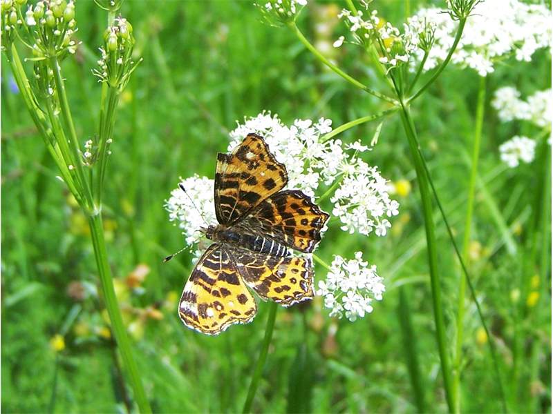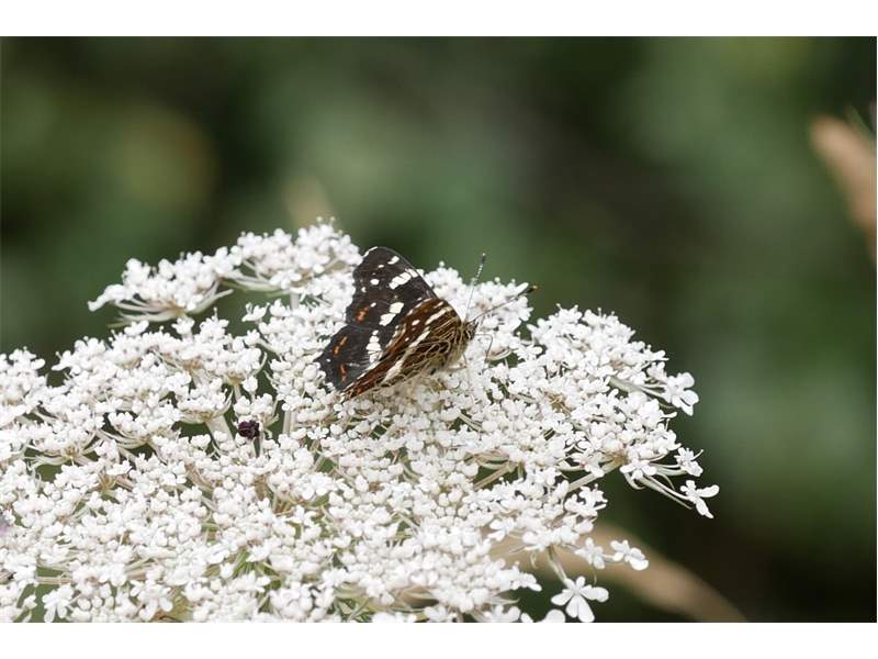Landkärtchen, Sommergeneration der Schmetterlingsart auf Nektarspender Doldenblüte fotografiert, Falteroberseite im Sichtfeld, Ende Juni 2022, Auwald bei 06254 Horburg-Masslau (Sachsen-Anhalt) (© Heinz Sass)( Bild vergrößern)
