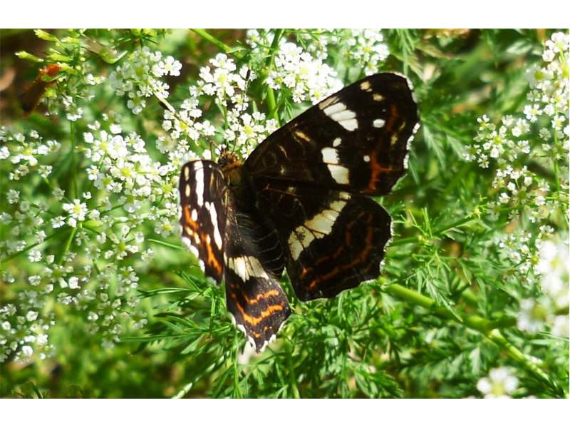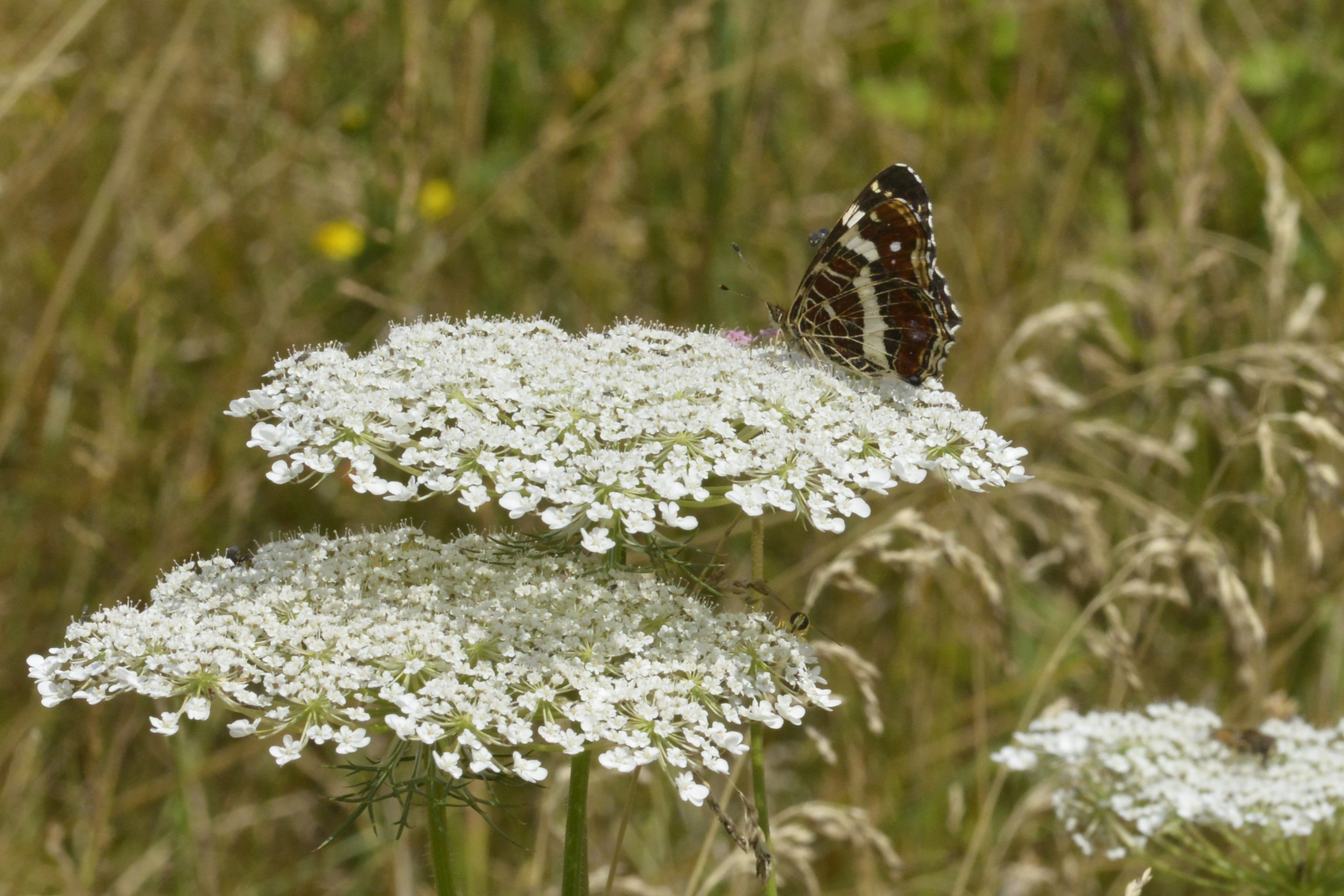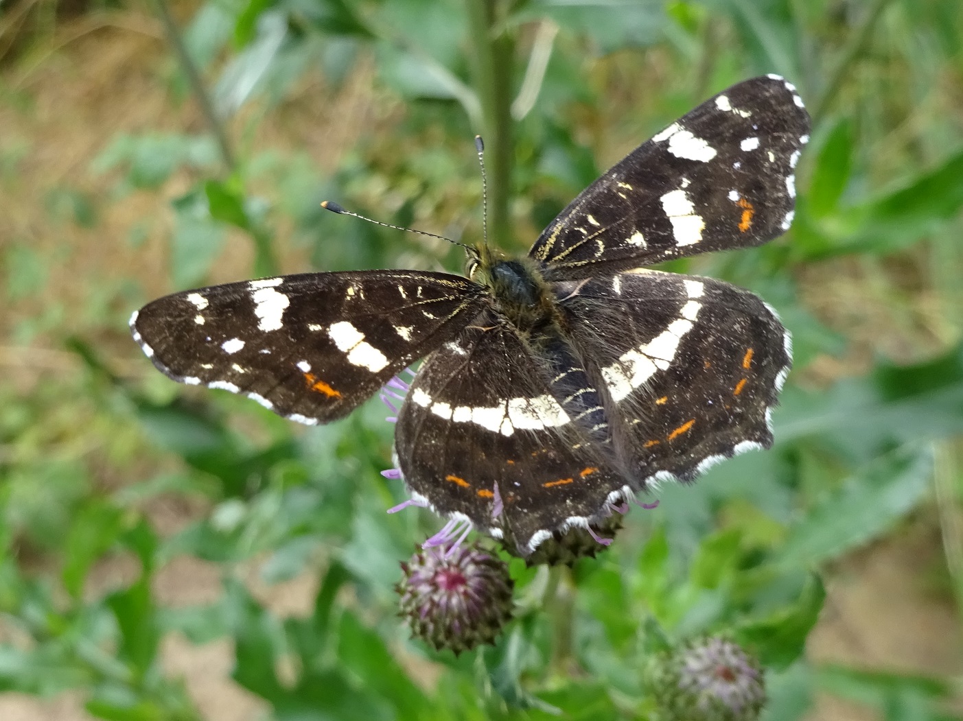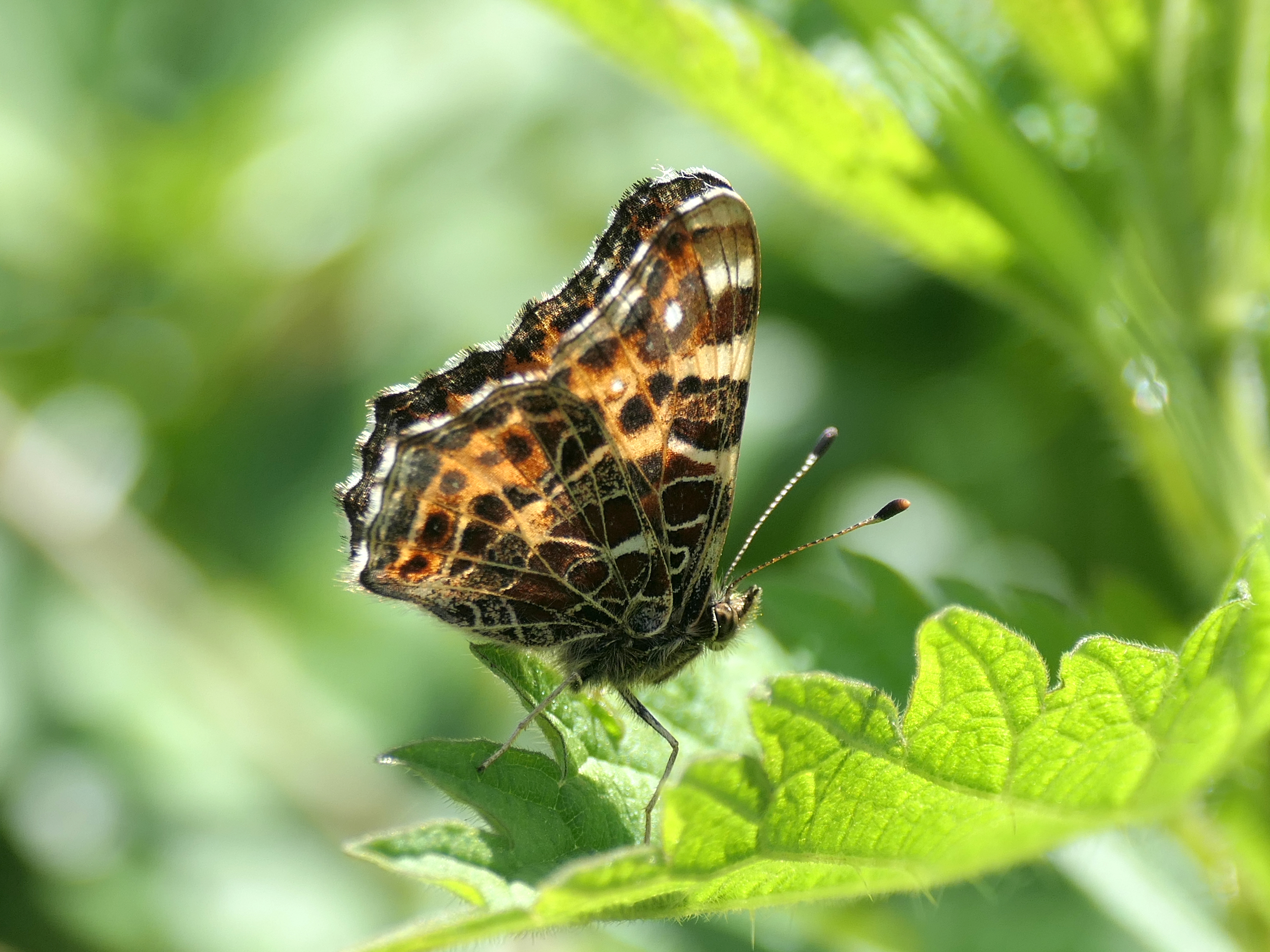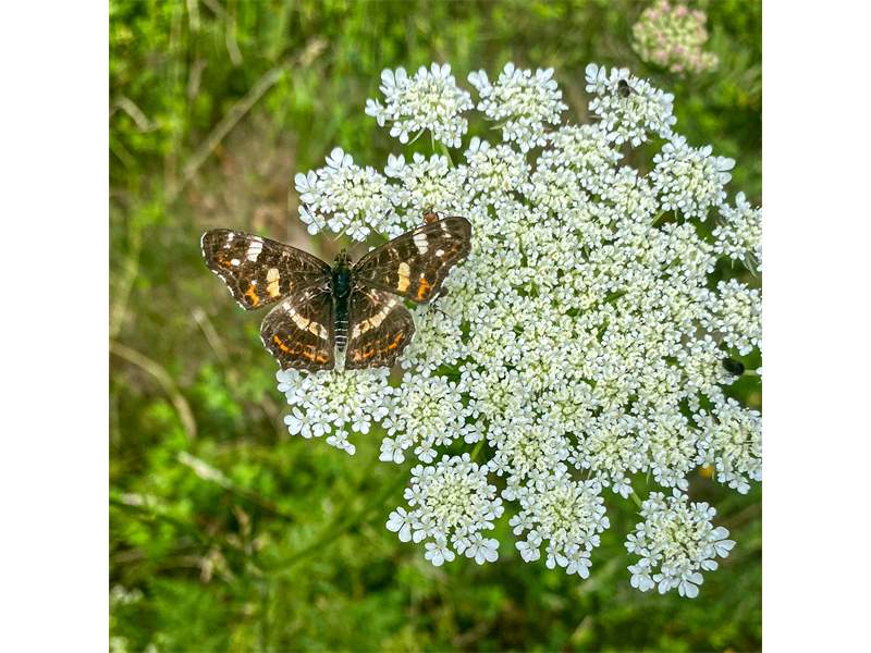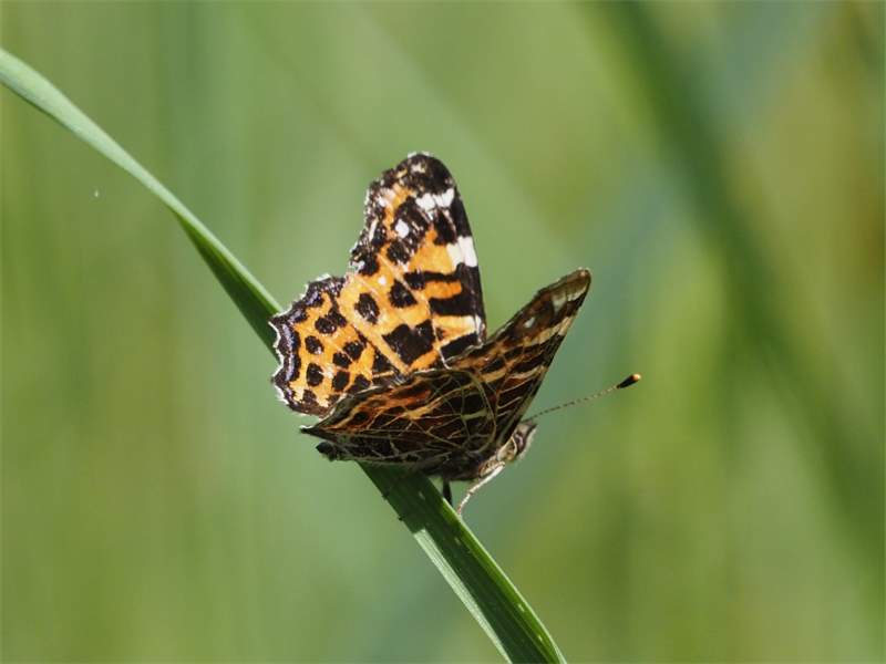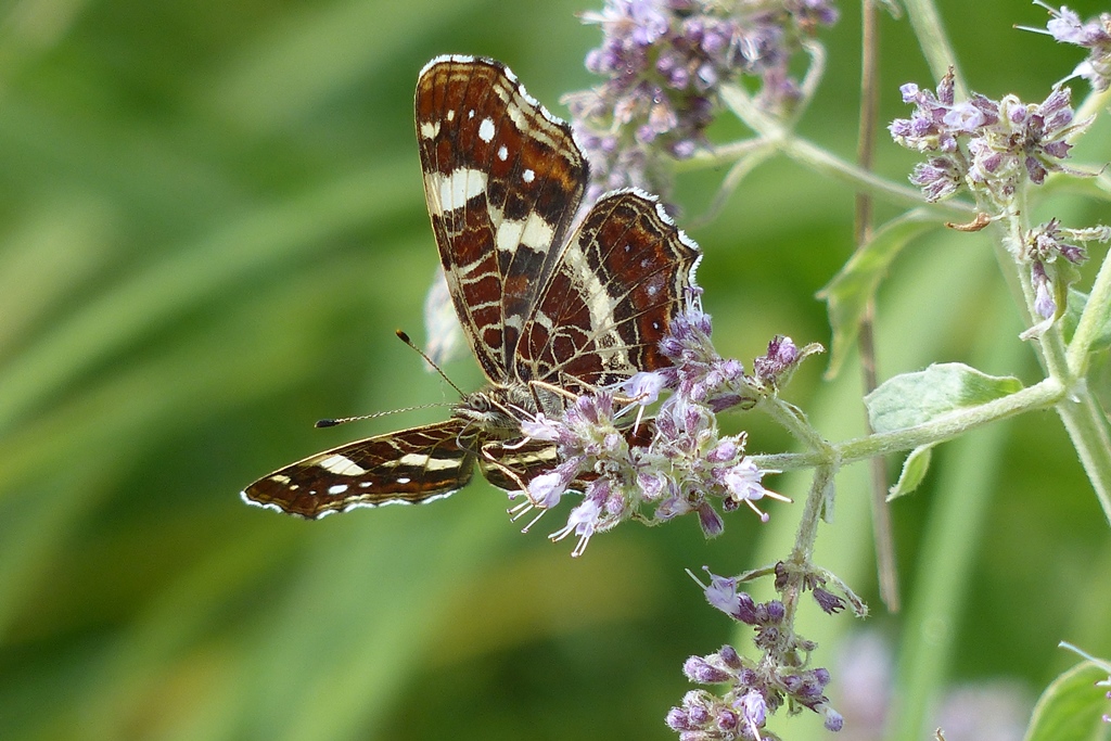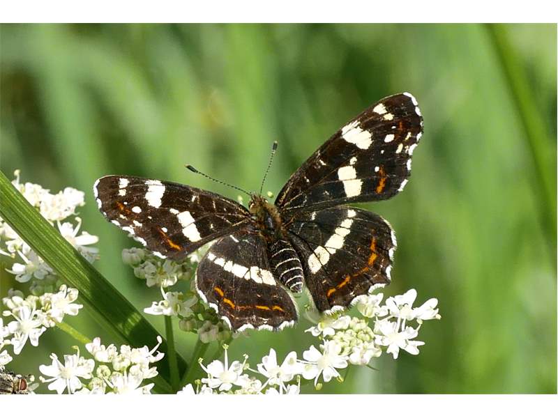 Landkärtchen, Sommergeneration der Schmetterlingsart auf Nektarspender Doldenblüte fotografiert, Falteroberseite im Sichtfeld, Ende Juni 2022, Auwald bei 06254 Horburg-Masslau (Sachsen-Anhalt) (© Heinz Sass)( Bild vergrößern)