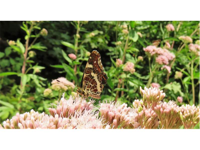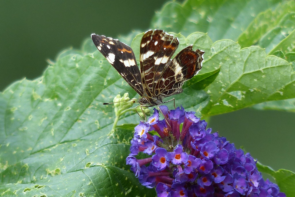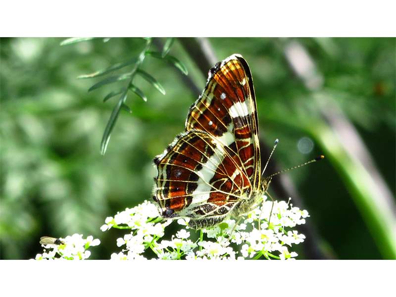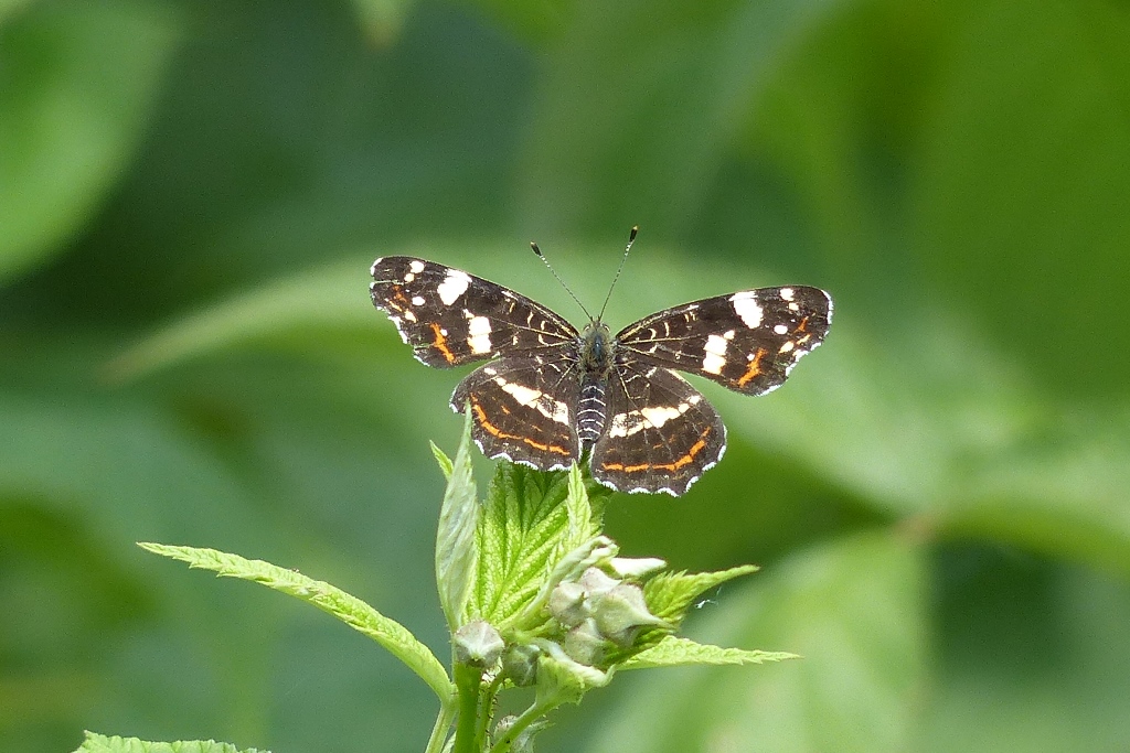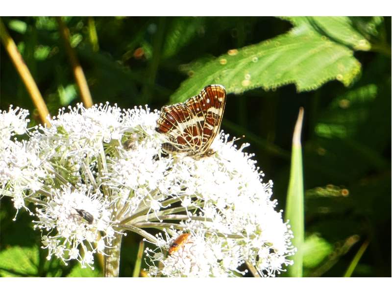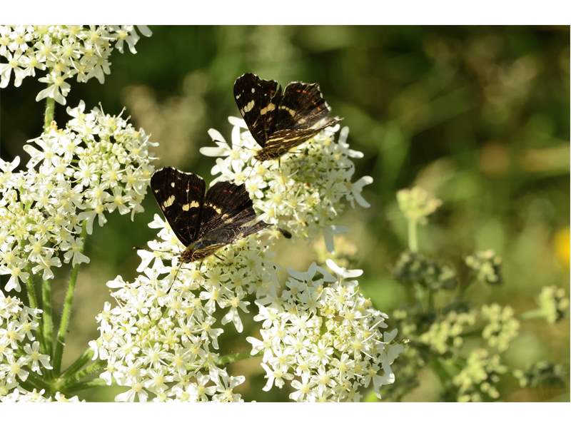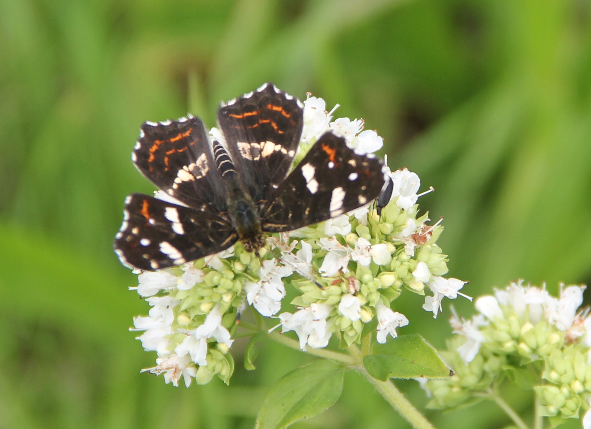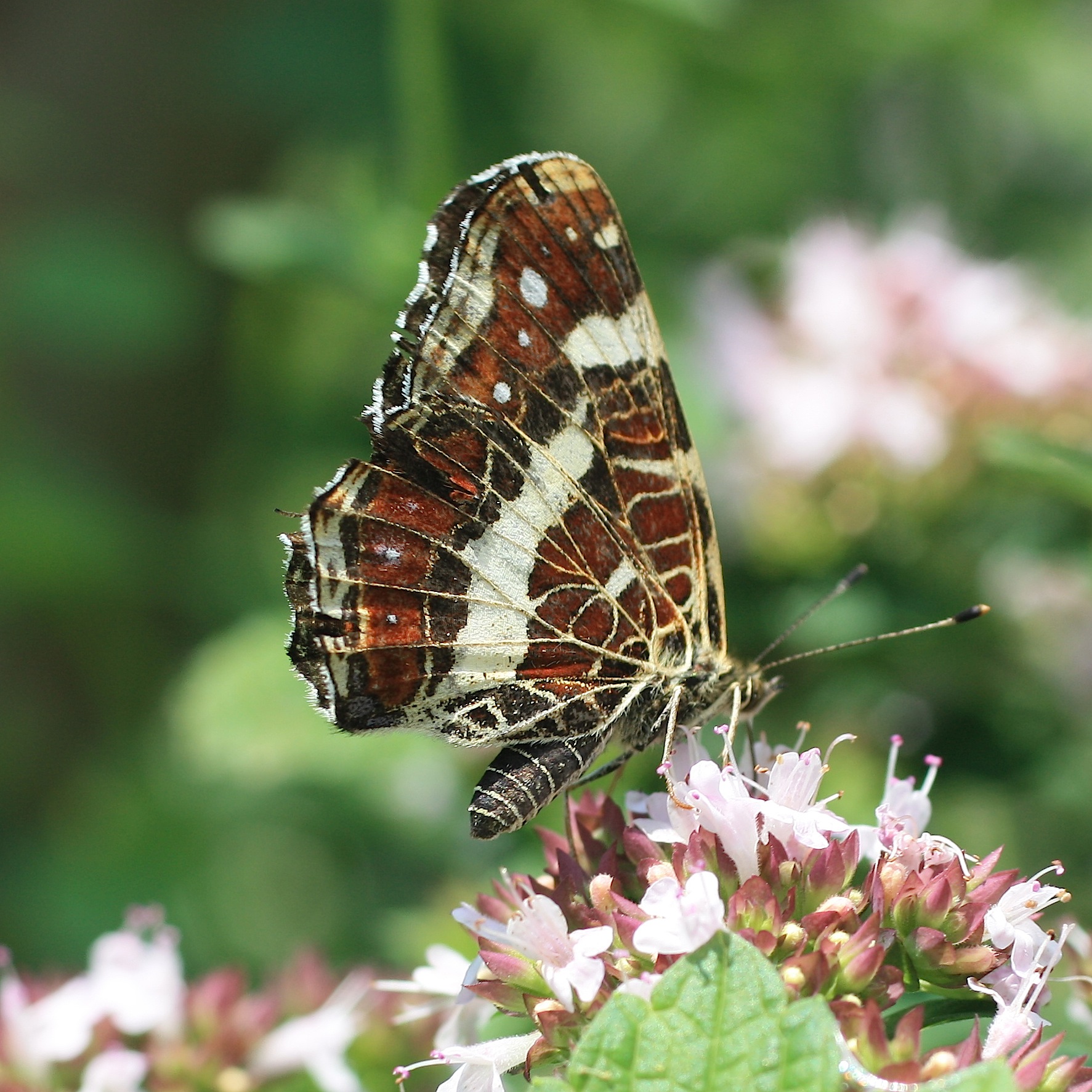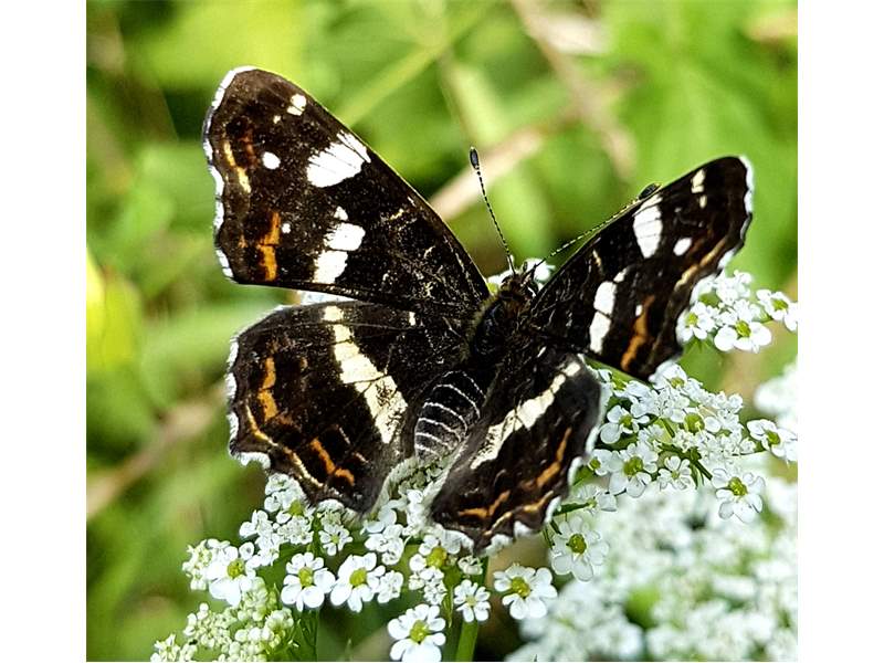 Landkärtchen, Sommergeneration der Schmetterlingsart auf Nektarspender Doldenblüte fotografiert, Falteroberseite im Sichtfeld, Ende Juni 2022, Auwald bei 06254 Horburg-Masslau (Sachsen-Anhalt) (© Heinz Sass)( Bild vergrößern)