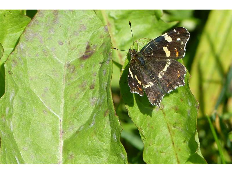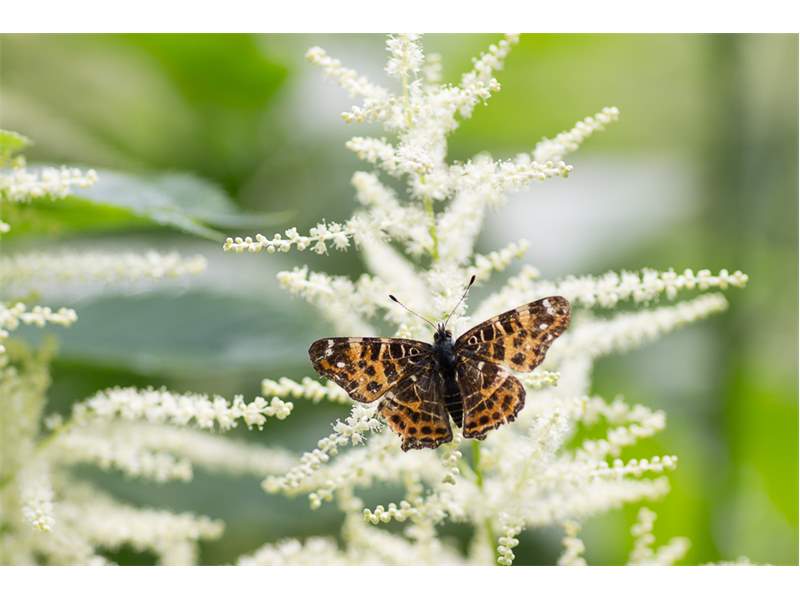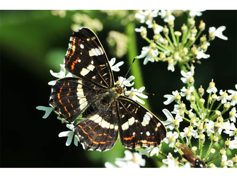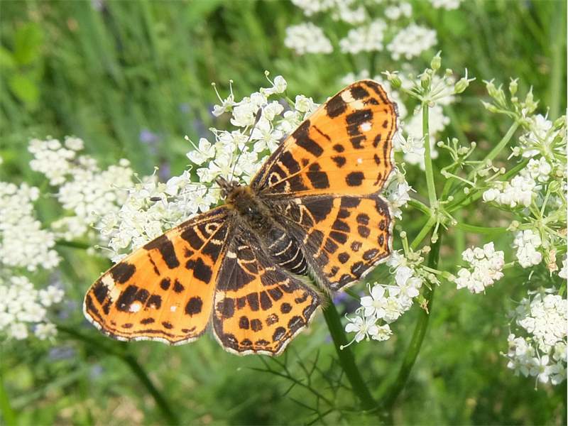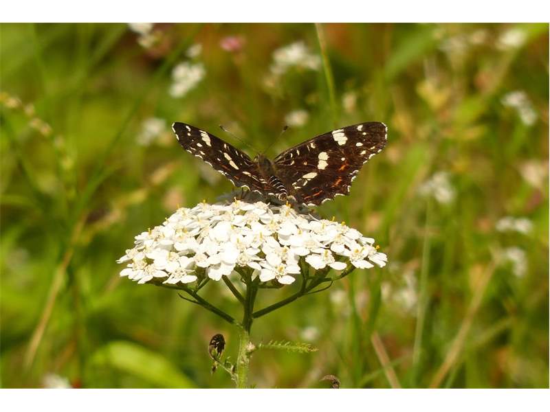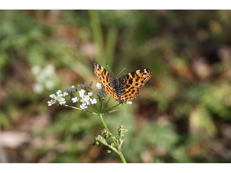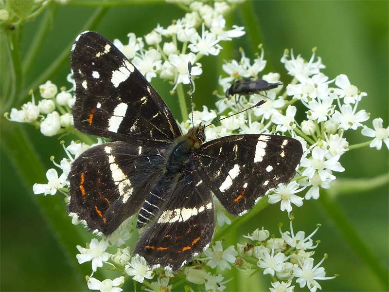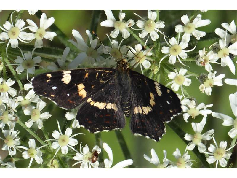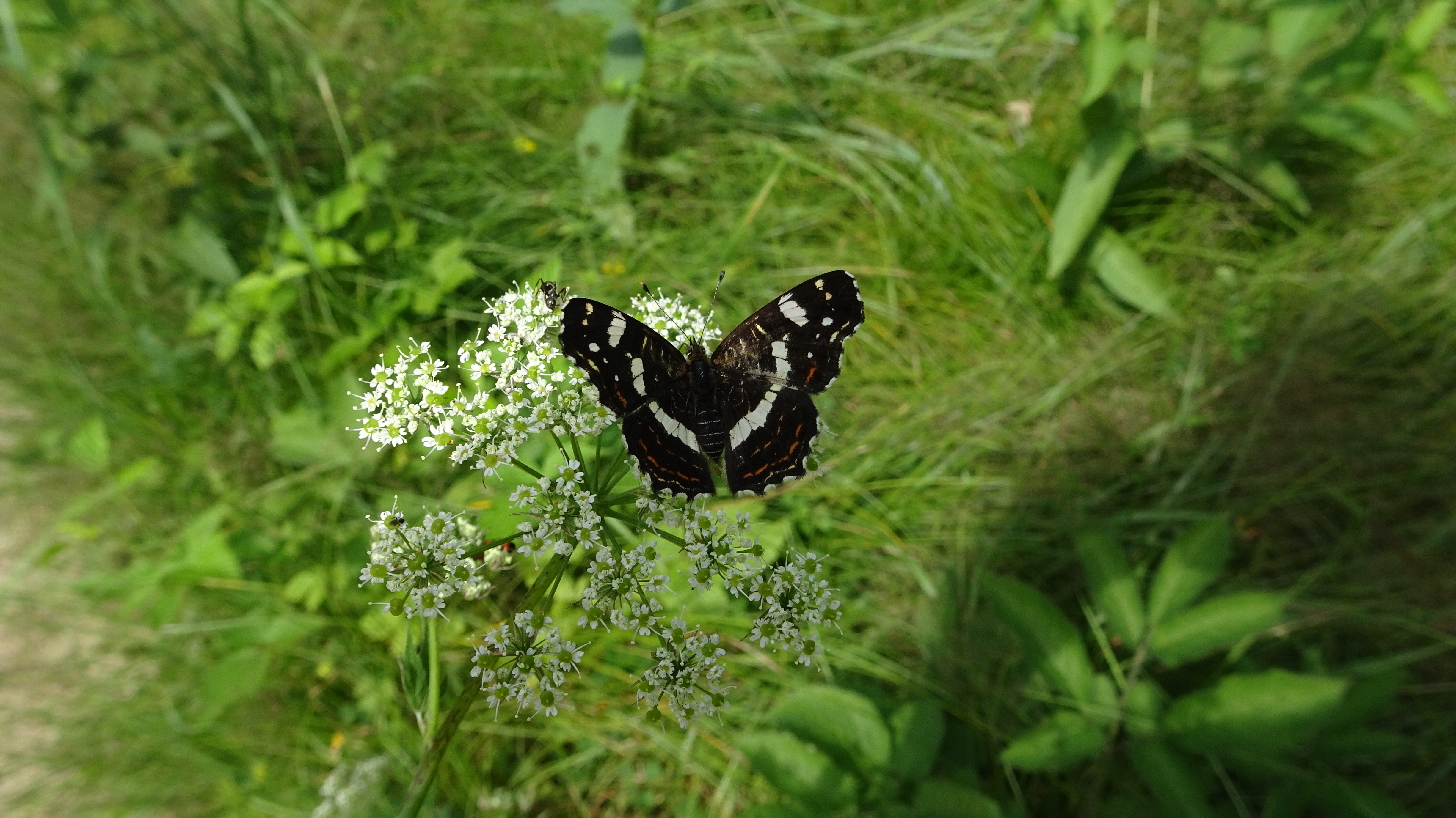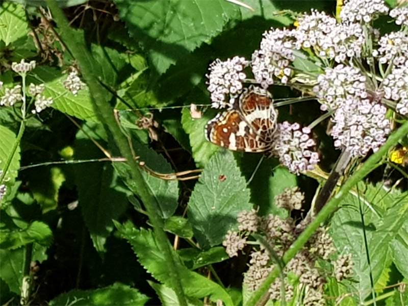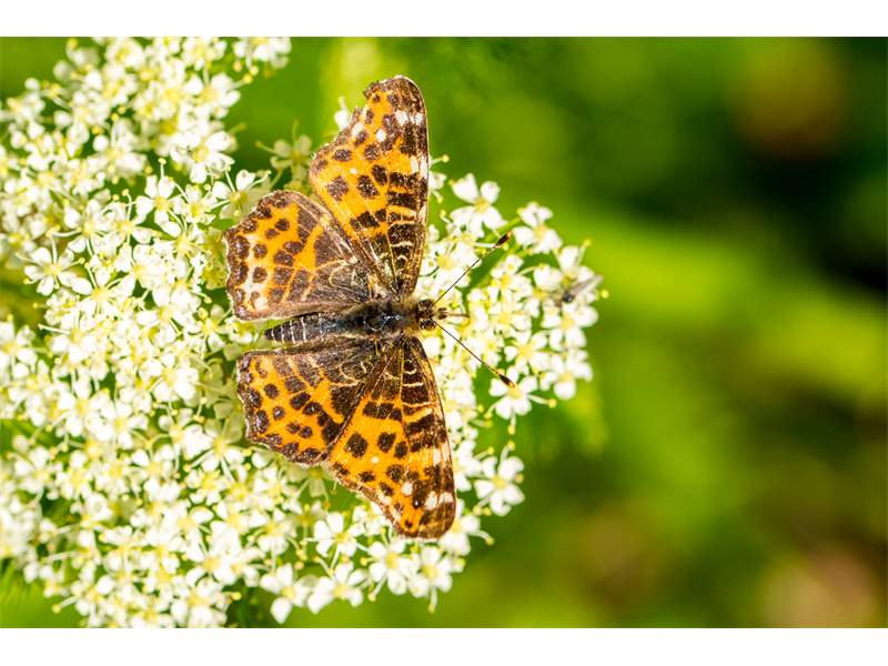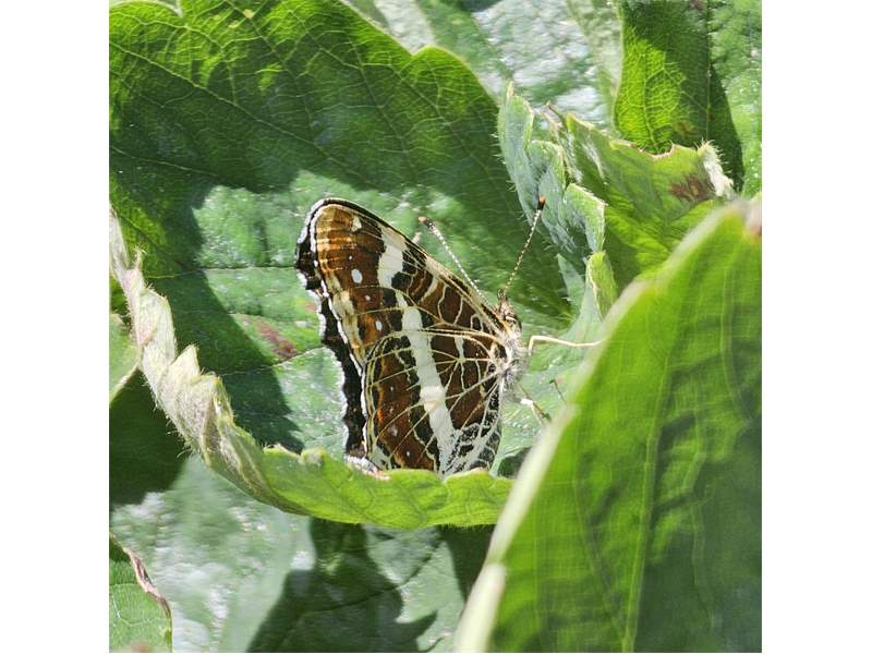 Landkärtchen, Sommergeneration der Schmetterlingsart auf Nektarspender Doldenblüte fotografiert, Falteroberseite im Sichtfeld, Ende Juni 2022, Auwald bei 06254 Horburg-Masslau (Sachsen-Anhalt) (© Heinz Sass)( Bild vergrößern)