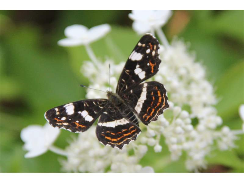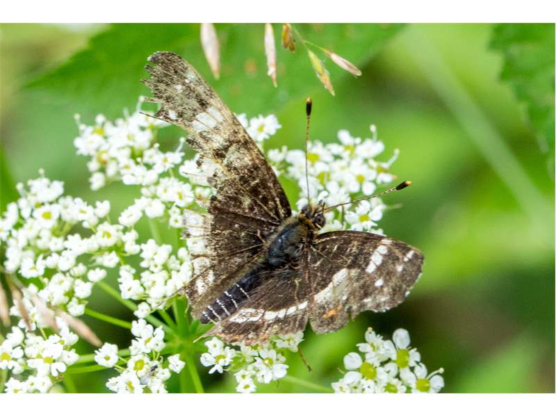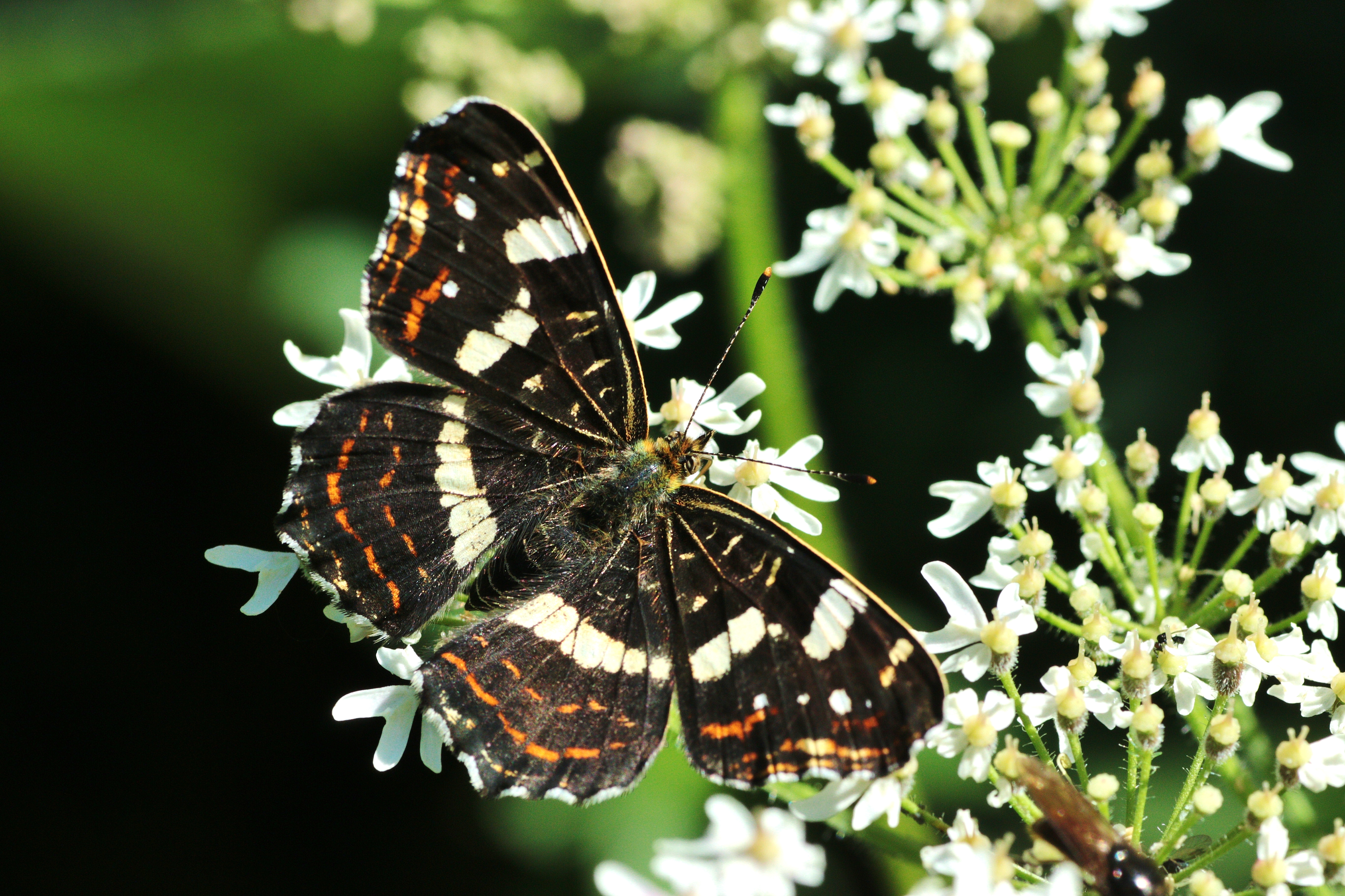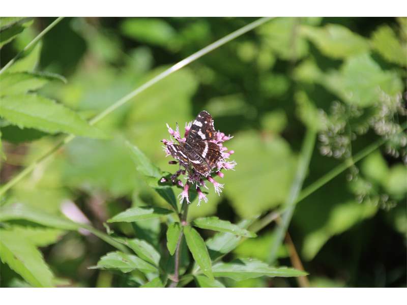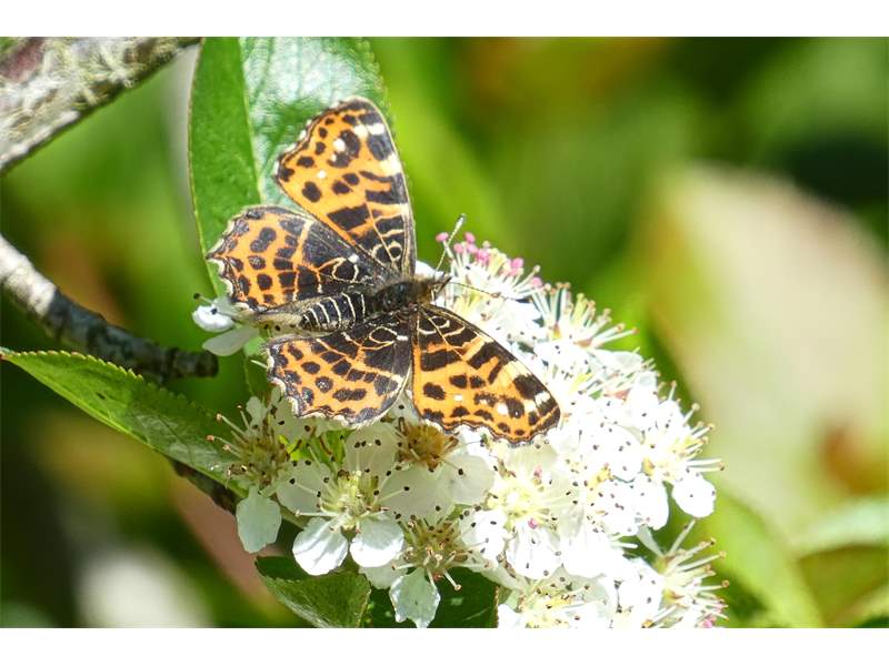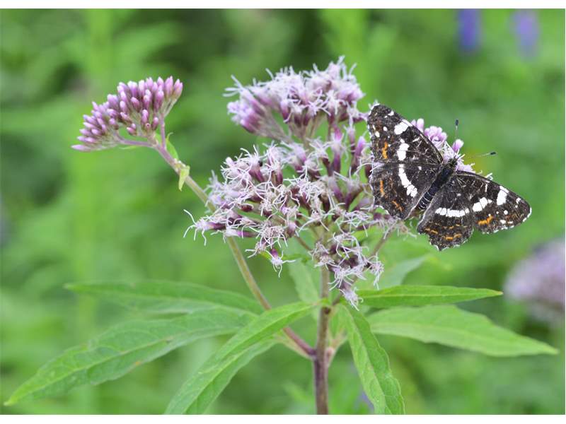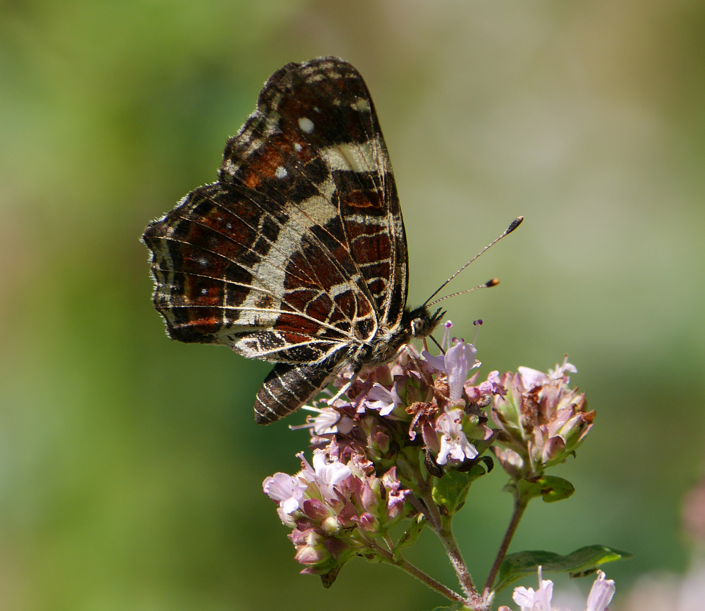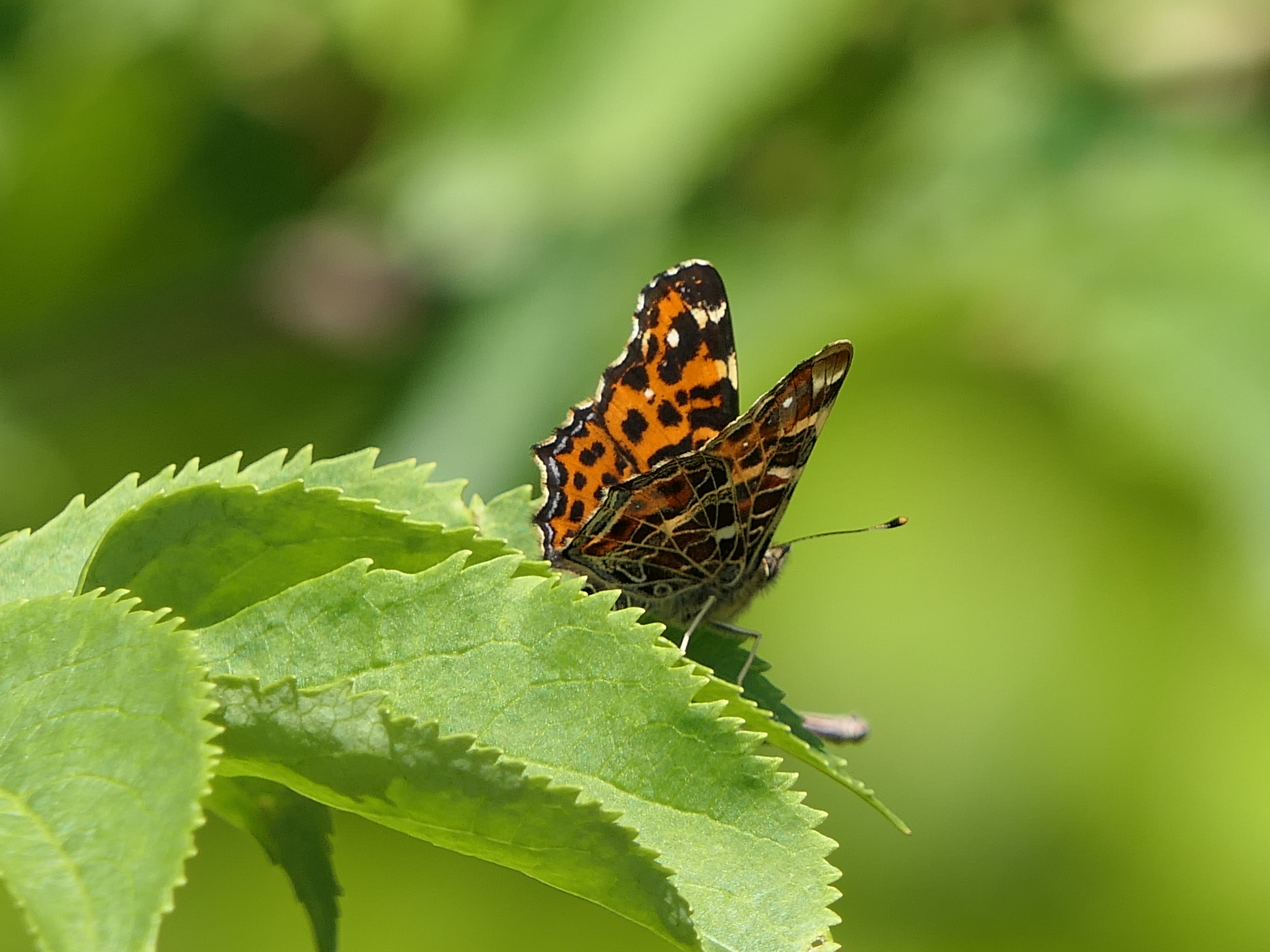 Landkärtchen, Sommergeneration der Schmetterlingsart auf Nektarspender Doldenblüte fotografiert, Falteroberseite im Sichtfeld, Ende Juni 2022, Auwald bei 06254 Horburg-Masslau (Sachsen-Anhalt) (© Heinz Sass)( Bild vergrößern)