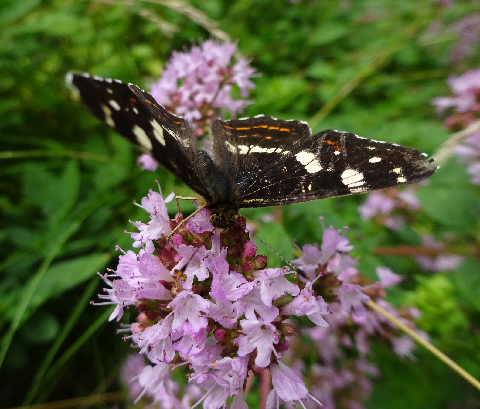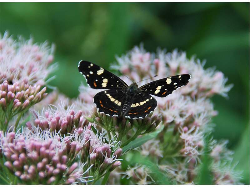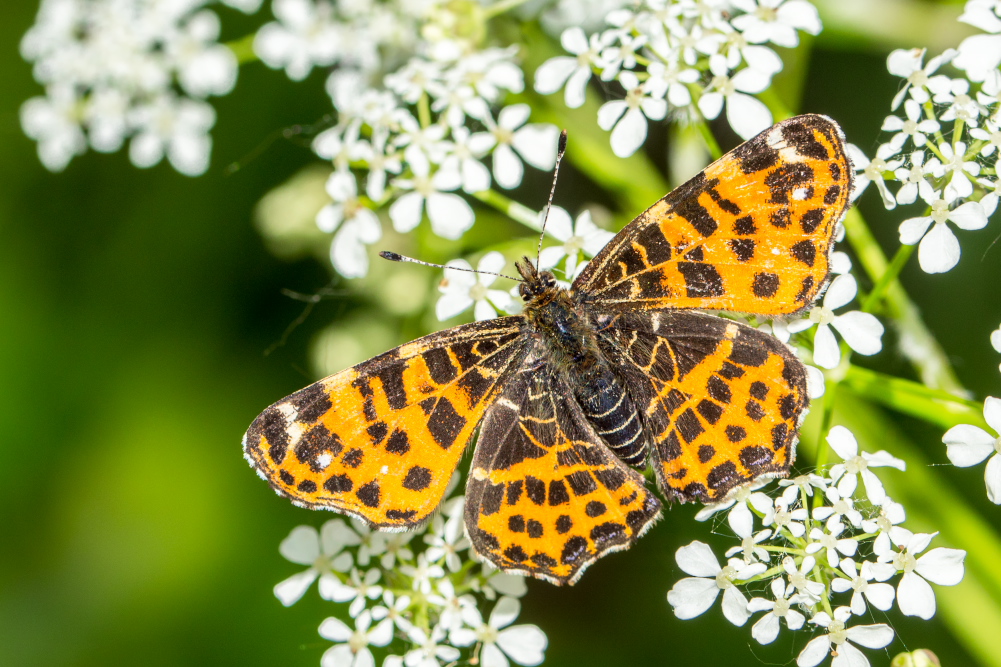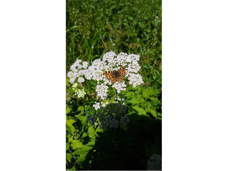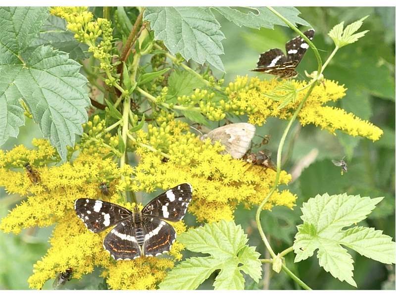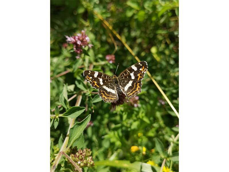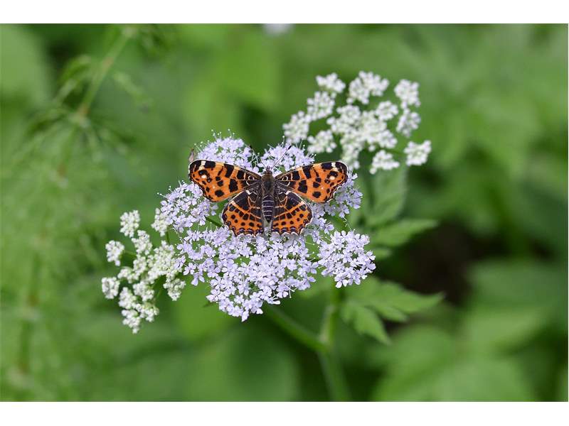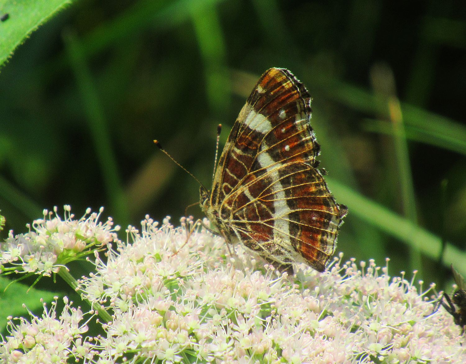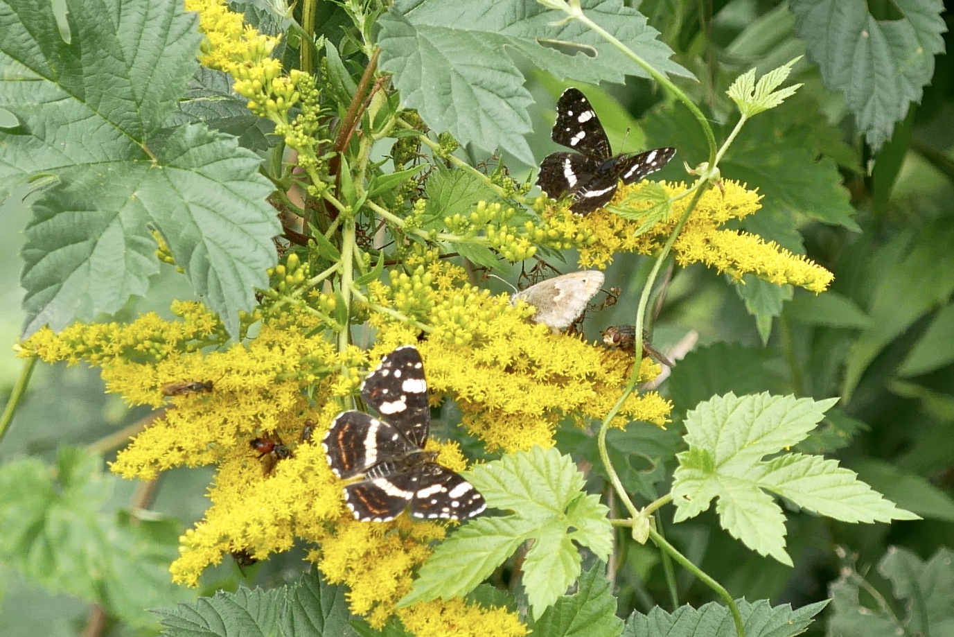 Landkärtchen, Sommergeneration der Schmetterlingsart auf Nektarspender Doldenblüte fotografiert, Falteroberseite im Sichtfeld, Ende Juni 2022, Auwald bei 06254 Horburg-Masslau (Sachsen-Anhalt) (© Heinz Sass)( Bild vergrößern)