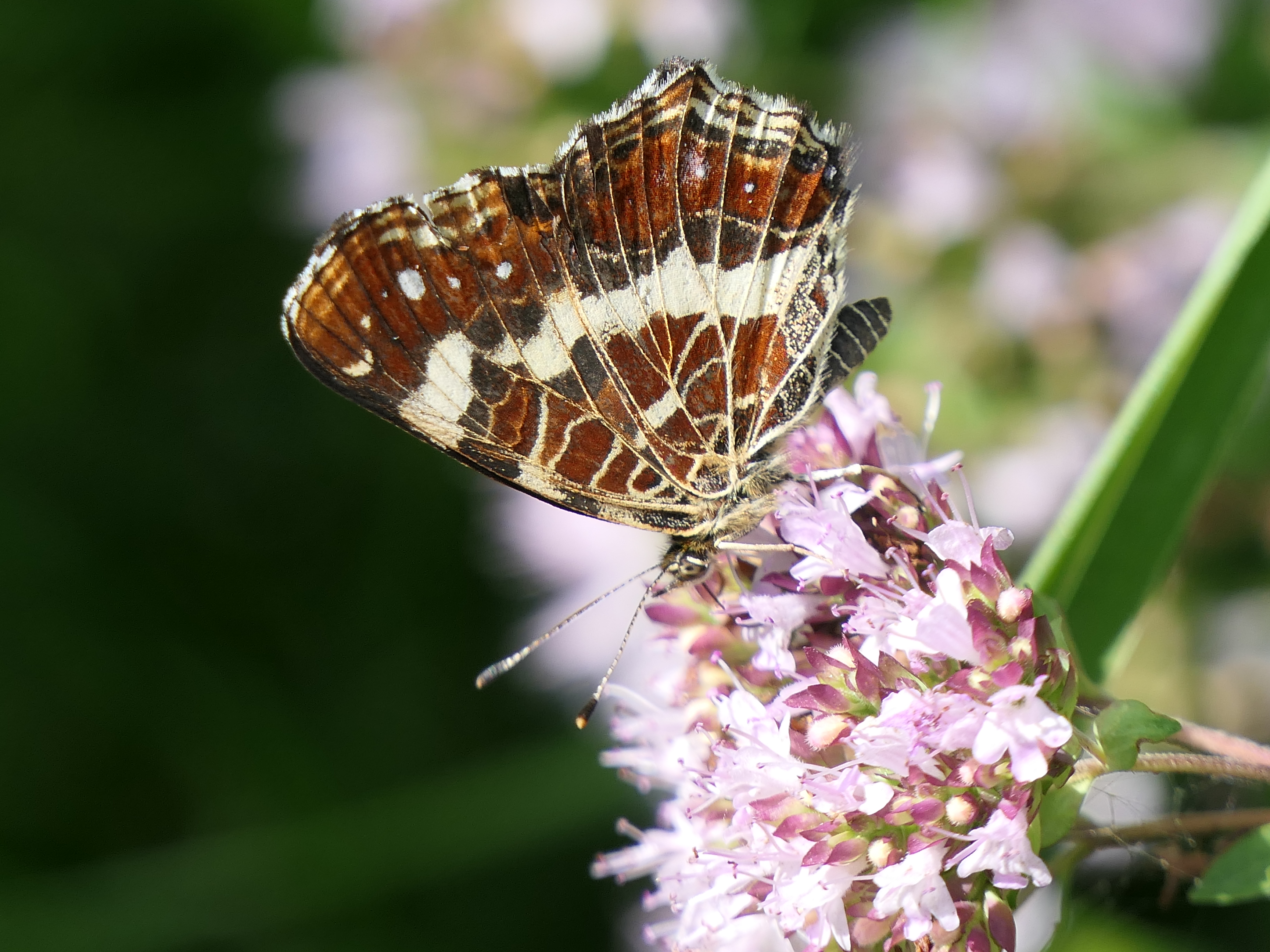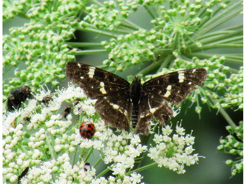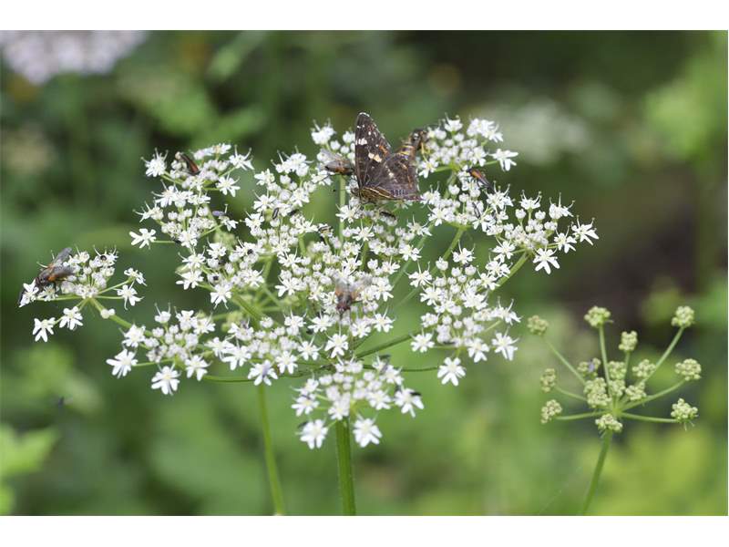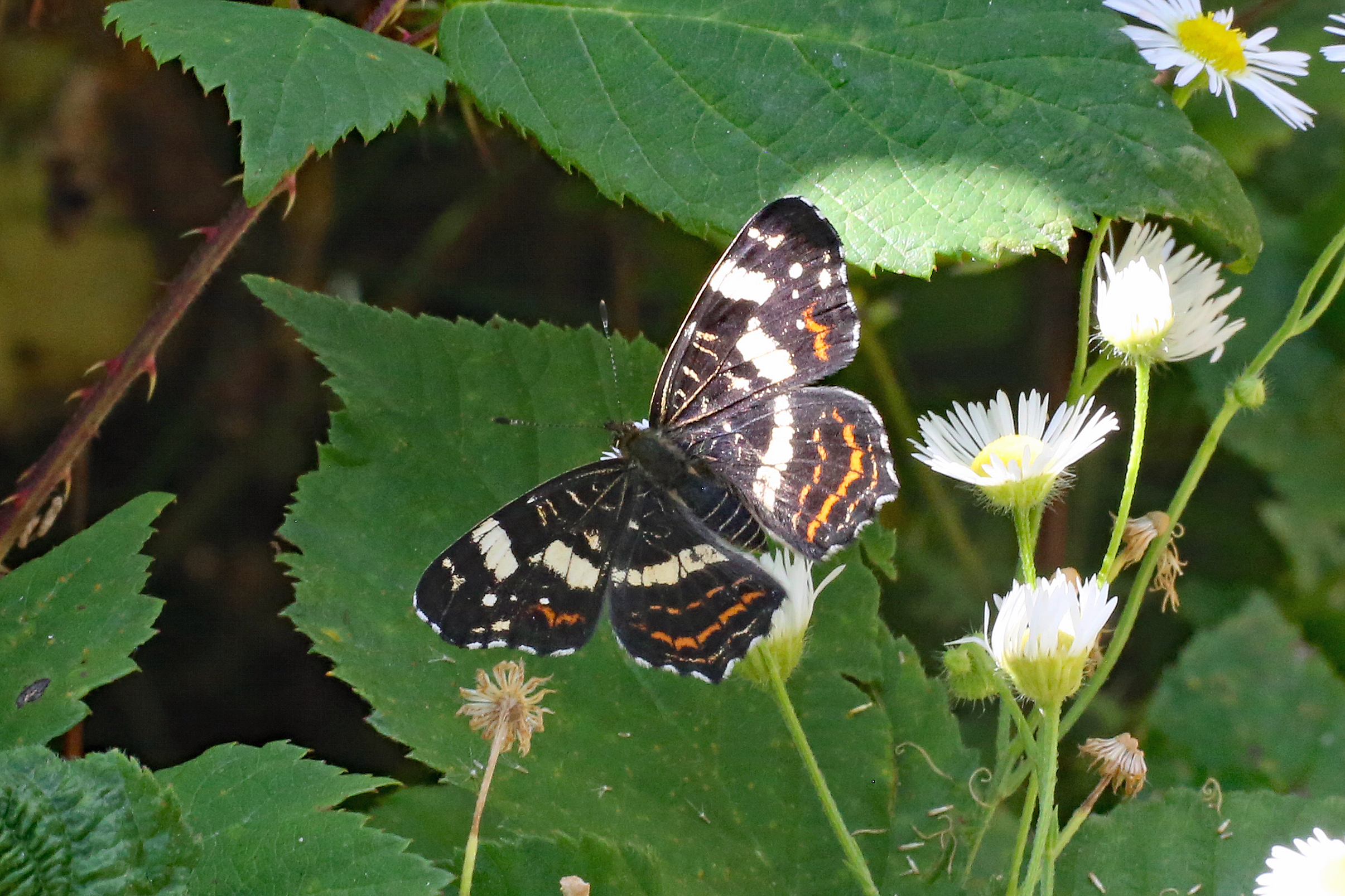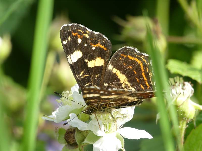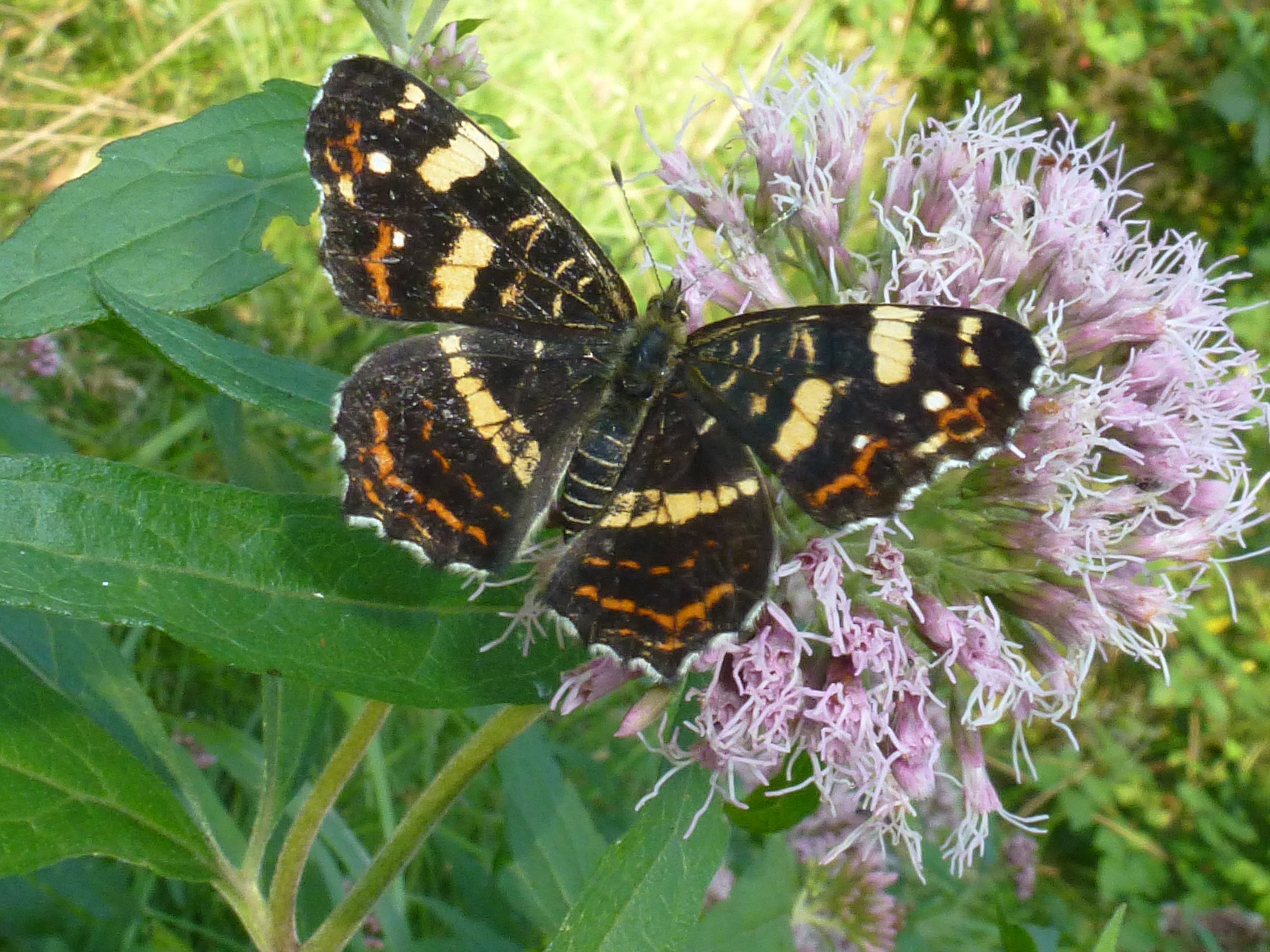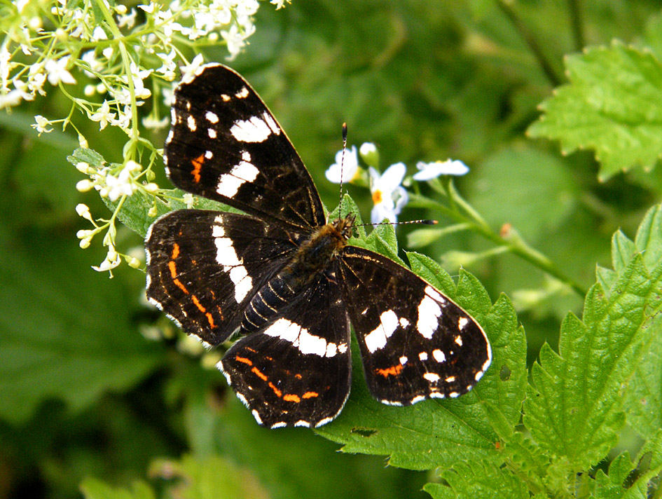 Landkärtchen, Sommergeneration der Schmetterlingsart auf Nektarspender Doldenblüte fotografiert, Falteroberseite im Sichtfeld, Ende Juni 2022, Auwald bei 06254 Horburg-Masslau (Sachsen-Anhalt) (© Heinz Sass)( Bild vergrößern)