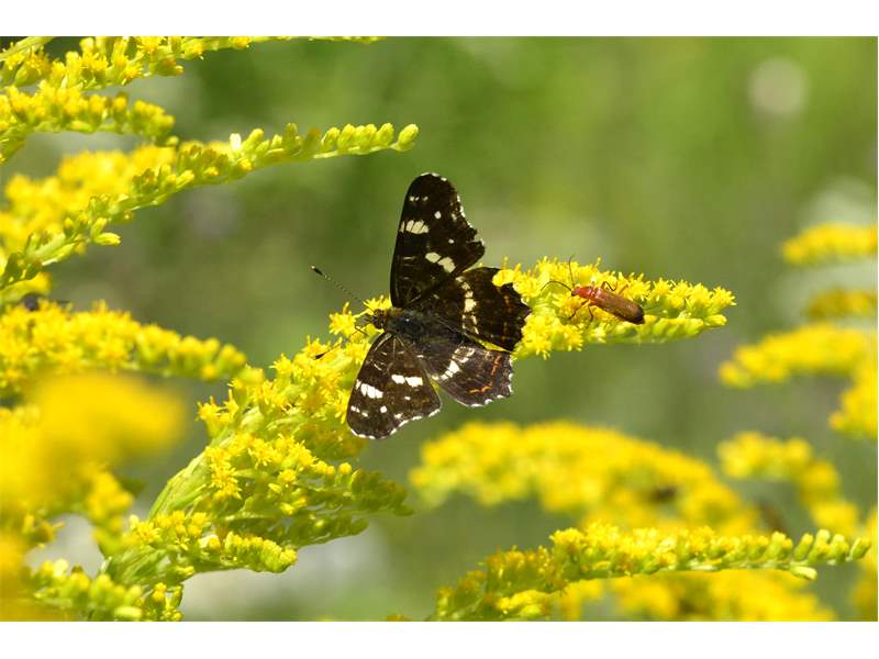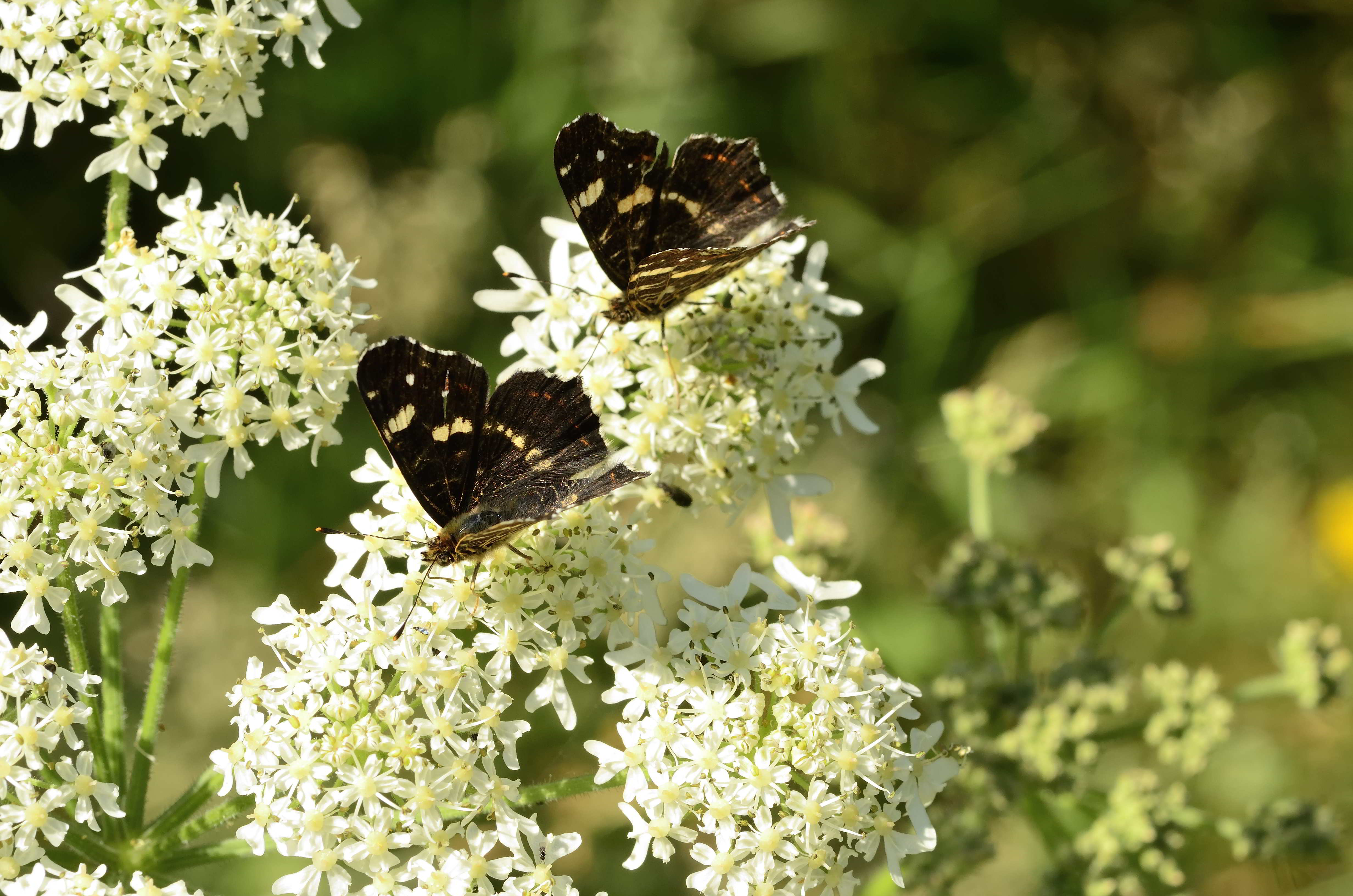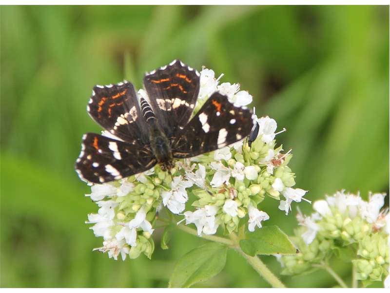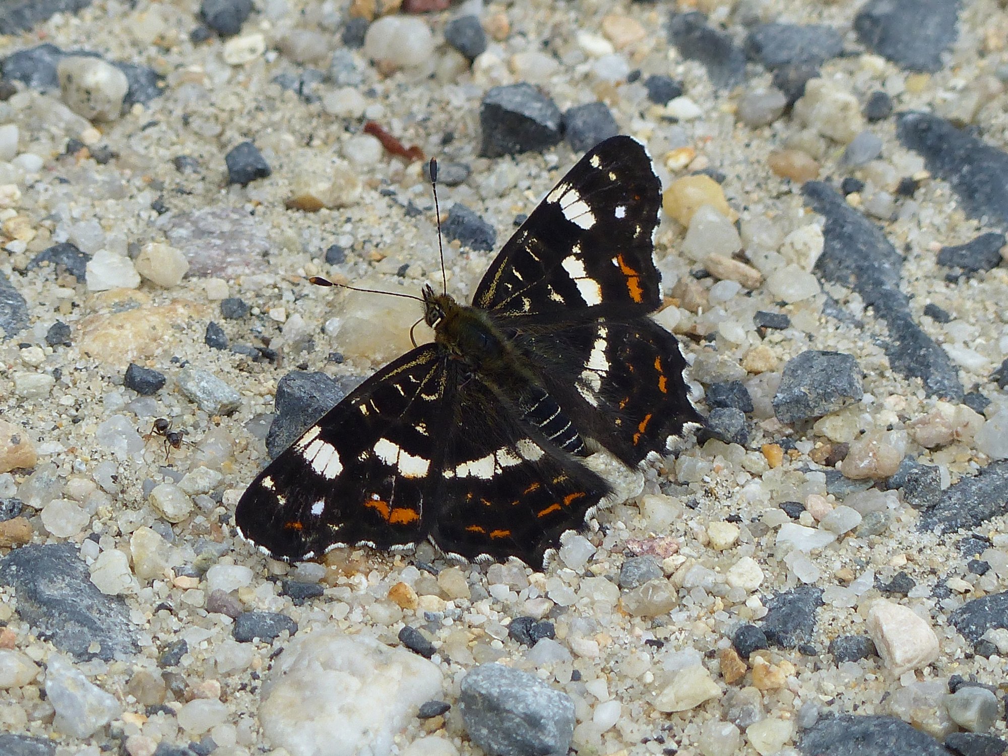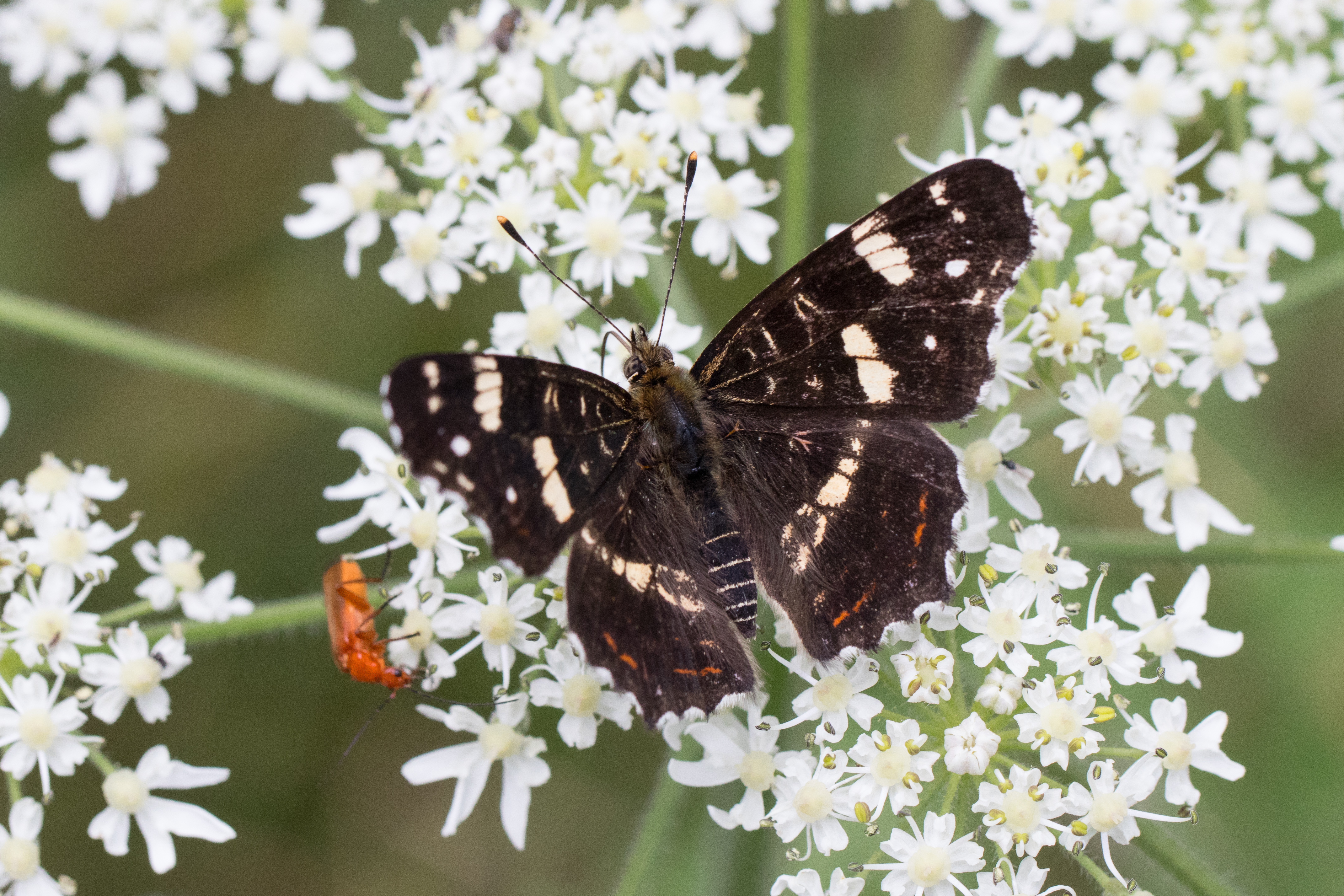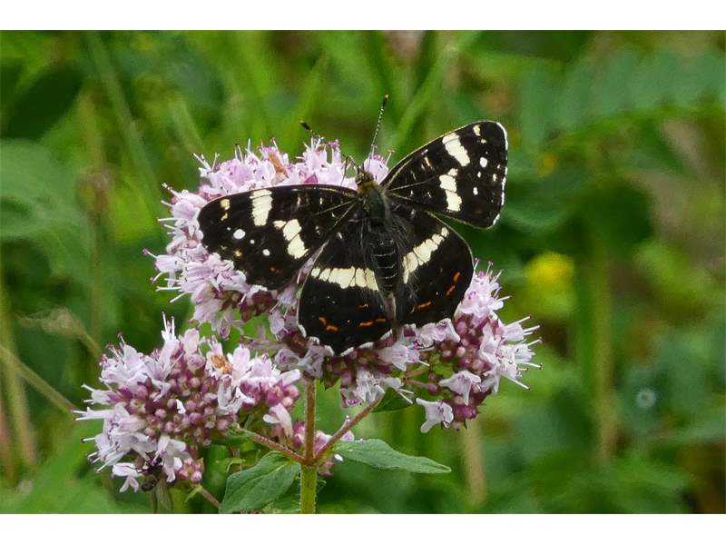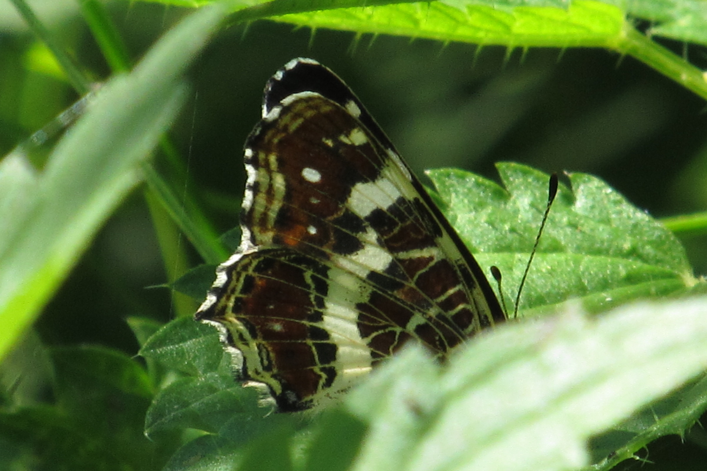 Landkärtchen, Sommergeneration der Schmetterlingsart auf Nektarspender Doldenblüte fotografiert, Falteroberseite im Sichtfeld, Ende Juni 2022, Auwald bei 06254 Horburg-Masslau (Sachsen-Anhalt) (© Heinz Sass)( Bild vergrößern)
