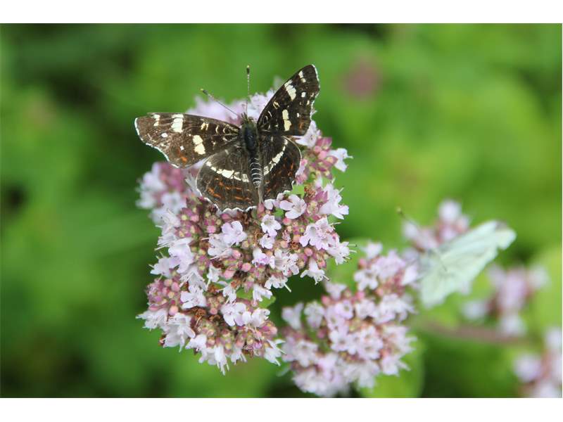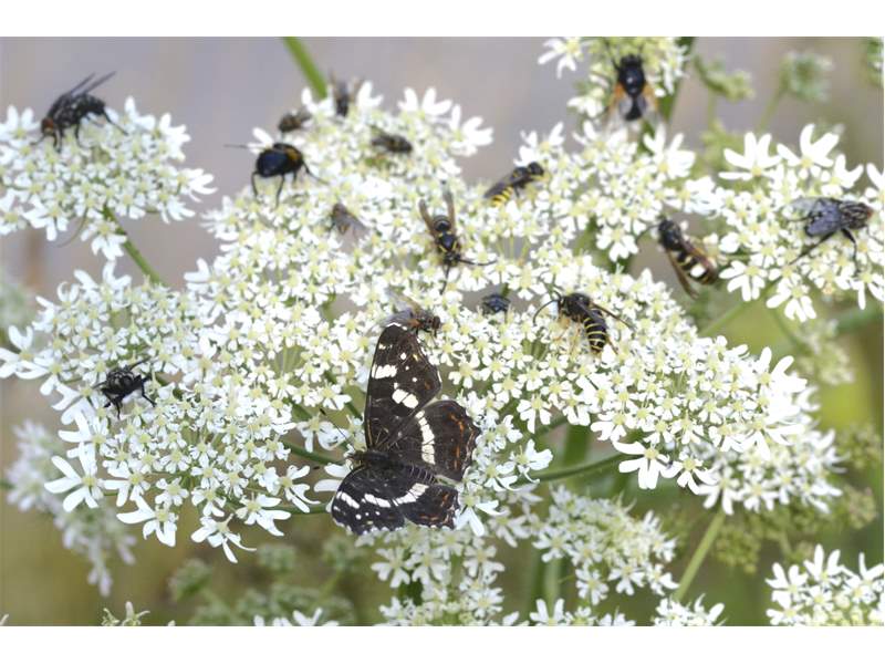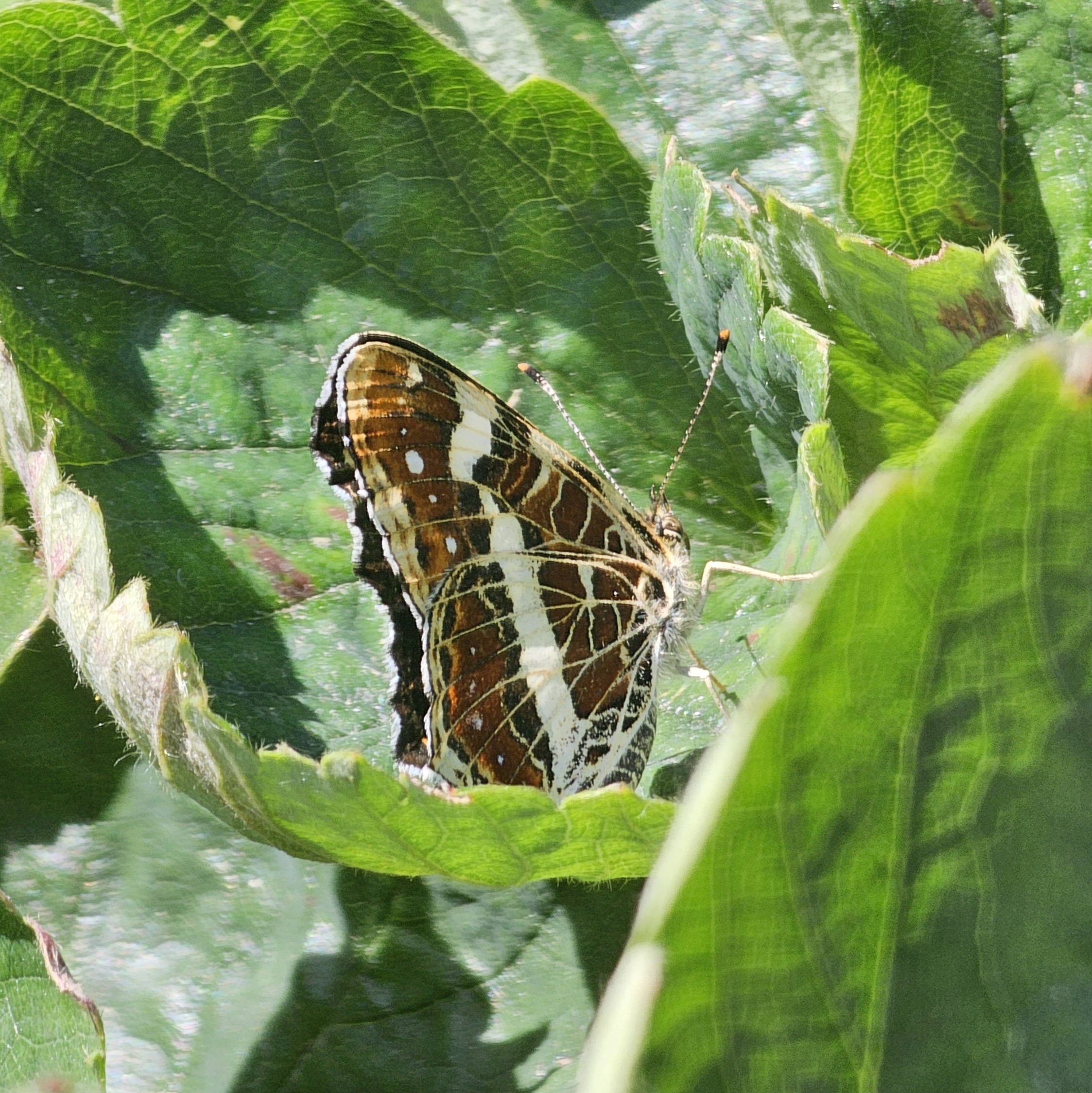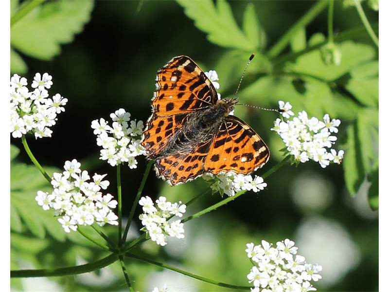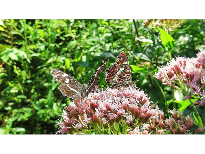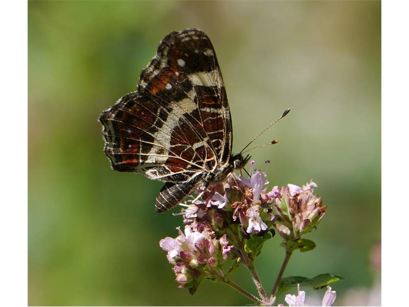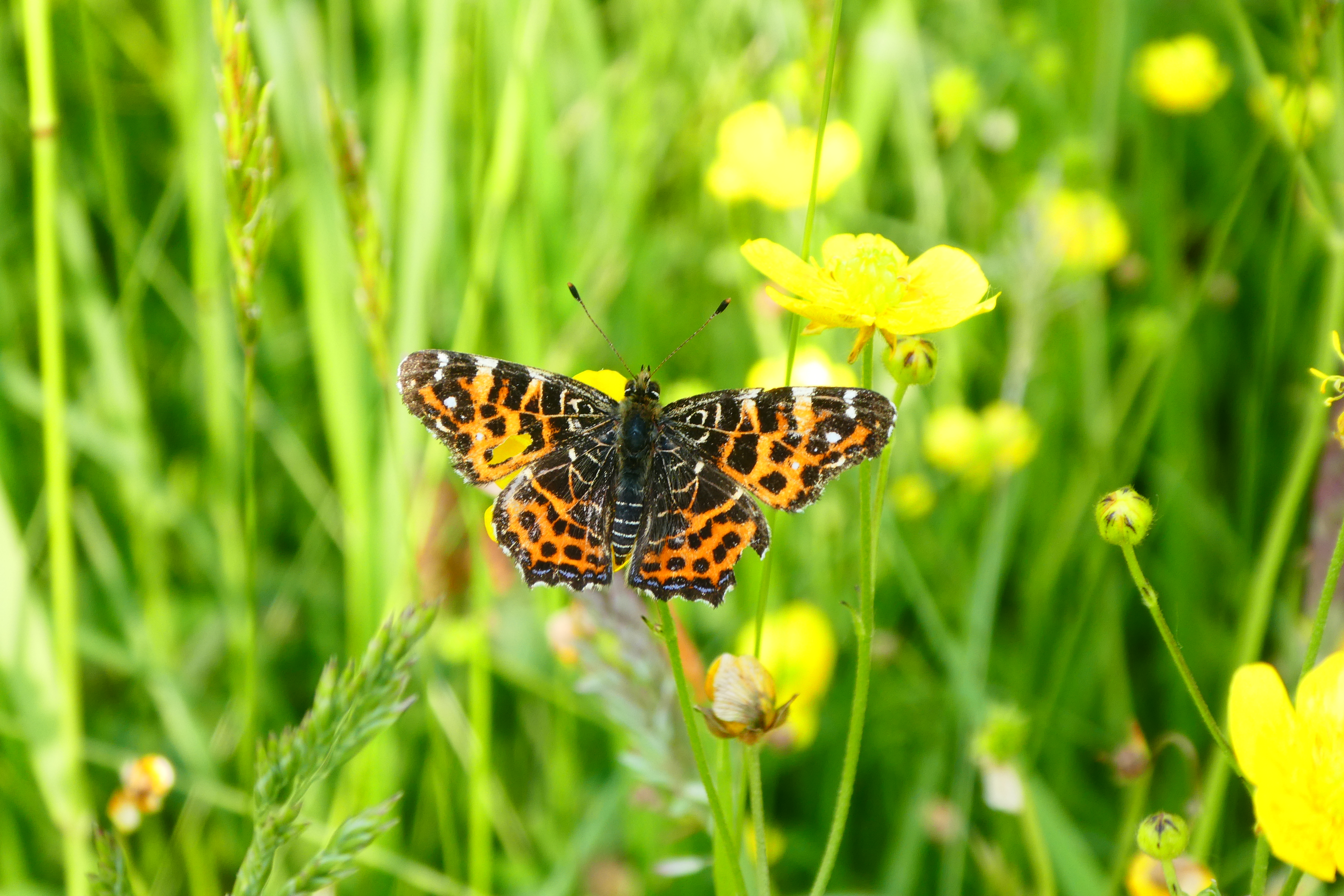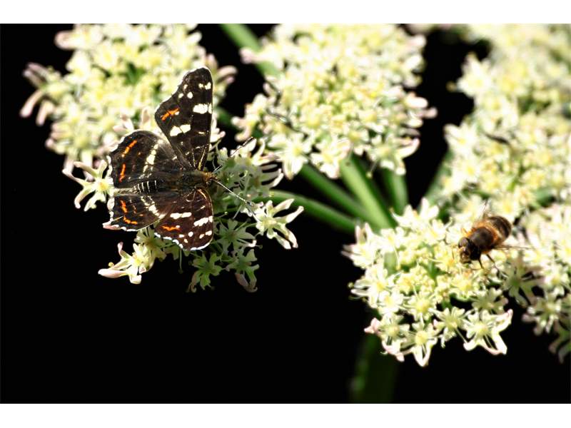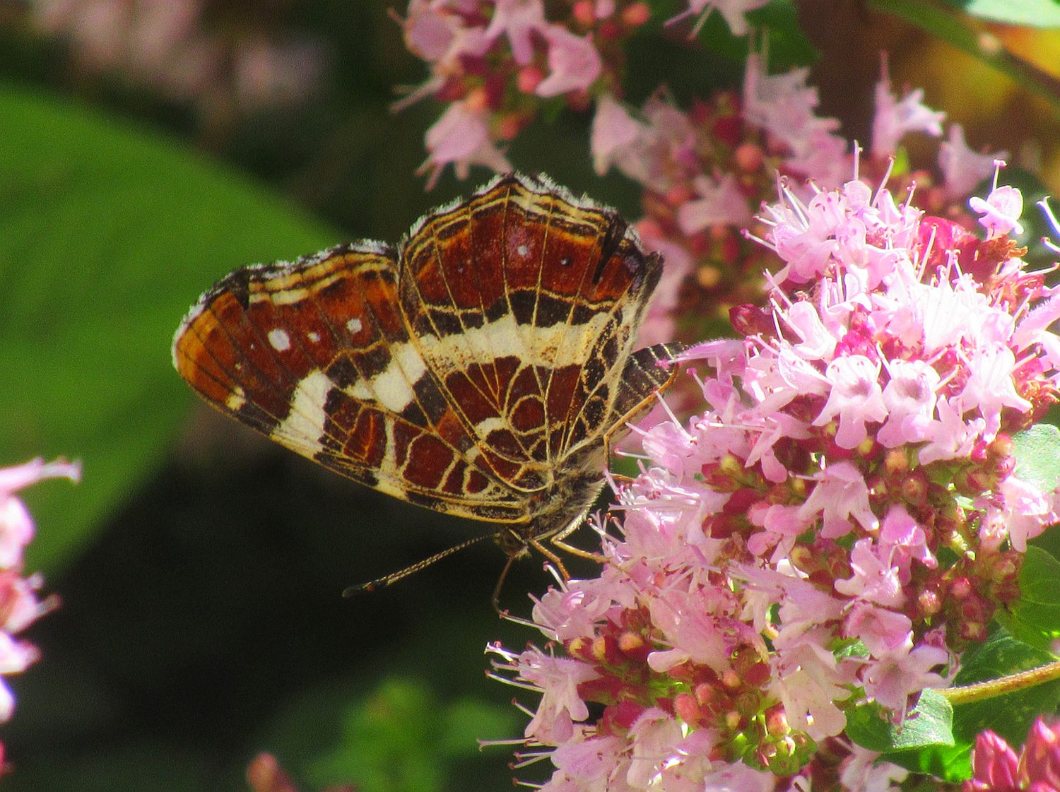 Landkärtchen, Sommergeneration der Schmetterlingsart auf Nektarspender Doldenblüte fotografiert, Falteroberseite im Sichtfeld, Ende Juni 2022, Auwald bei 06254 Horburg-Masslau (Sachsen-Anhalt) (© Heinz Sass)( Bild vergrößern)